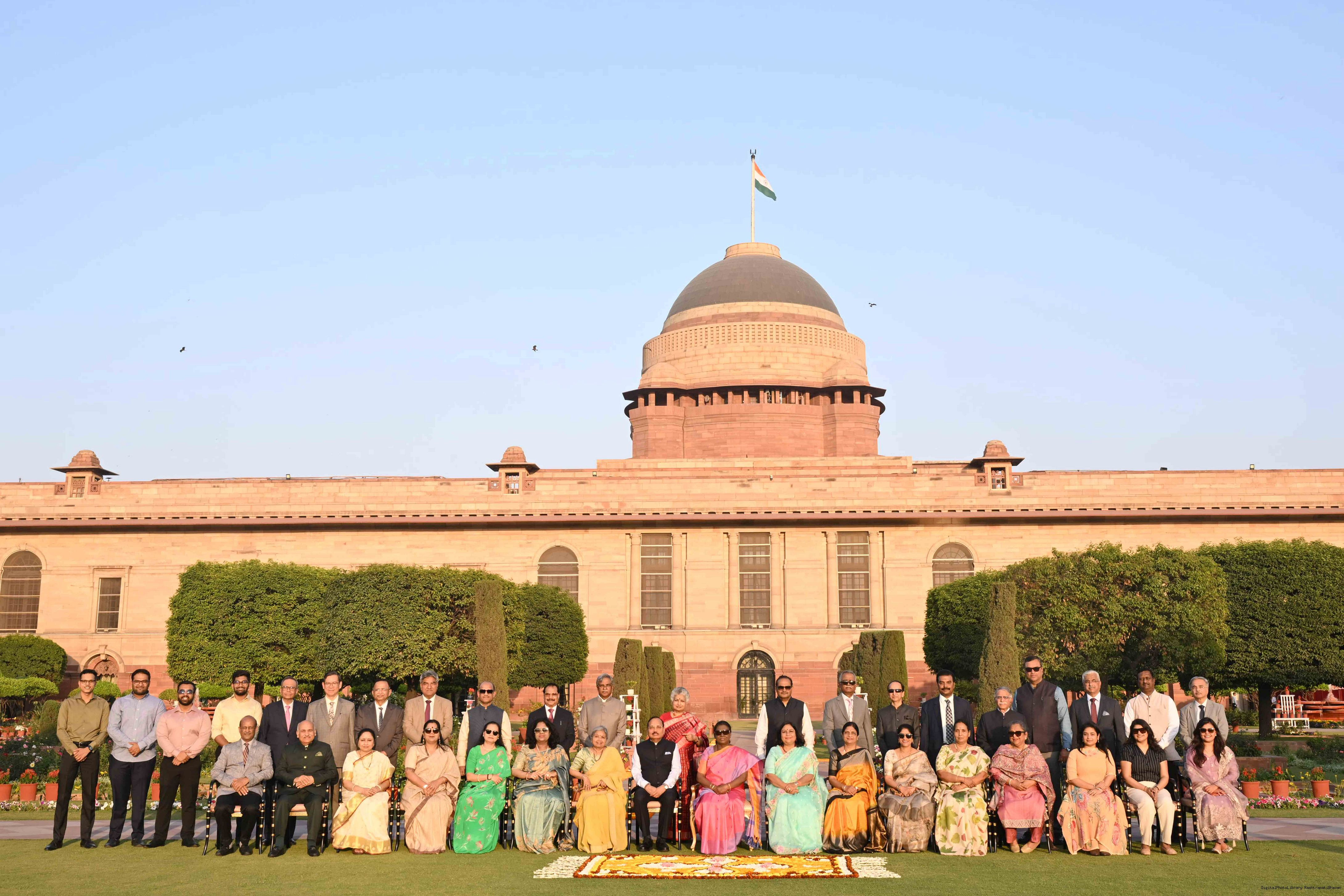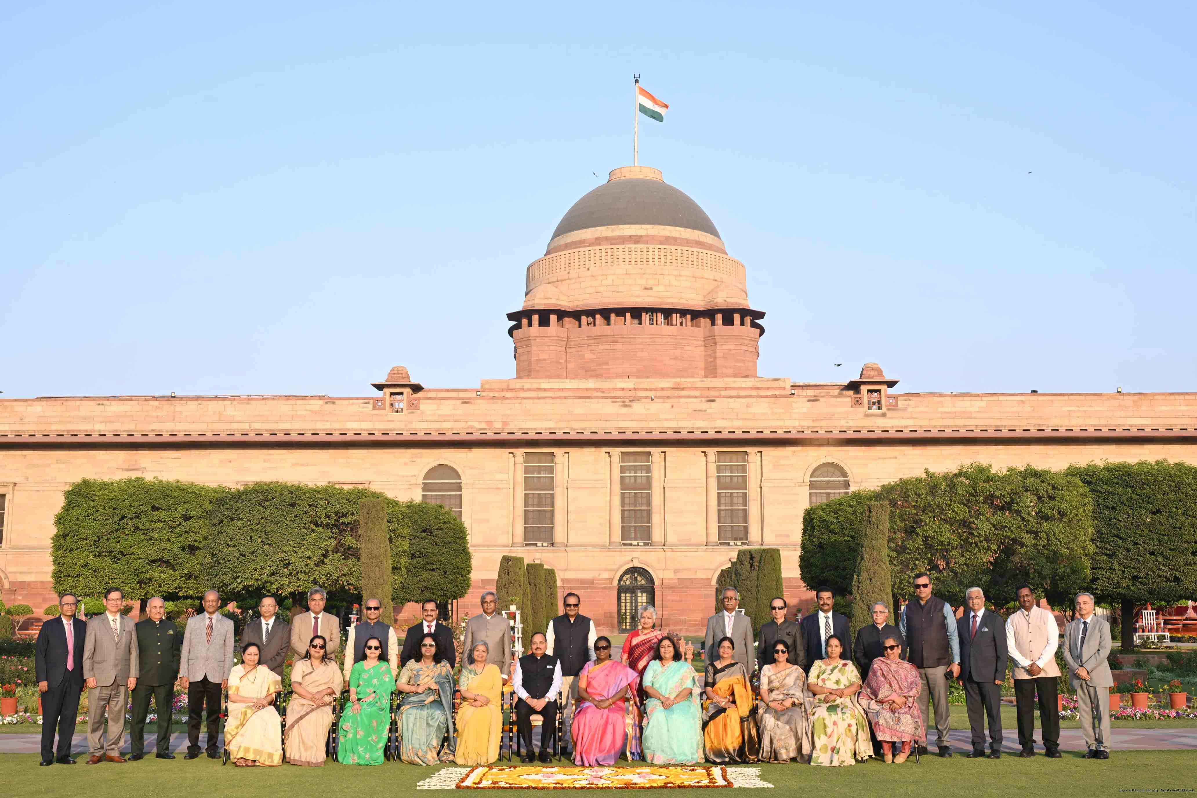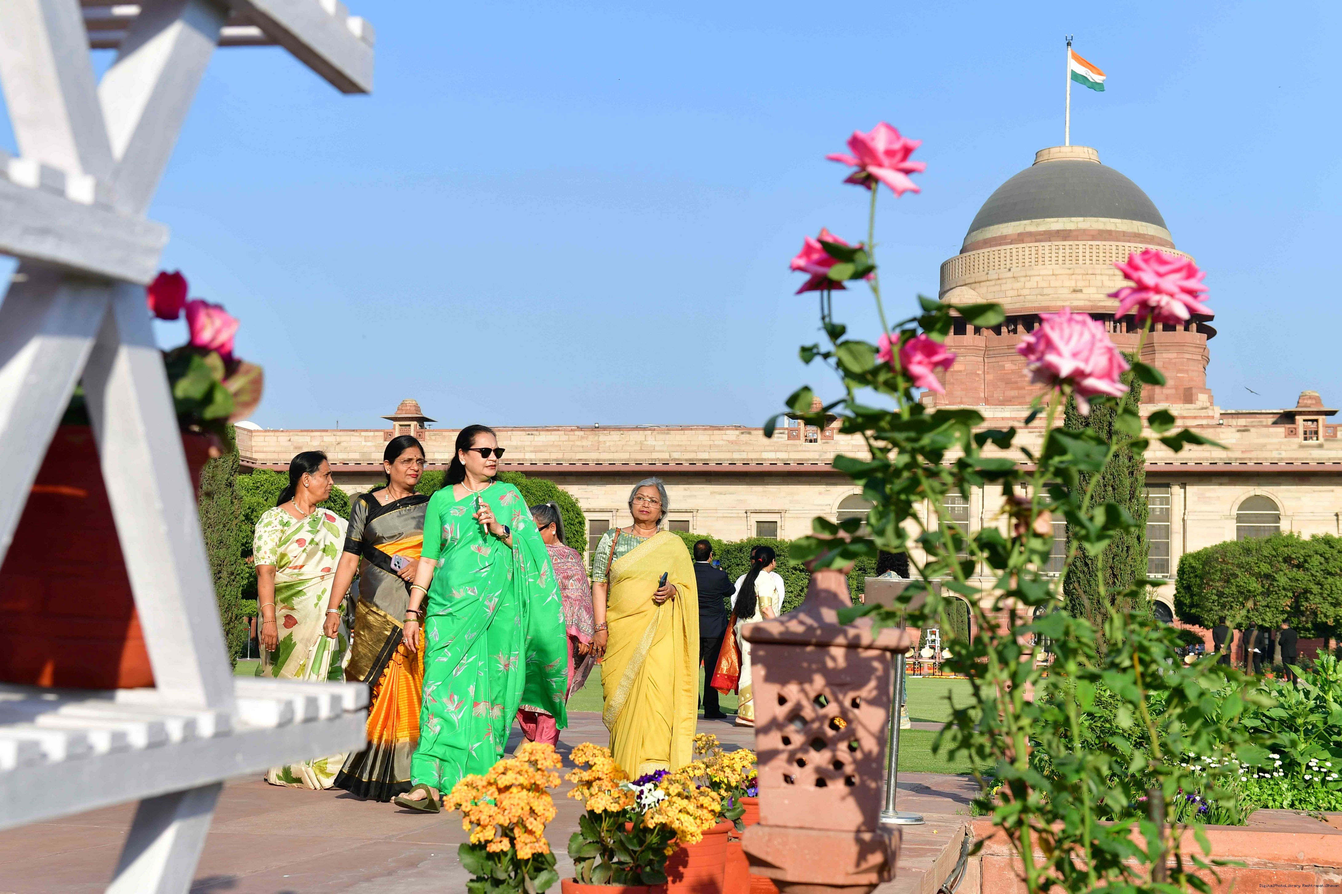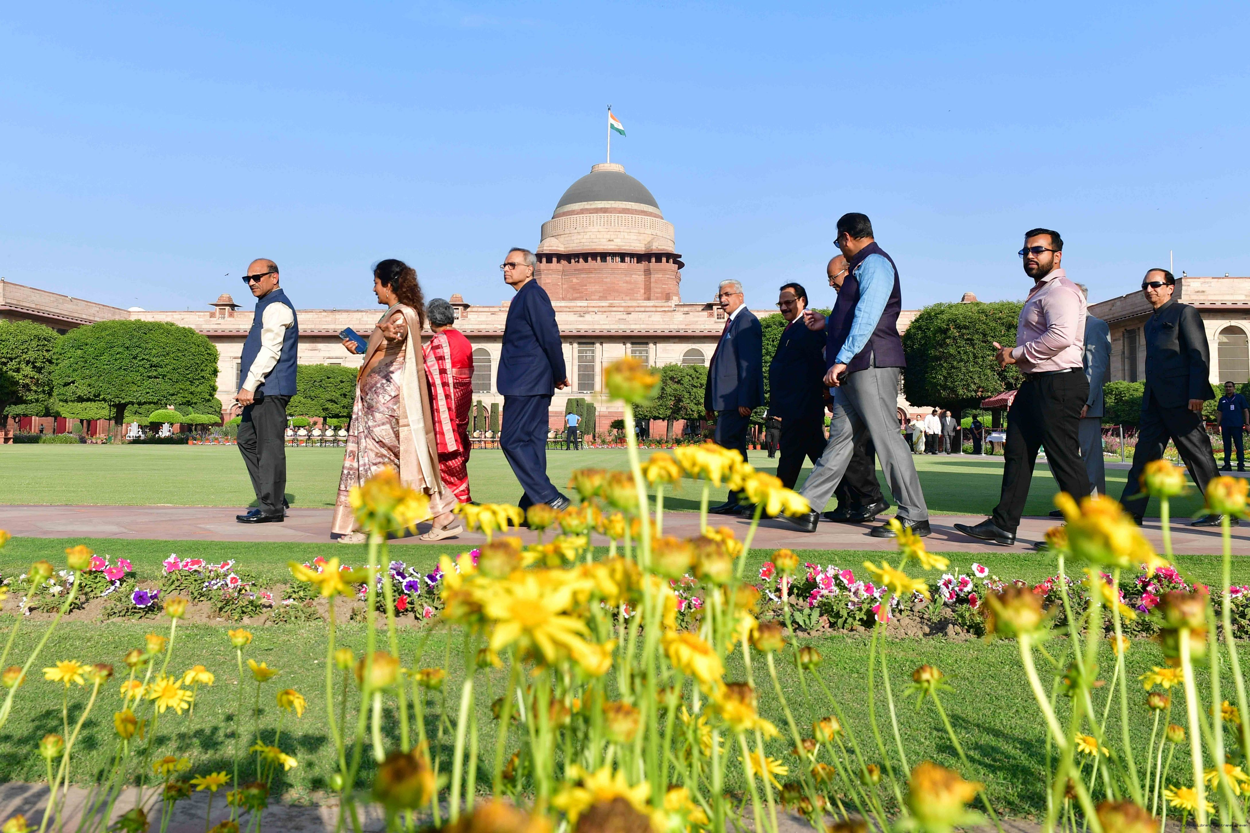 | Caption: | The Chief Justice of India, Shri Justice Surya Kant and judges of the Supreme Court, along with their families, visited the Amrit Udyan of Rashtrapati Bhavan. The President of India Smt Droupadi Murmu interacted with them after the visit on March 10, 2026. |