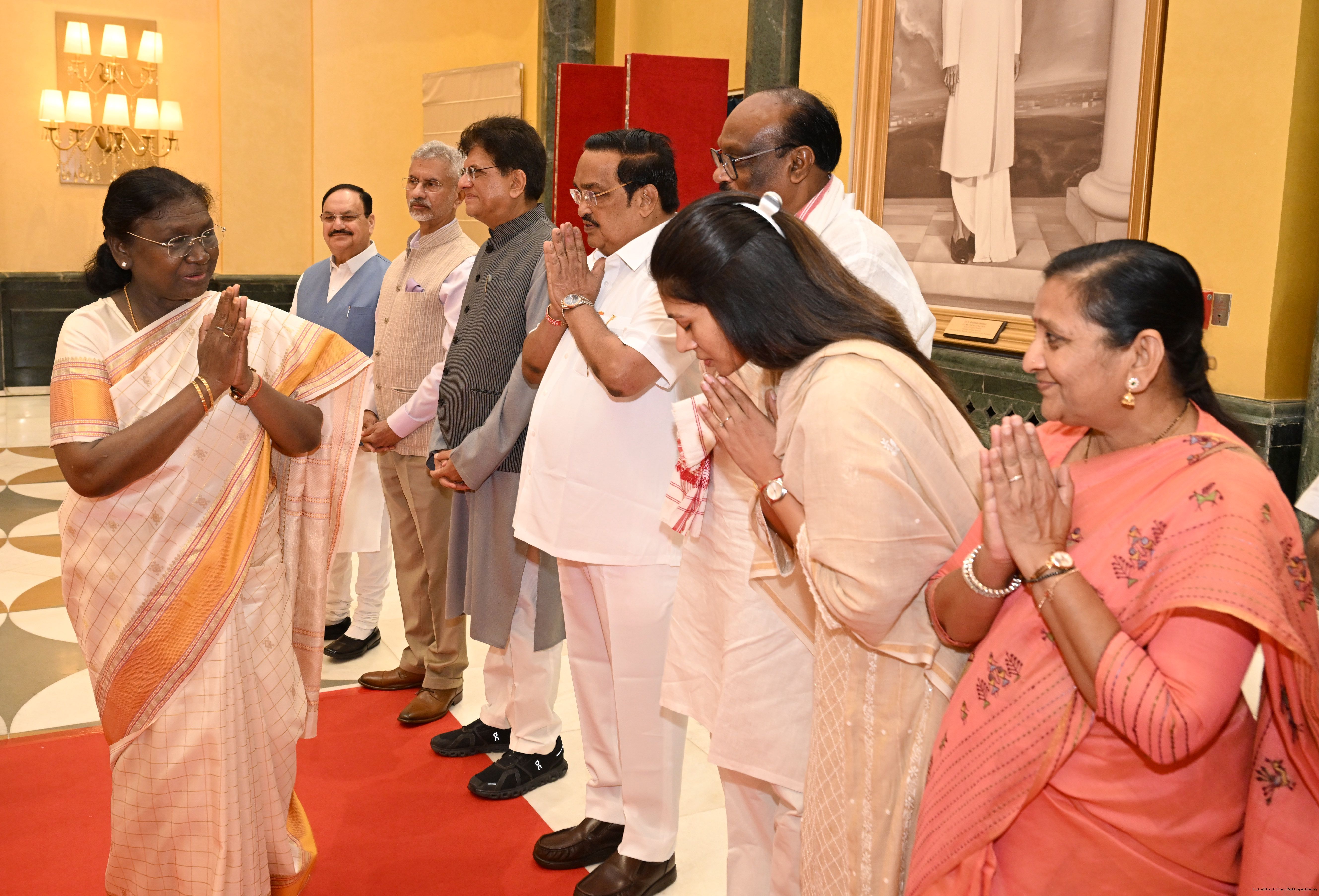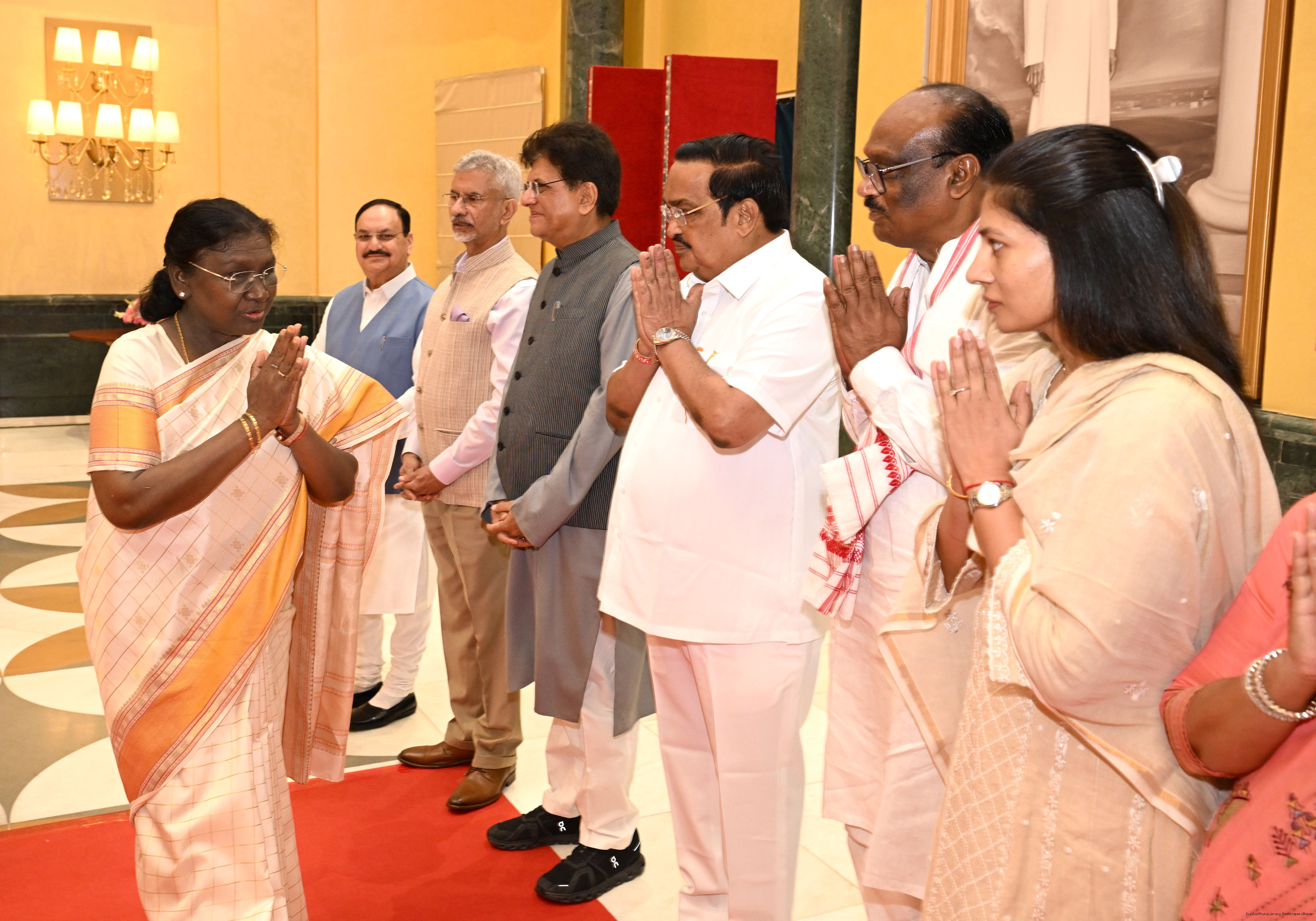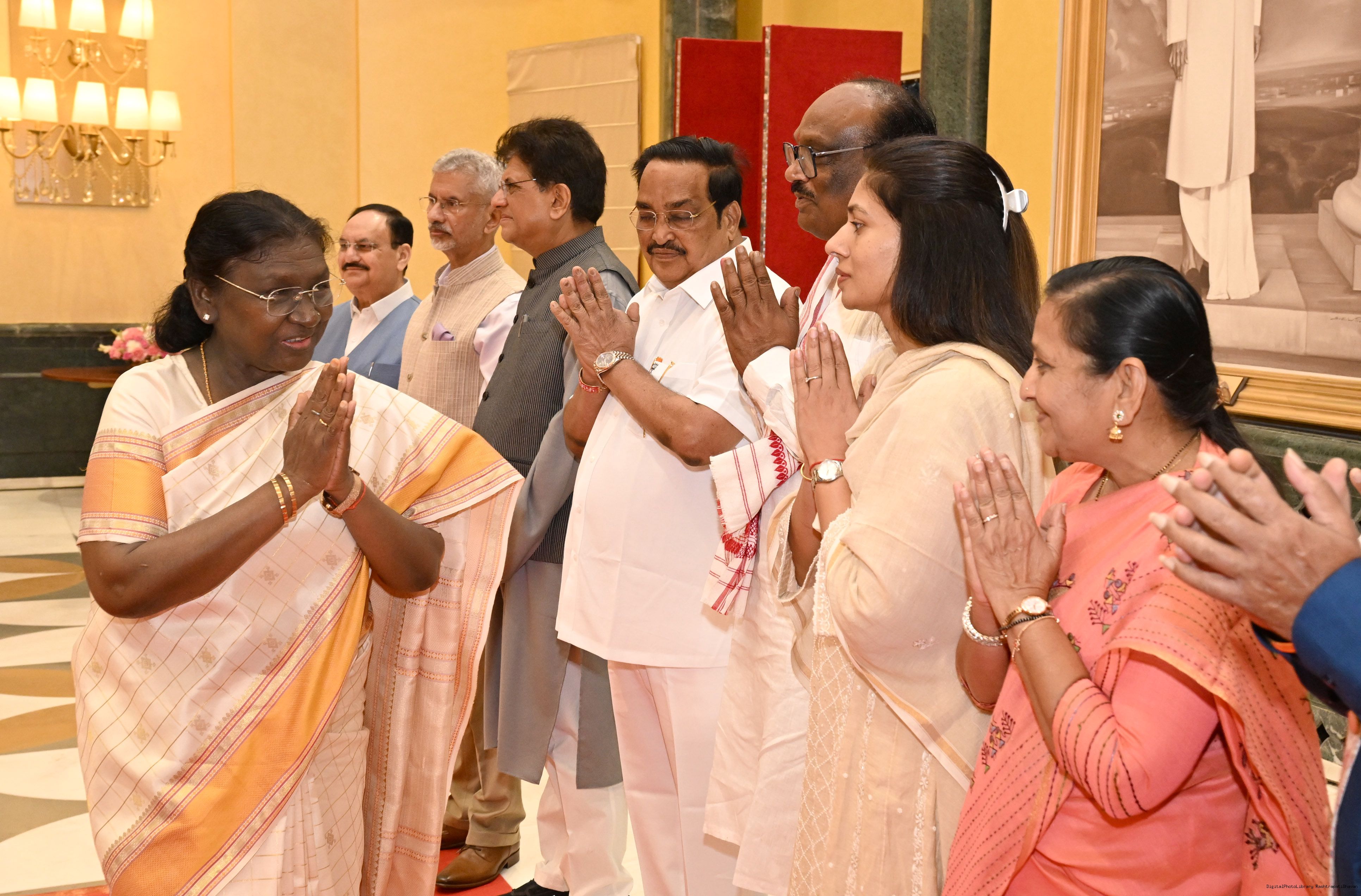 | Caption: | The President of India, Smt Droupadi Murmu hosted Members of Parliament from Uttarakhand, Maharashtra, Chandigarh, Ladakh, Gujarat, Madhya Pradesh, Delhi and nominated MPs of Rajya Sabha for breakfast at Rashtrapati Bhavan Cultural Centre on March 13, 2026 |