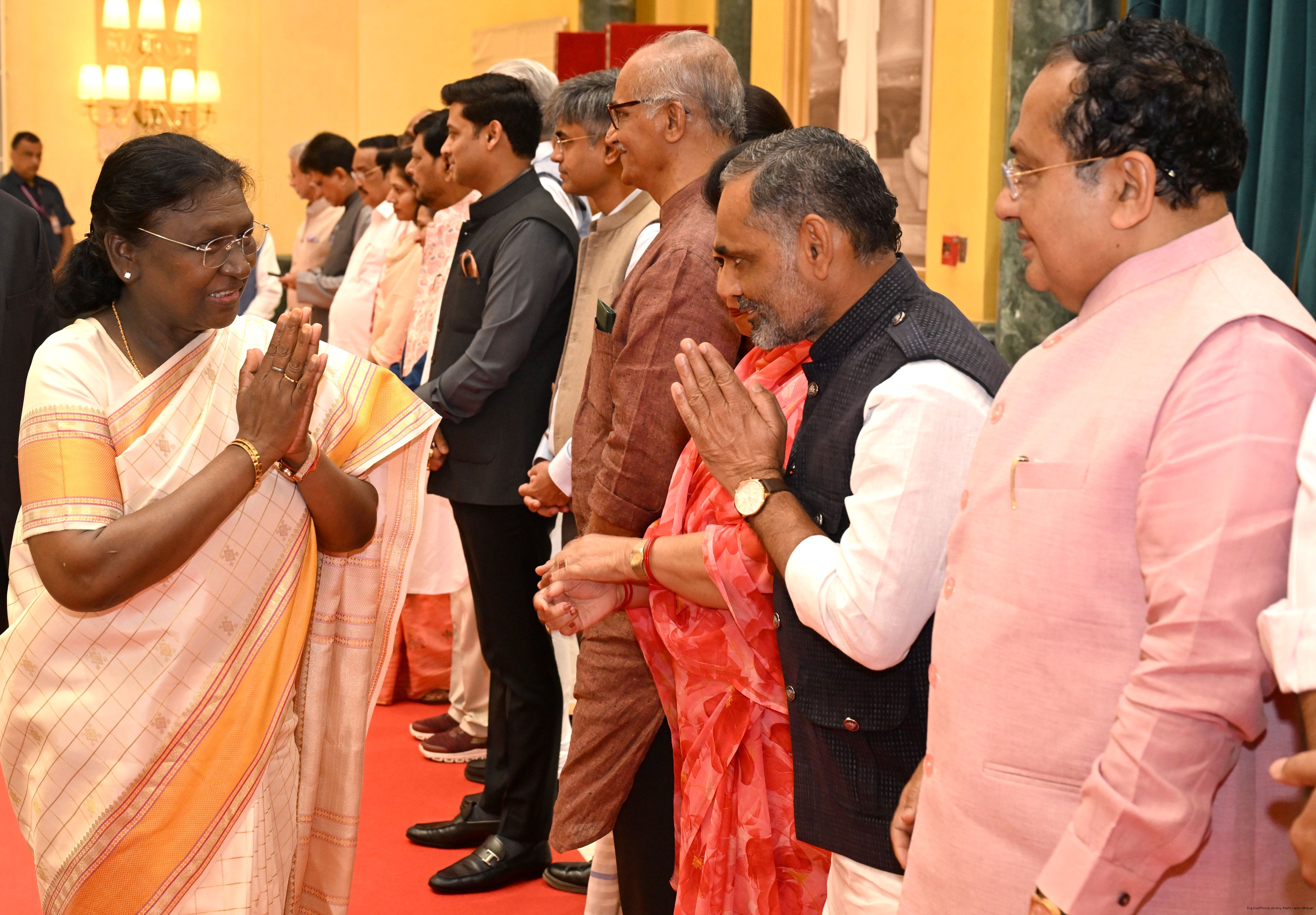 | Caption: | The President of India, Smt Droupadi Murmu hosted Members of Parliament from Uttarakhand, Maharashtra, Chandigarh, Ladakh, Gujarat, Madhya Pradesh, Delhi and nominated MPs of Rajya Sabha for breakfast at Rashtrapati Bhavan Cultural Centre on March 13, 2026 |