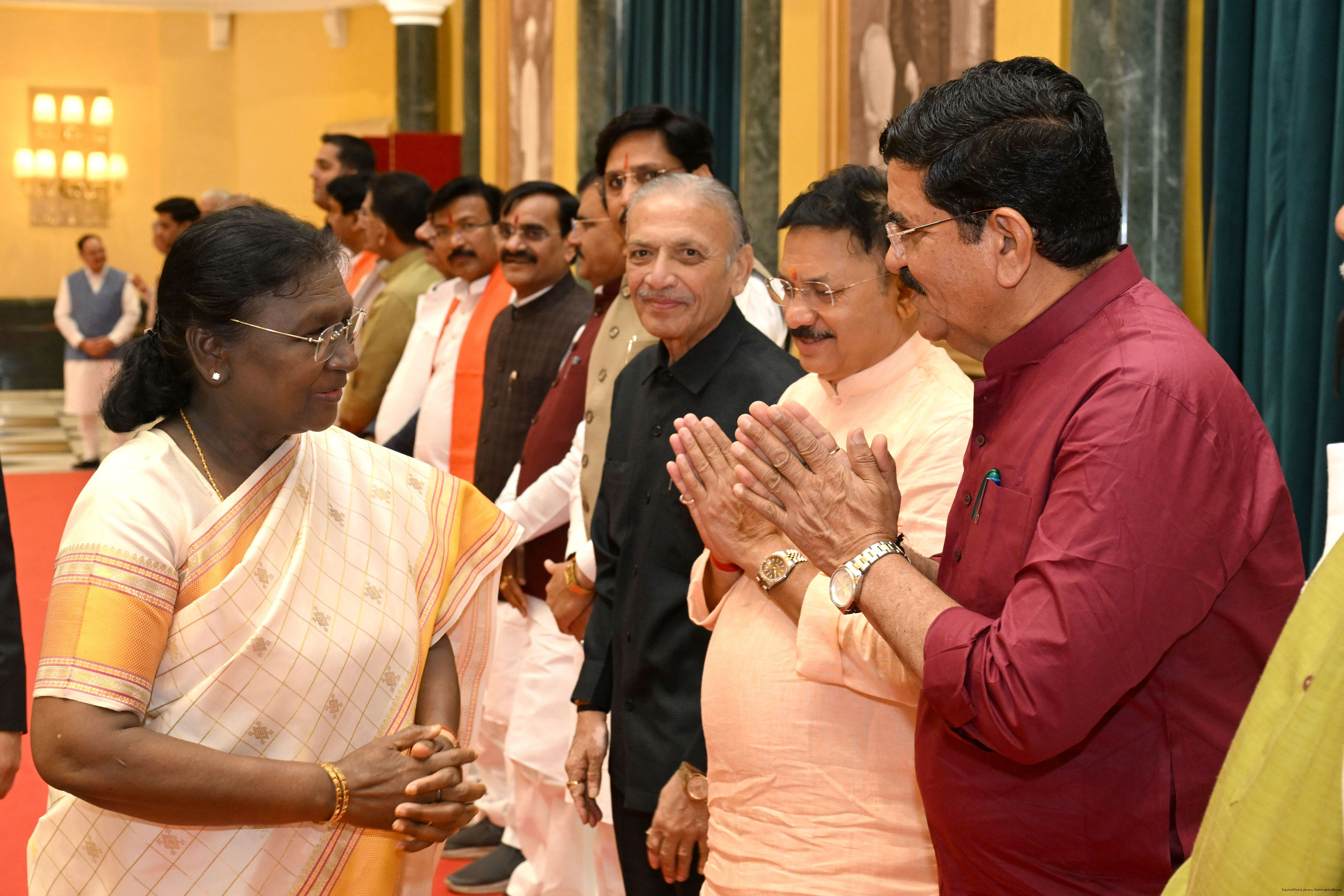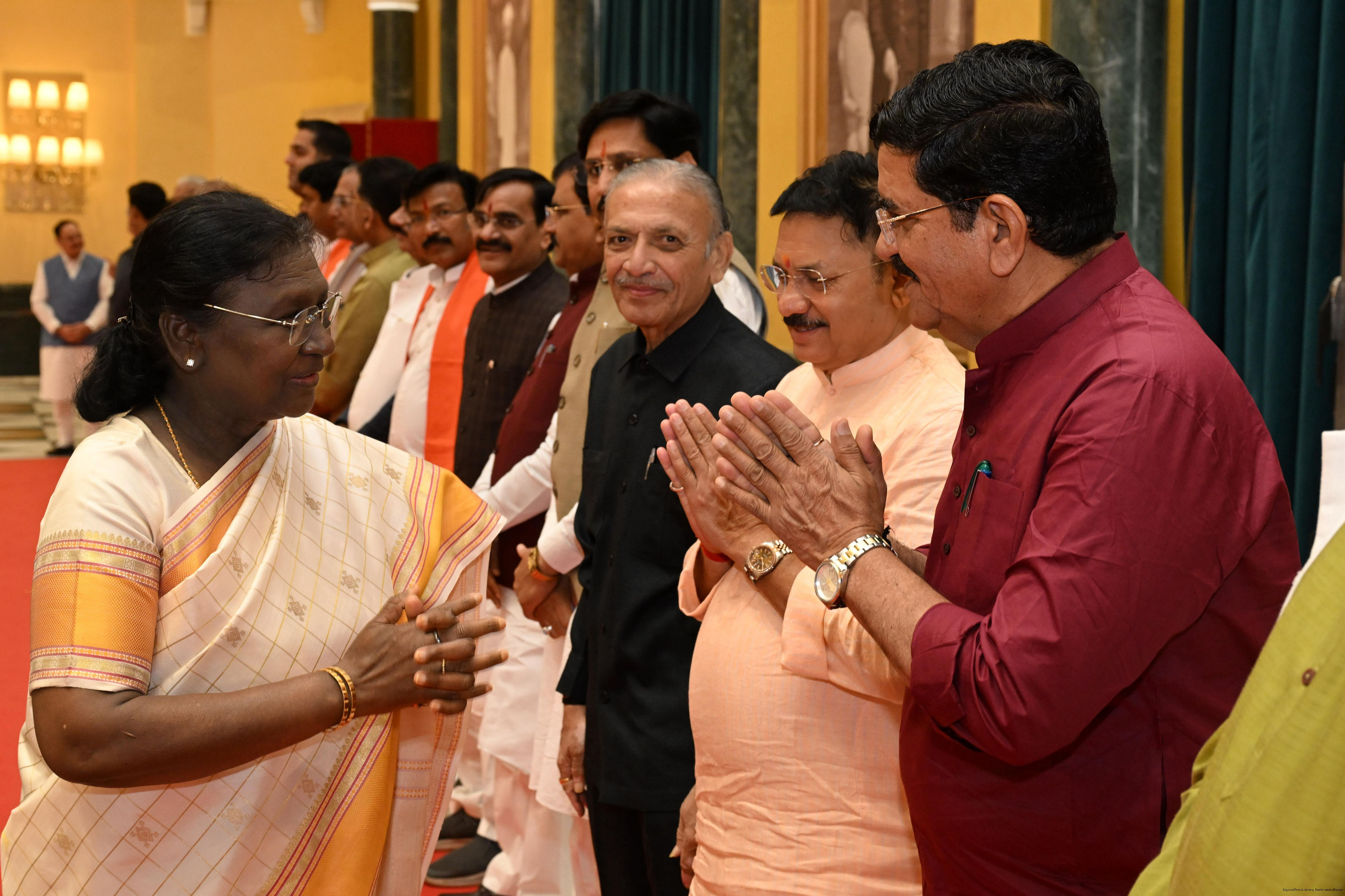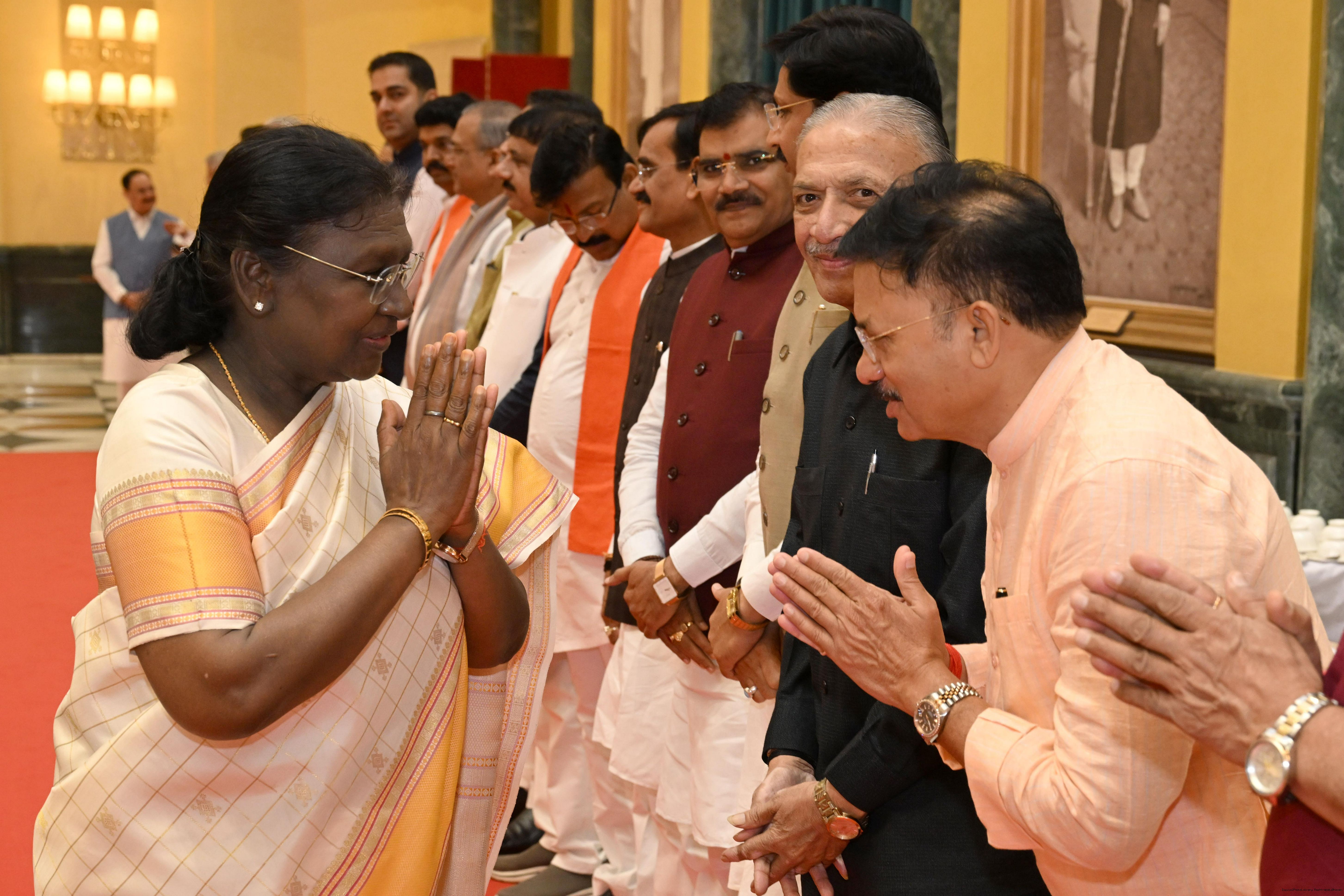 | Caption: | The President of India, Smt Droupadi Murmu hosted Members of Parliament from Uttarakhand, Maharashtra, Chandigarh, Ladakh, Gujarat, Madhya Pradesh, Delhi and nominated MPs of Rajya Sabha for breakfast at Rashtrapati Bhavan Cultural Centre on March 13, 2026 |