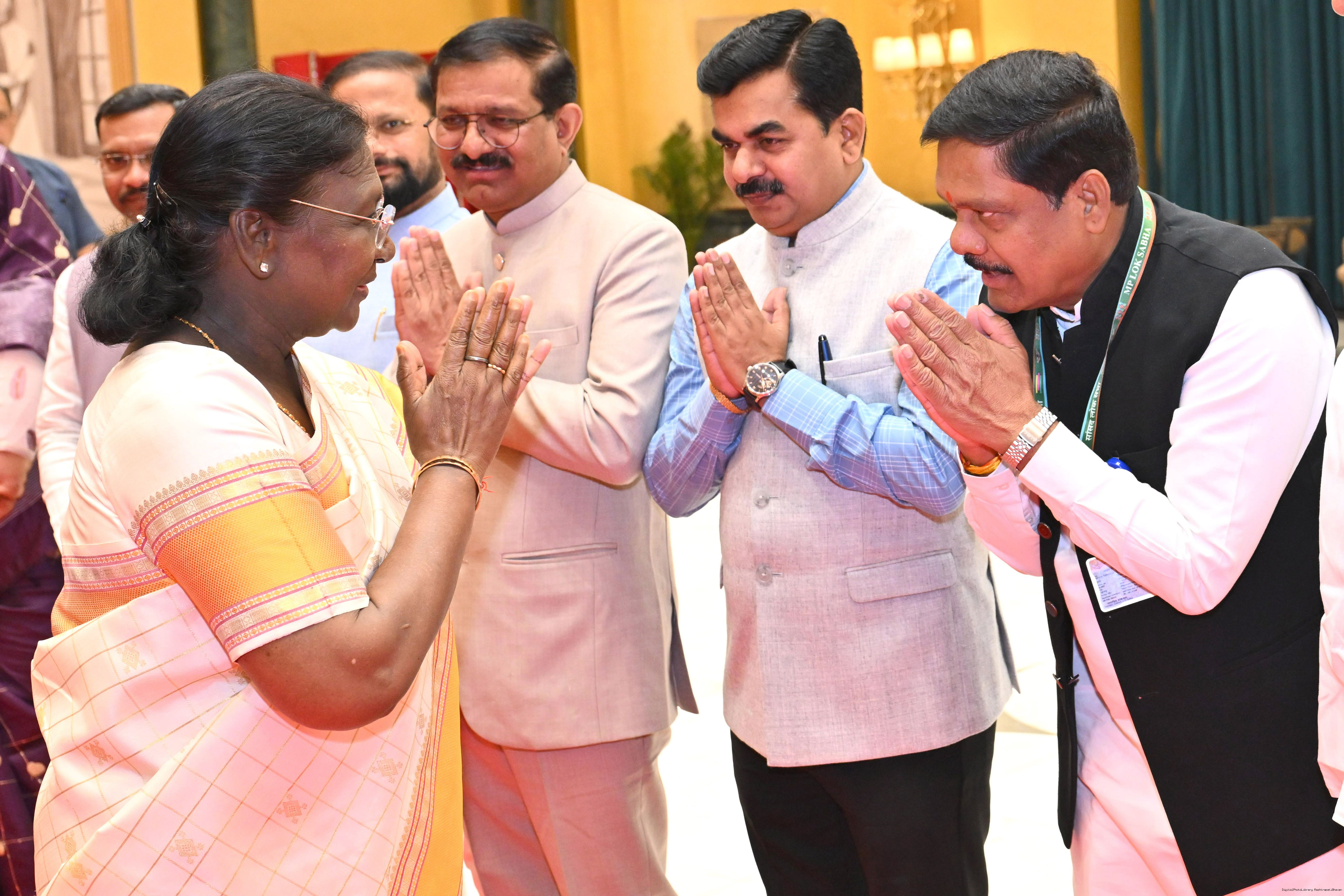 | Caption: | The President of India, Smt Droupadi Murmu hosted Members of Parliament from Uttarakhand, Maharashtra, Chandigarh, Ladakh, Gujarat, Madhya Pradesh, Delhi and nominated MPs of Rajya Sabha for breakfast at Rashtrapati Bhavan Cultural Centre on March 13, 2026 |