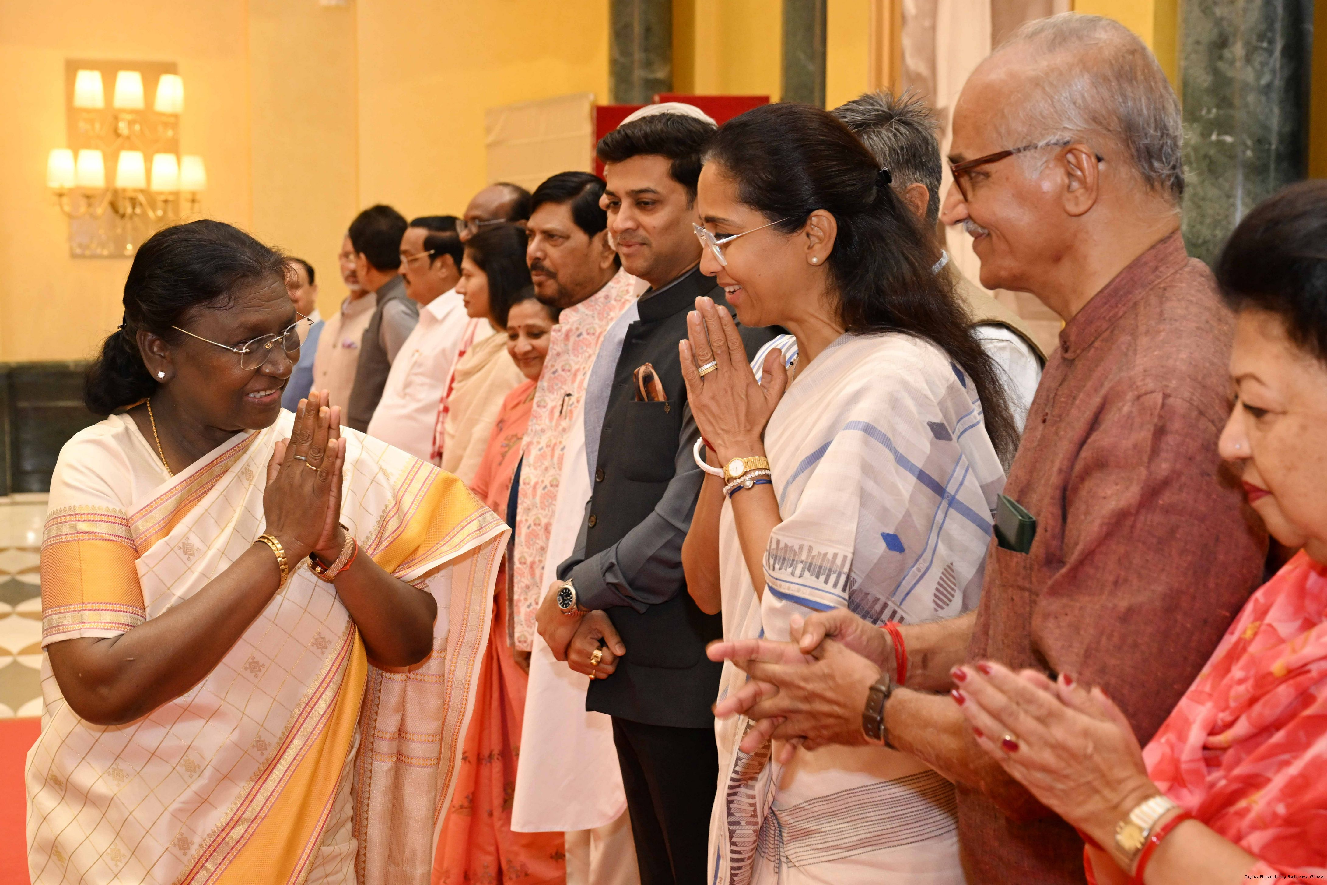 | Caption: | The President of India, Smt Droupadi Murmu hosted Members of Parliament from Uttarakhand, Maharashtra, Chandigarh, Ladakh, Gujarat, Madhya Pradesh, Delhi and nominated MPs of Rajya Sabha for breakfast at Rashtrapati Bhavan Cultural Centre on March 13, 2026 |