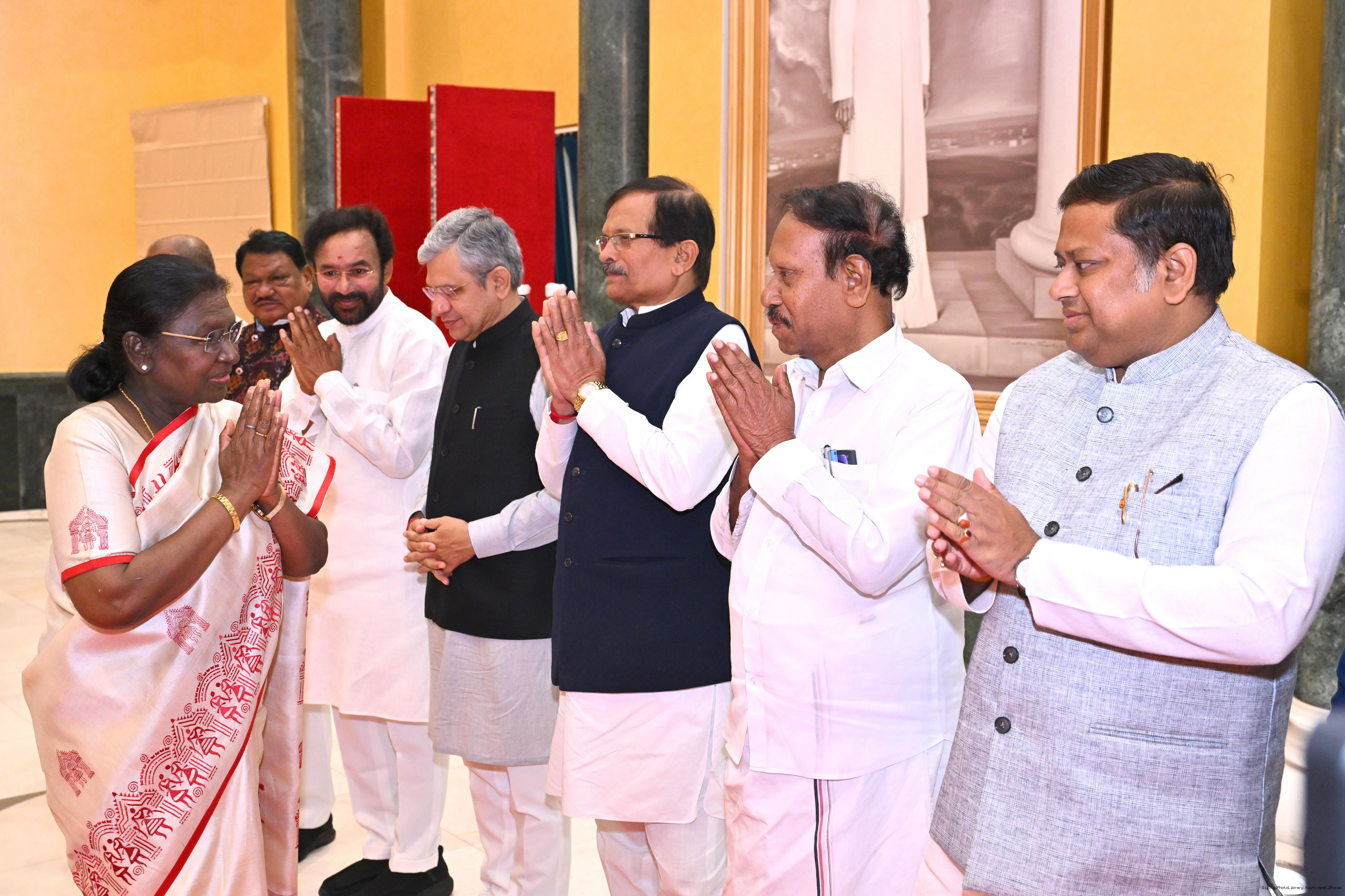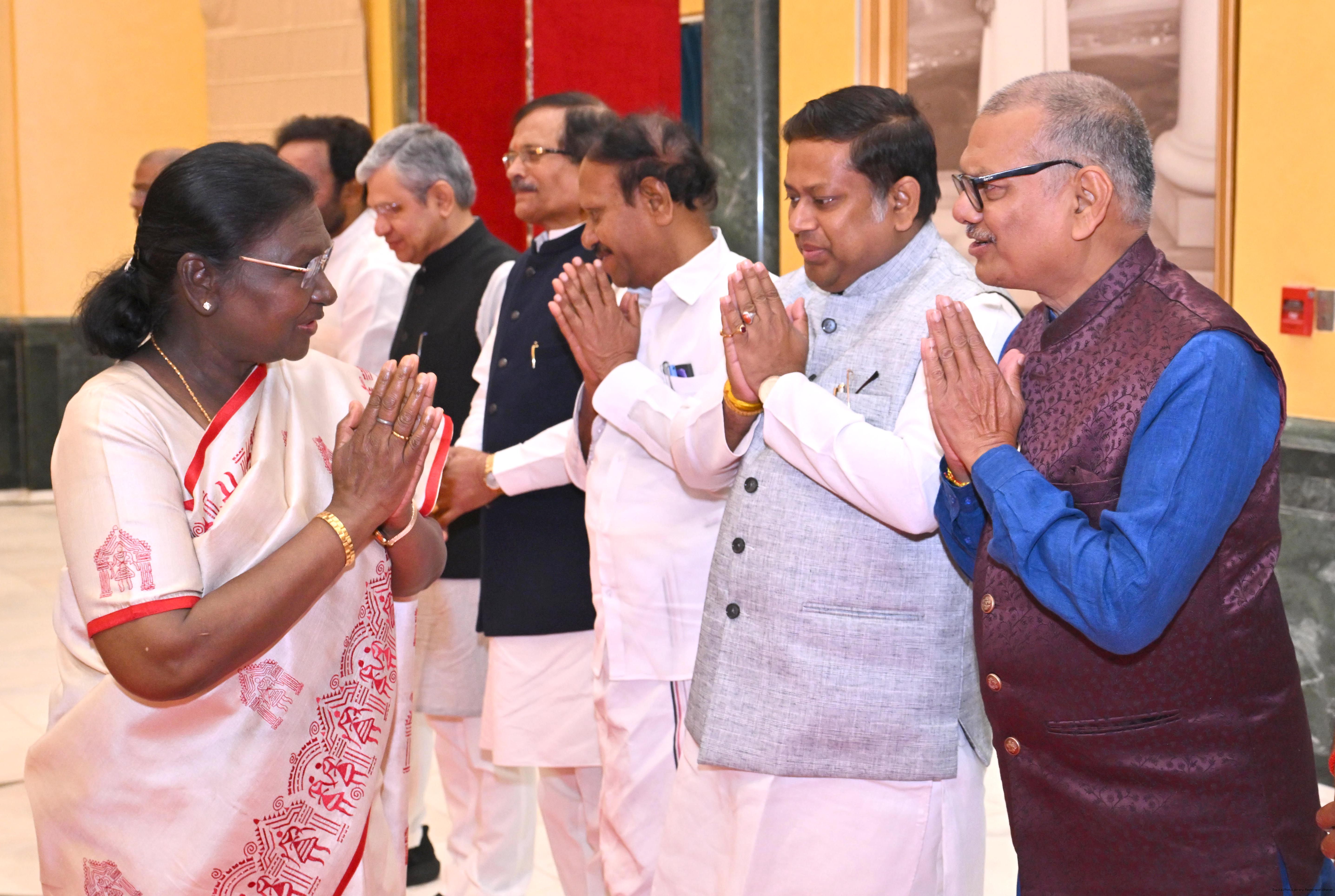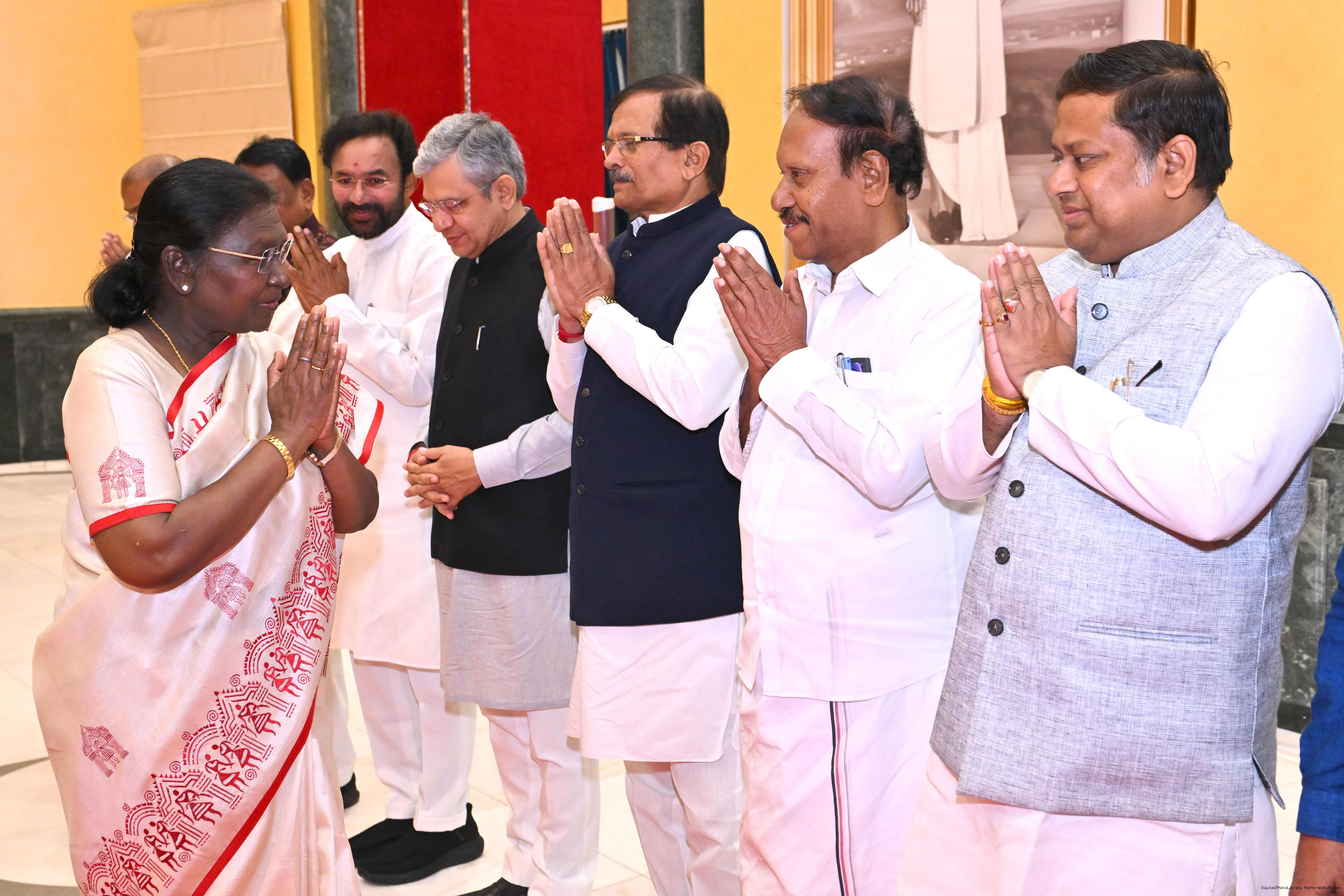 | Caption: | The President of India, Smt Droupadi Murmu hosted Members of Parliament from West Bengal, Tamil Nadu, Telangana, Odisha, Goa, Puducherry, Andaman Nicobar Islands, Dadra Nagar Haveli and Daman Diu and Lakshadweep for breakfast at Rashtrapati Bhavan Cultural Centre on March 16, 2026 |