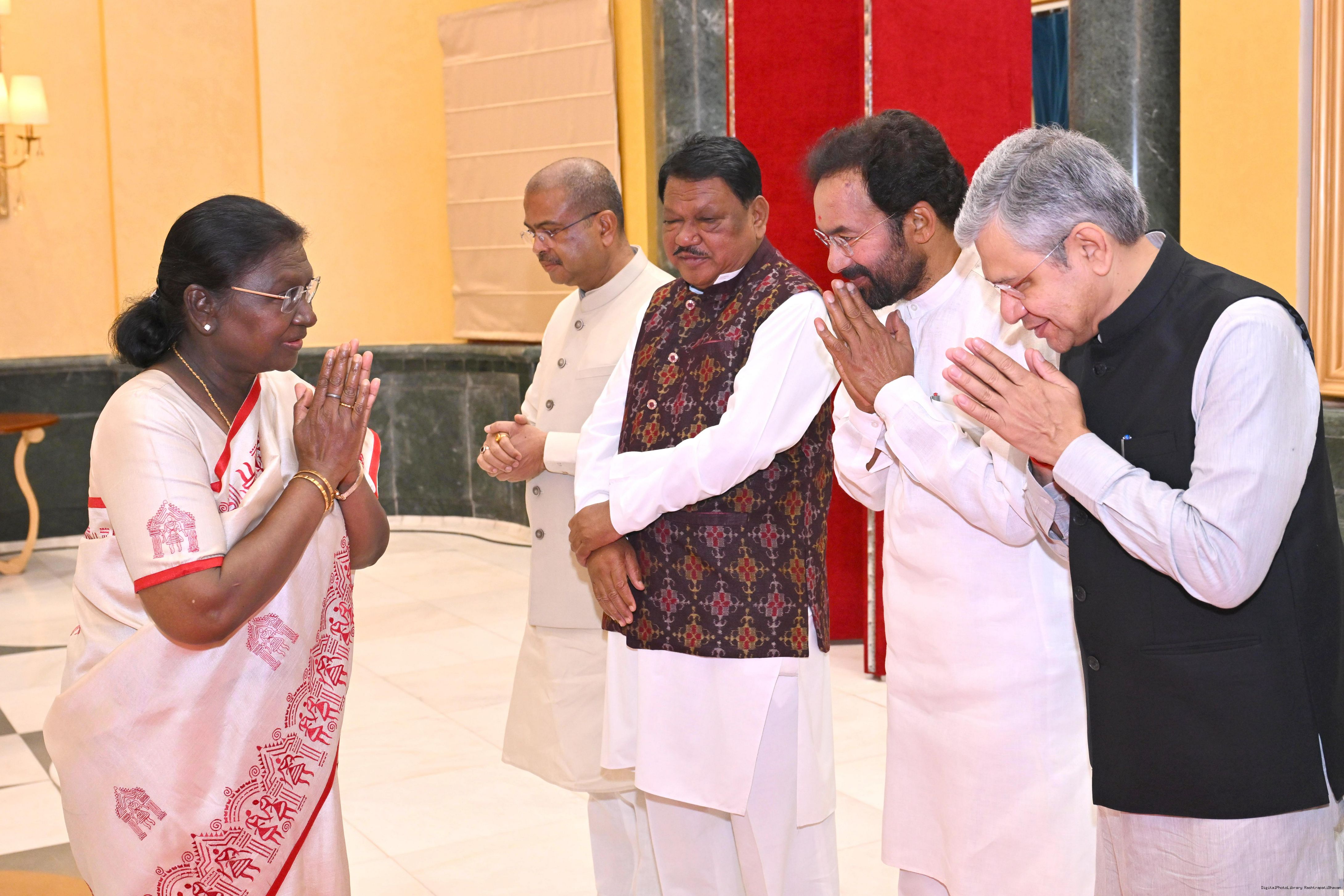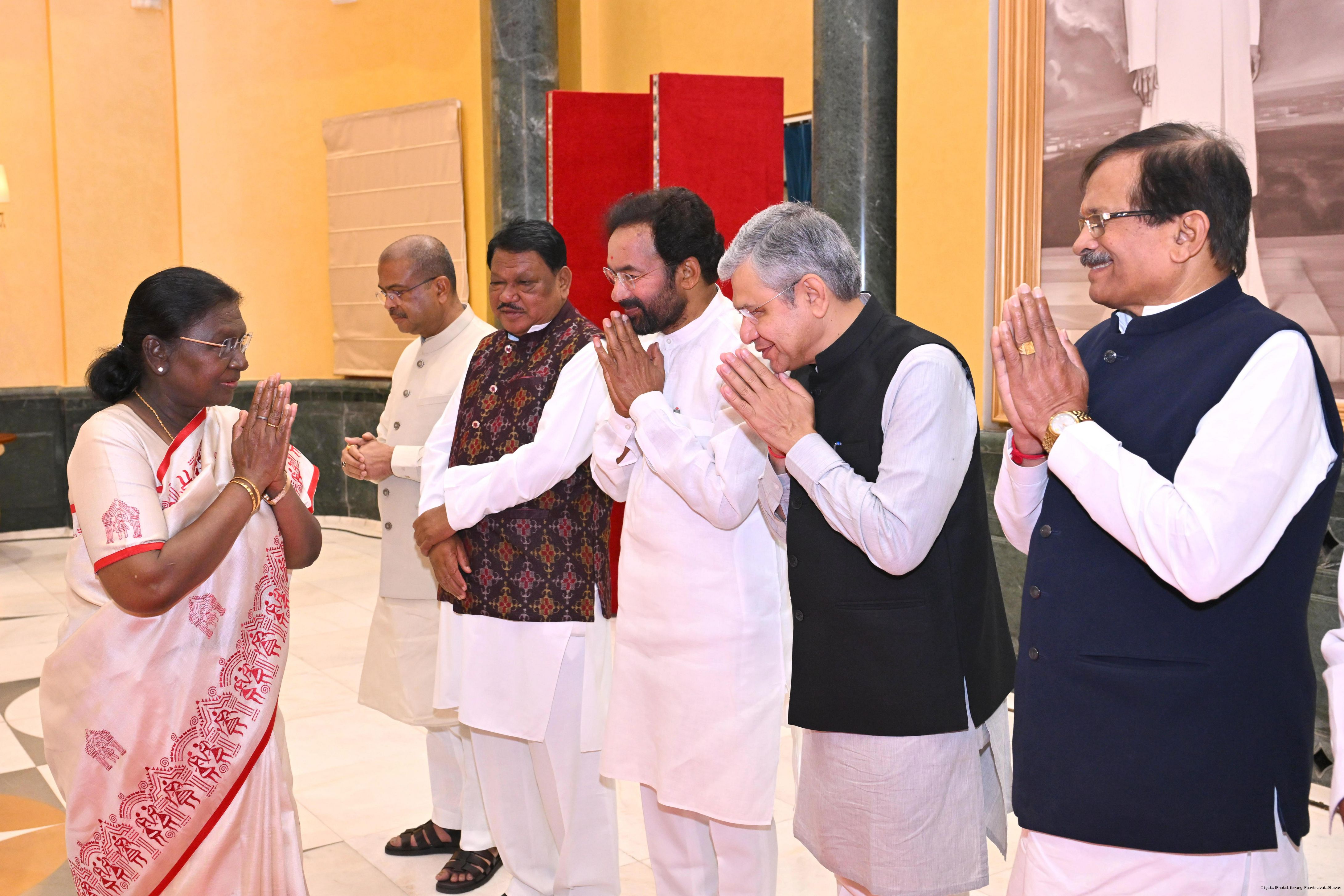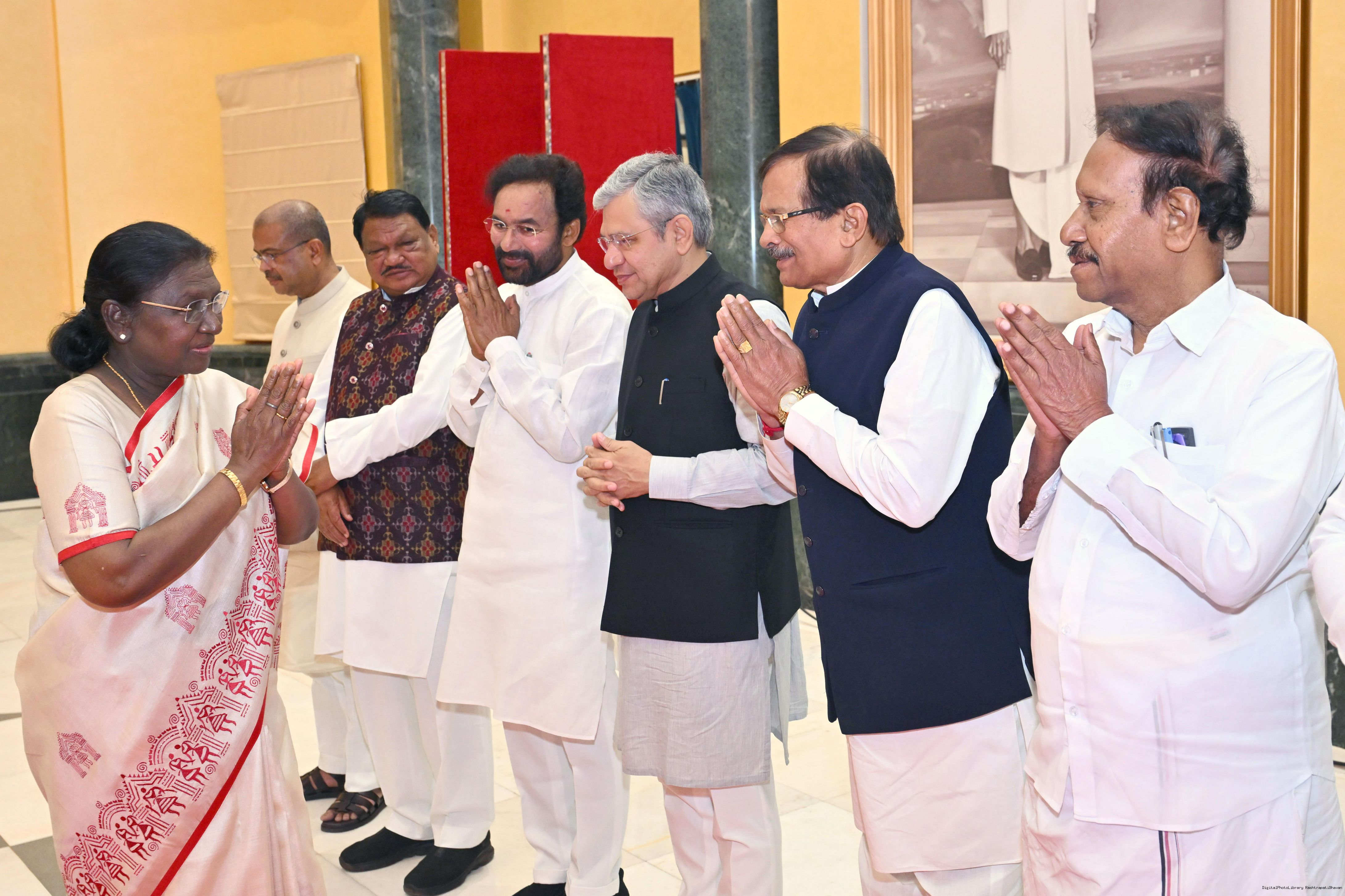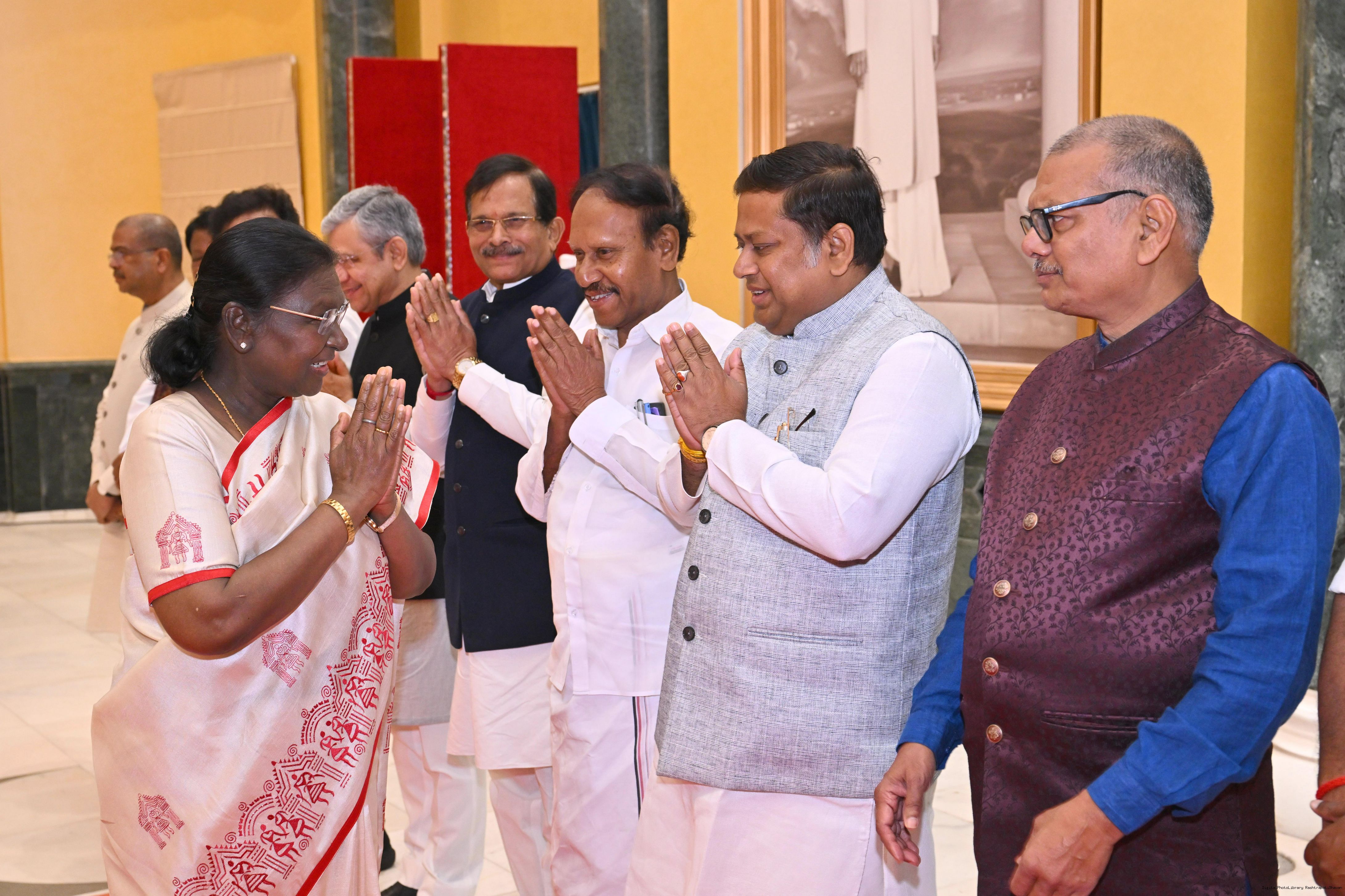 | Caption: | The President of India, Smt Droupadi Murmu hosted Members of Parliament from West Bengal, Tamil Nadu, Telangana, Odisha, Goa, Puducherry, Andaman Nicobar Islands, Dadra Nagar Haveli and Daman Diu and Lakshadweep for breakfast at Rashtrapati Bhavan Cultural Centre on March 16, 2026 |