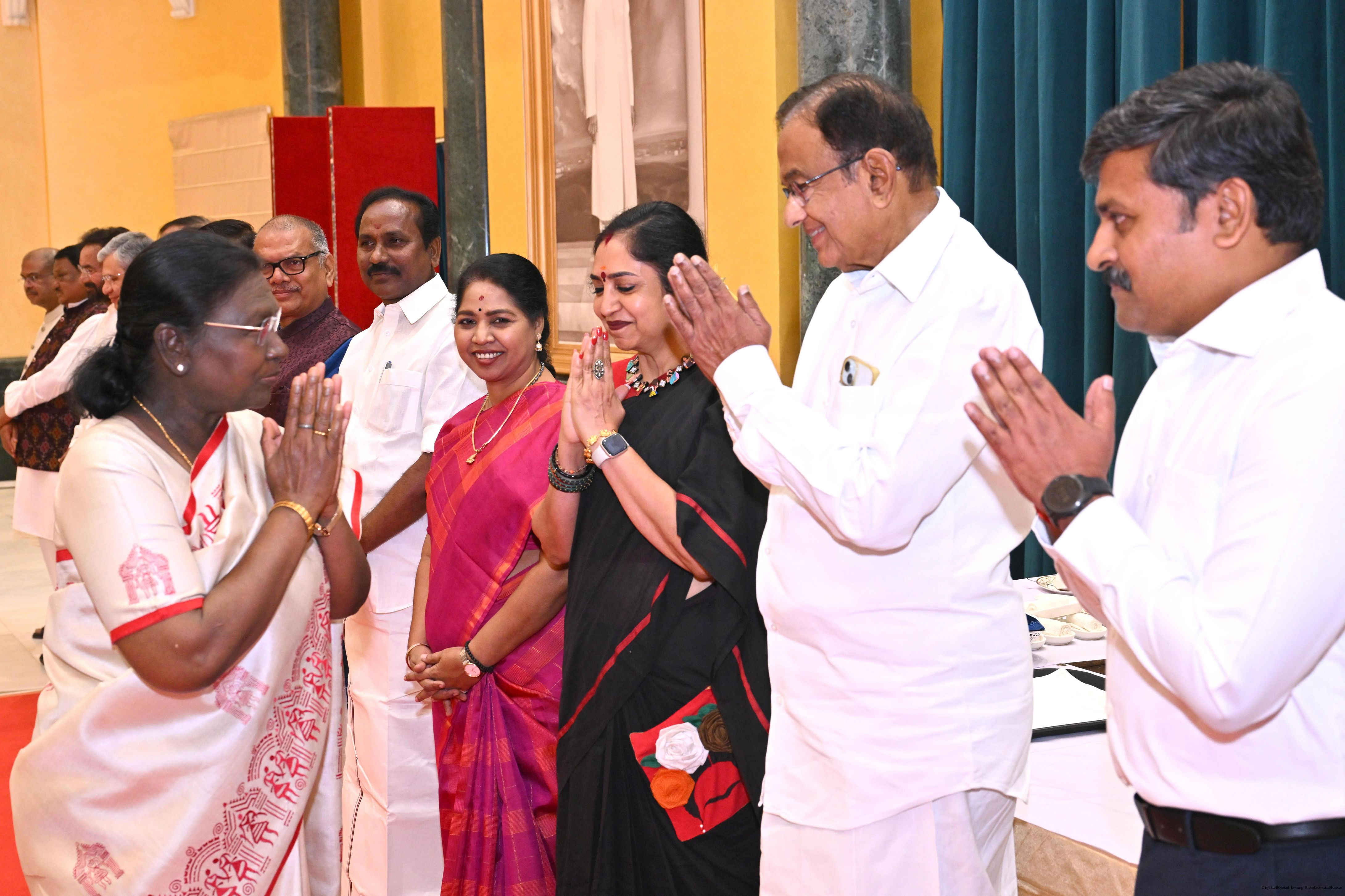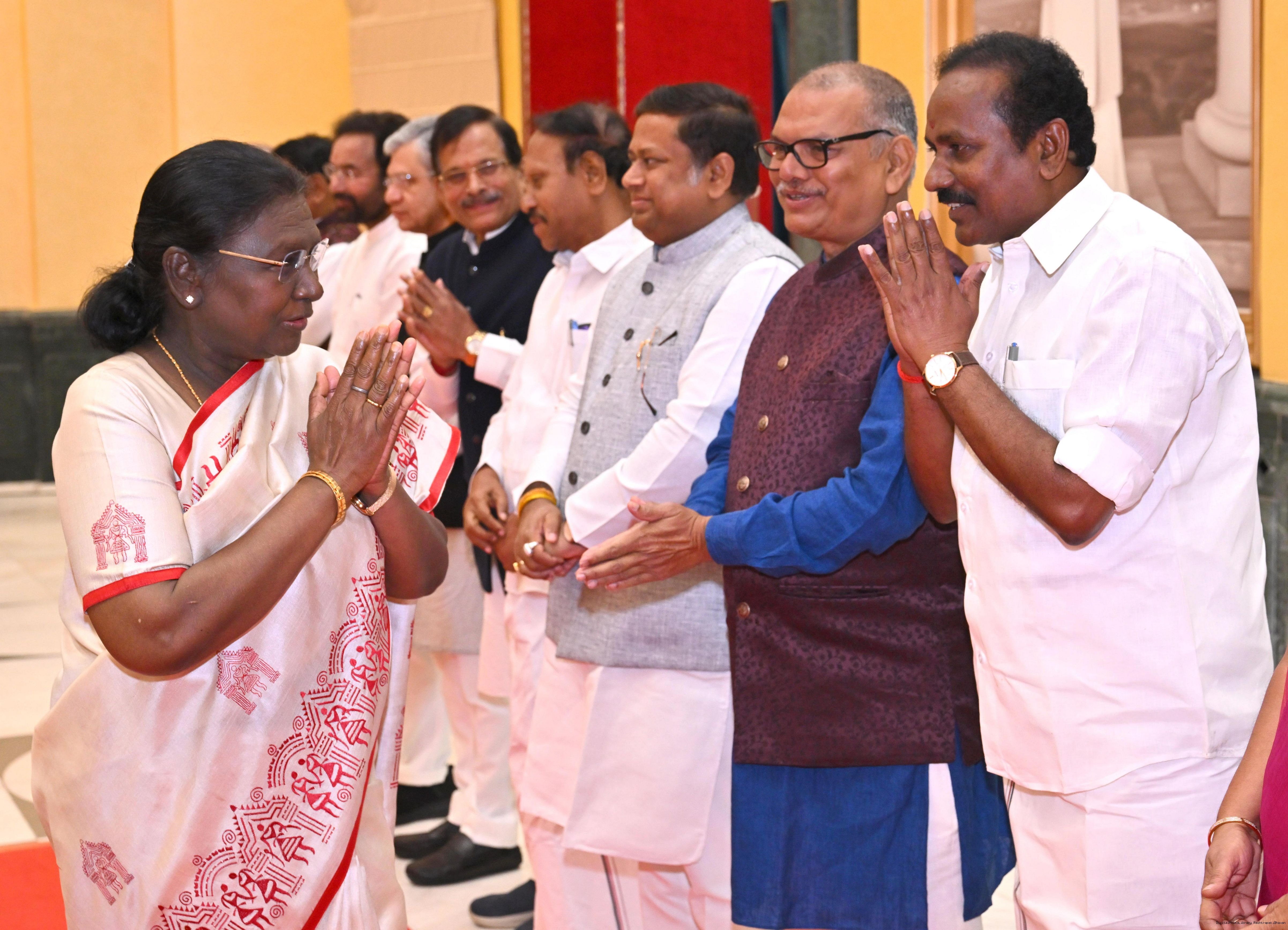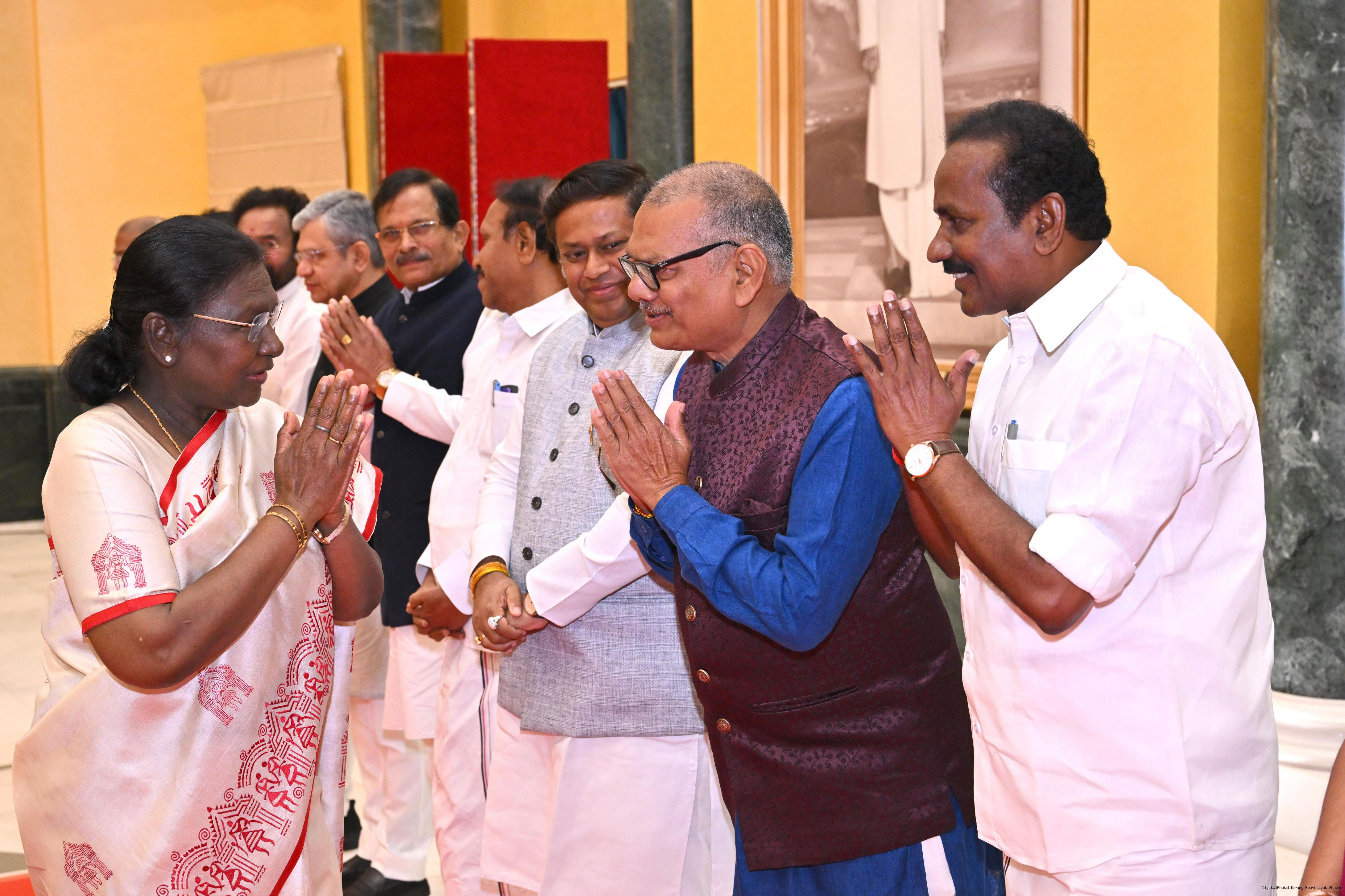 | Caption: | The President of India, Smt Droupadi Murmu hosted Members of Parliament from West Bengal, Tamil Nadu, Telangana, Odisha, Goa, Puducherry, Andaman Nicobar Islands, Dadra Nagar Haveli and Daman Diu and Lakshadweep for breakfast at Rashtrapati Bhavan Cultural Centre on March 16, 2026 |