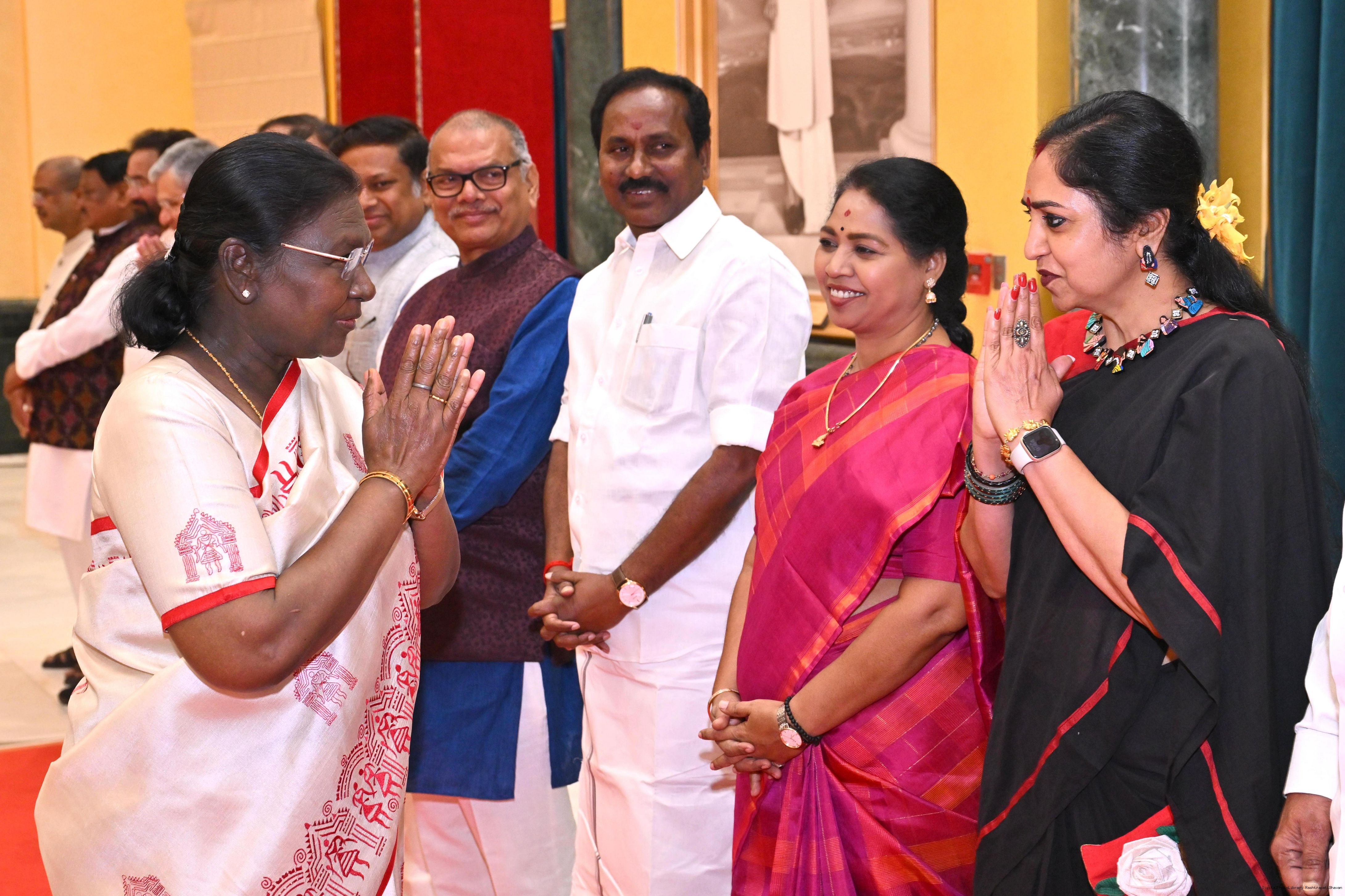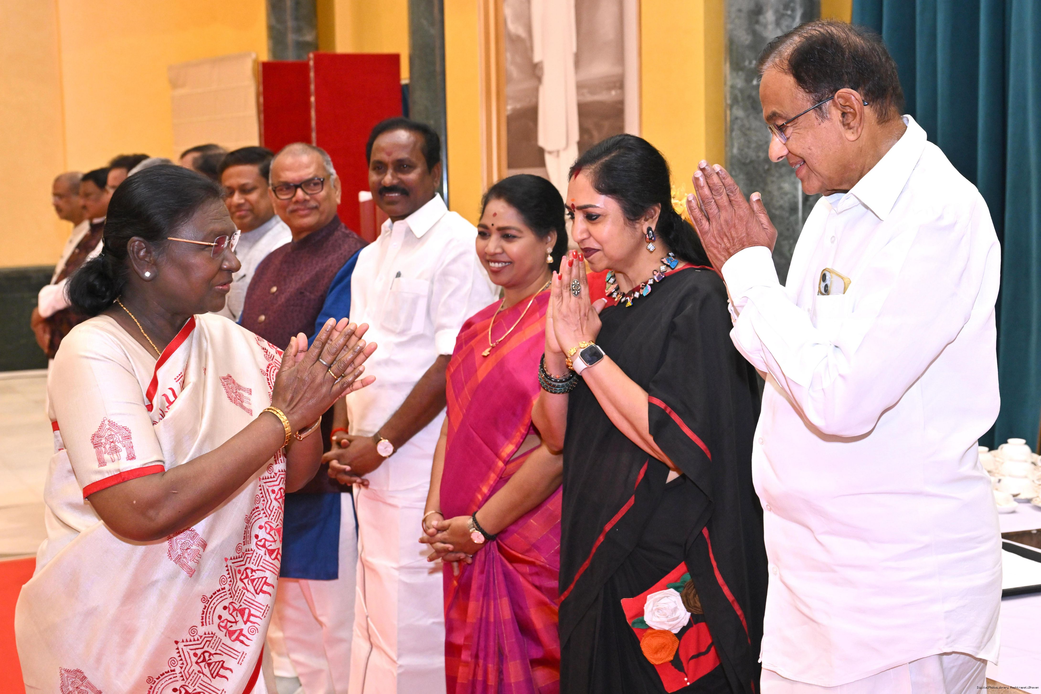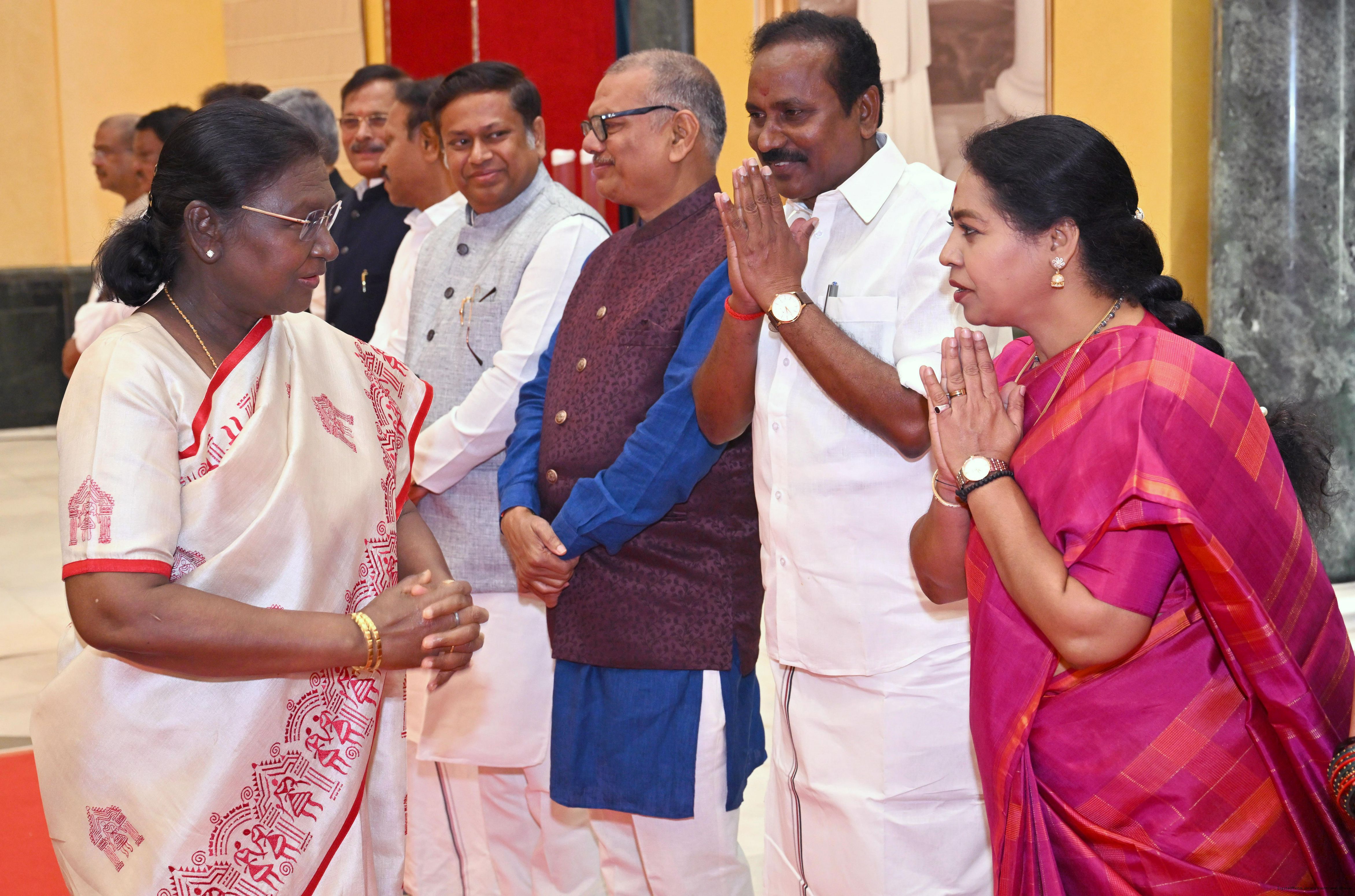 | Caption: | The President of India, Smt Droupadi Murmu hosted Members of Parliament from West Bengal, Tamil Nadu, Telangana, Odisha, Goa, Puducherry, Andaman Nicobar Islands, Dadra Nagar Haveli and Daman Diu and Lakshadweep for breakfast at Rashtrapati Bhavan Cultural Centre on March 16, 2026 |