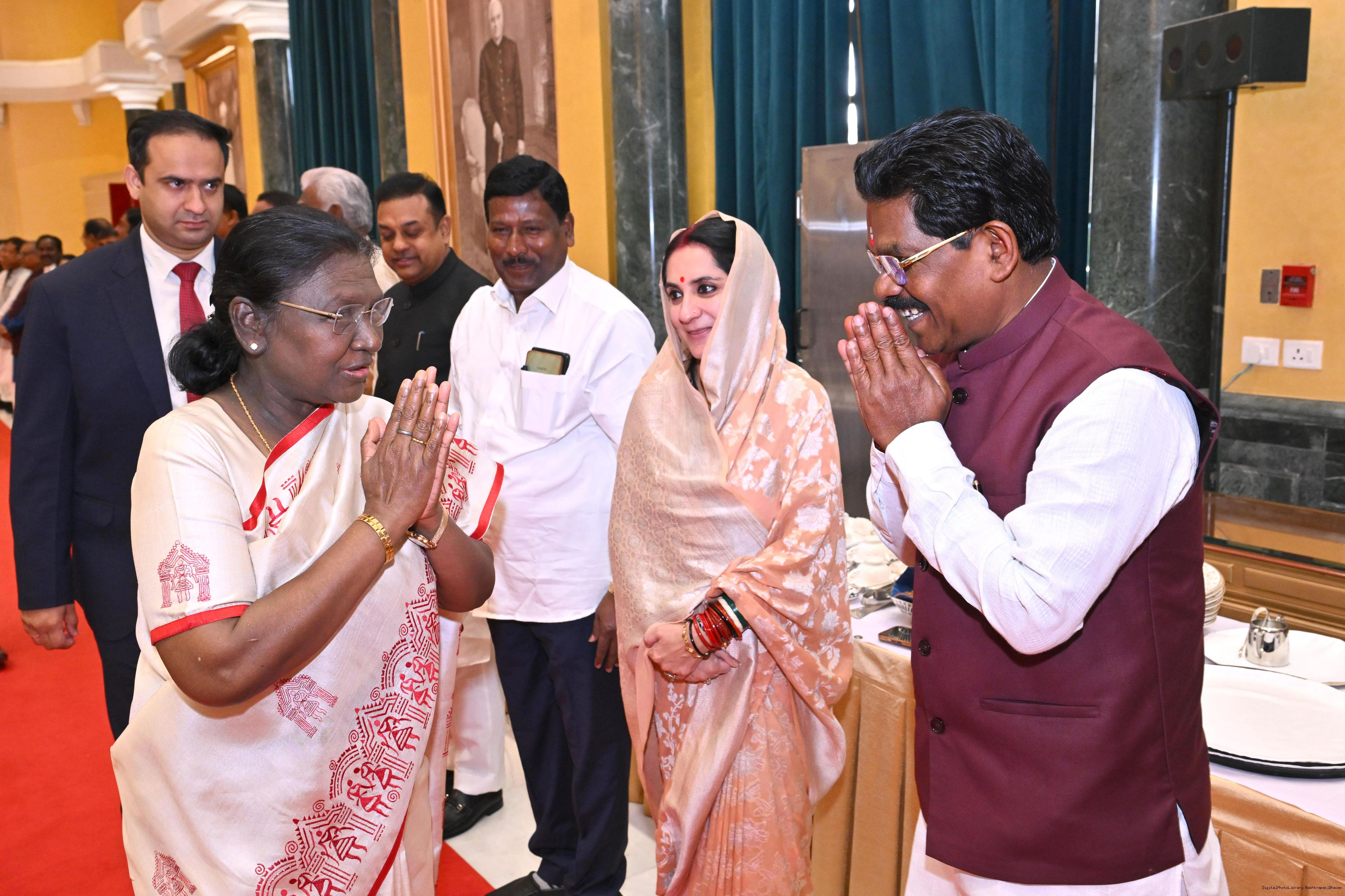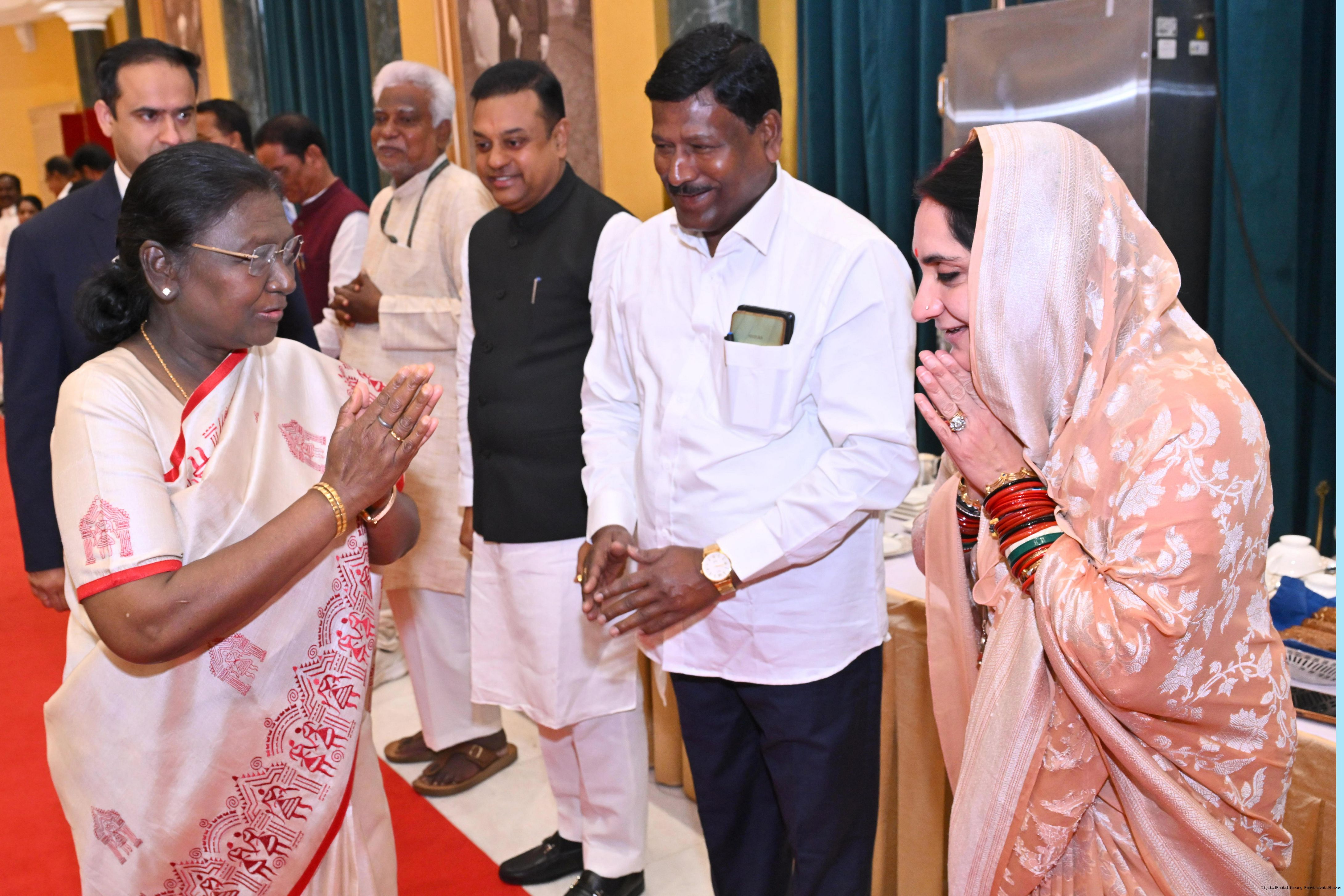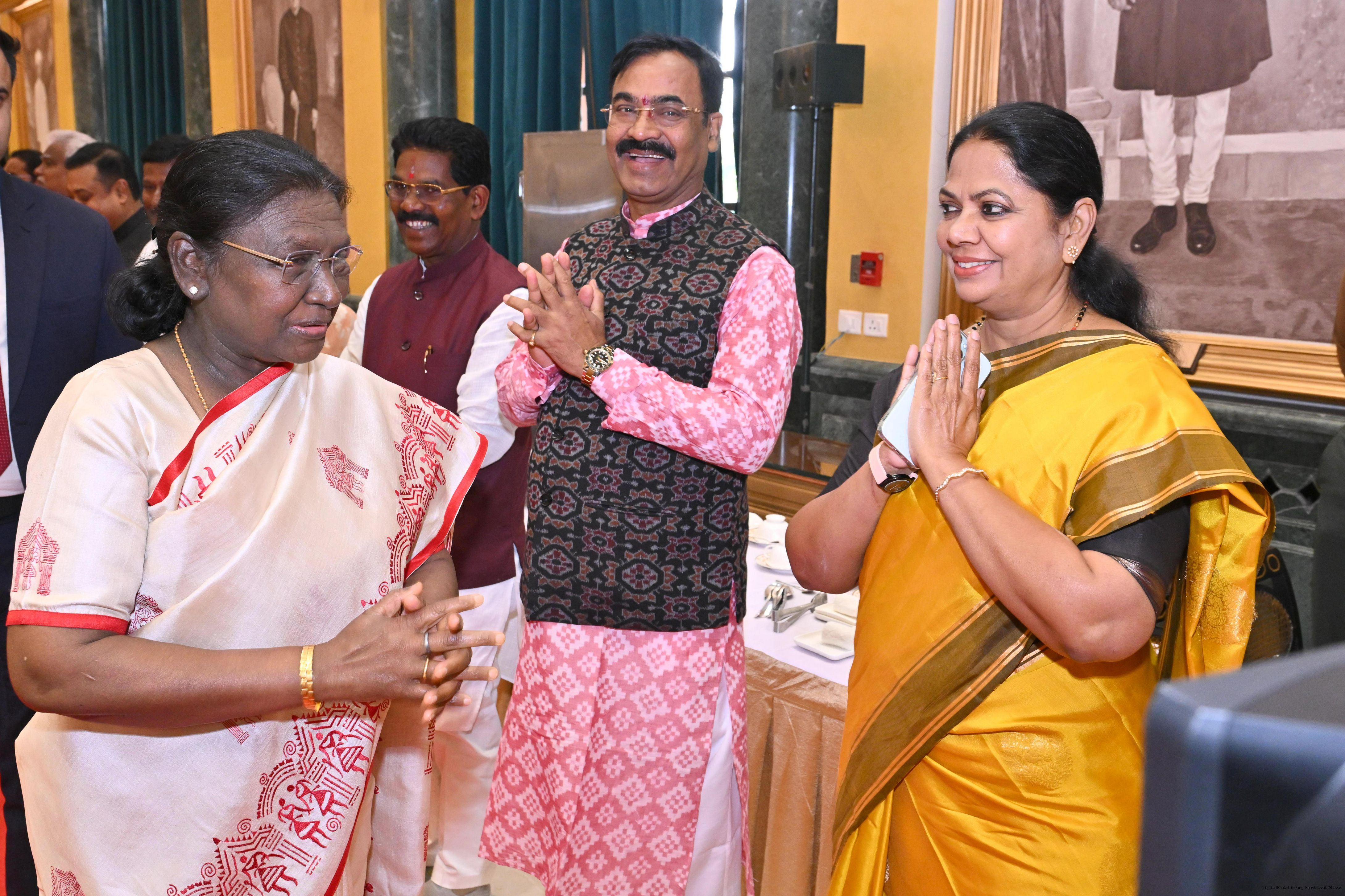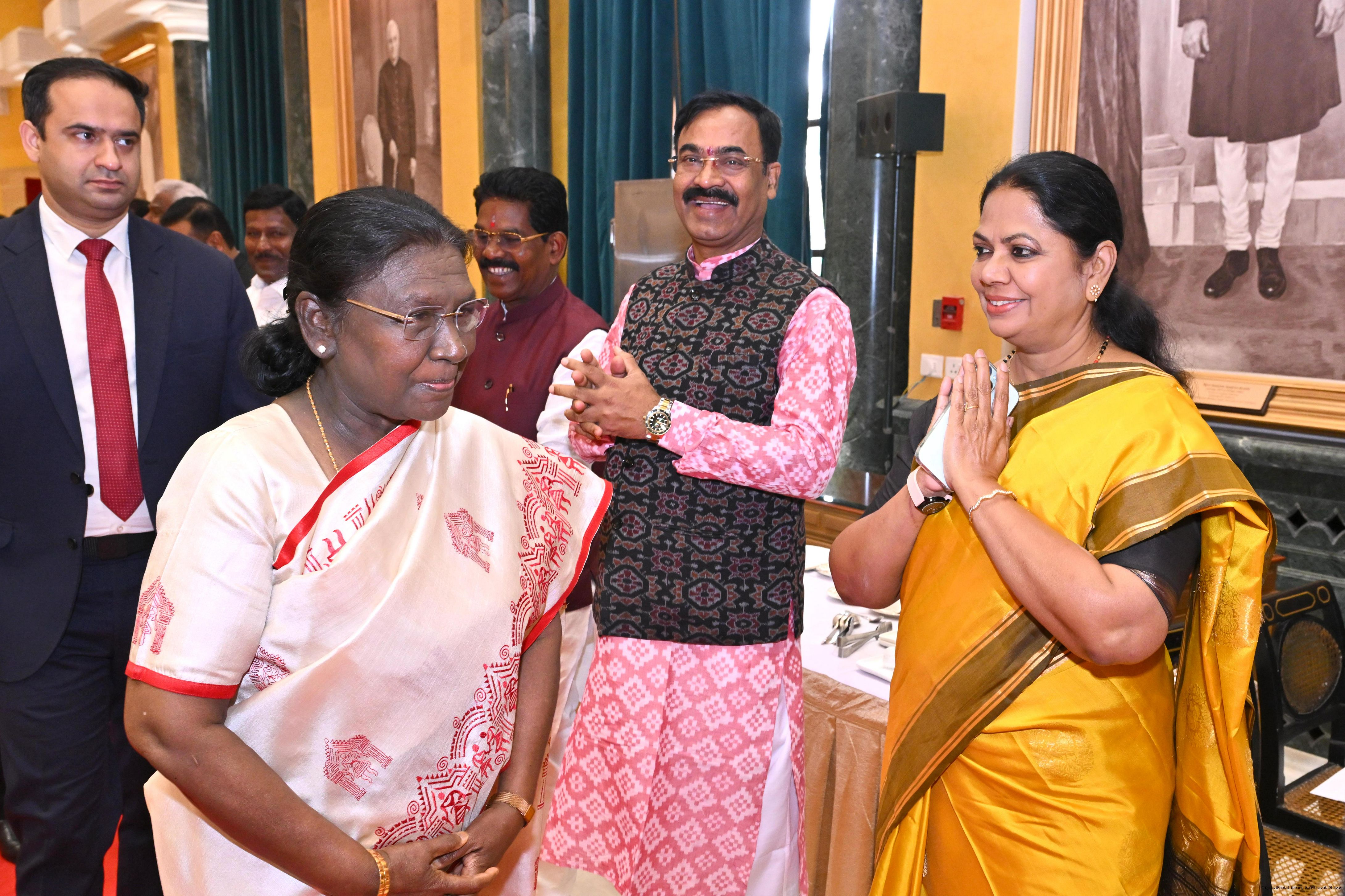 | Caption: | The President of India, Smt Droupadi Murmu hosted Members of Parliament from West Bengal, Tamil Nadu, Telangana, Odisha, Goa, Puducherry, Andaman Nicobar Islands, Dadra Nagar Haveli and Daman Diu and Lakshadweep for breakfast at Rashtrapati Bhavan Cultural Centre on March 16, 2026 |