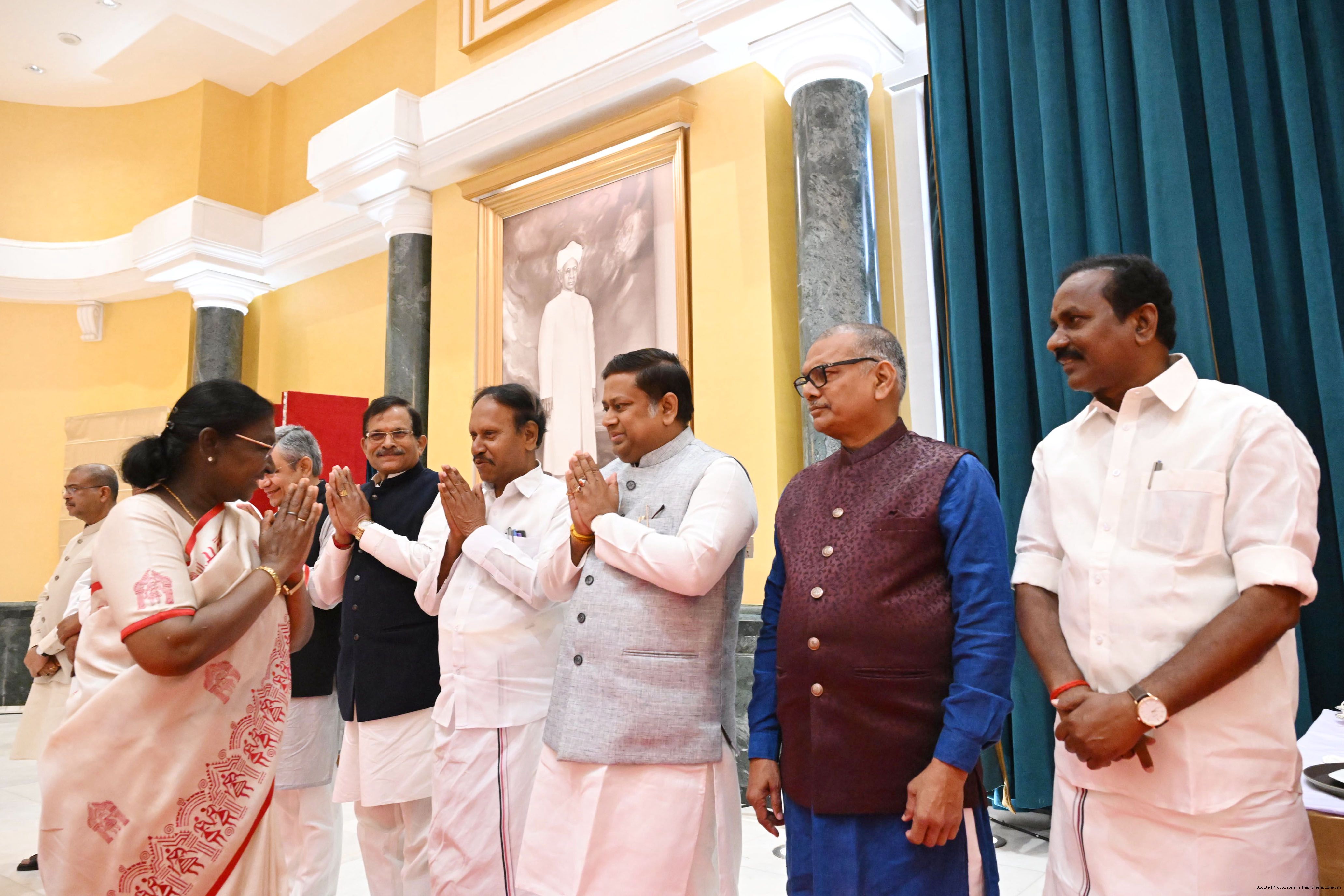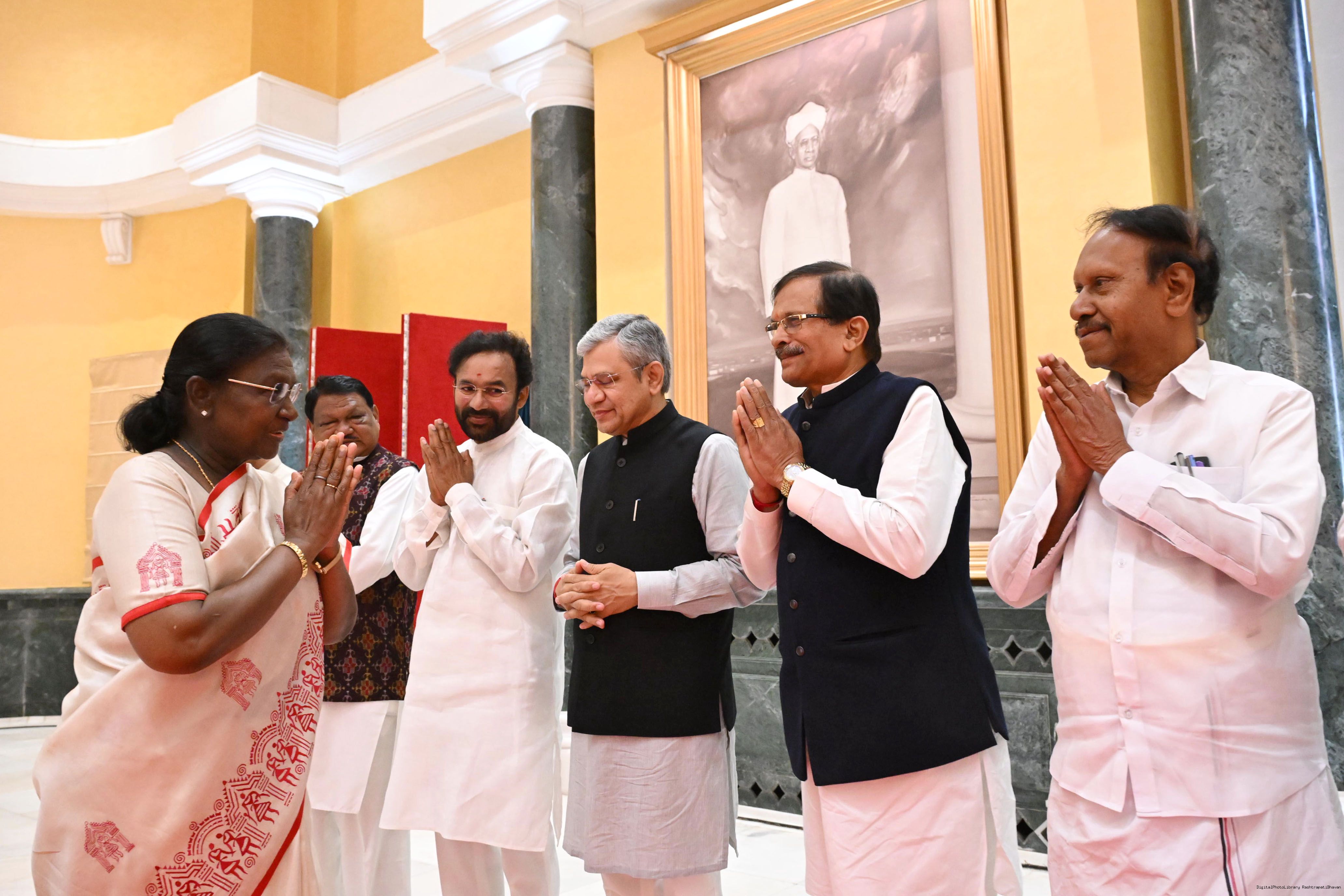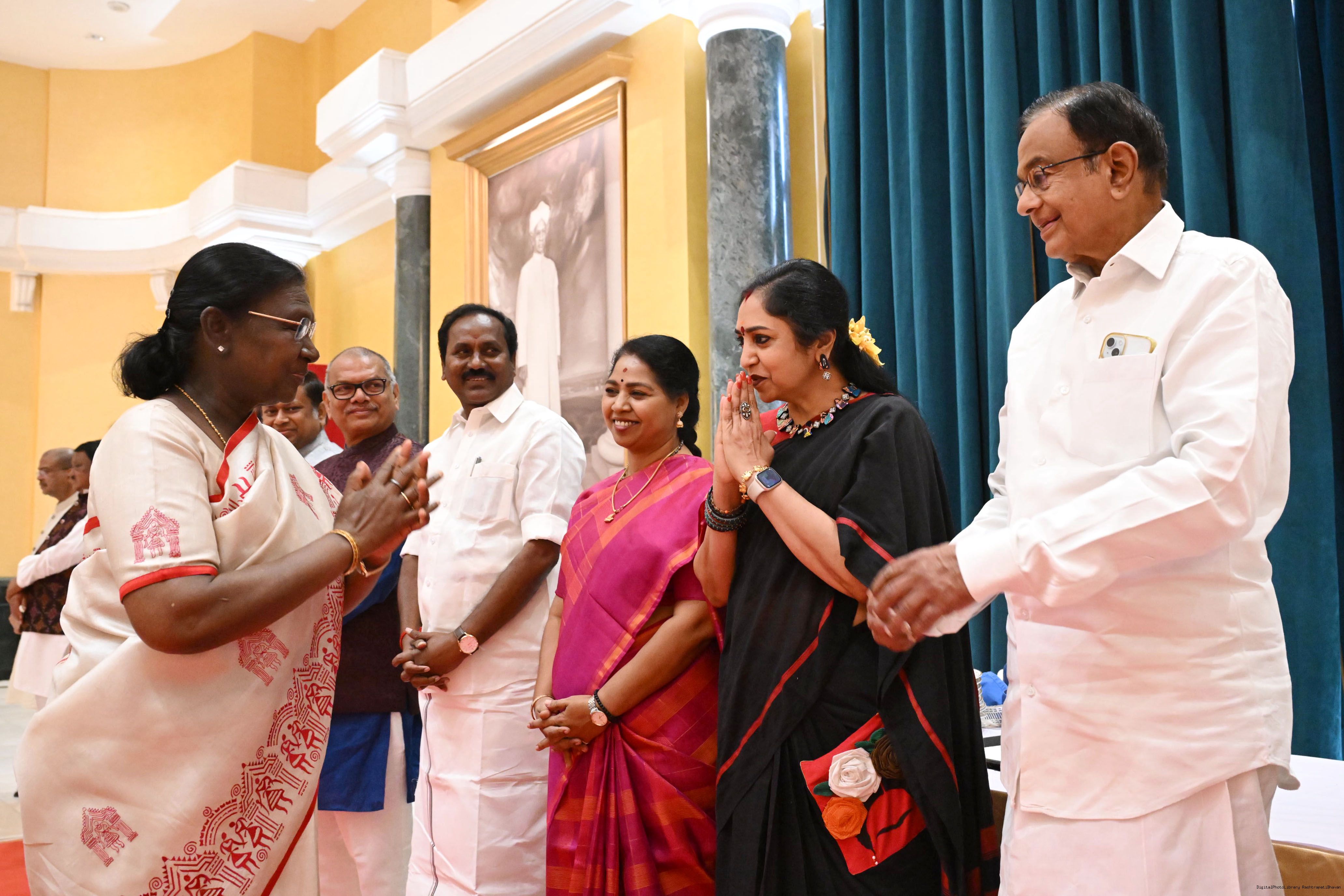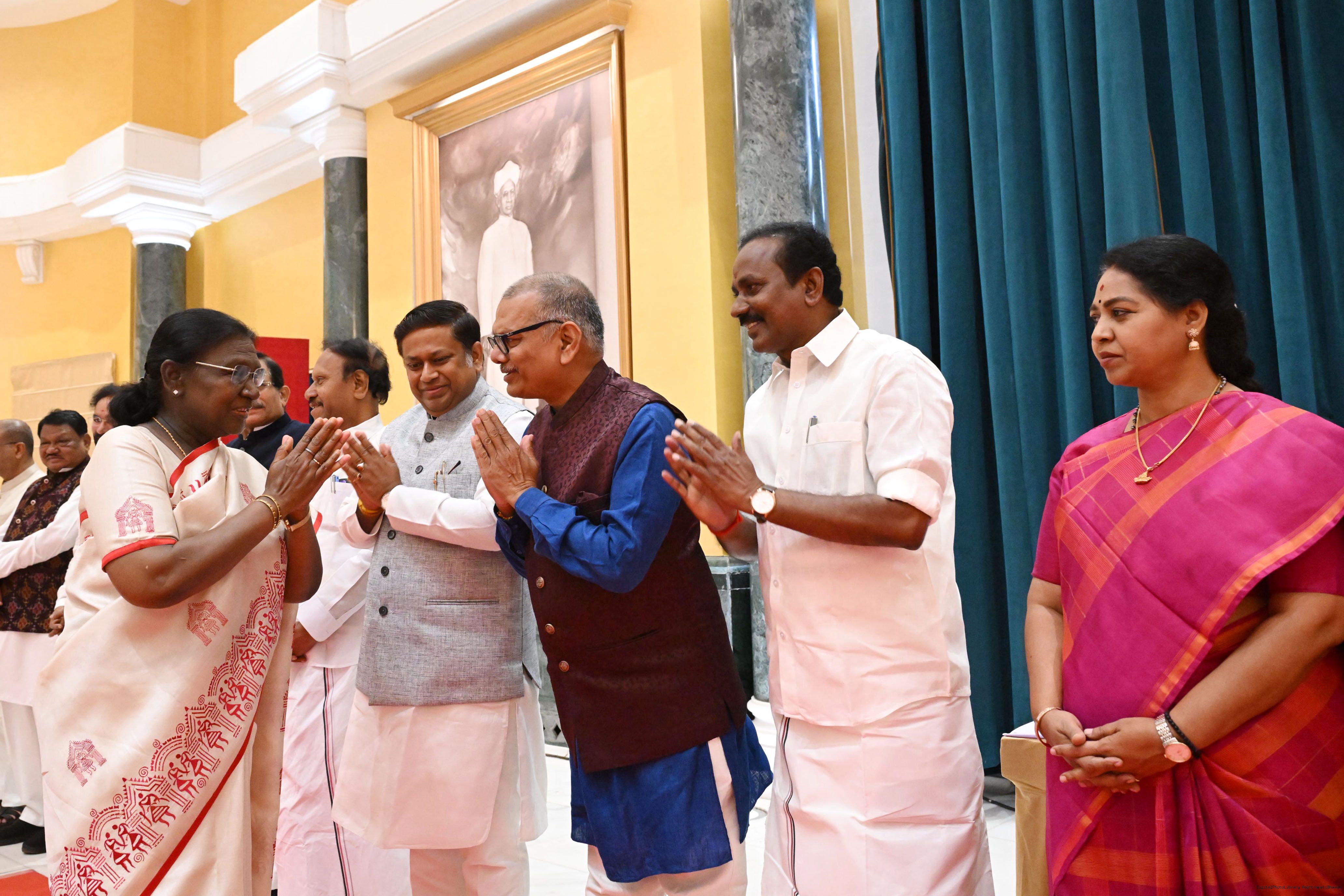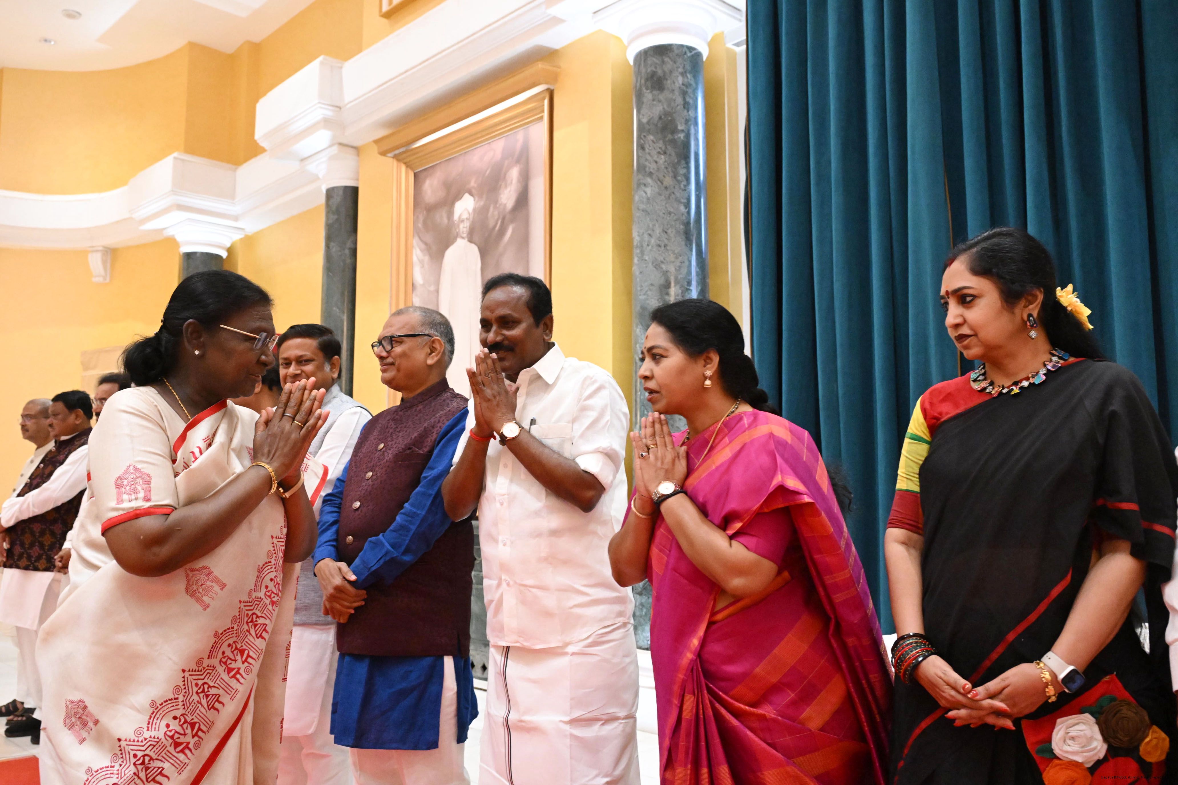 | Caption: | The President of India, Smt Droupadi Murmu hosted Members of Parliament from West Bengal, Tamil Nadu, Telangana, Odisha, Goa, Puducherry, Andaman Nicobar Islands, Dadra Nagar Haveli and Daman Diu and Lakshadweep for breakfast at Rashtrapati Bhavan Cultural Centre on March 16, 2026 |