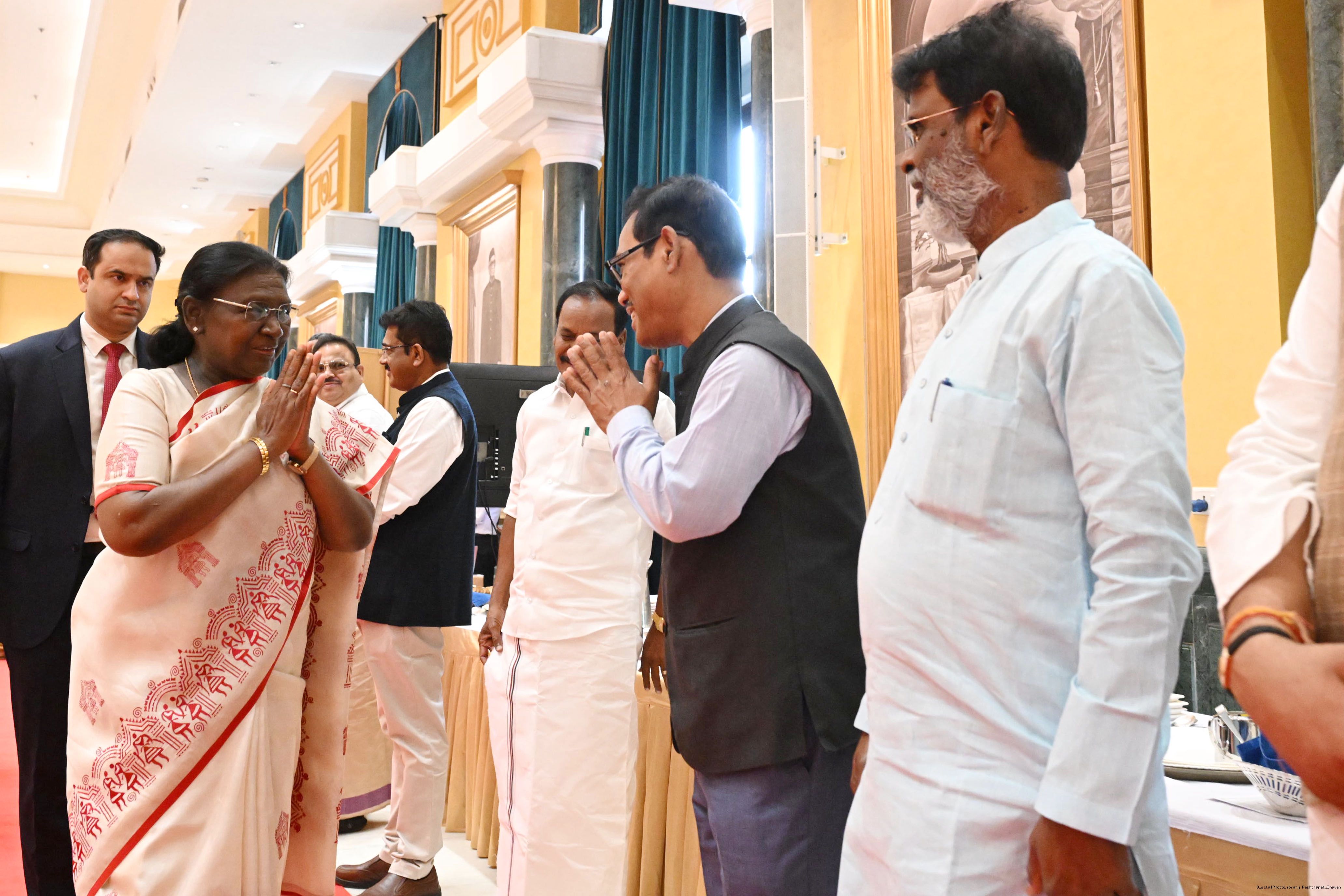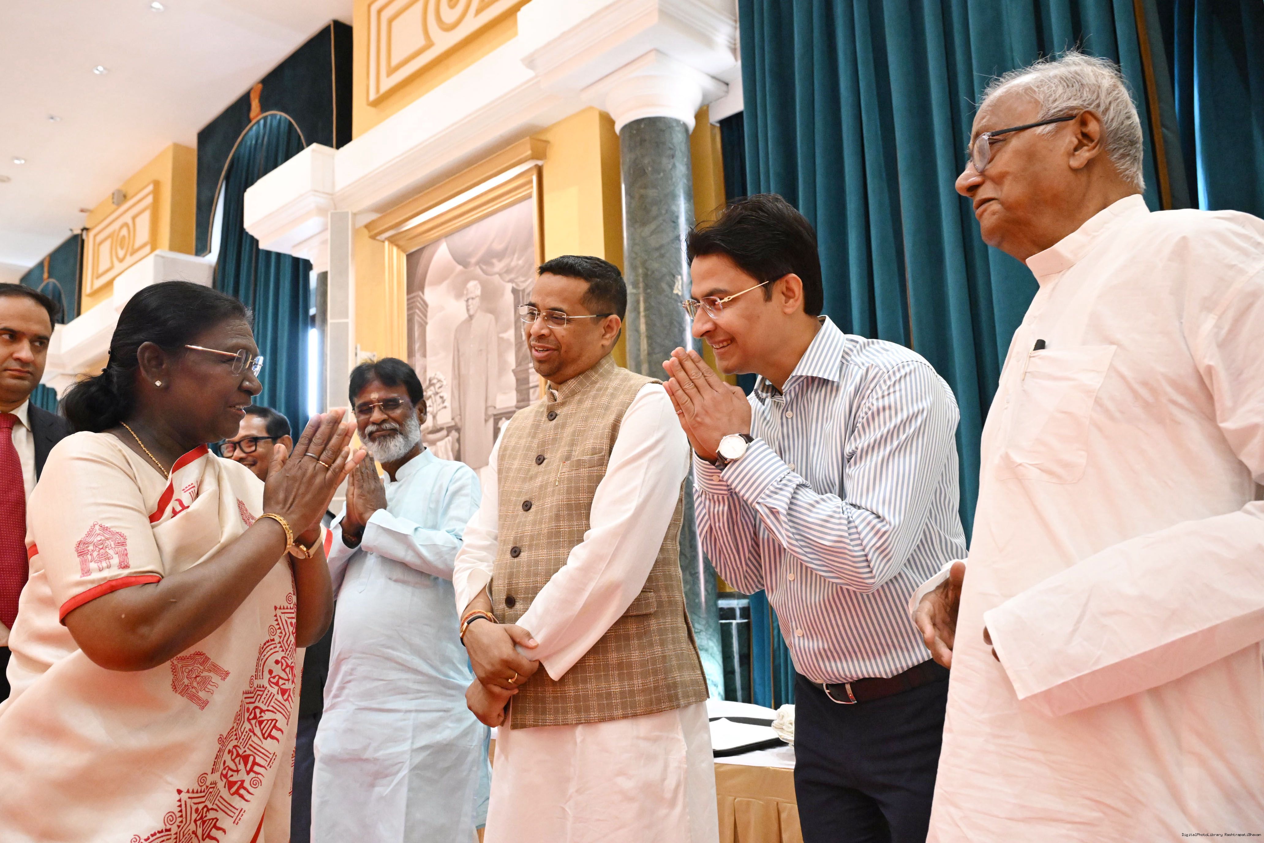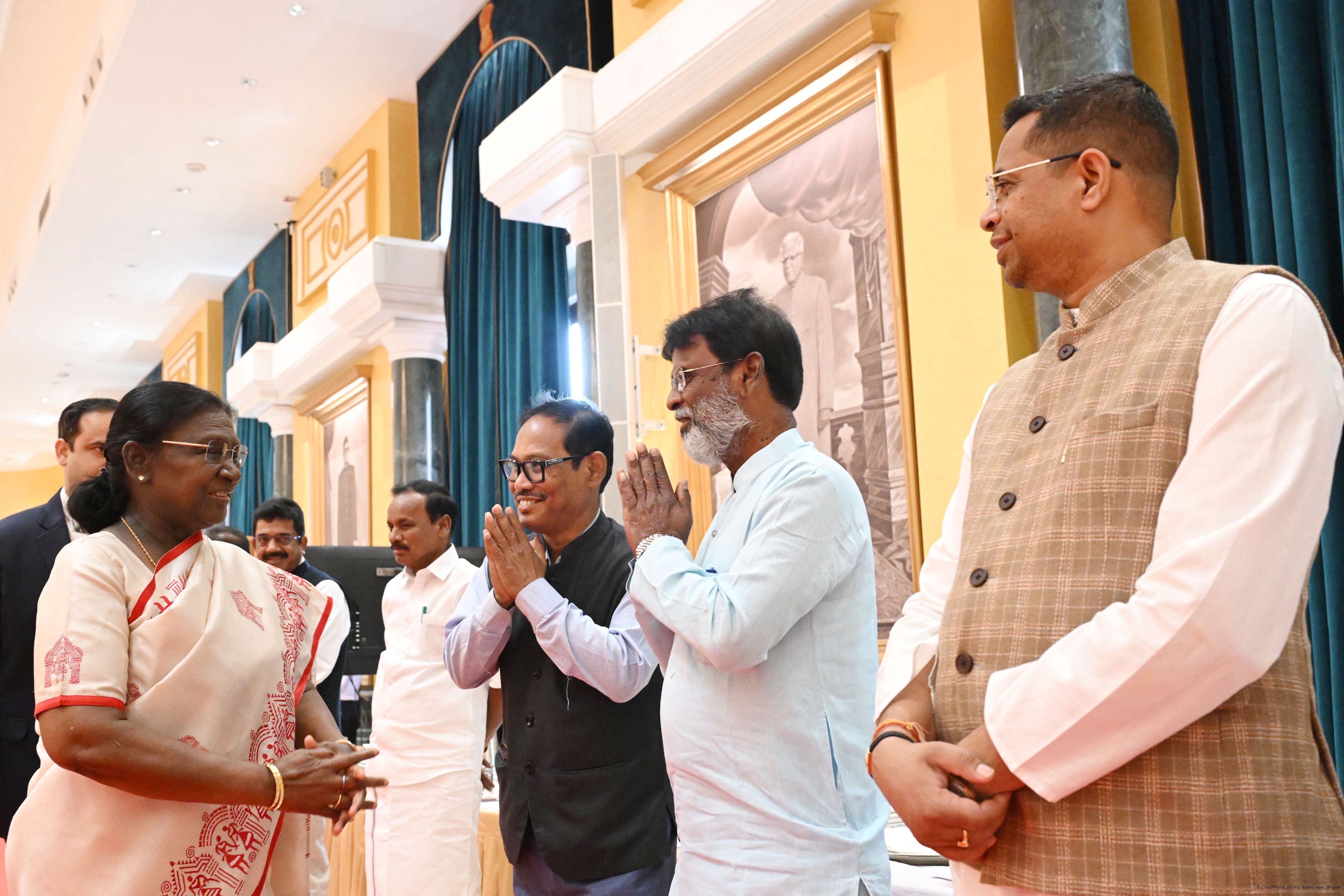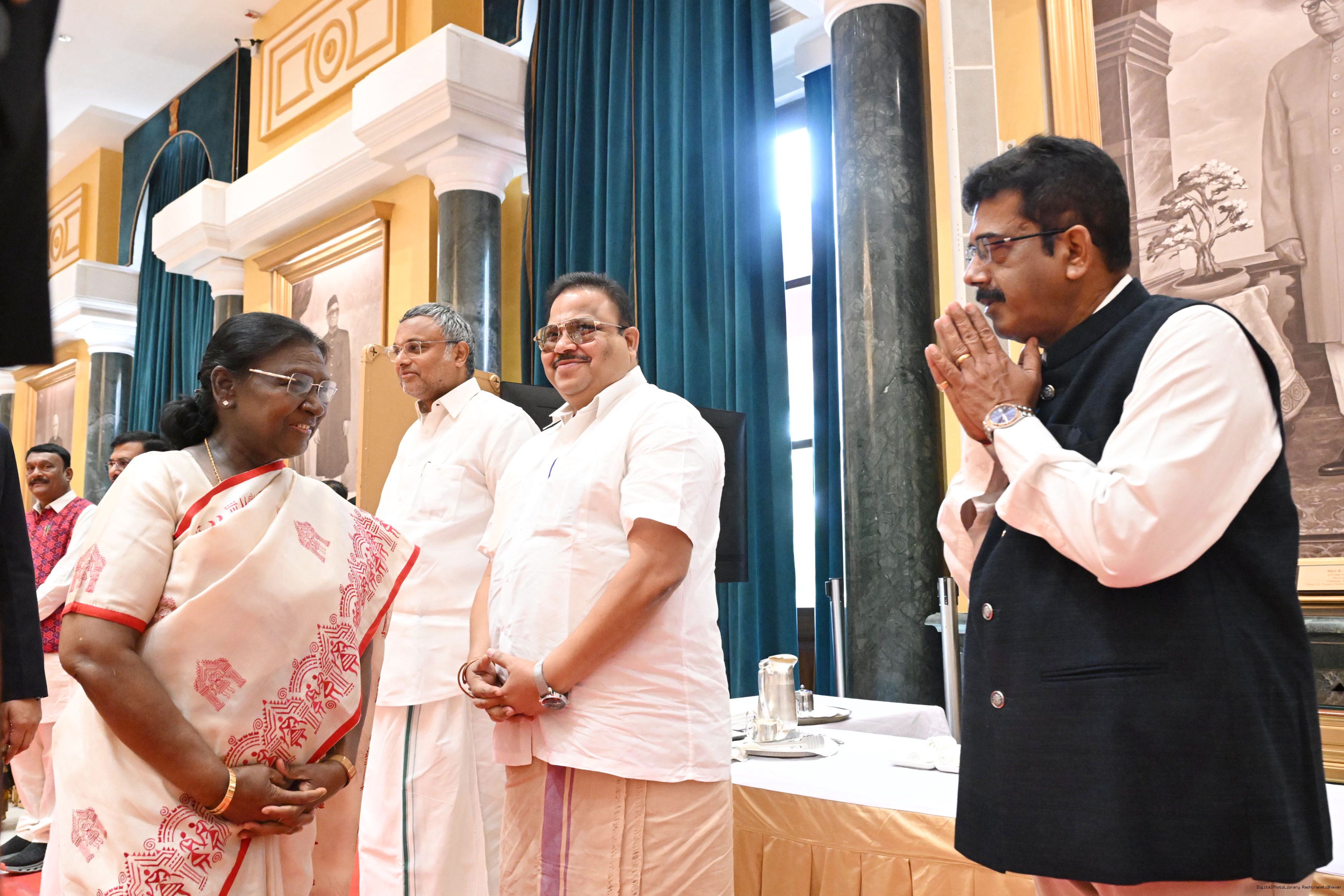 | Caption: | The President of India, Smt Droupadi Murmu hosted Members of Parliament from West Bengal, Tamil Nadu, Telangana, Odisha, Goa, Puducherry, Andaman Nicobar Islands, Dadra Nagar Haveli and Daman Diu and Lakshadweep for breakfast at Rashtrapati Bhavan Cultural Centre on March 16, 2026 |