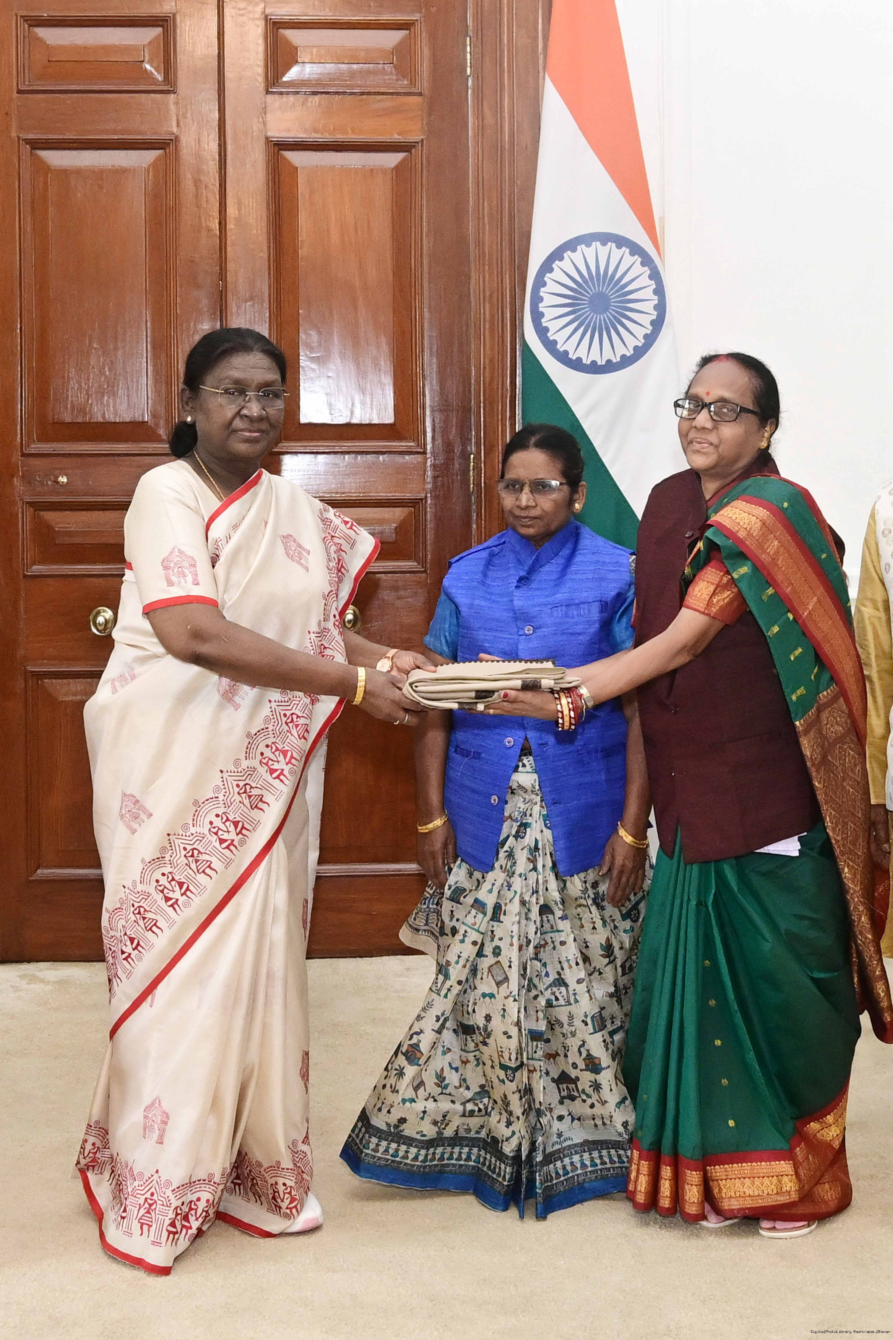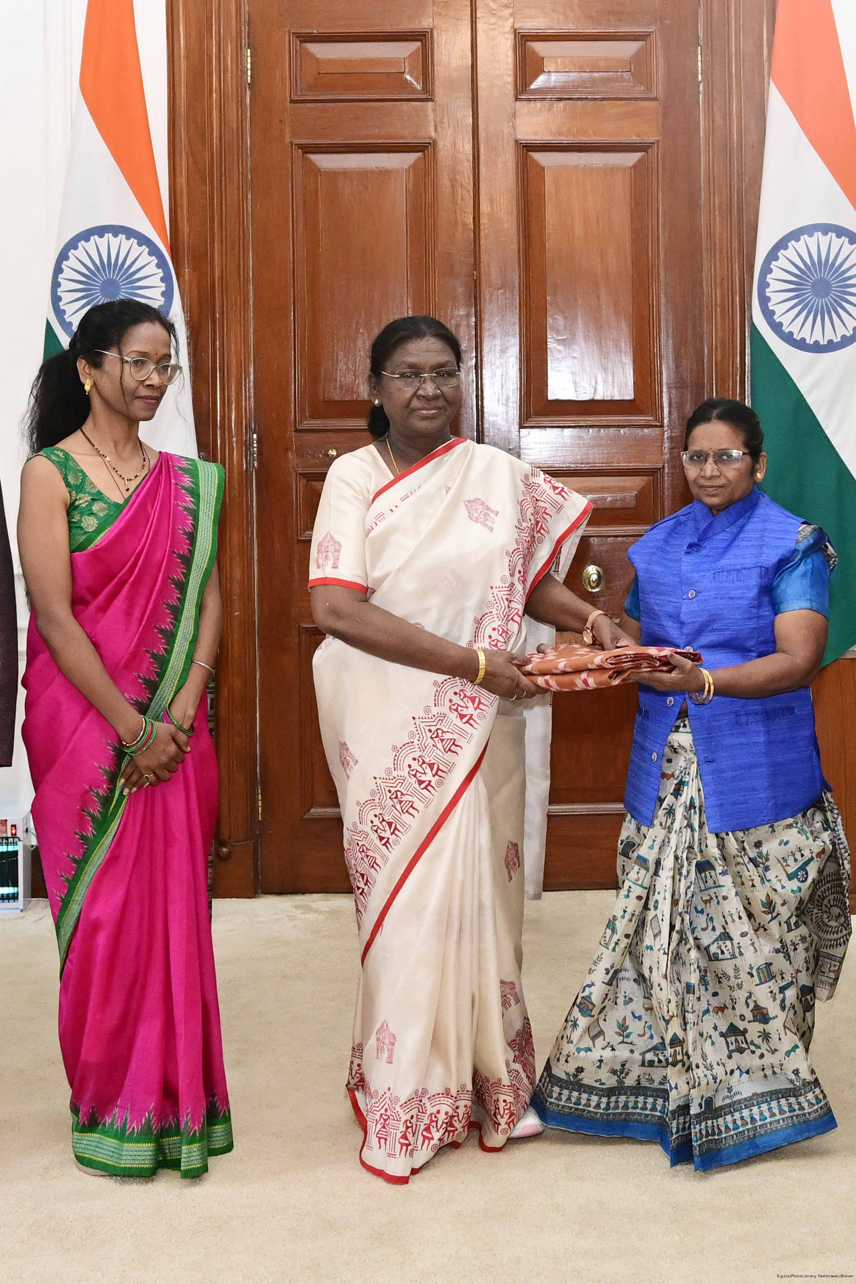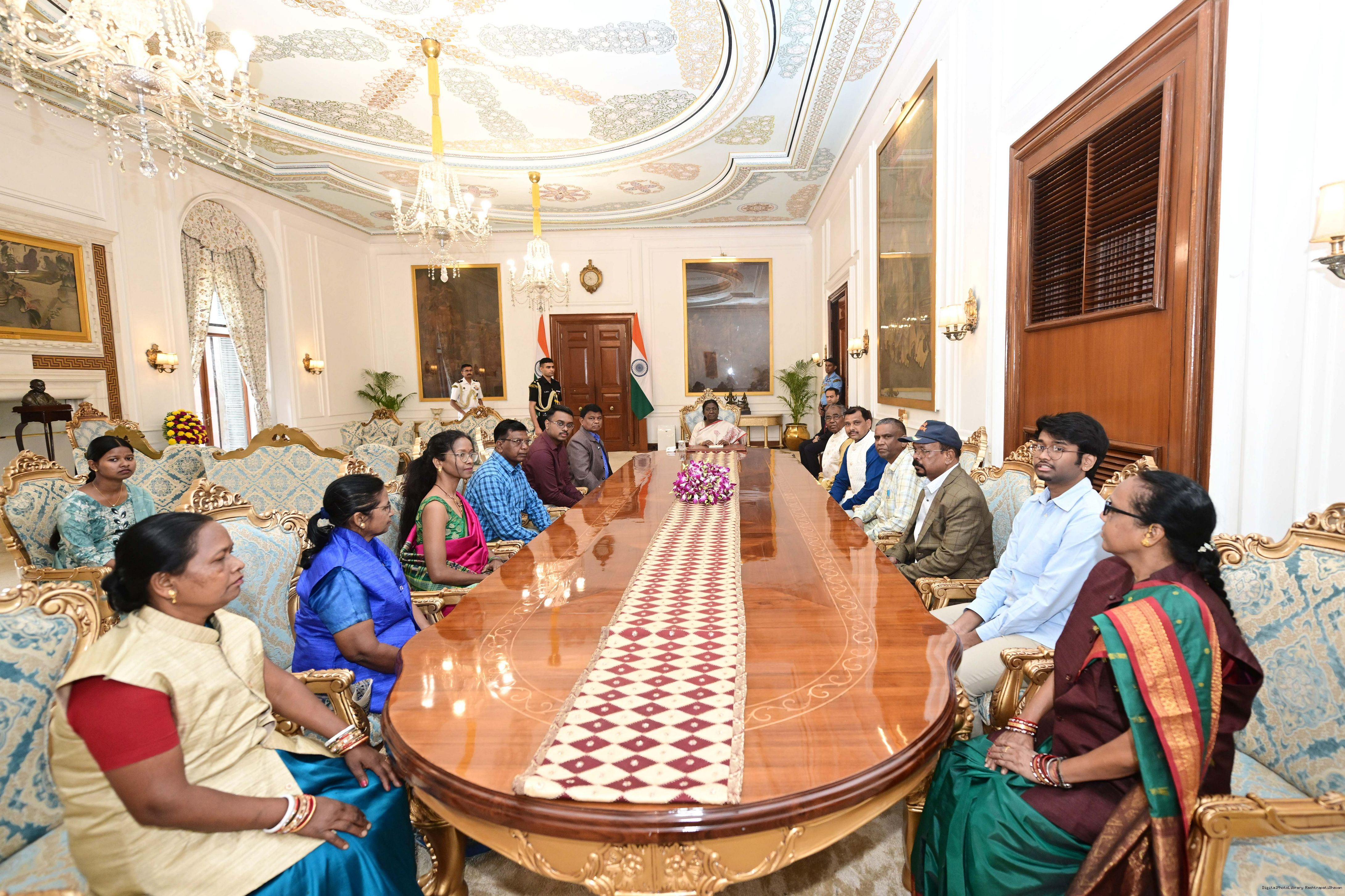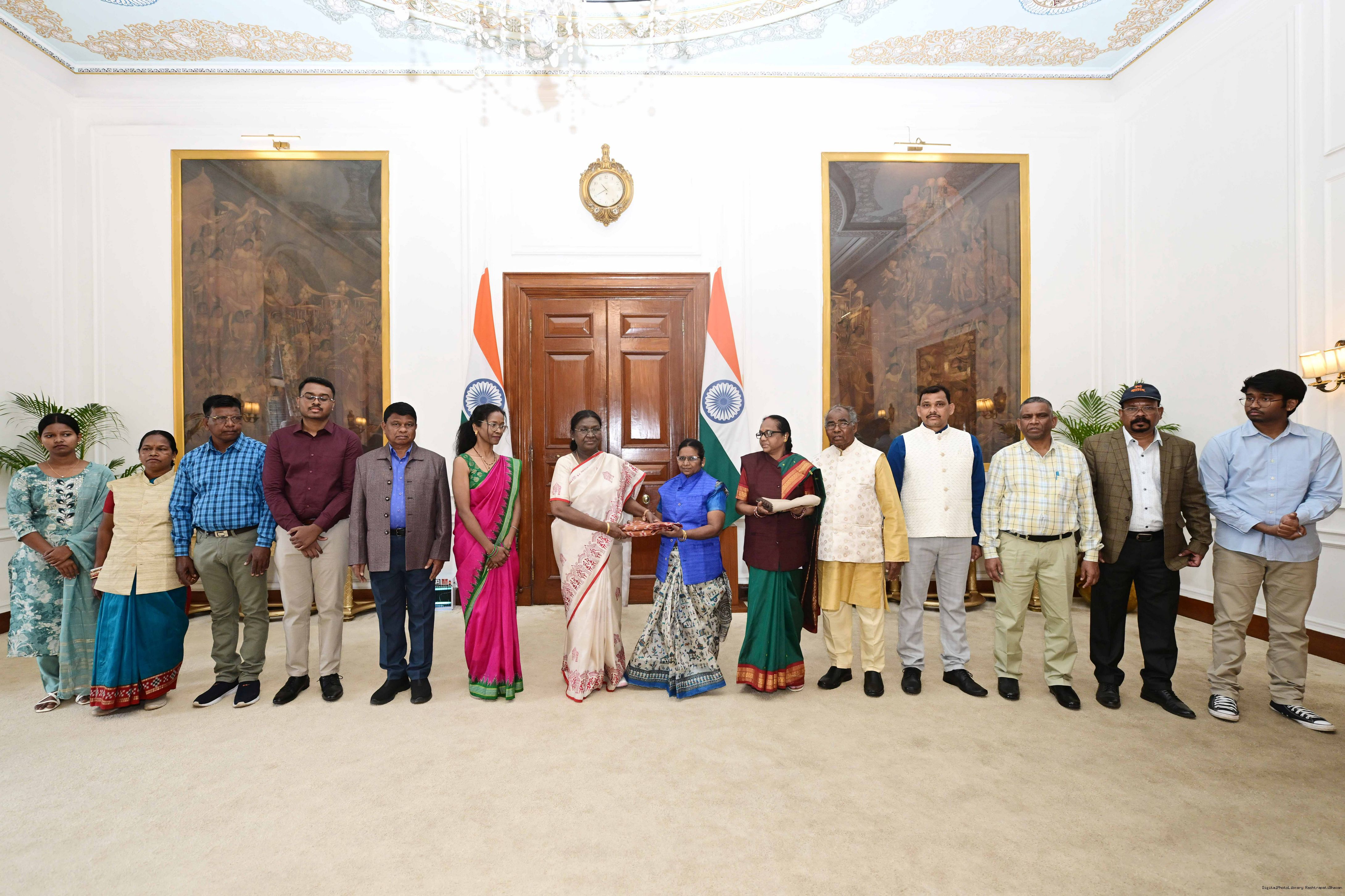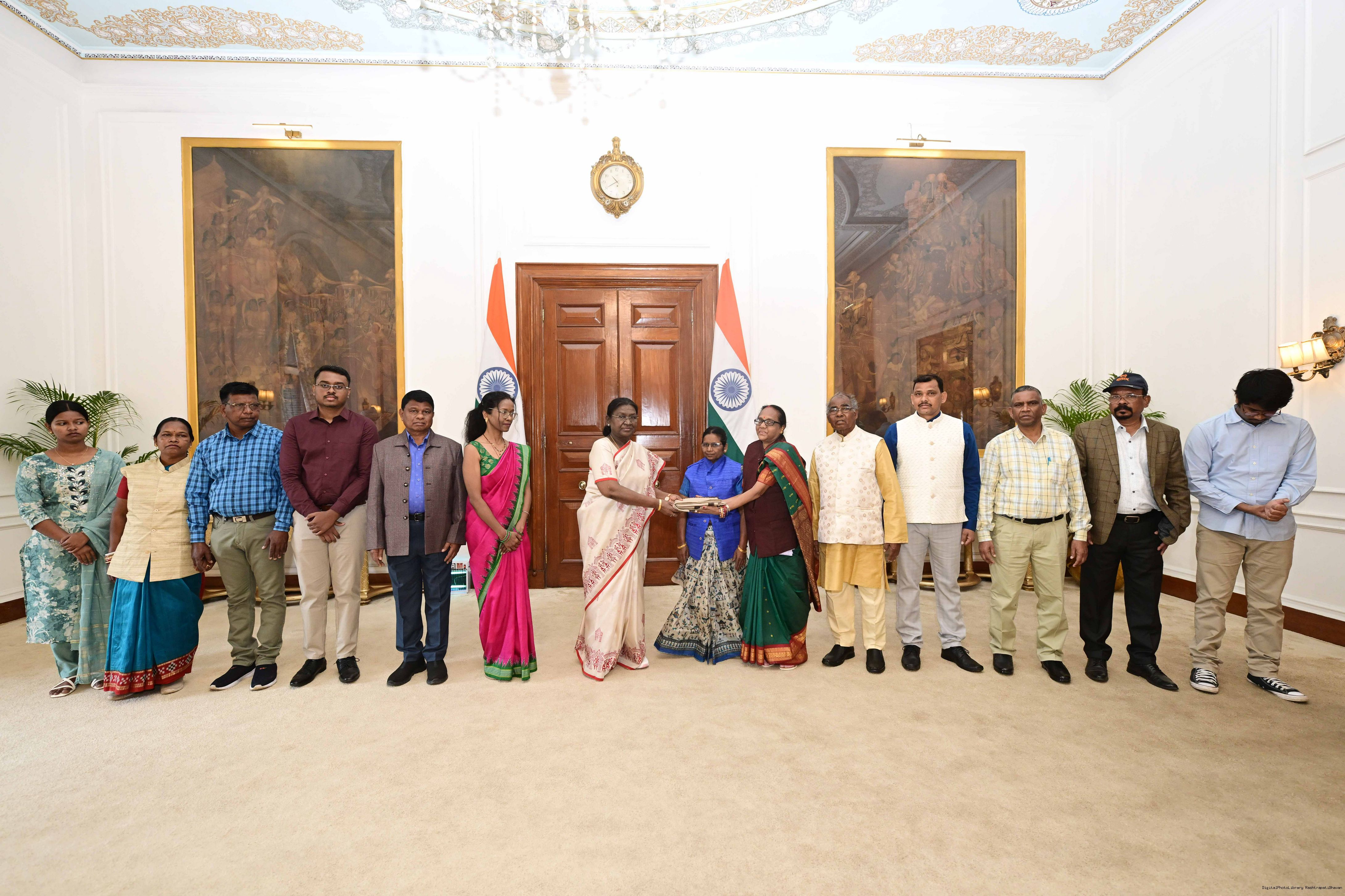 | Caption: | Shri Sudam Baskey from Village, Rangamatia, District Mayurbhanj along with others meeting with the President of India, Smt Droupadi Murmu at Rashtrapati Bhavan on March 16, 2026. |