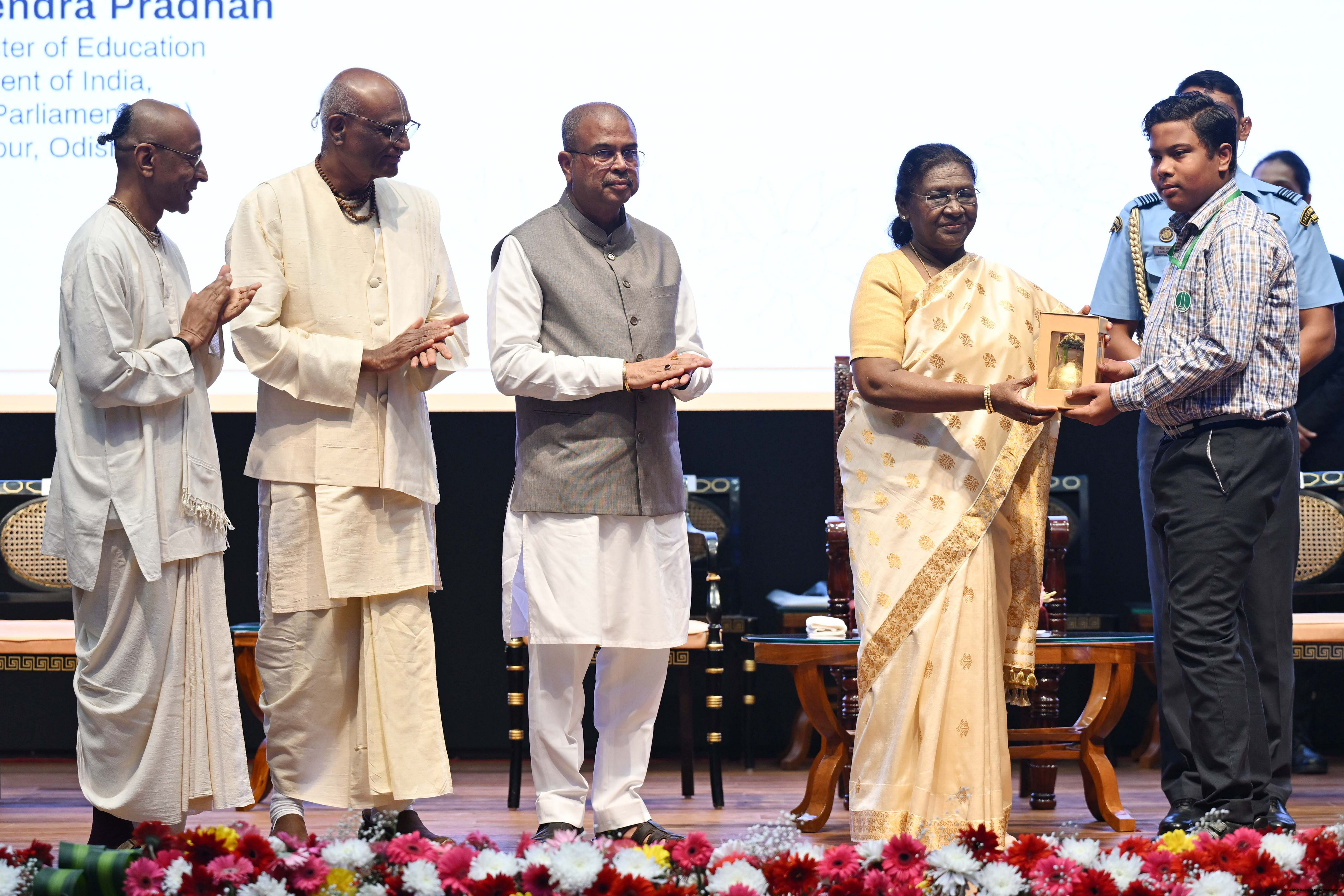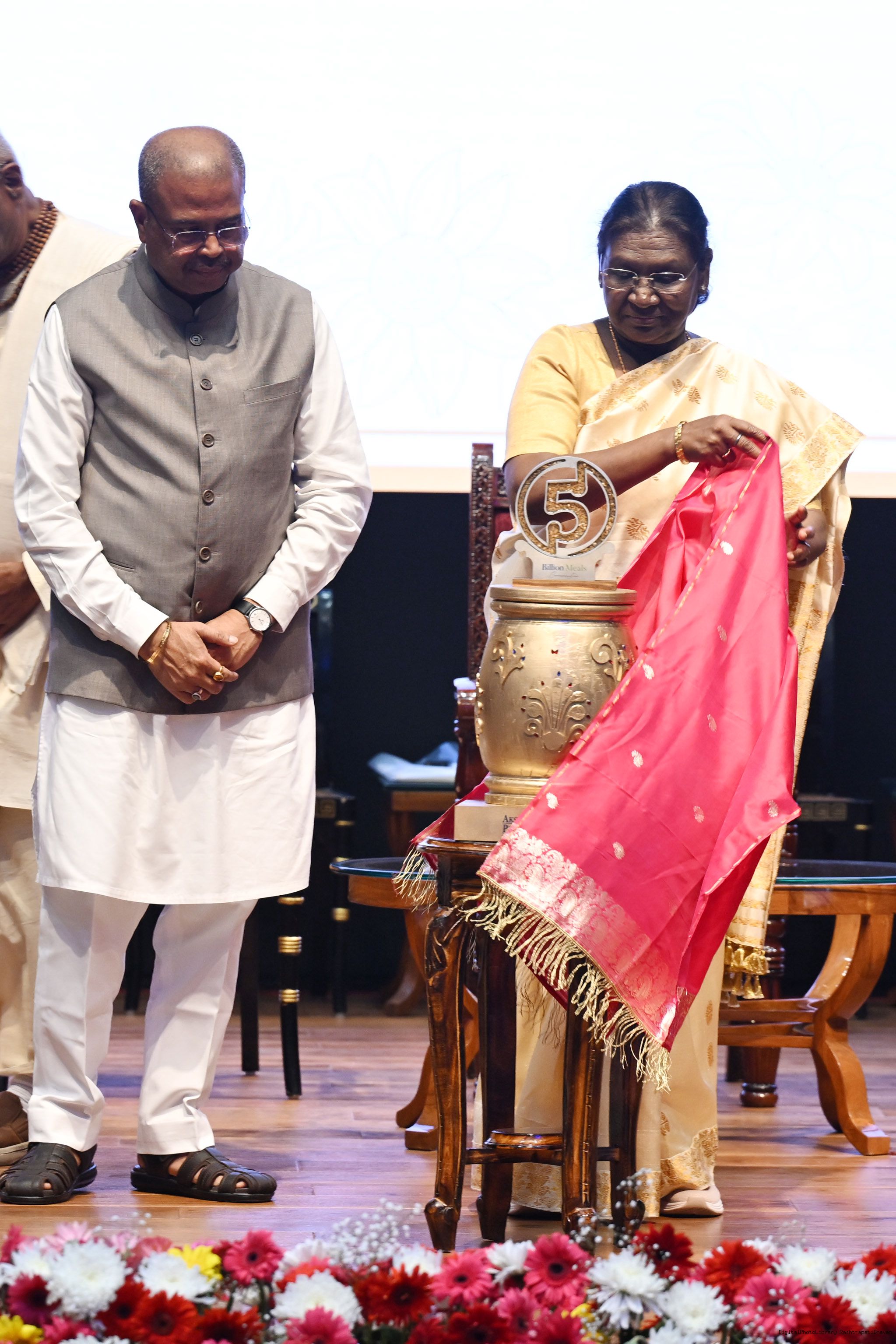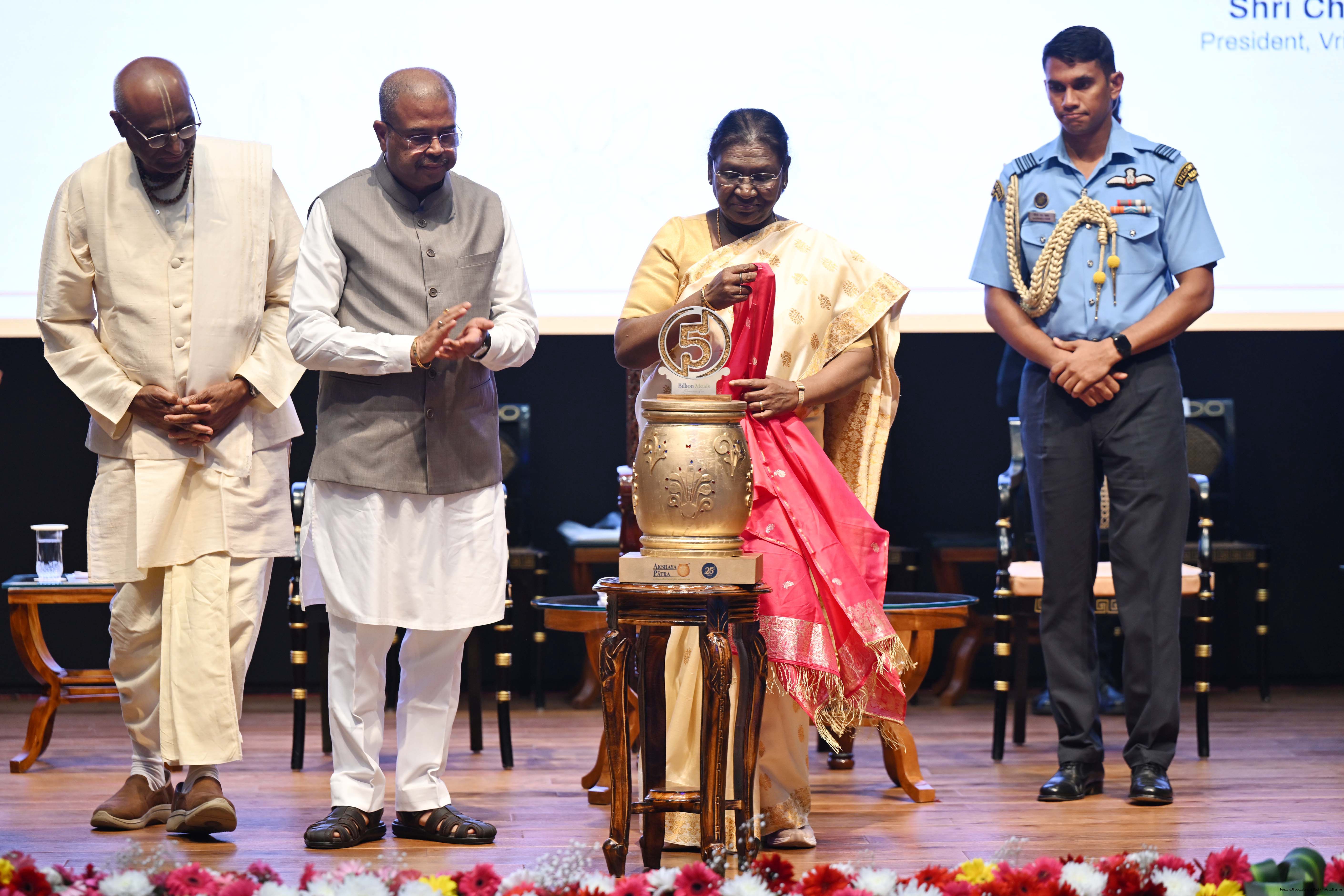 | Caption: | The President of India Smt Droupadi Murmu graced an event to commemorate the five billion meals of Akshaya Patra Foundation at Rashtrapati Bhavan Cultural Centre on March 17, 2026. |