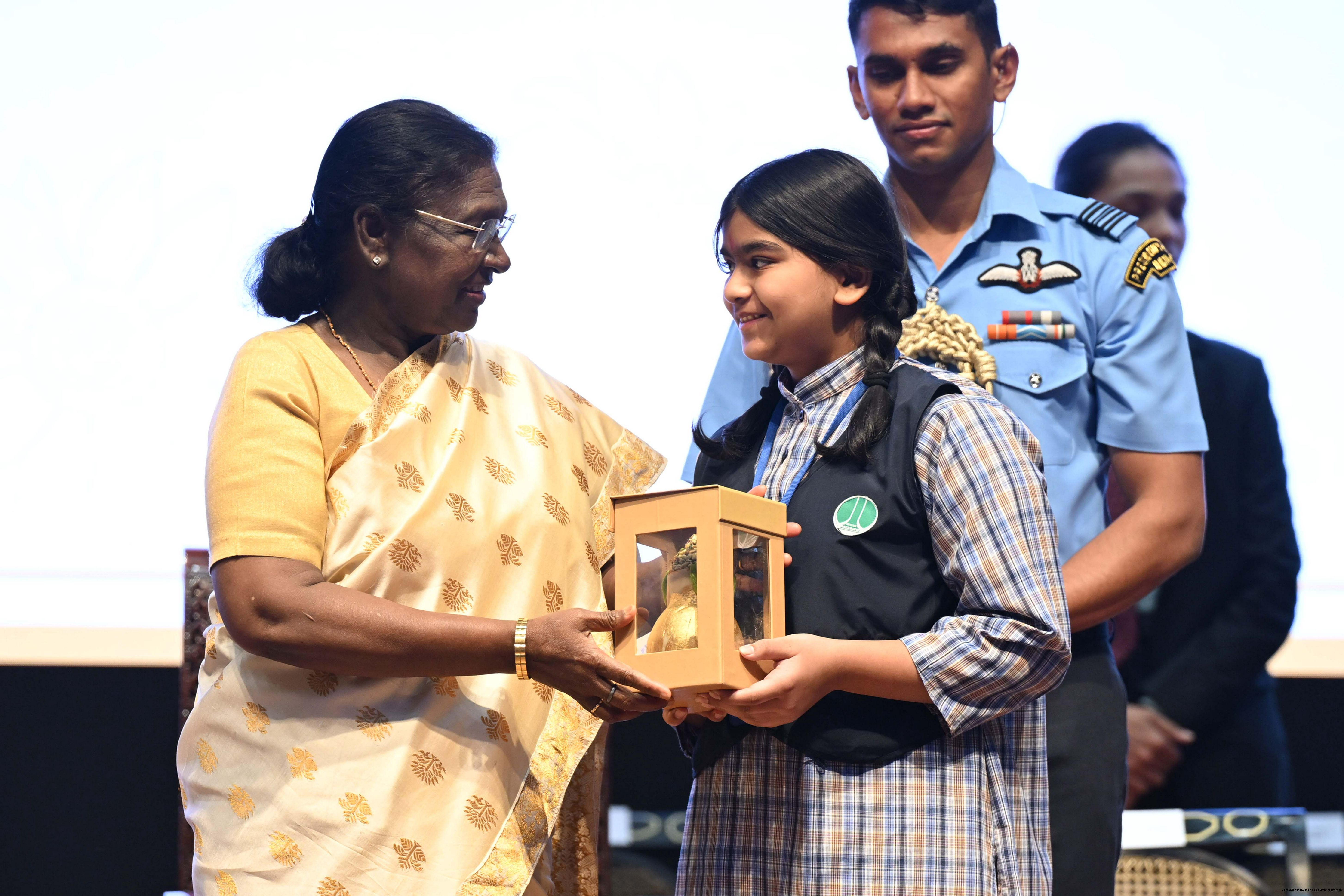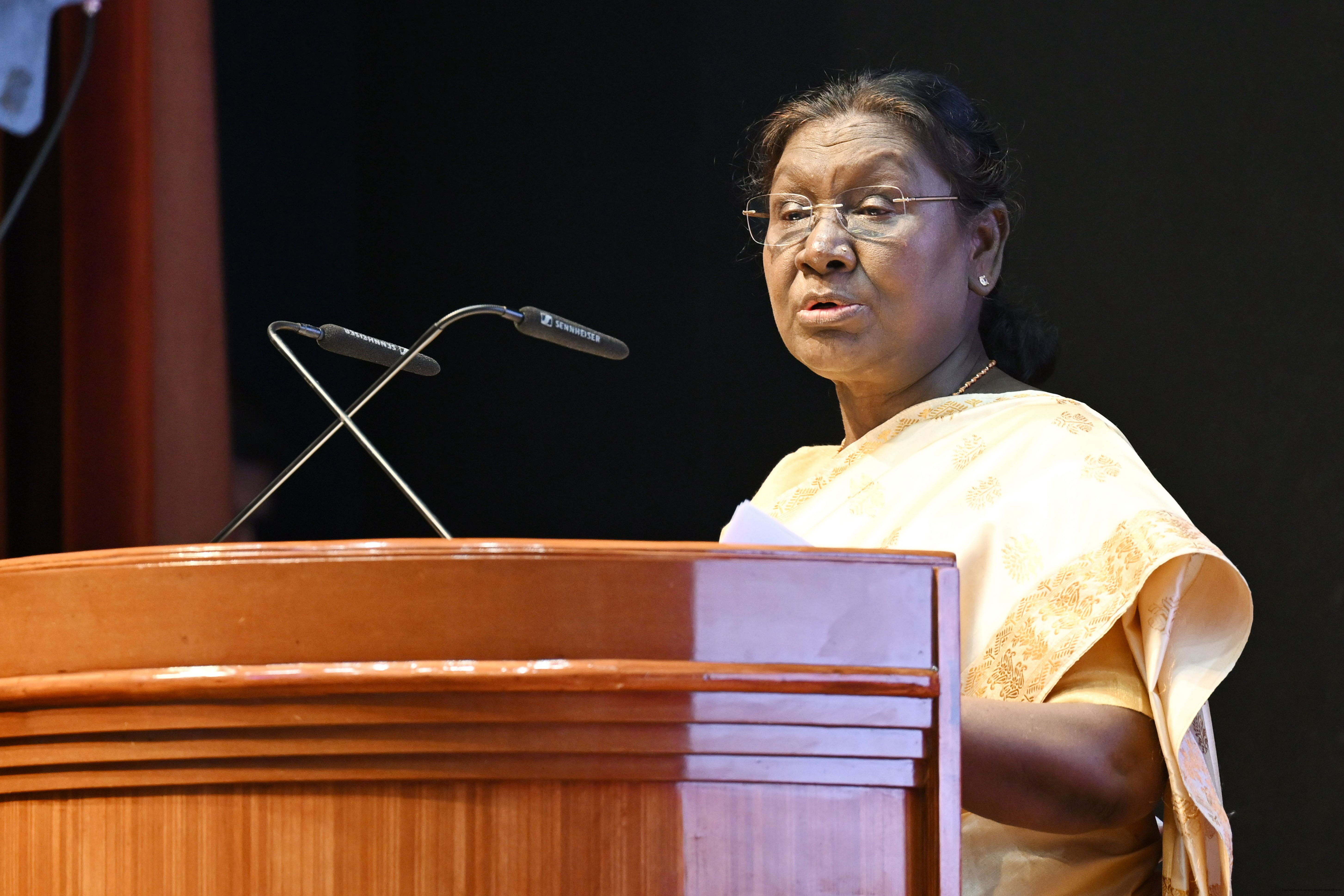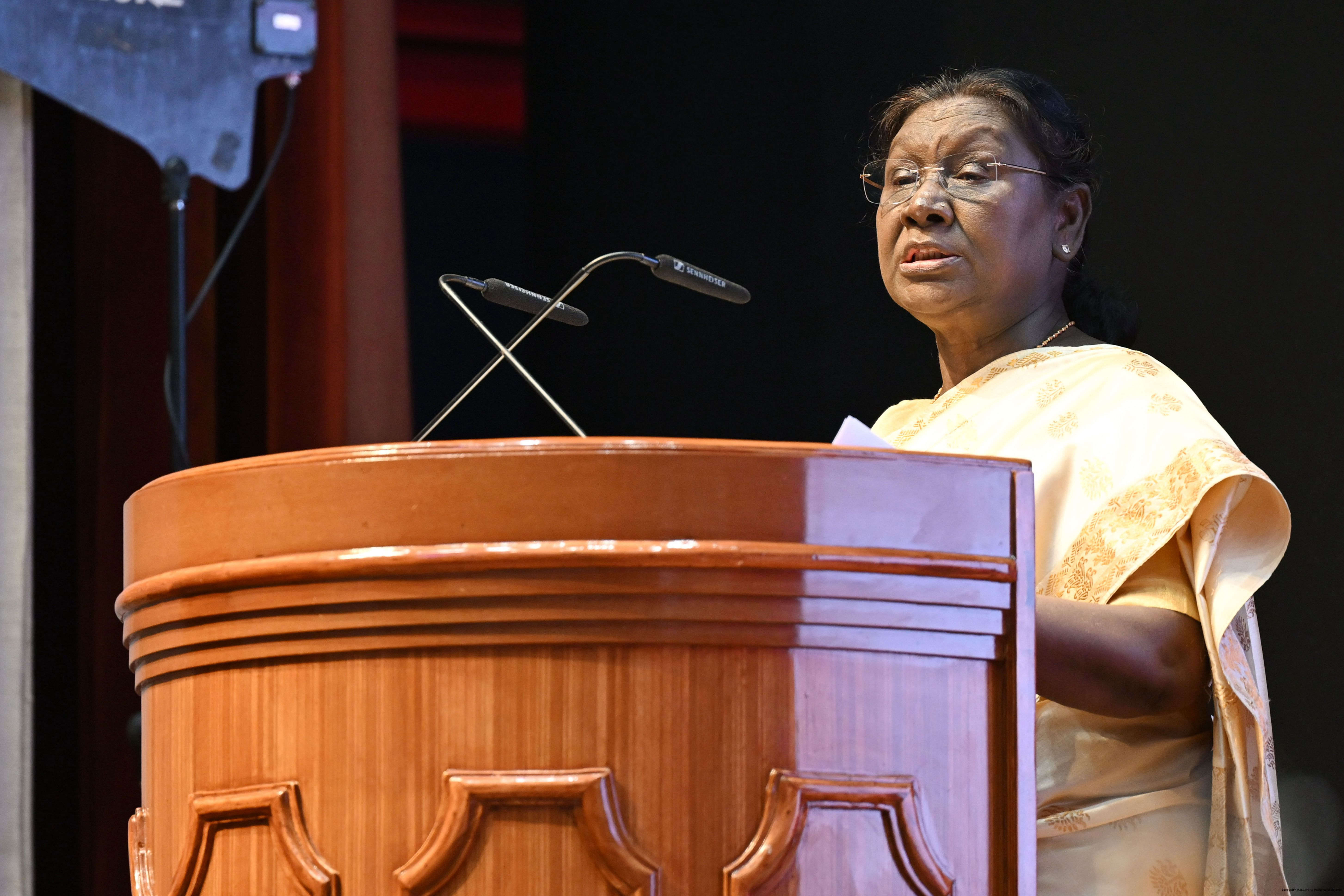 | Caption: | The President of India Smt Droupadi Murmu graced an event to commemorate the five billion meals of Akshaya Patra Foundation at Rashtrapati Bhavan Cultural Centre on March 17, 2026. |