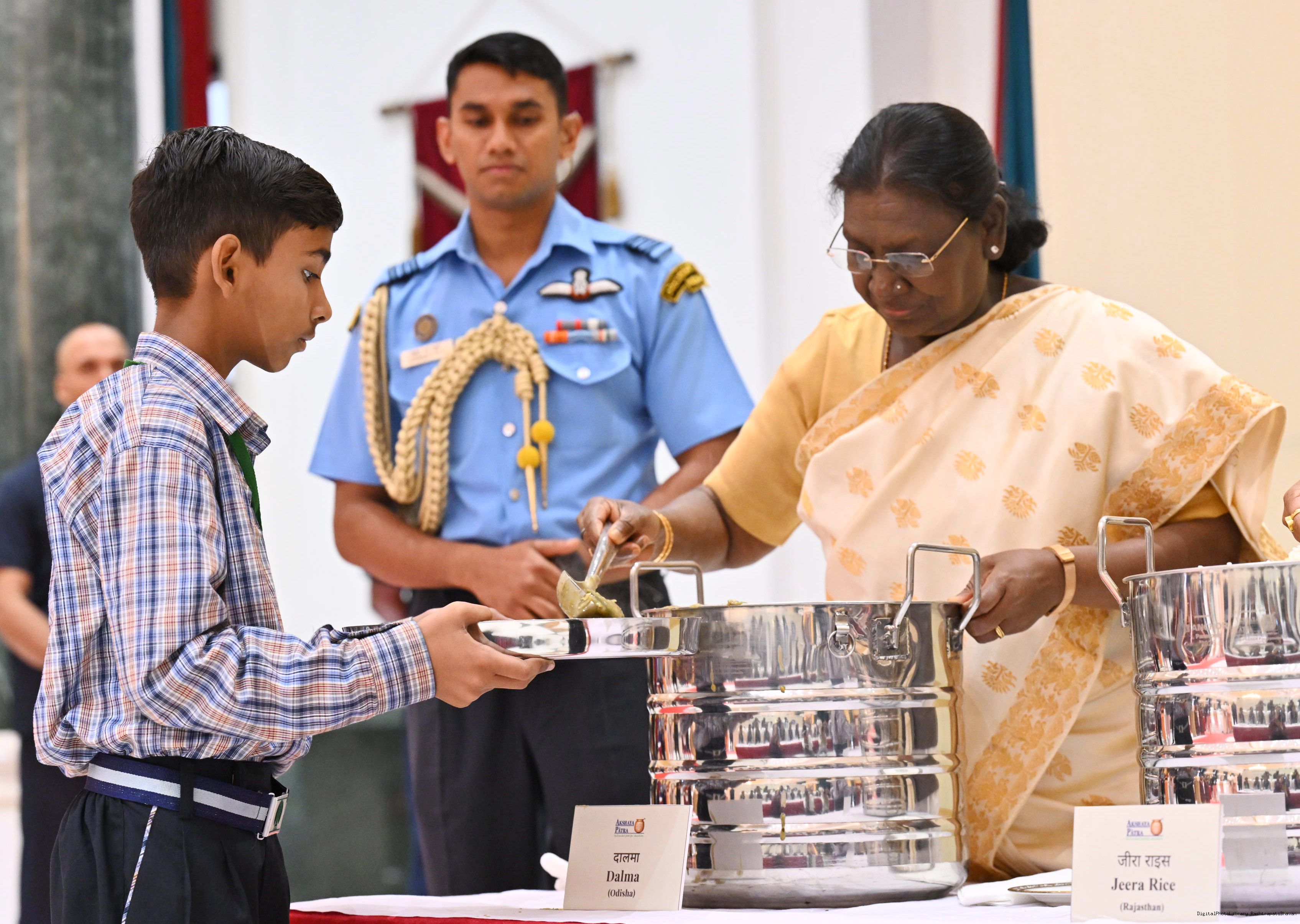 | Caption: | The President of India Smt Droupadi Murmu graced an event to commemorate the five billion meals of Akshaya Patra Foundation at Rashtrapati Bhavan Cultural Centre on March 17, 2026. |
