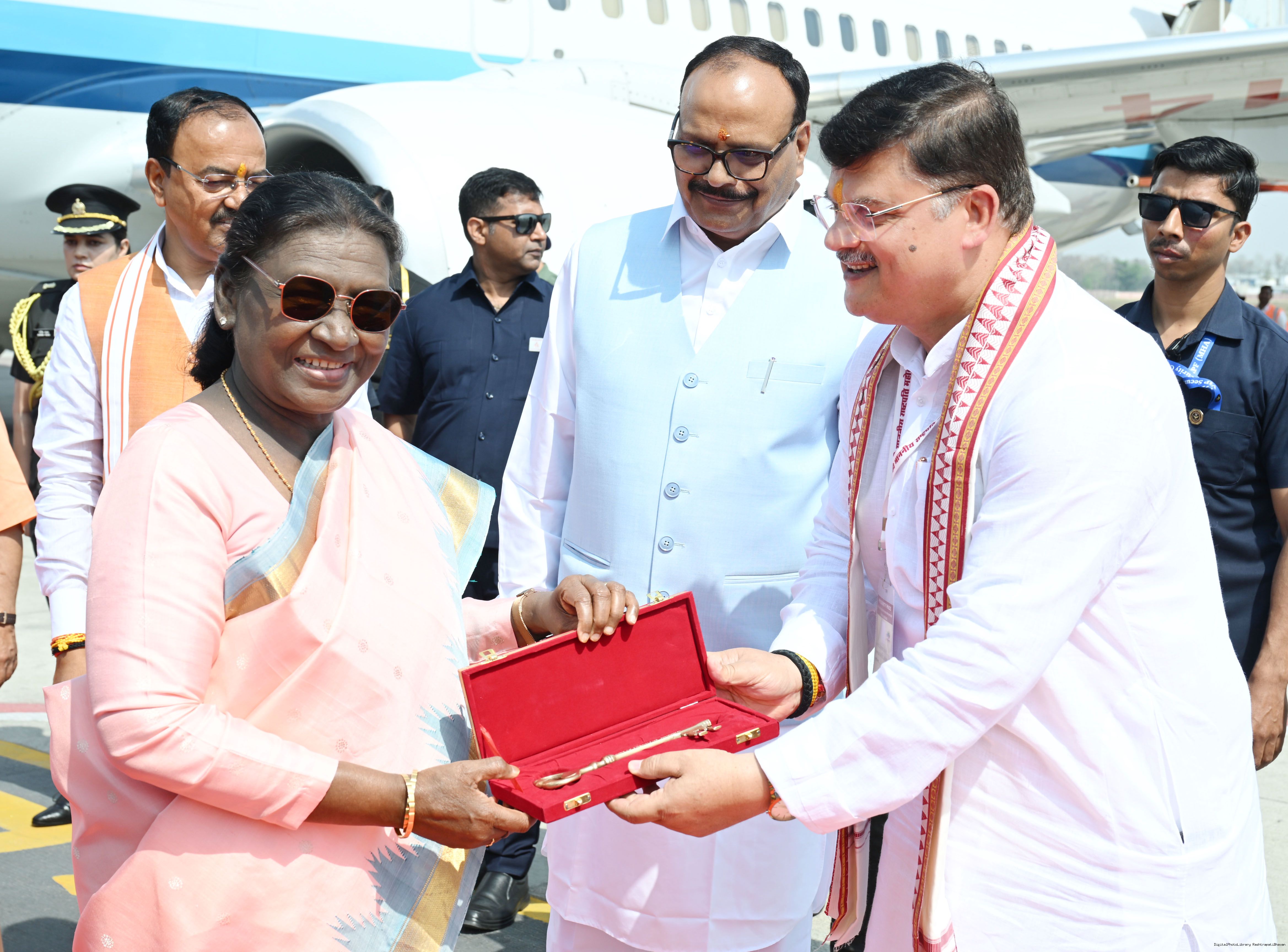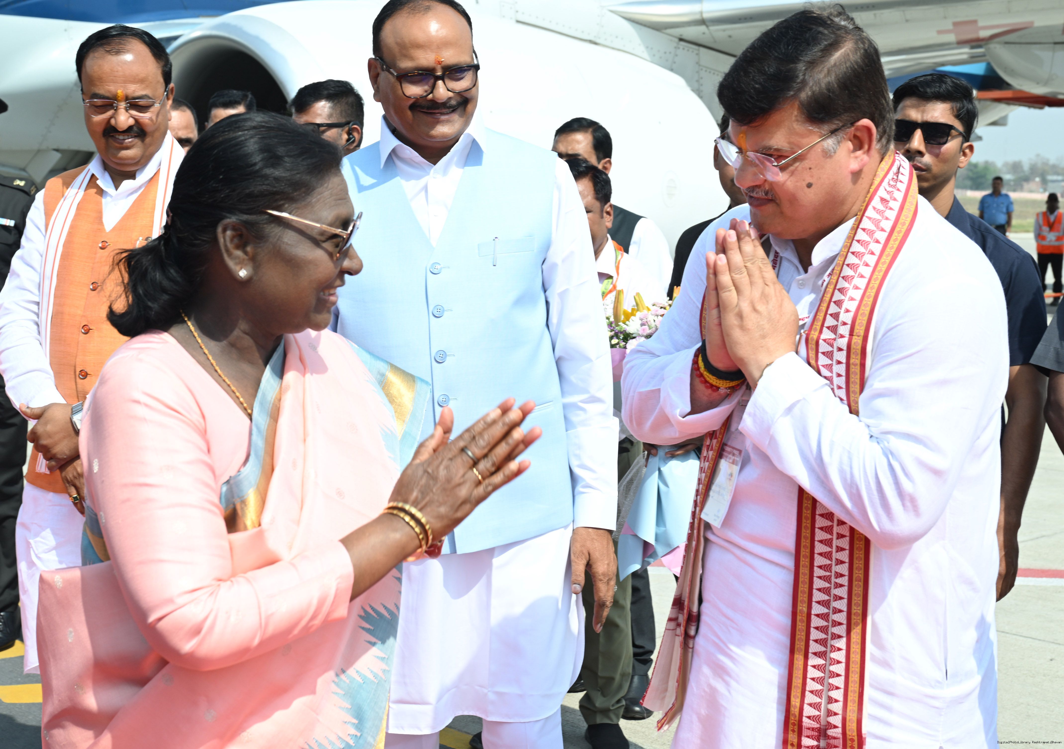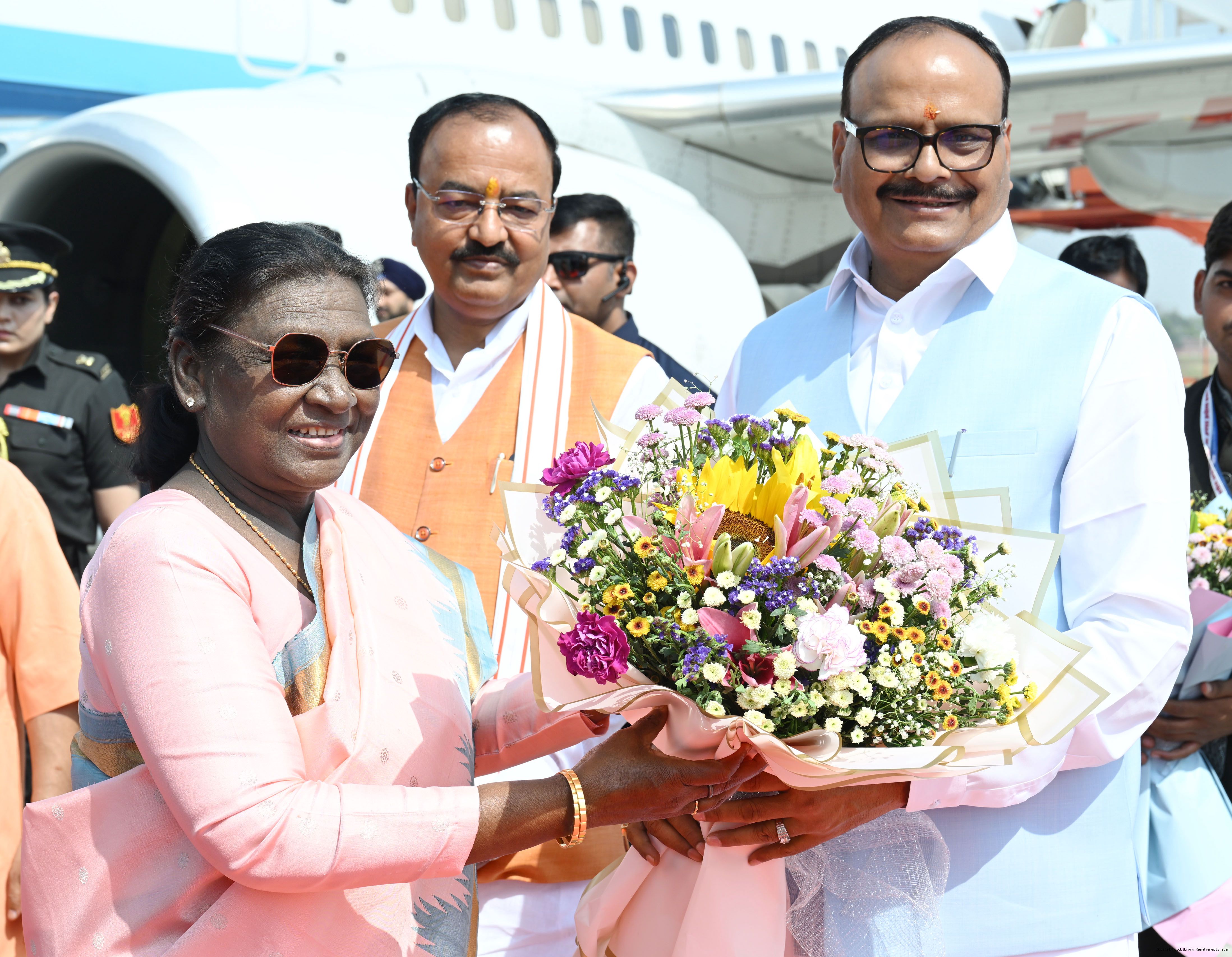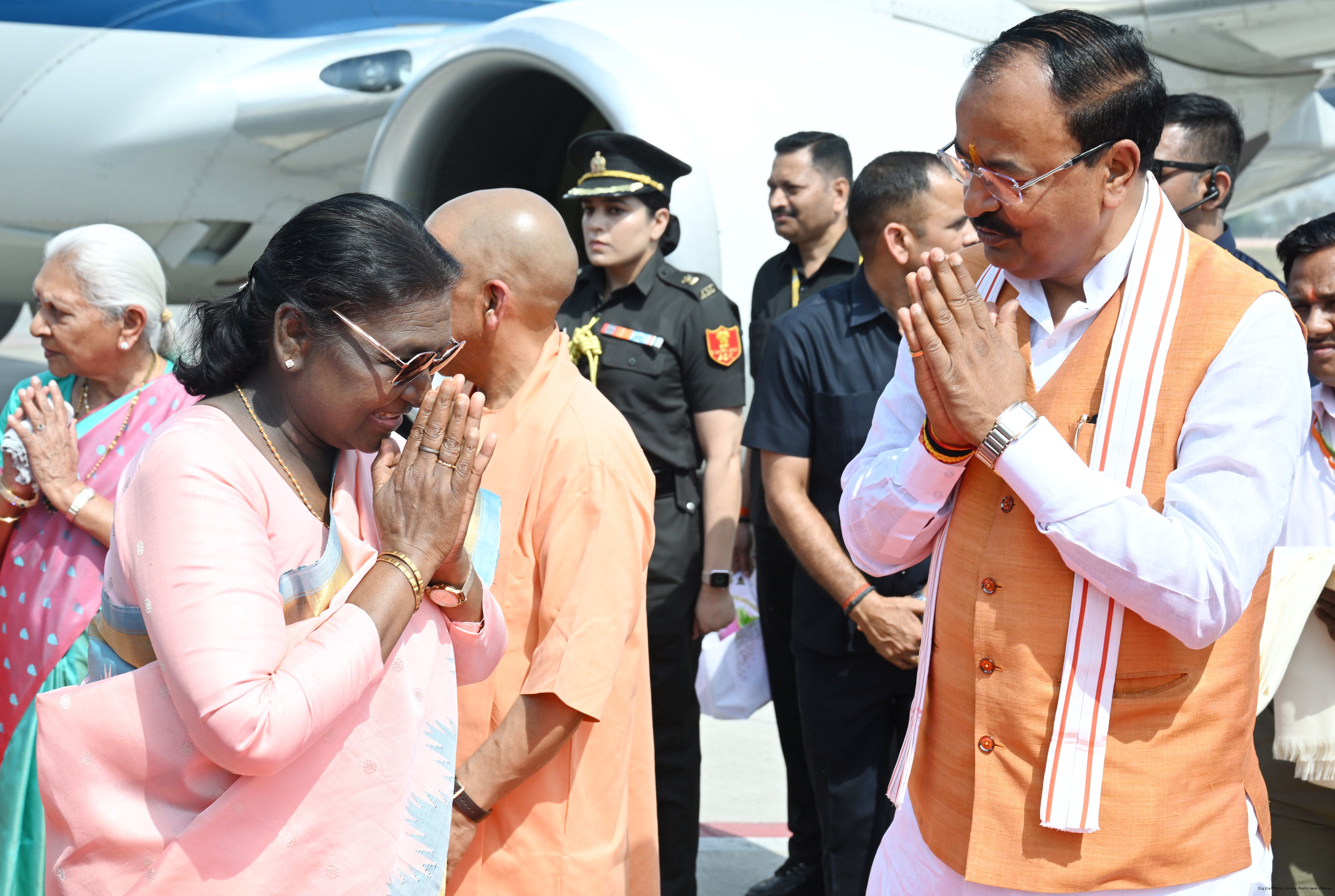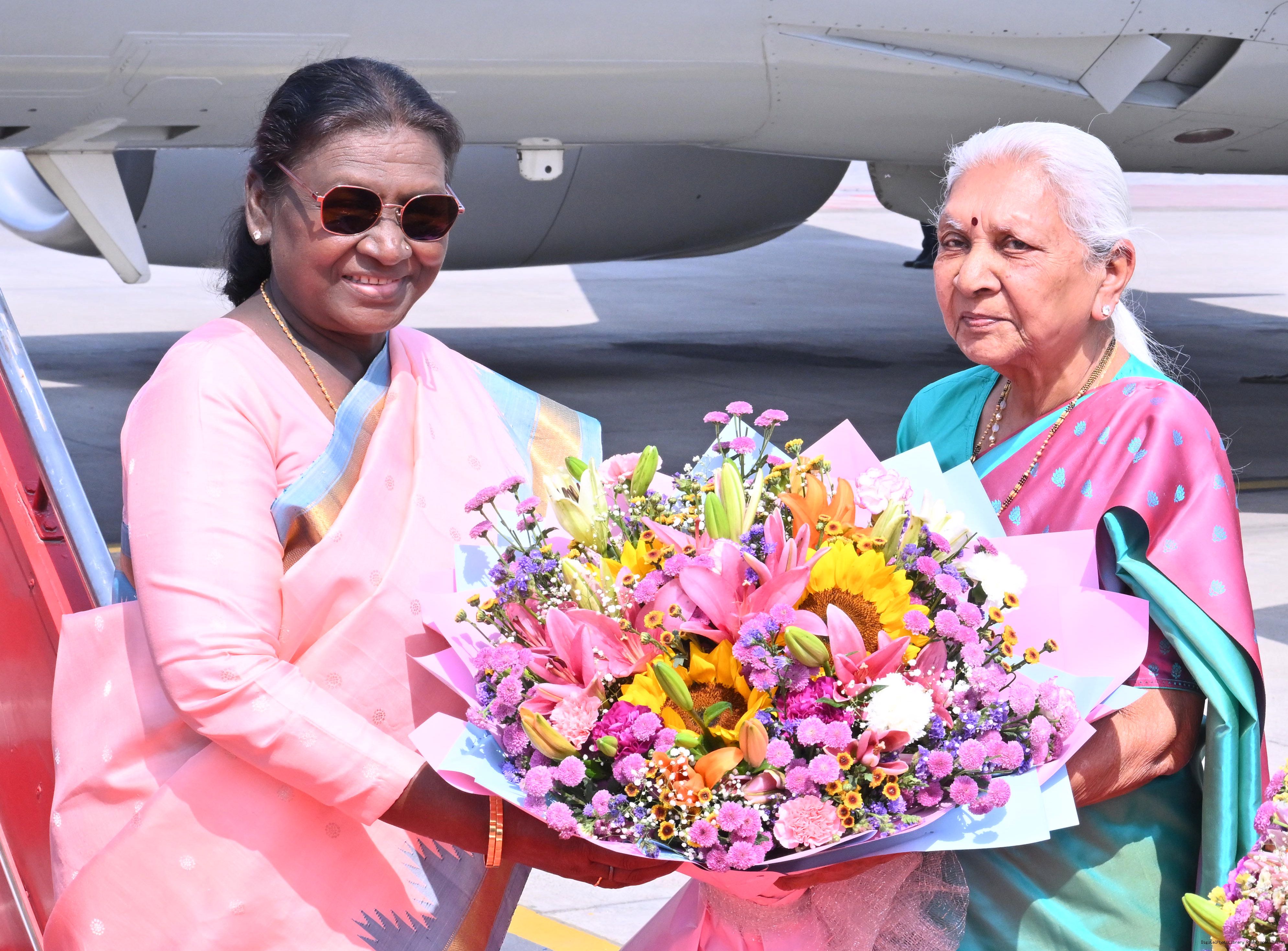| Caption: | The Governor of Uttar Pradesh, Smt Anandiben Patel, Chief Minister Yogi Adityanath and Deputy Chief Ministers Shri Keshav Prasad Maurya and Shri Brajesh Pathak received the President of India, Smt Droupadi Murmu on her arrival at Ayodhya on March 19, 2026. |