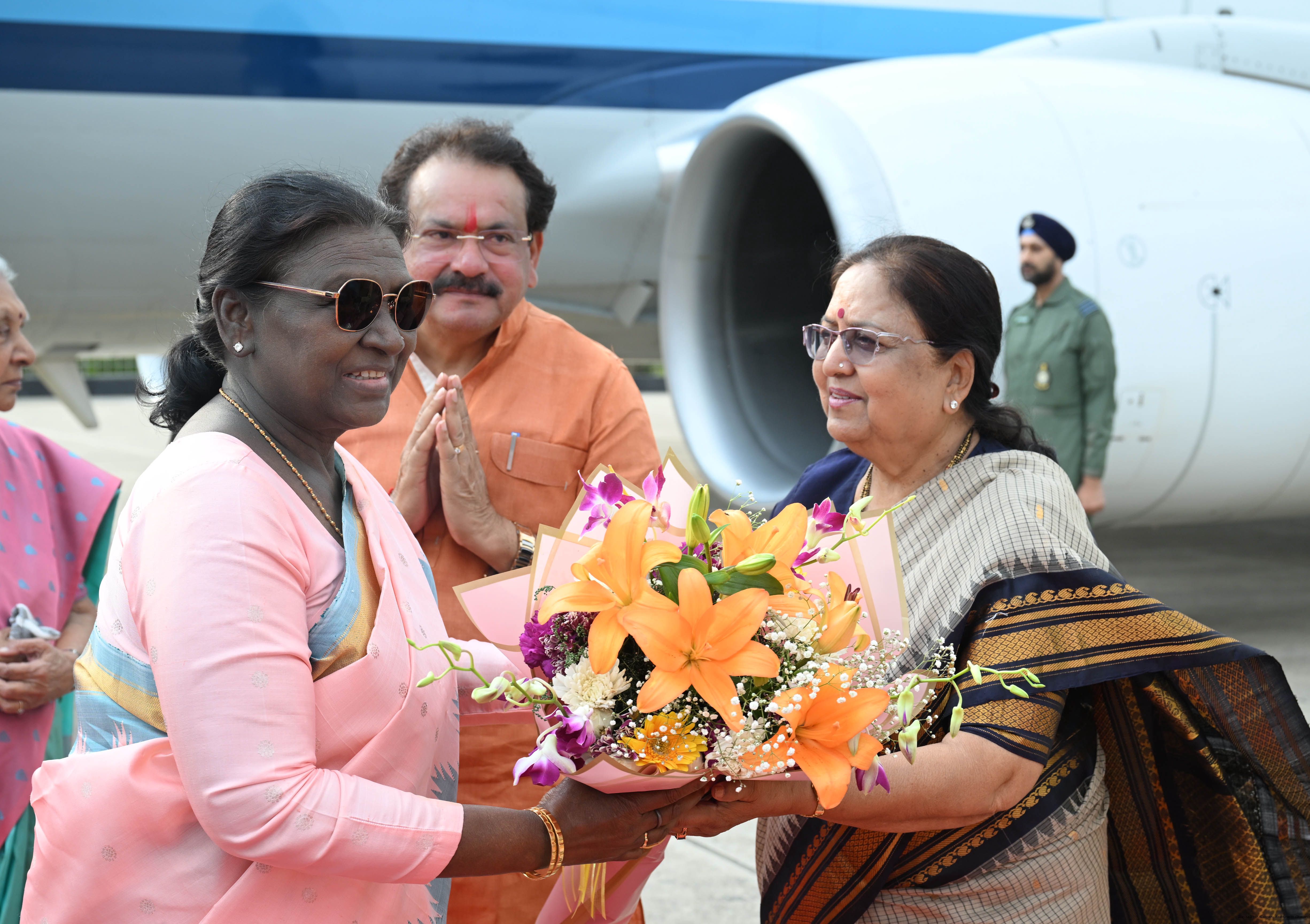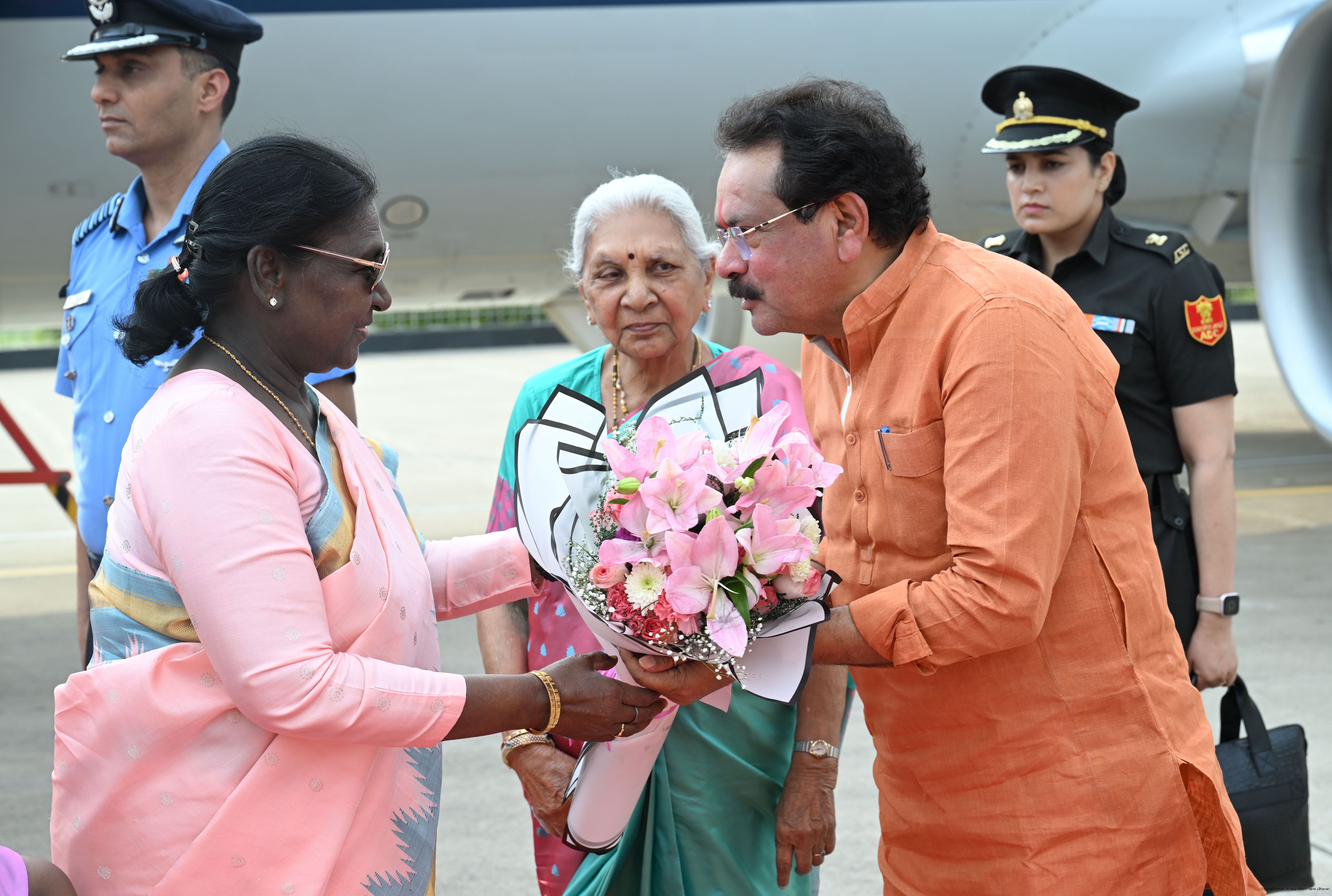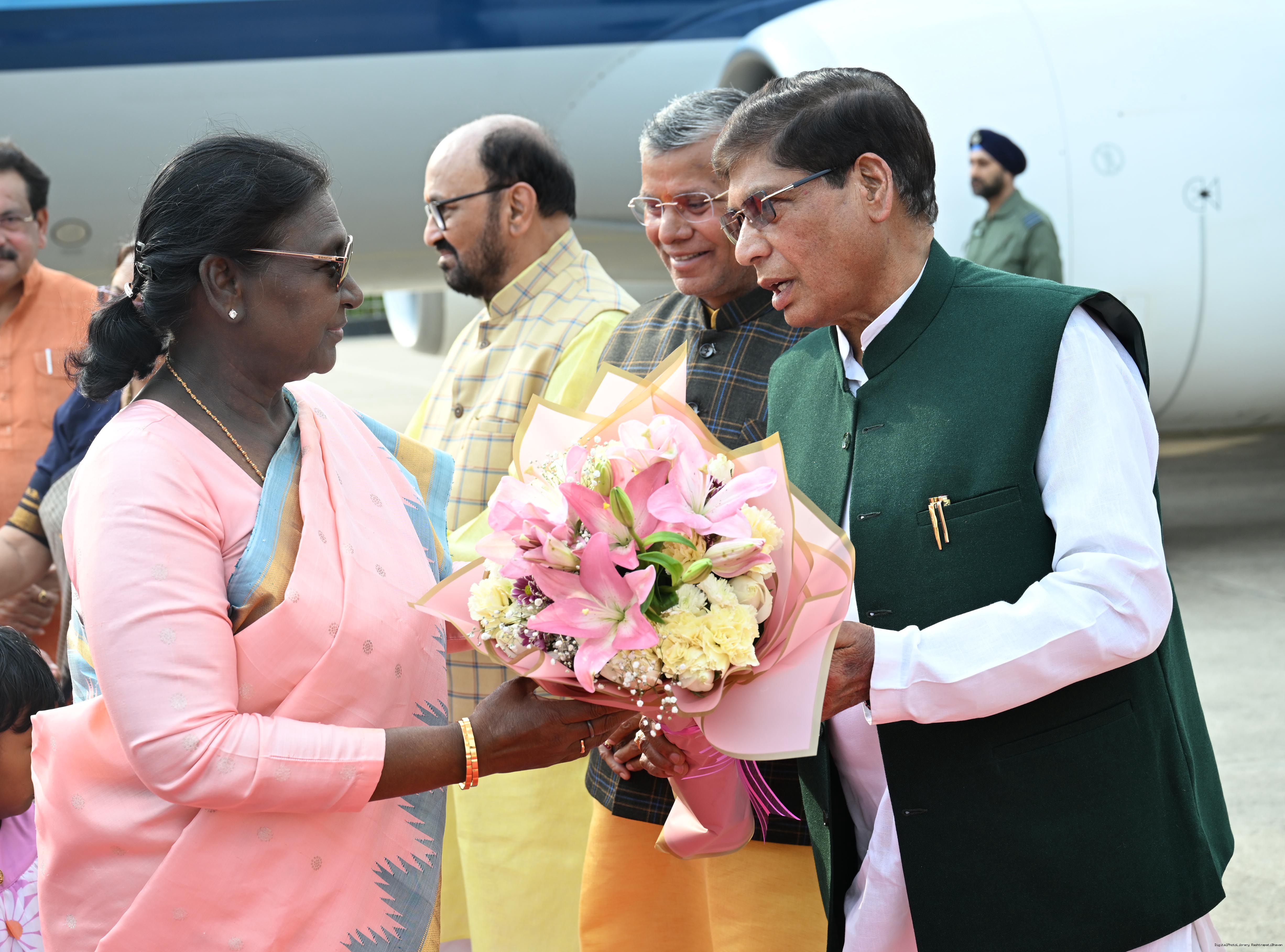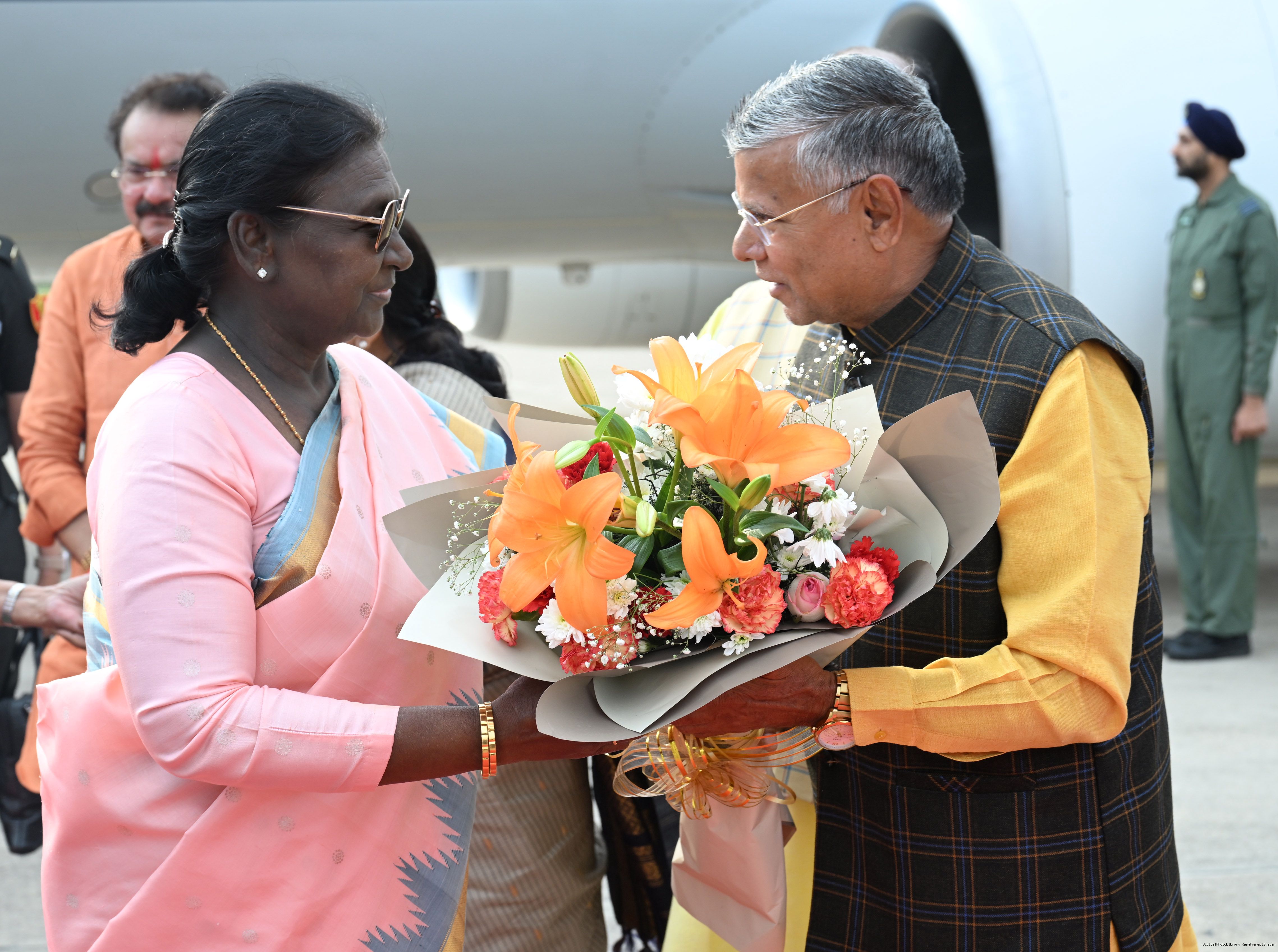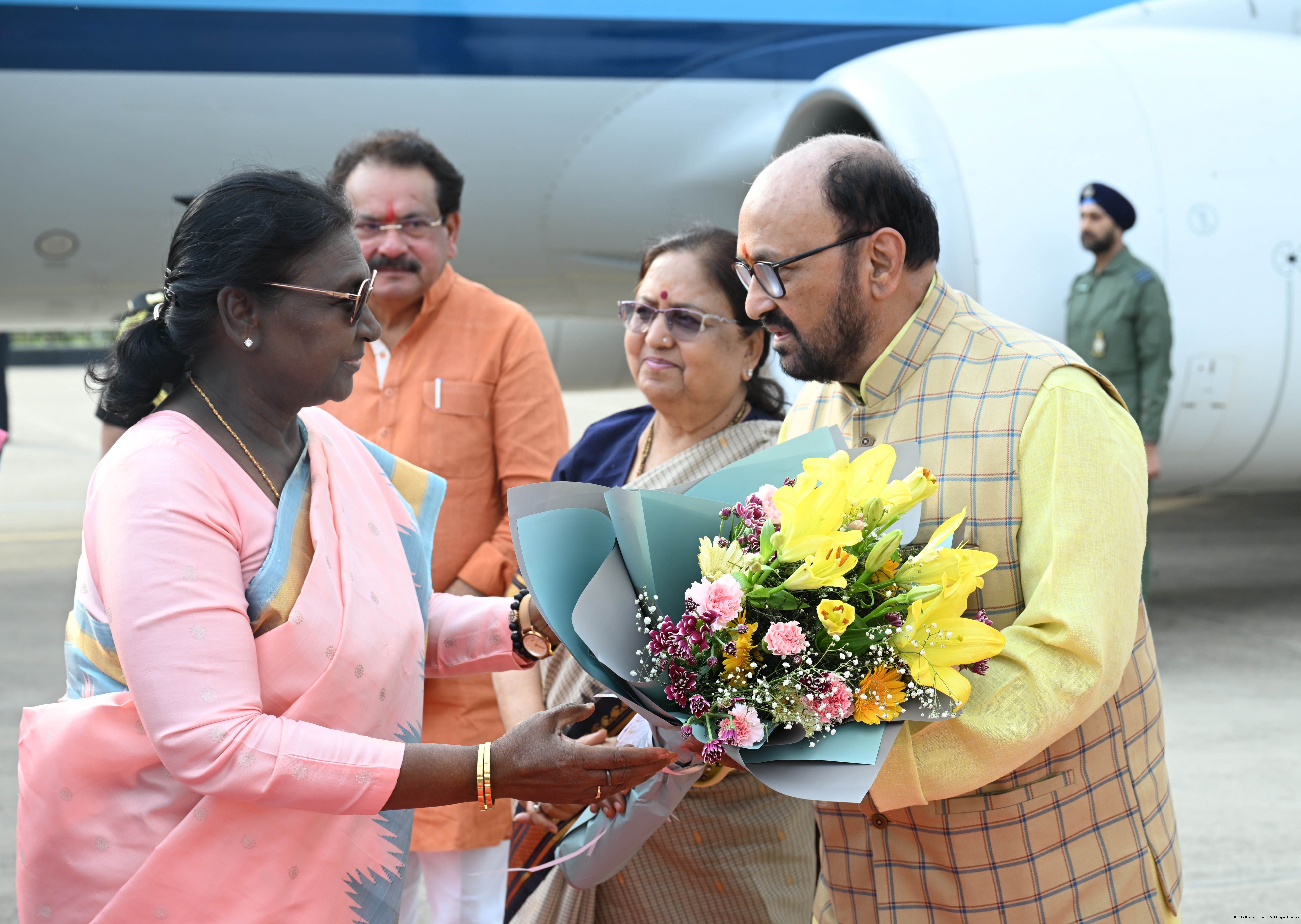 | Caption: | The Governor of Uttar Pradesh, Smt Anandiben Patel and along with others received the President of India, Smt Droupadi Murmu on her arrival at Agra on March 19, 2026. |