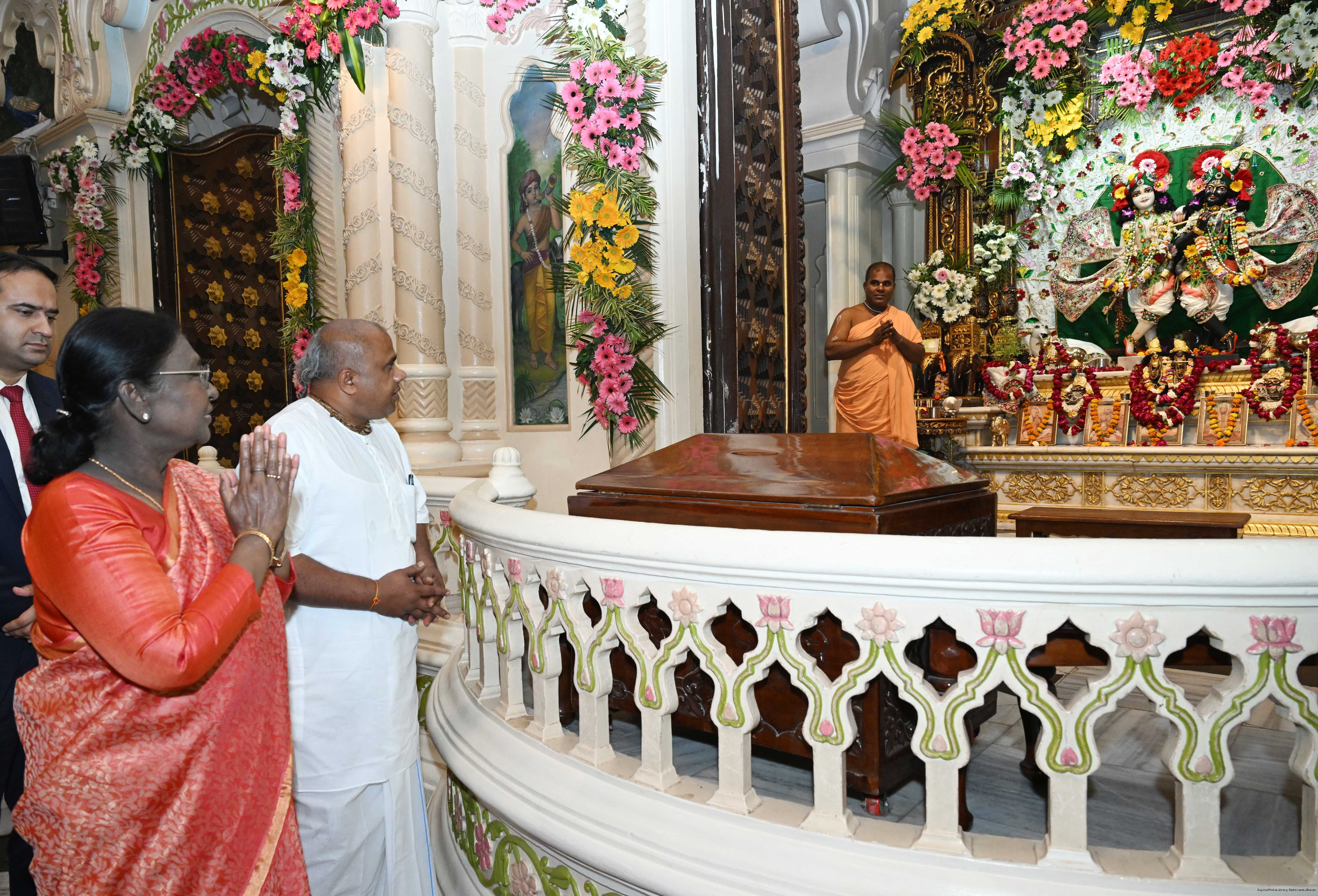 | Caption: | The President of India, Smt Droupadi Murmu had darshan and performed Aarti at ISKCON Mandir, Vrindavan on March 19, 2026. |
