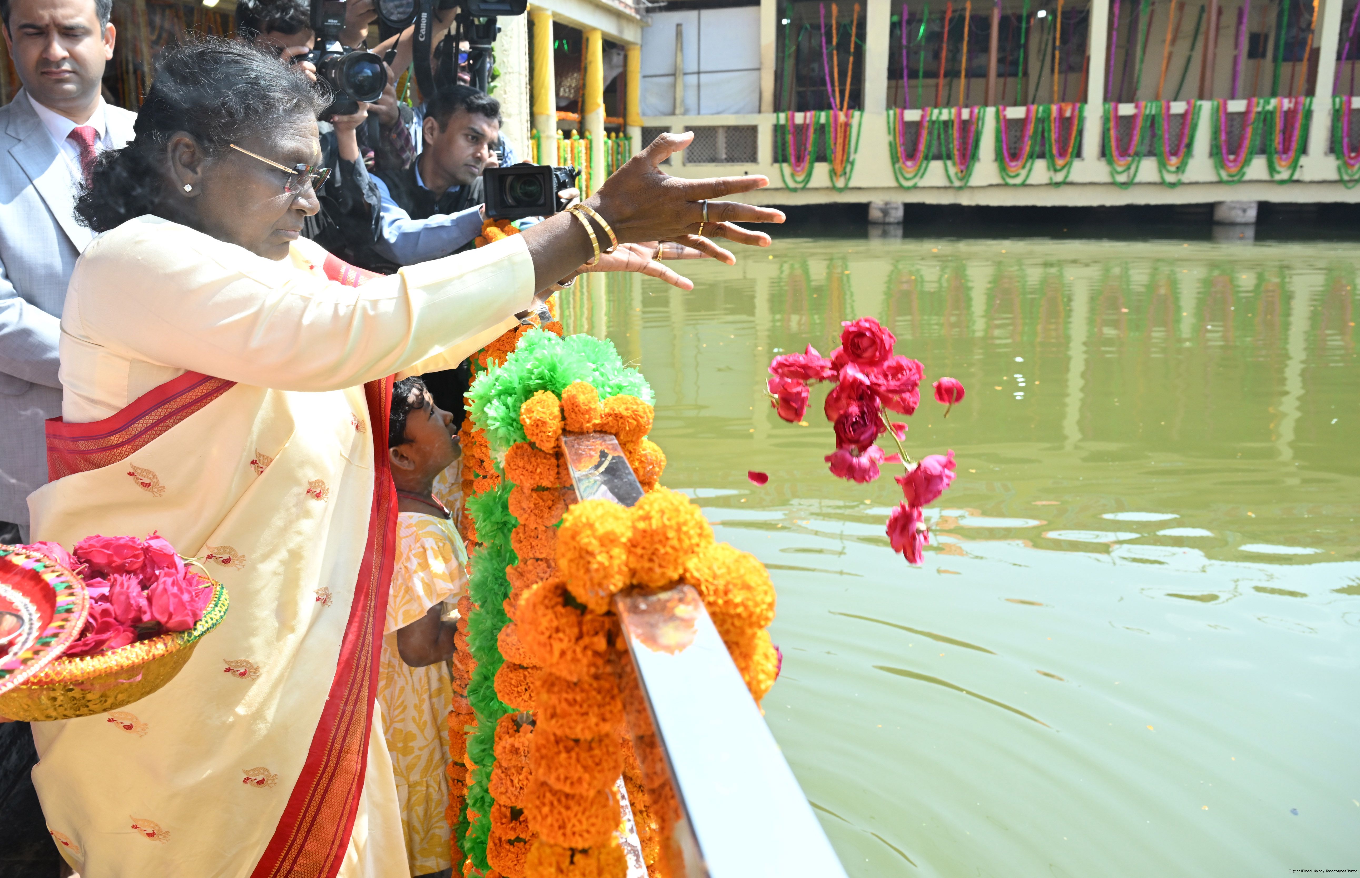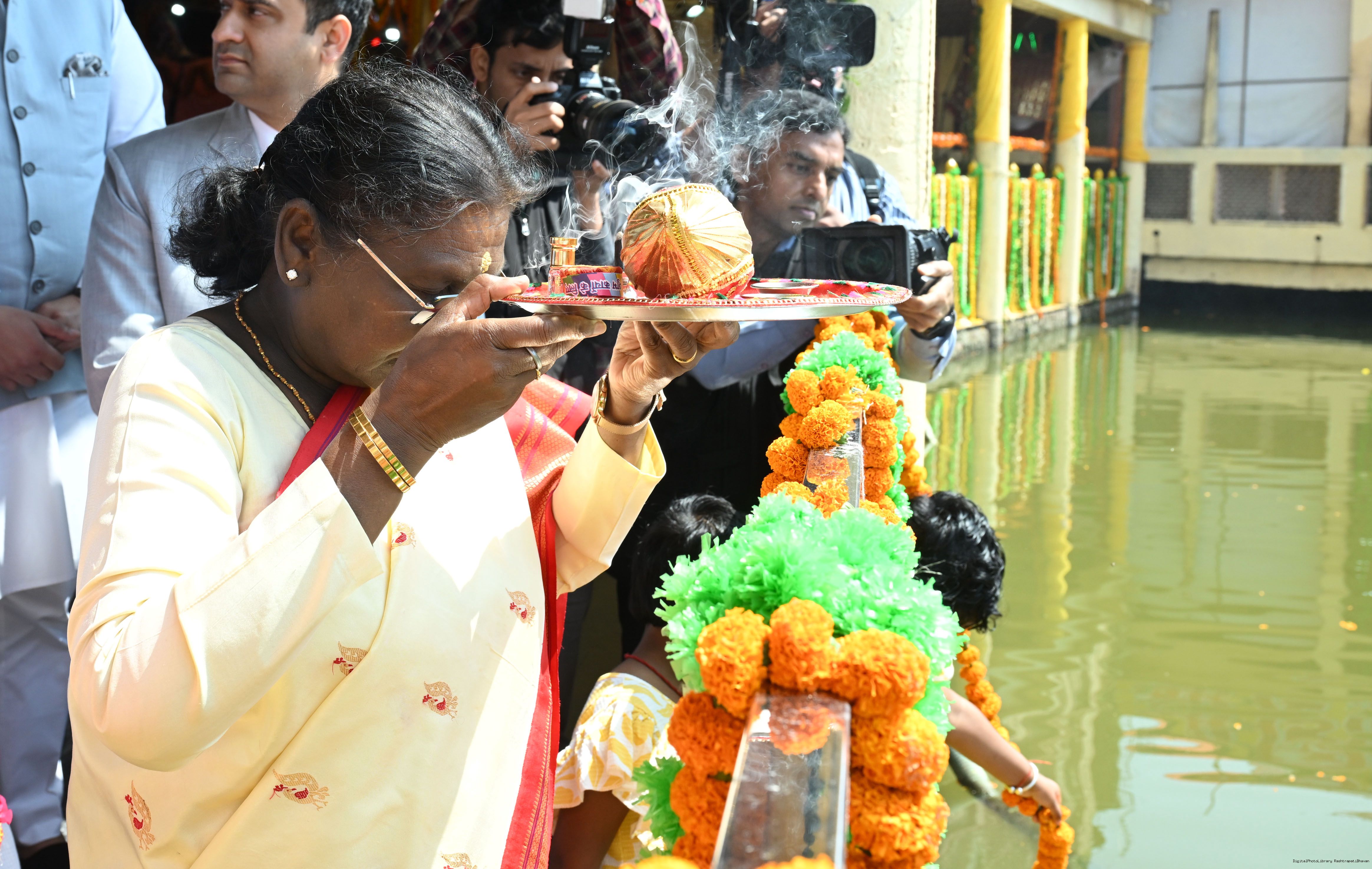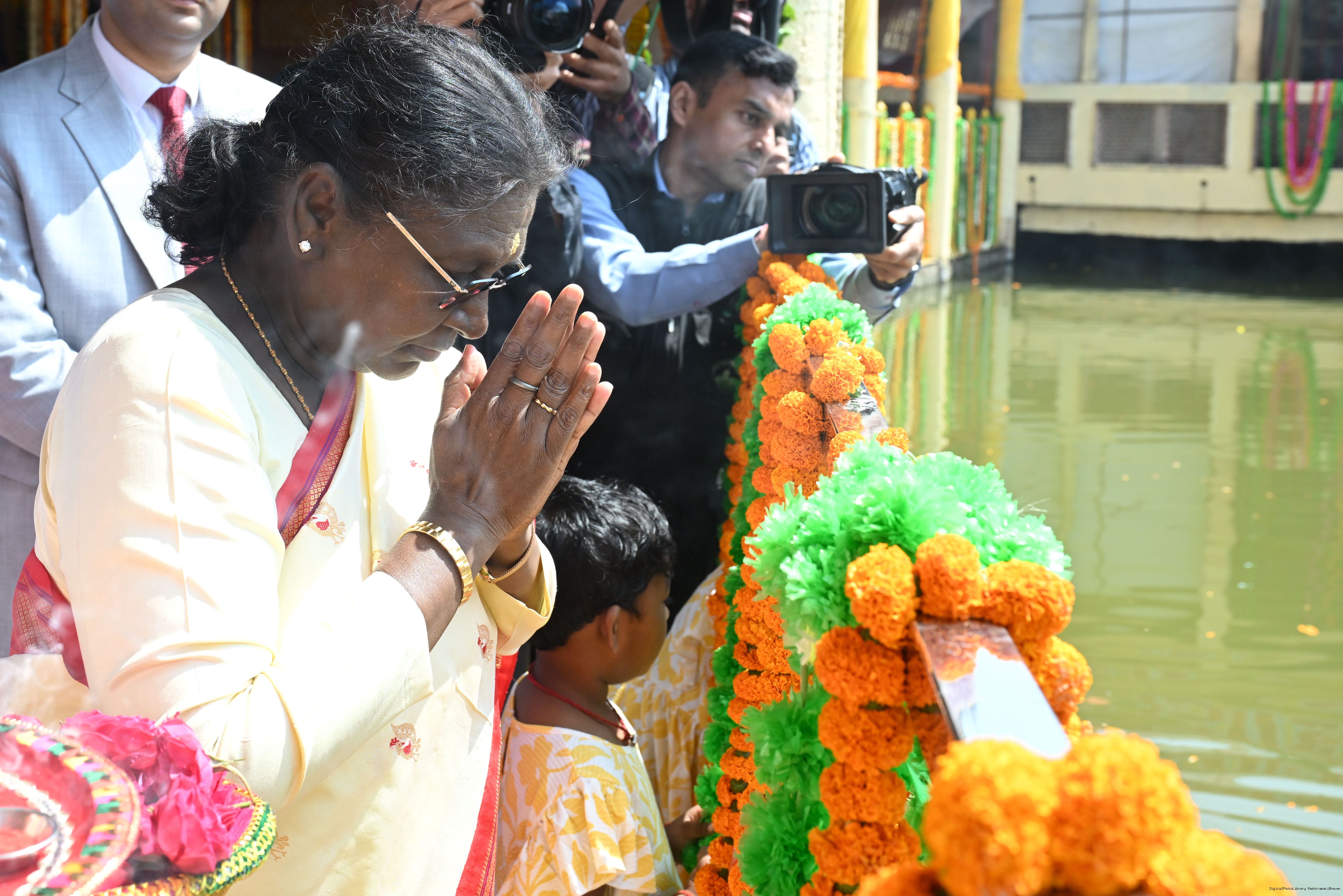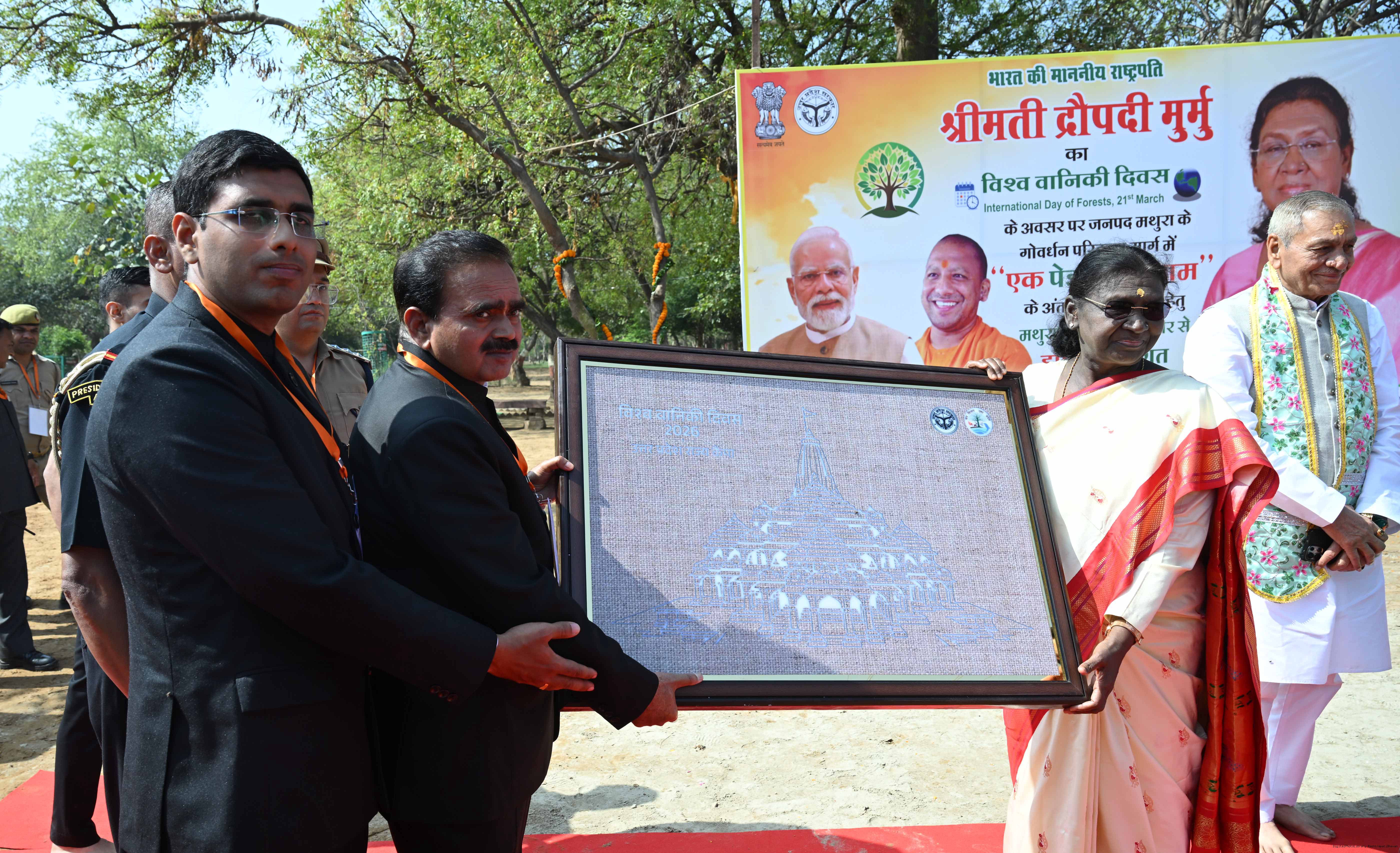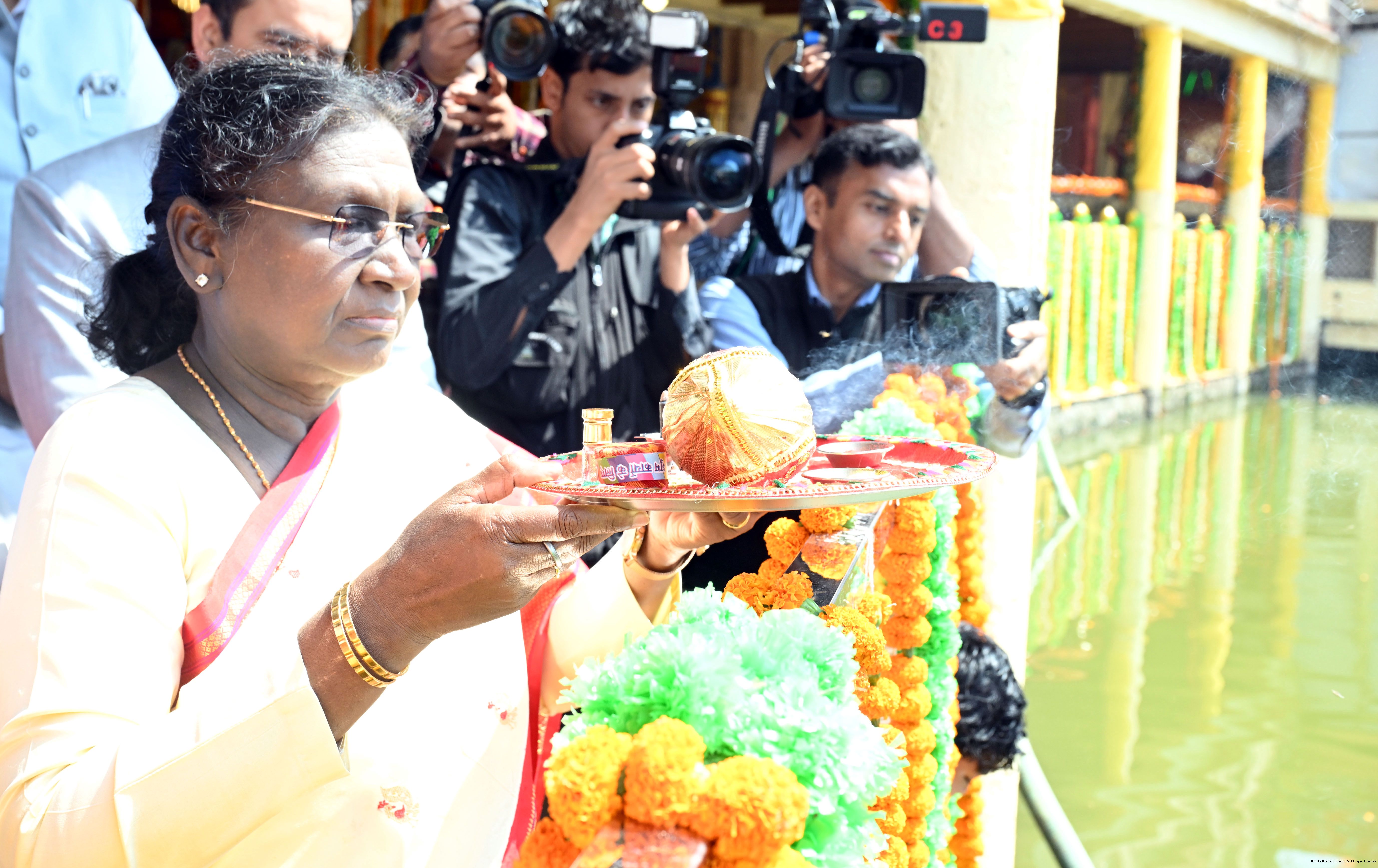 | Caption: | The President of India, Smt Droupadi Murmu had darshan and performed aarti at the Danghati Temple in Mathura and undertook the sacred Govardhan Parikrama on March 21, 2026. |