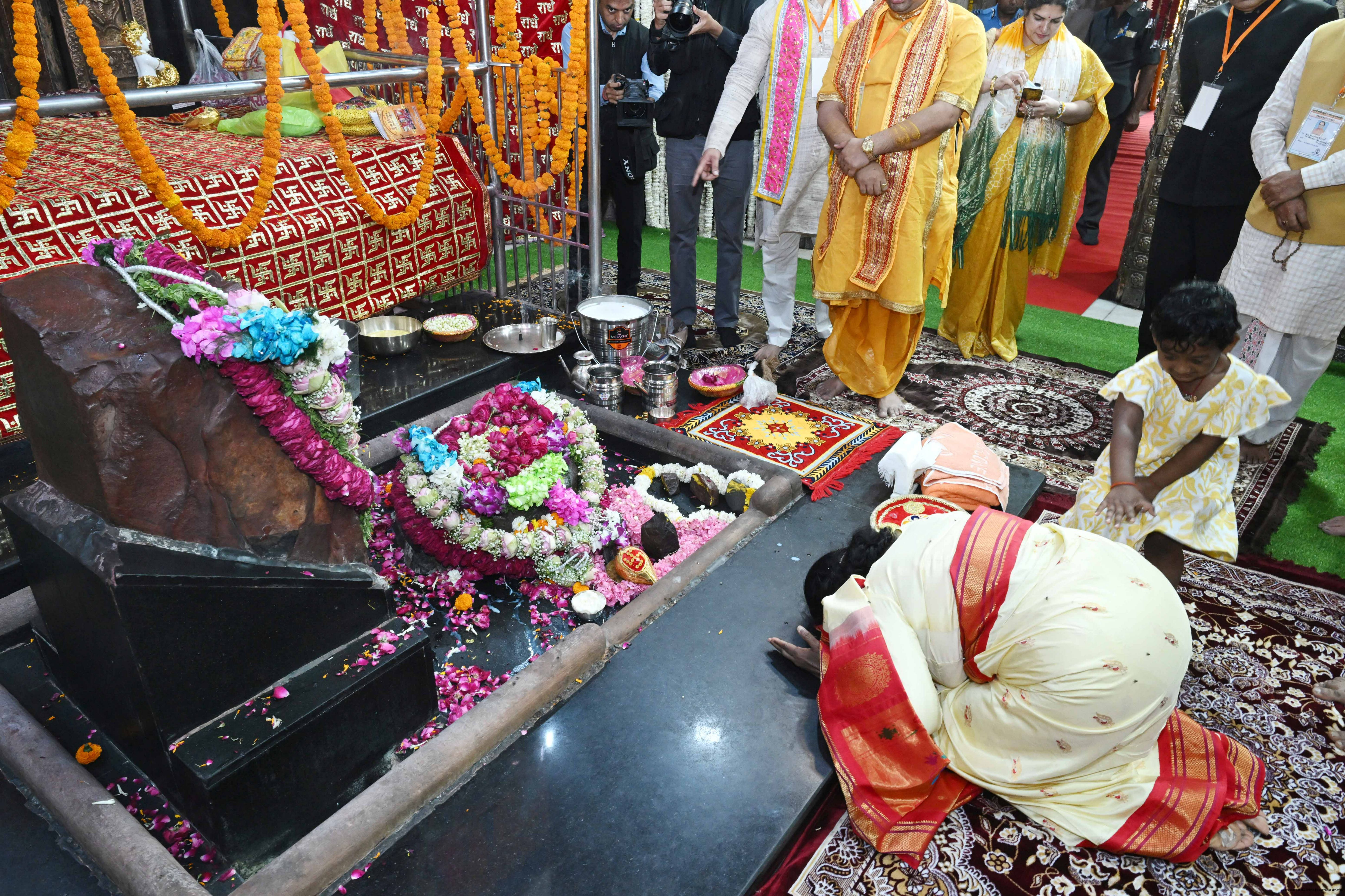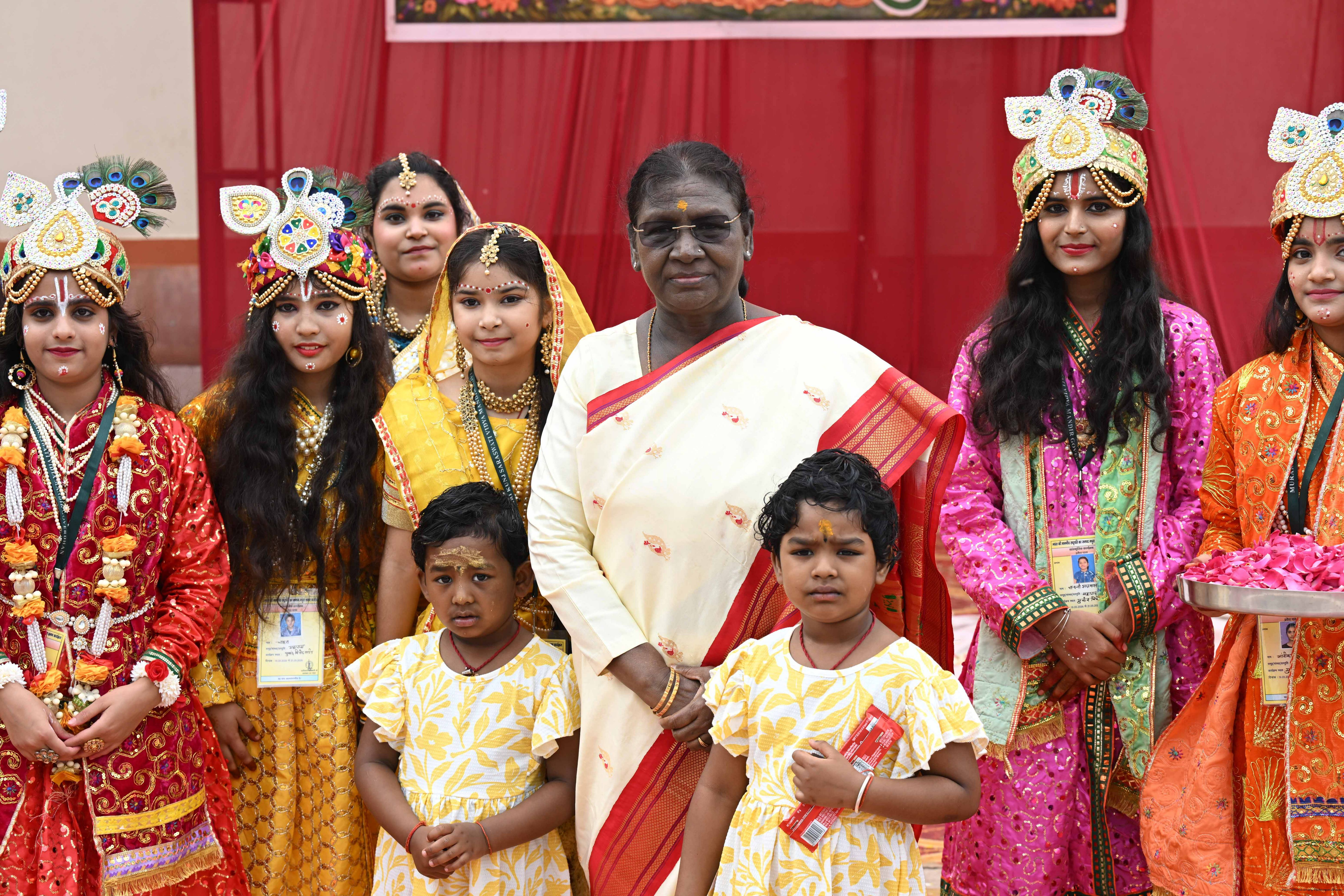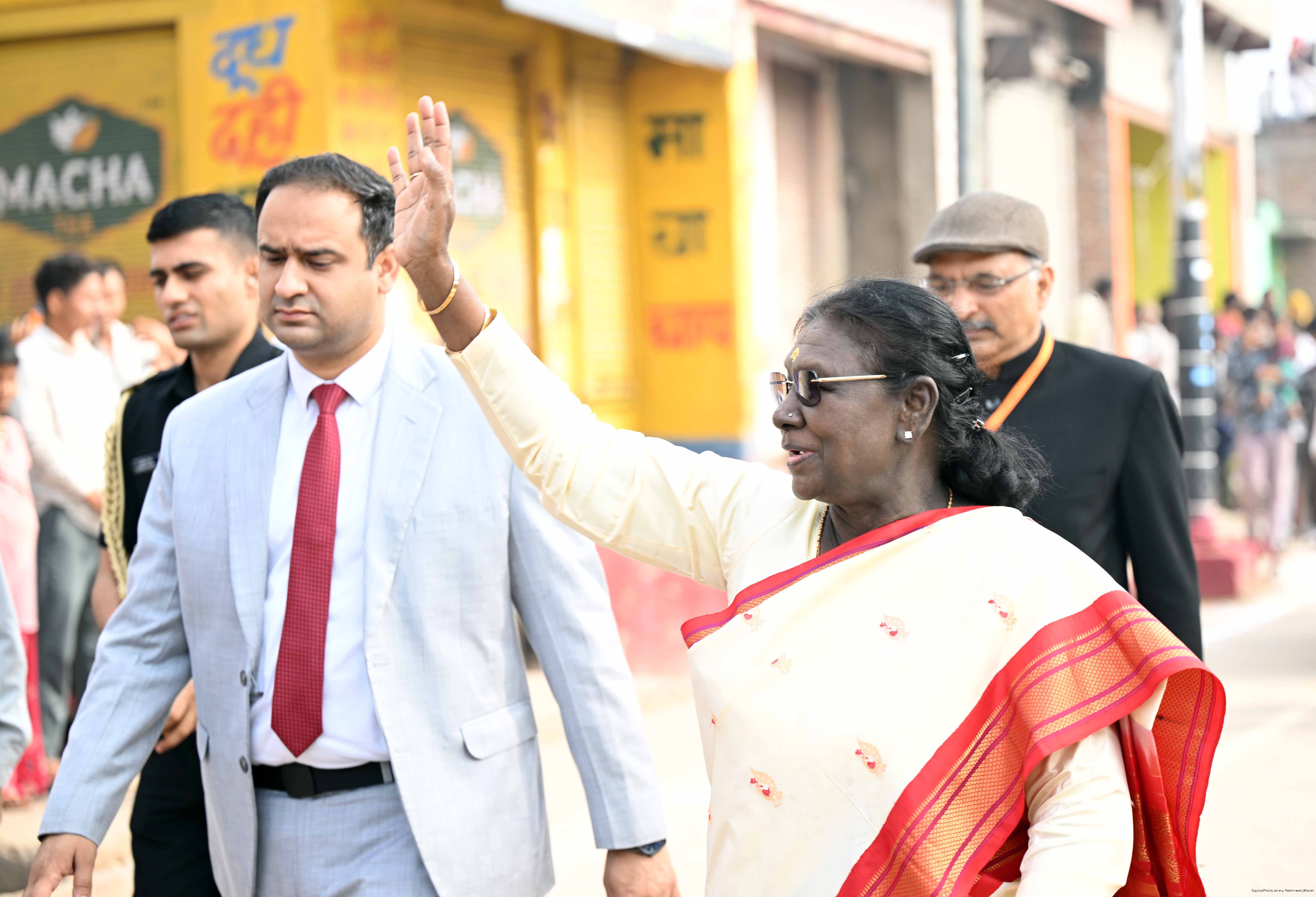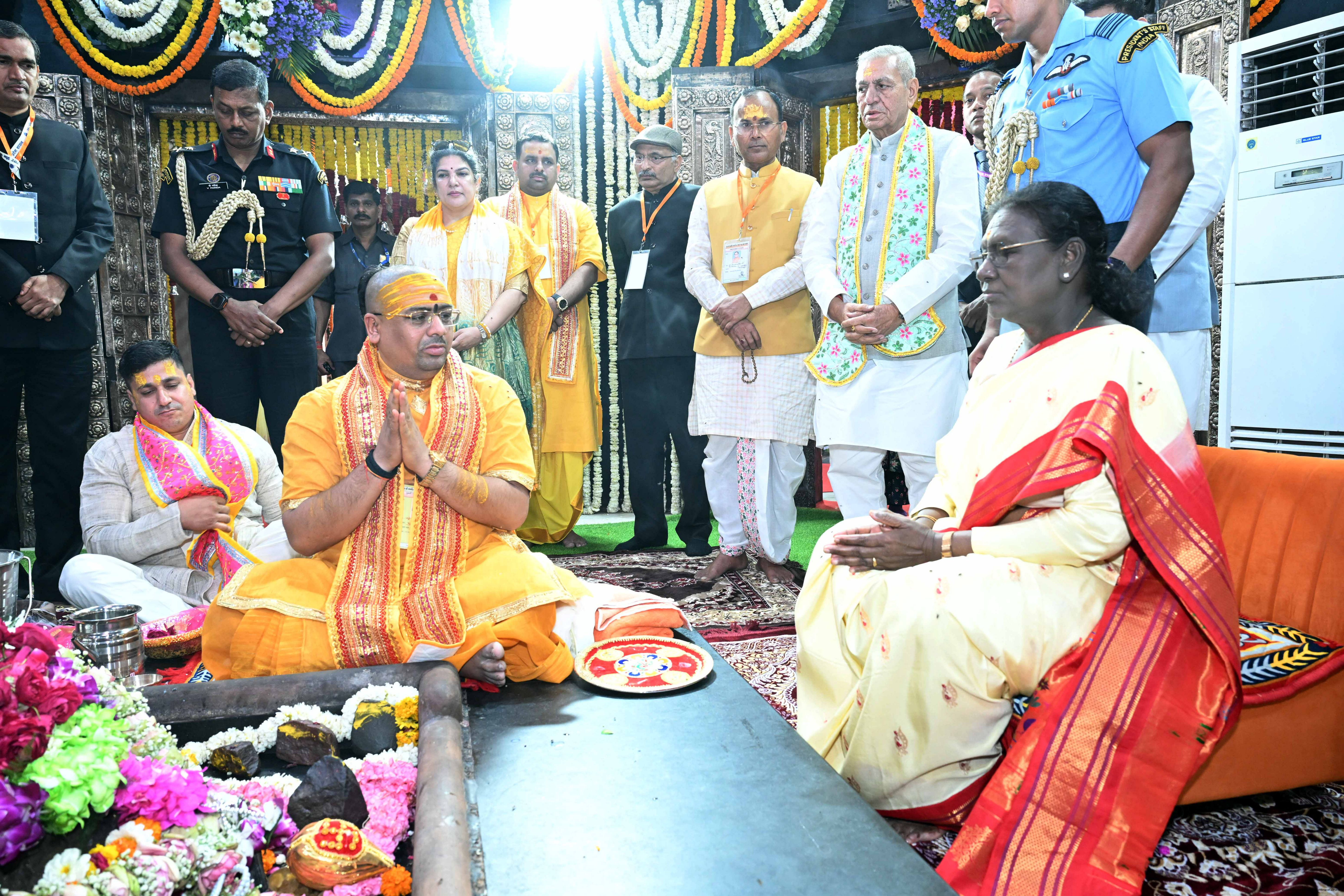| Caption: | The President of India, Smt Droupadi Murmu had darshan and performed aarti at the Danghati Temple in Mathura and undertook the sacred Govardhan Parikrama on March 21, 2026. |