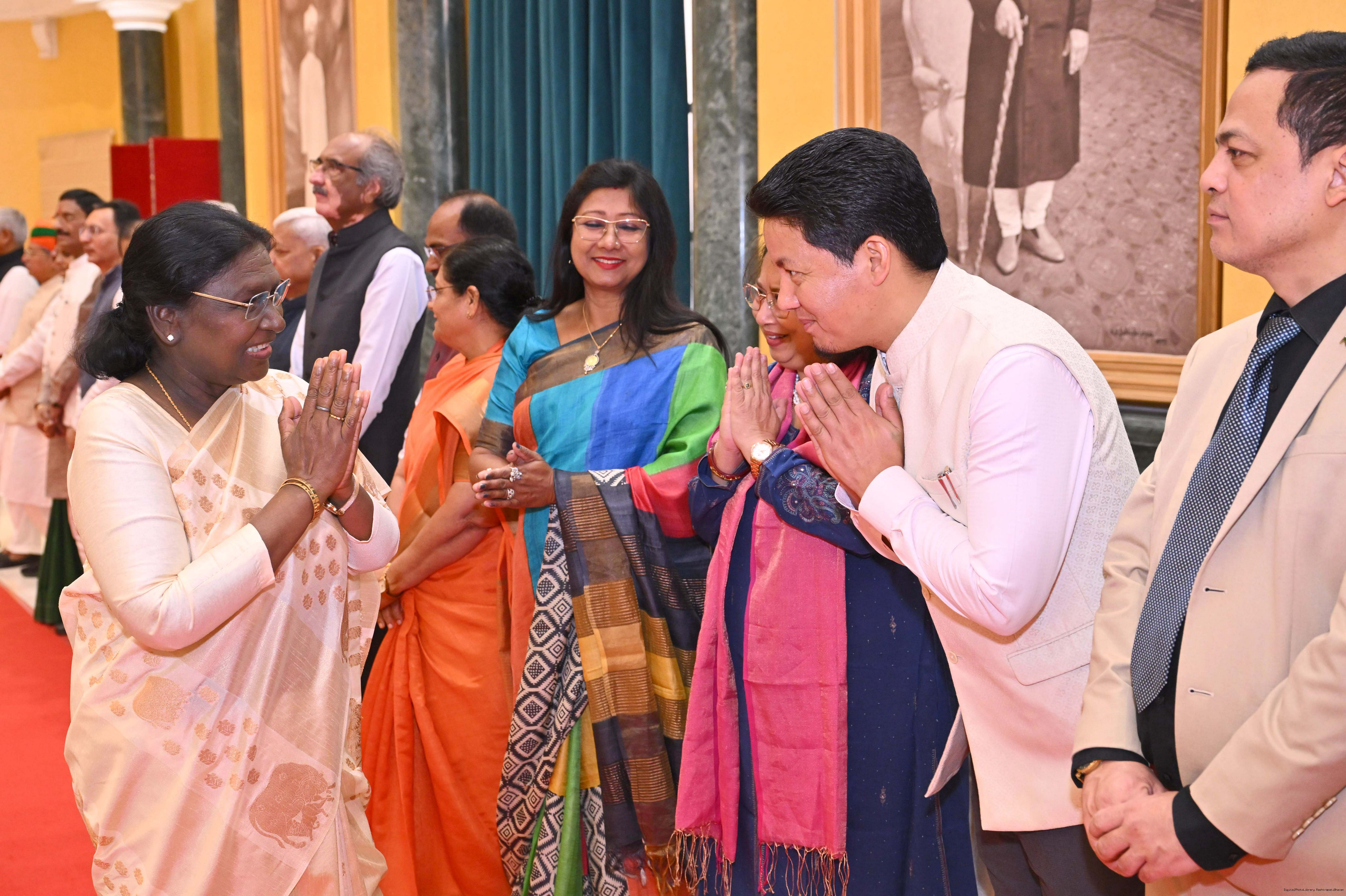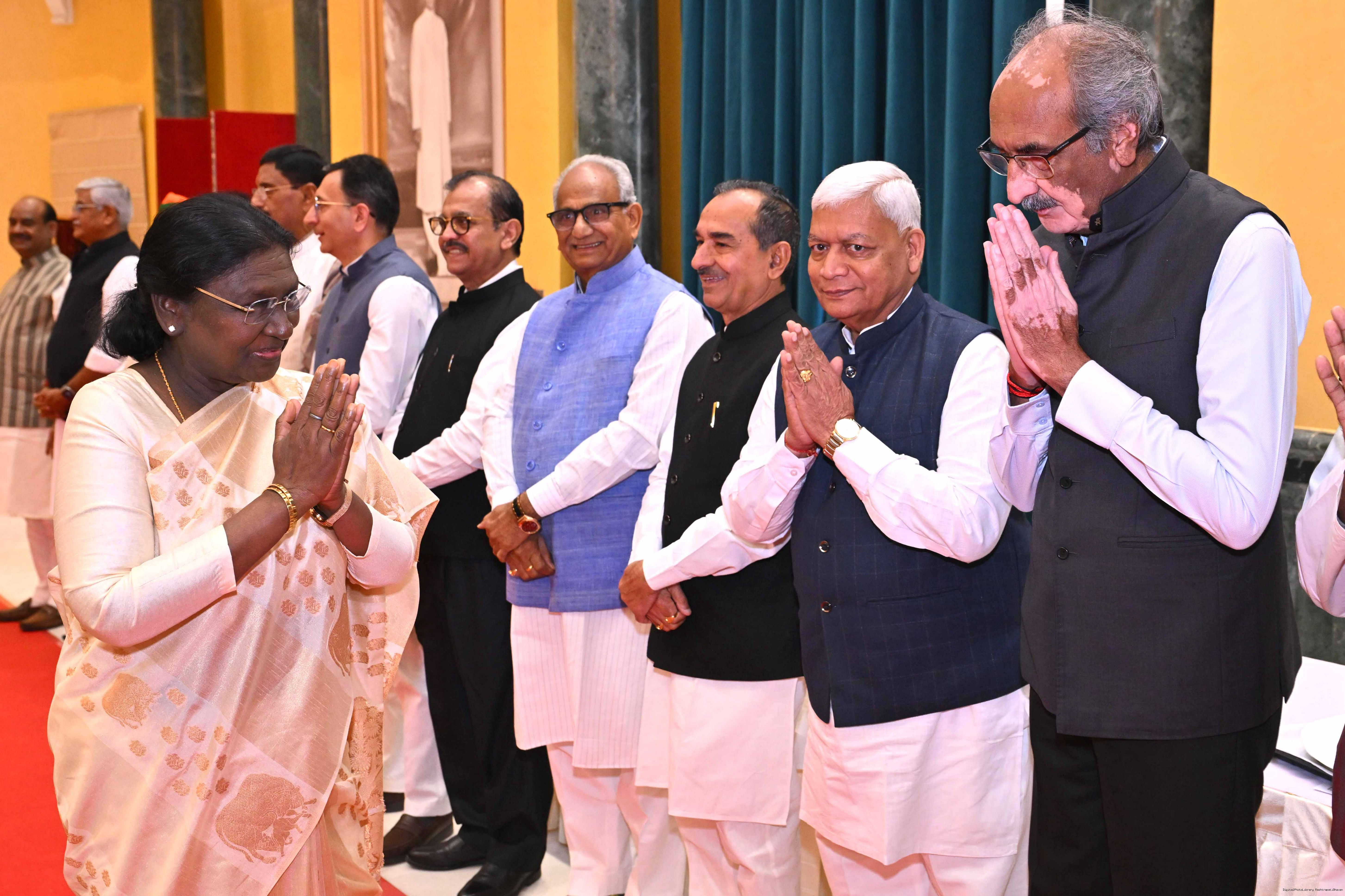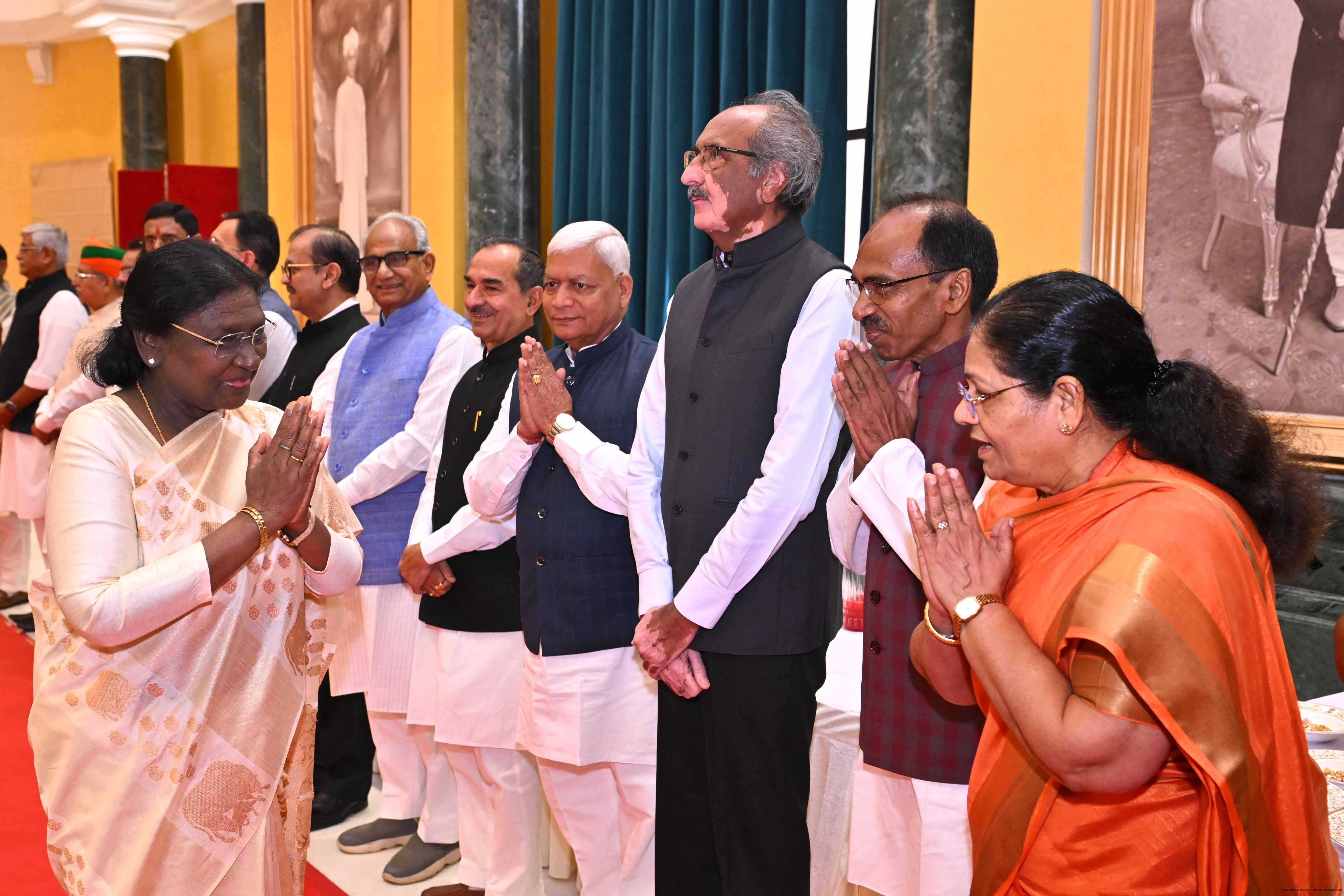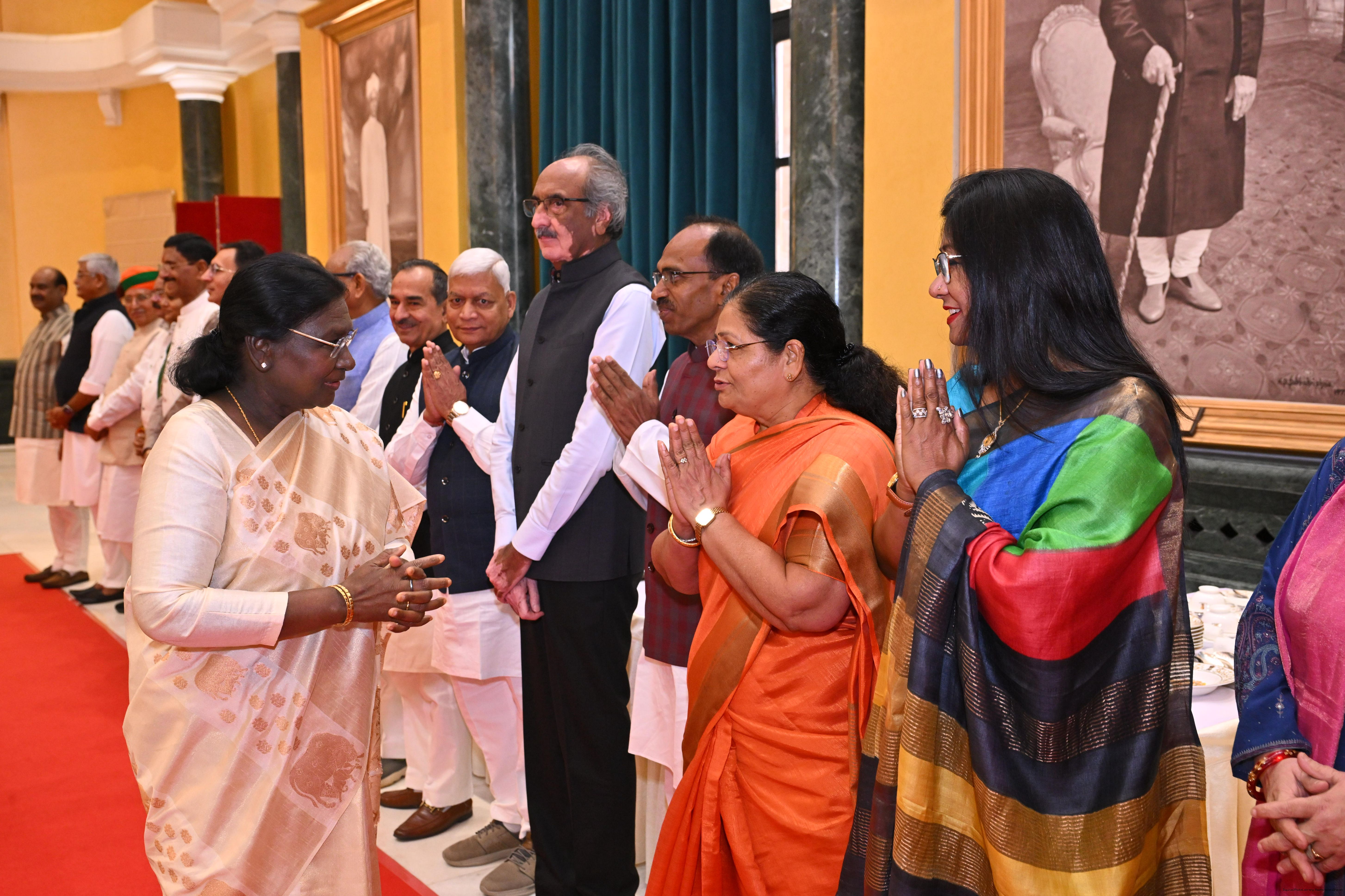 | Caption: | The President of India, Smt Droupadi Murmu hosted Members of Parliament from Uttar Pradesh, Rajasthan, Mizoram, Nagaland, Tripura, Sikkim and Jharkhand for breakfast at Rashtrapati Bhavan Cultural Centre on March 24, 2026. |