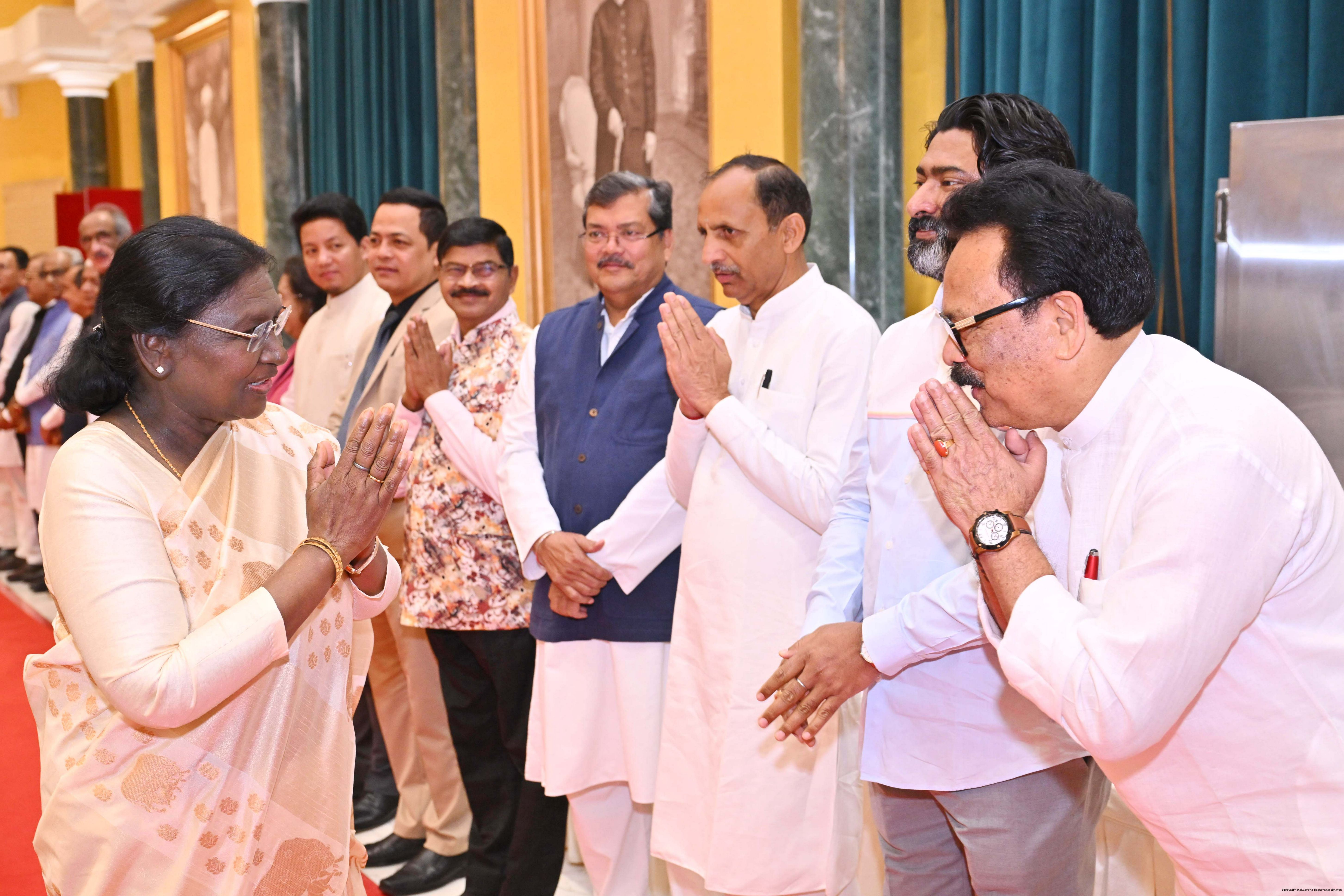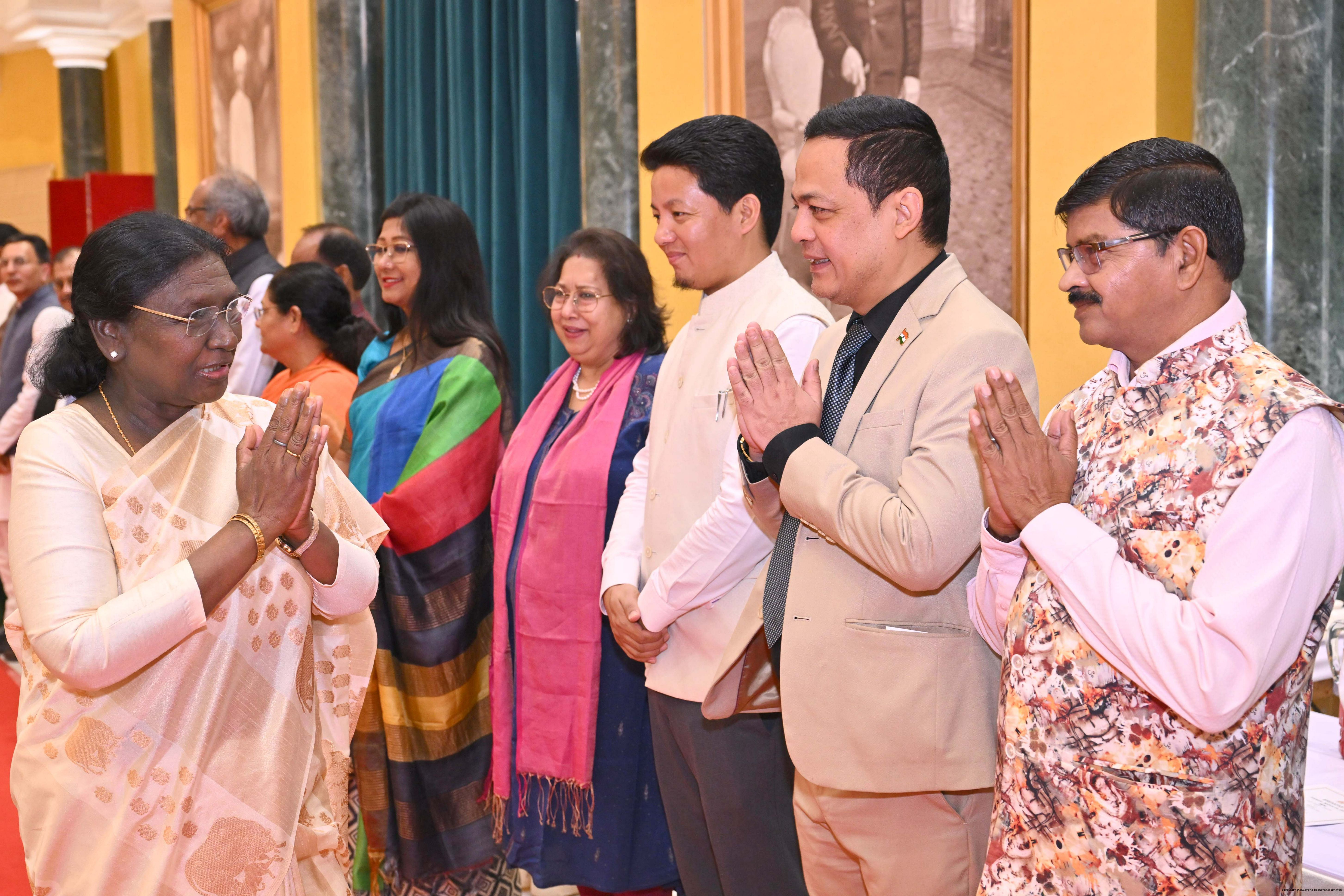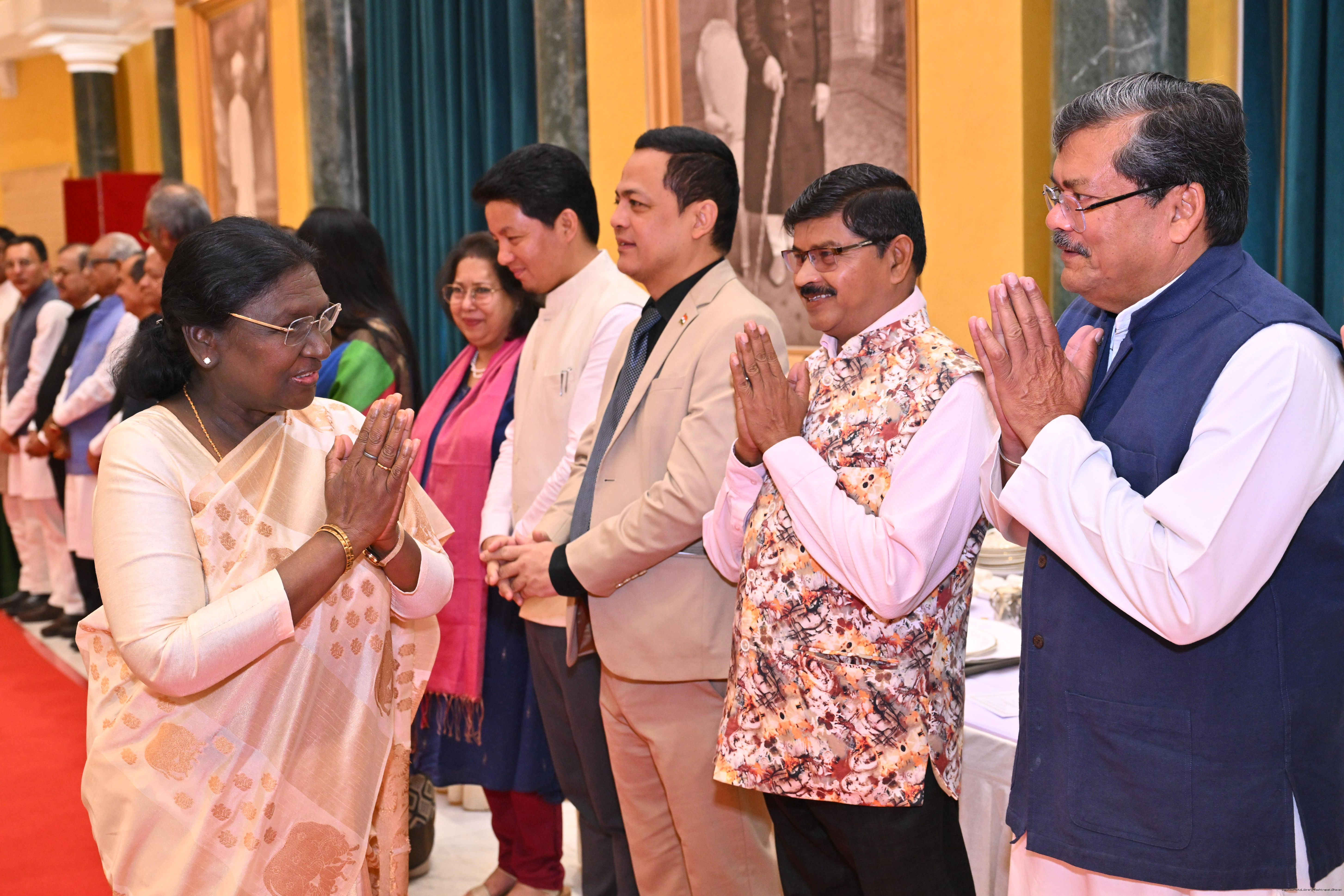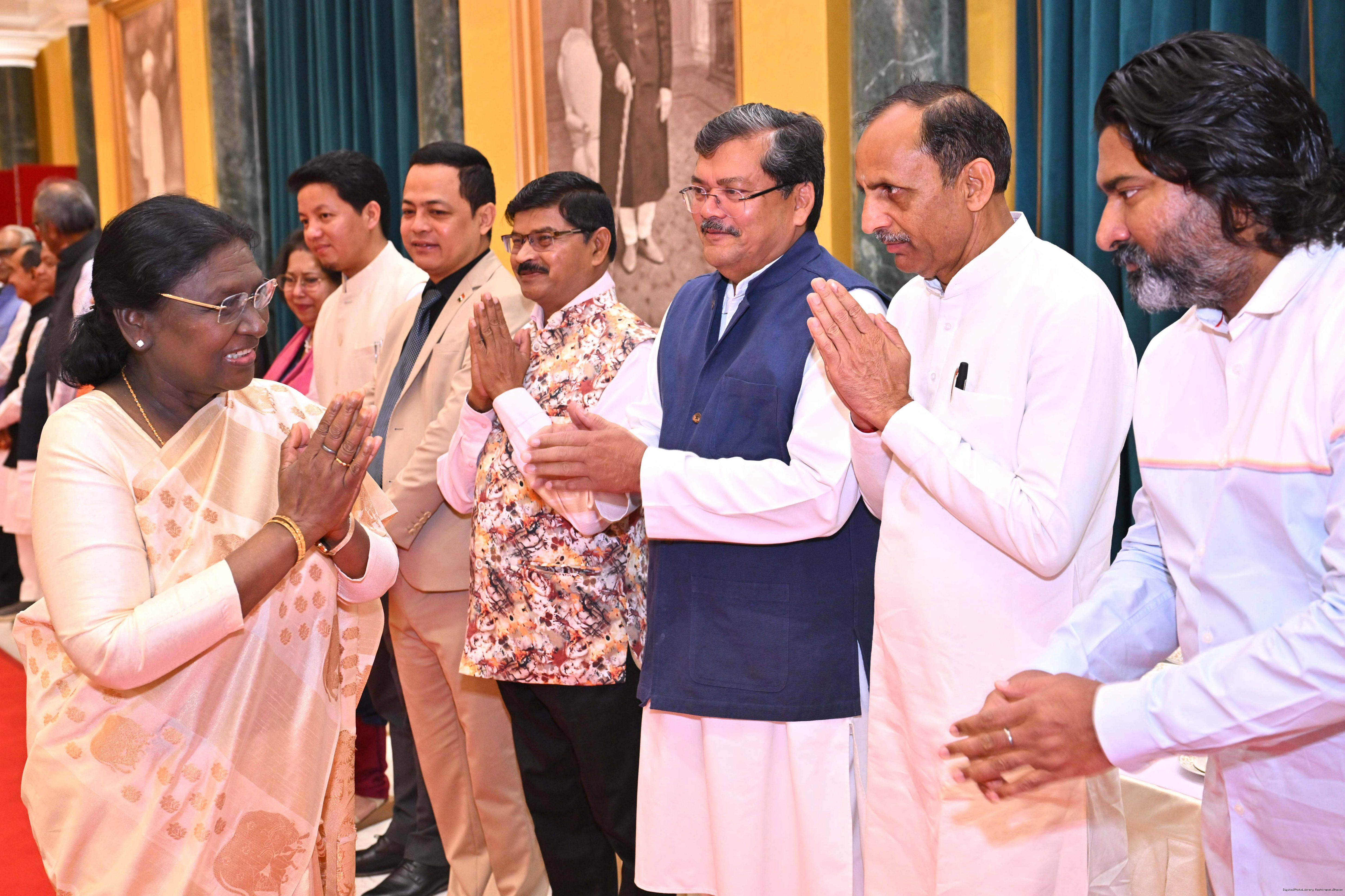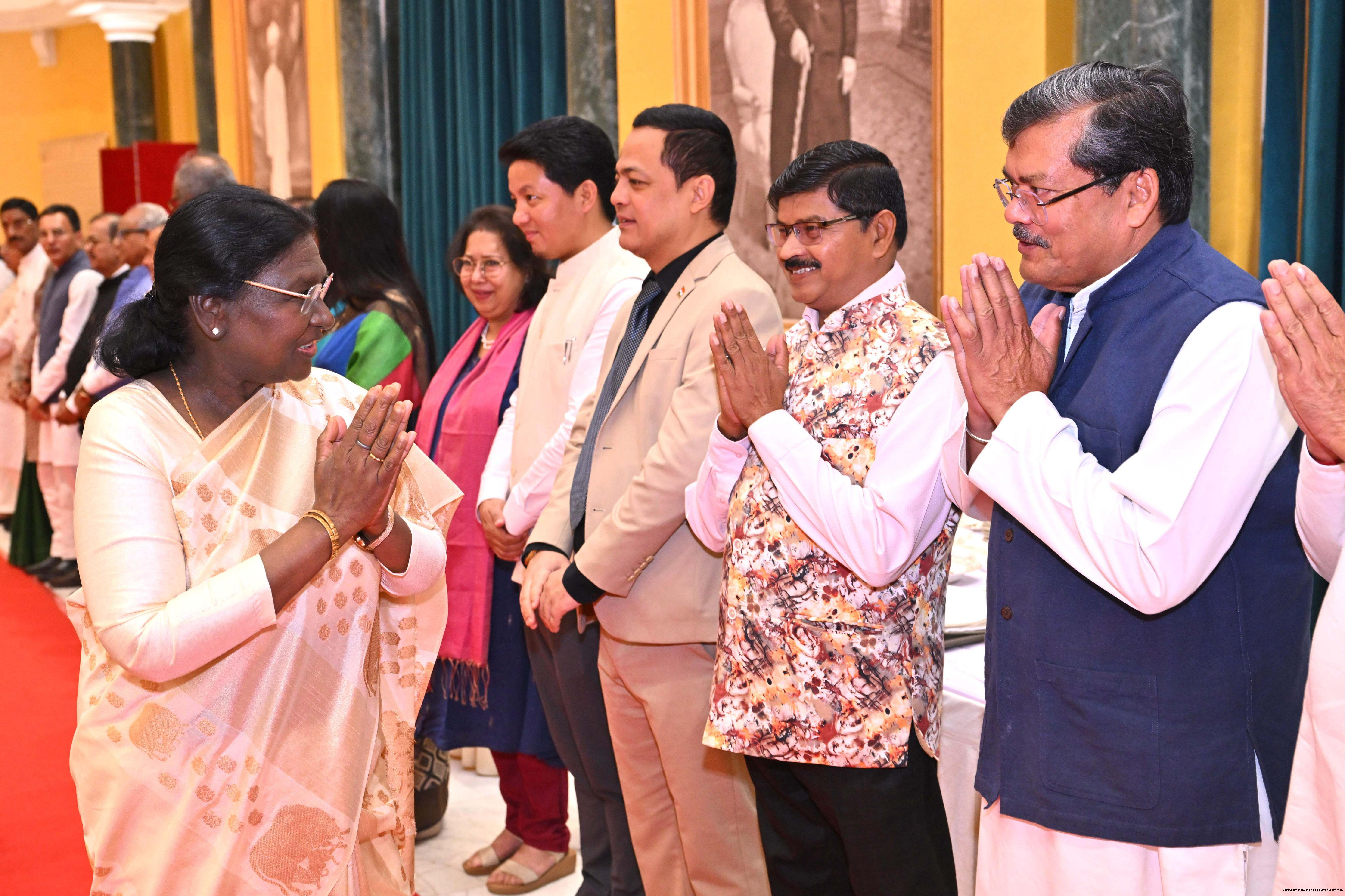| Caption: | The President of India, Smt Droupadi Murmu hosted Members of Parliament from Uttar Pradesh, Rajasthan, Mizoram, Nagaland, Tripura, Sikkim and Jharkhand for breakfast at Rashtrapati Bhavan Cultural Centre on March 24, 2026. |