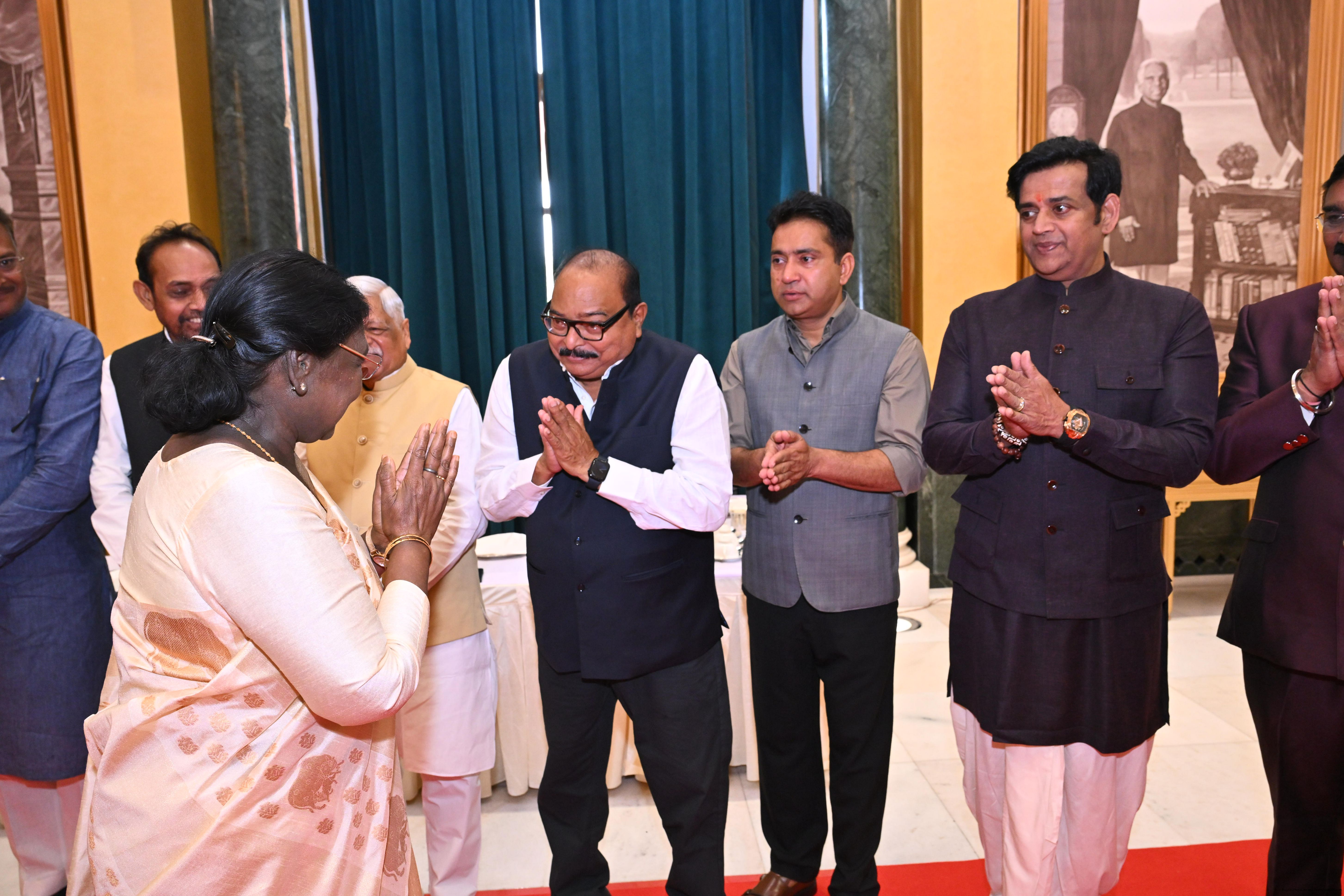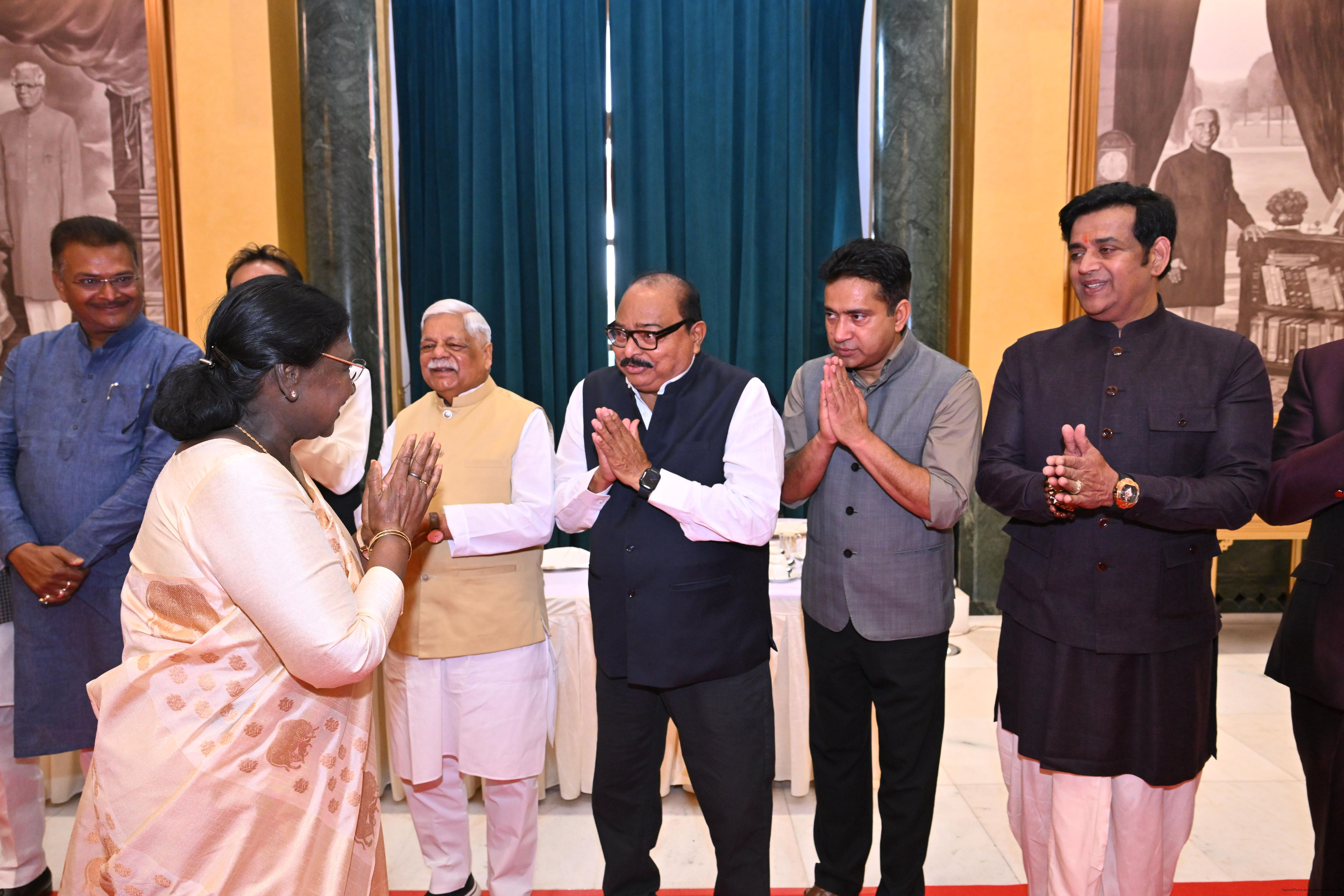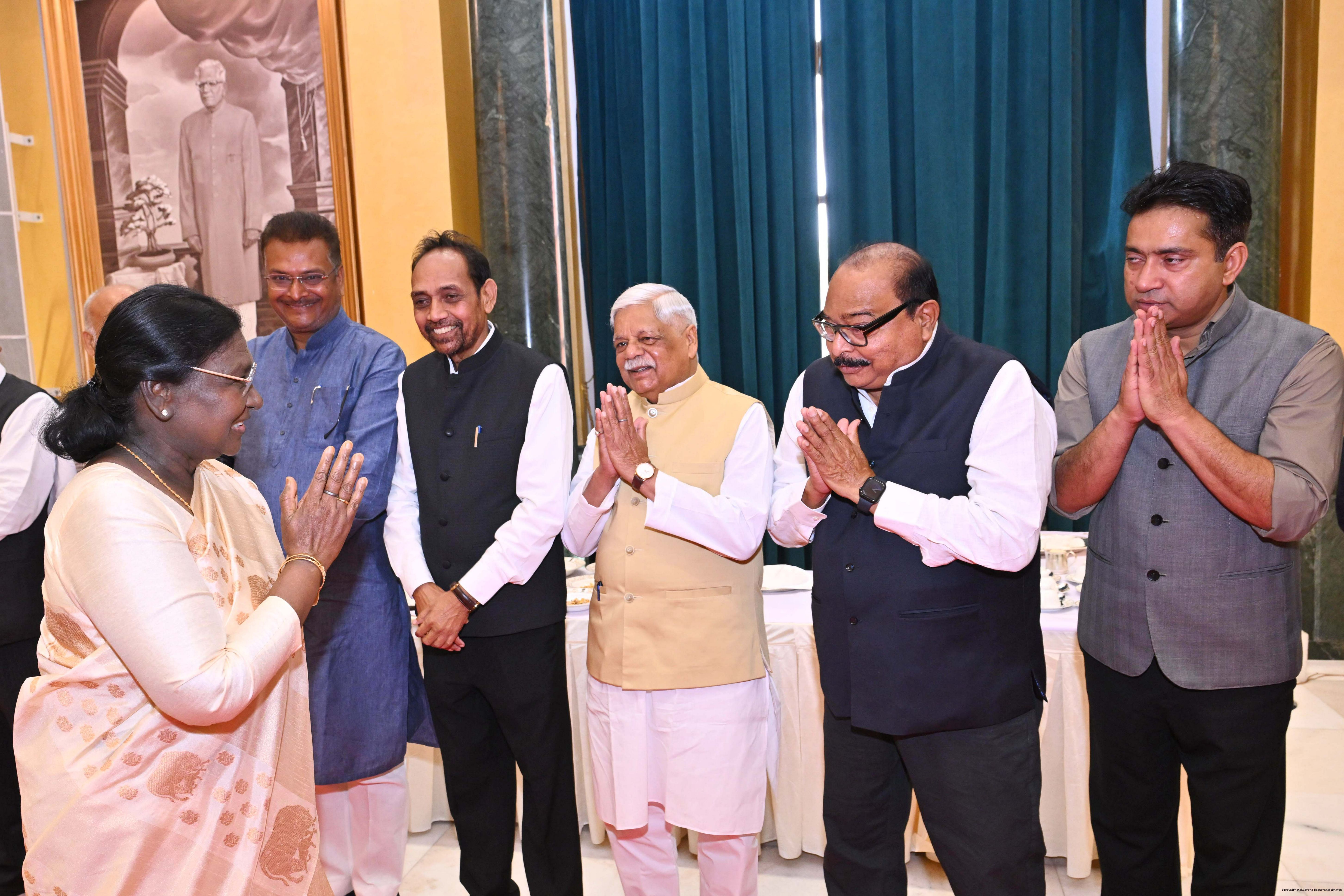 | Caption: | The President of India, Smt Droupadi Murmu hosted Members of Parliament from Uttar Pradesh, Rajasthan, Mizoram, Nagaland, Tripura, Sikkim and Jharkhand for breakfast at Rashtrapati Bhavan Cultural Centre on March 24, 2026. |