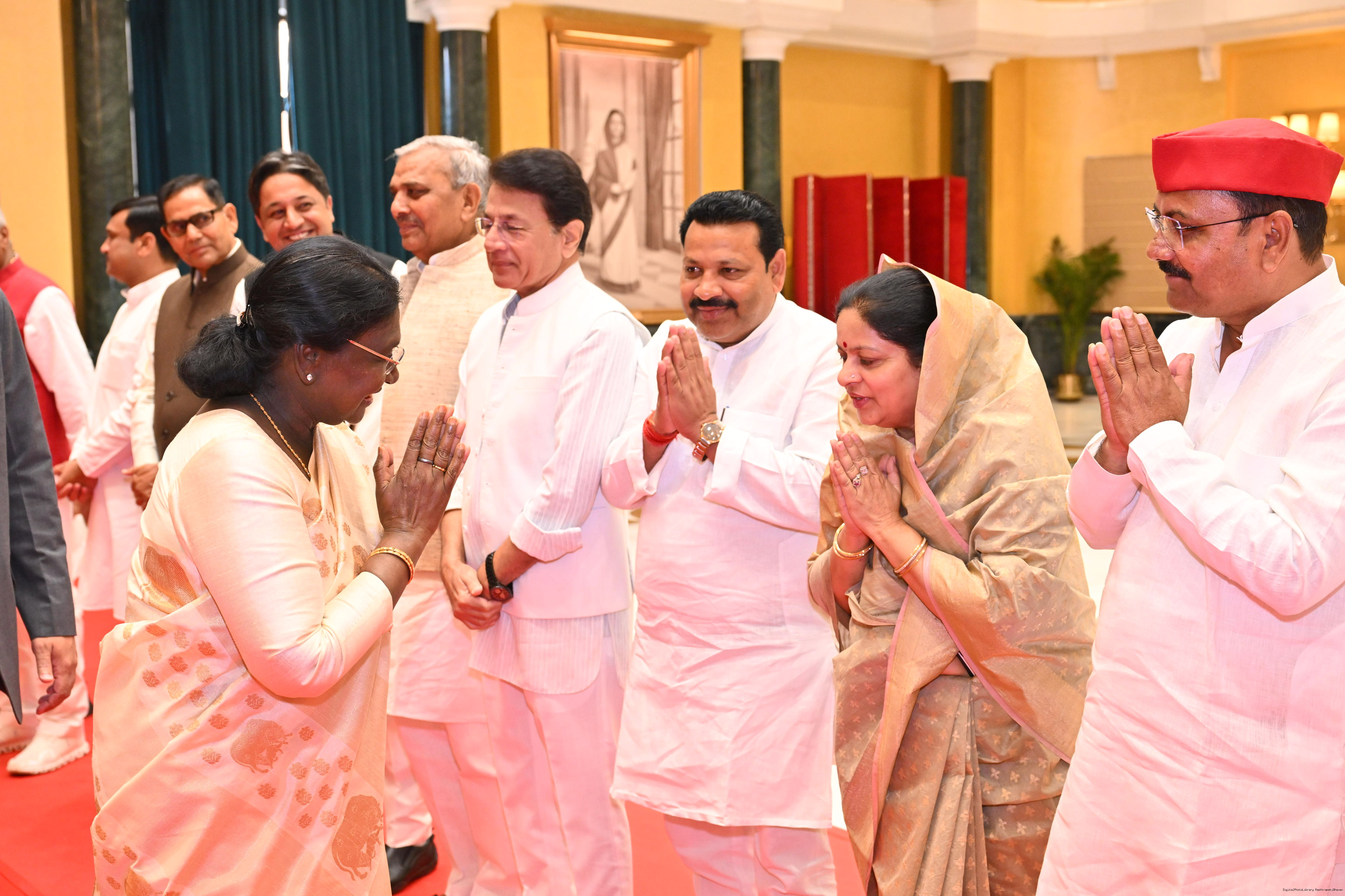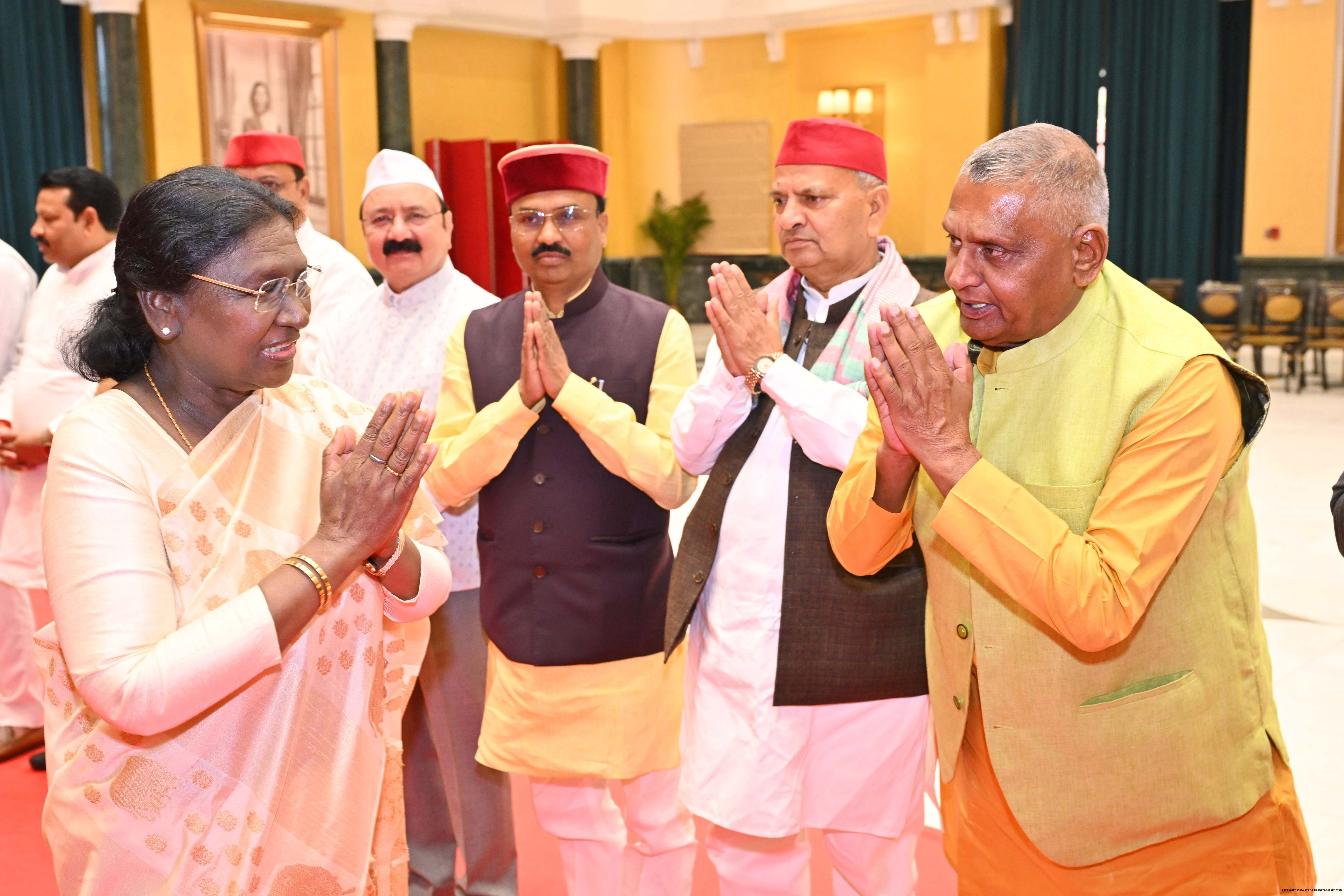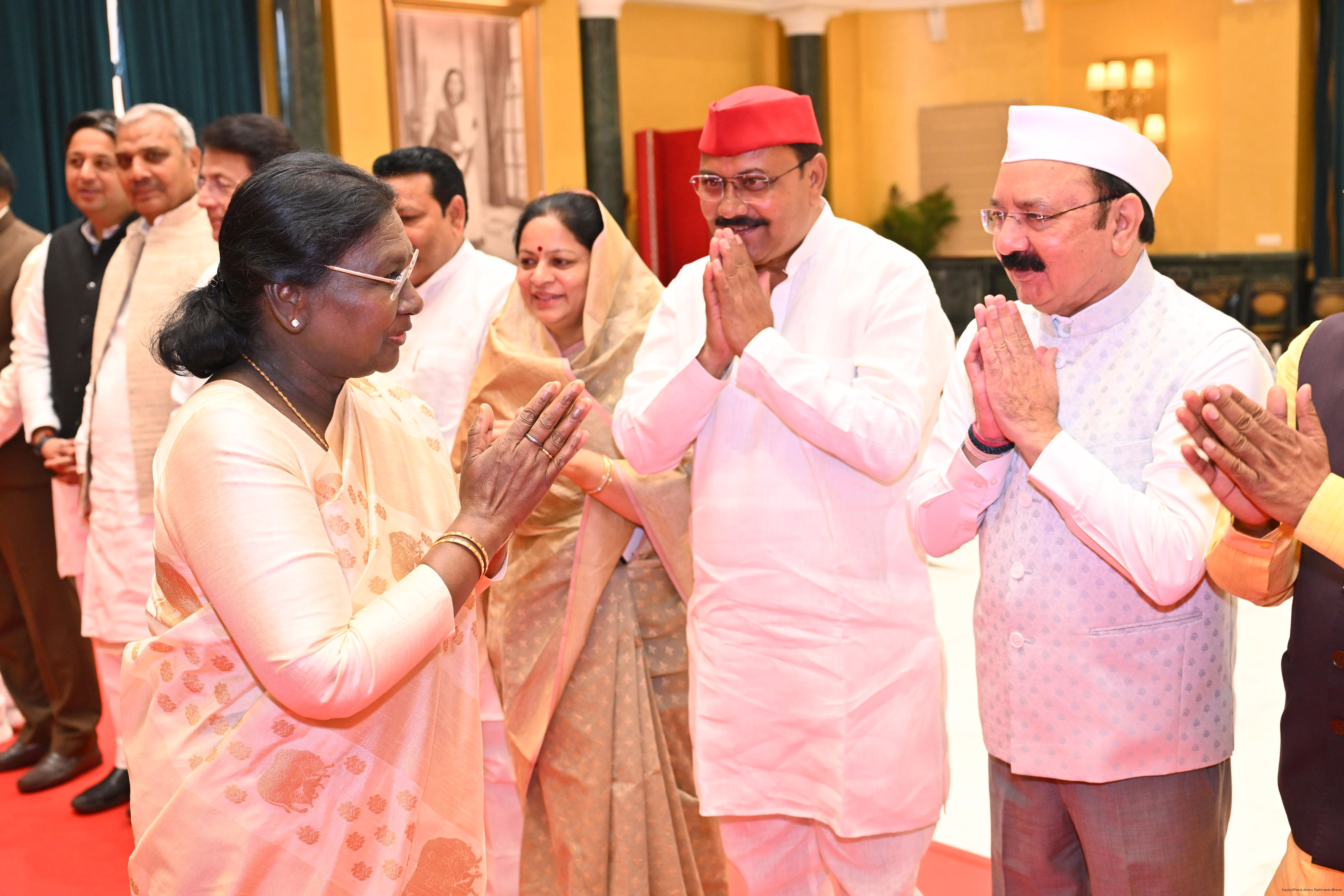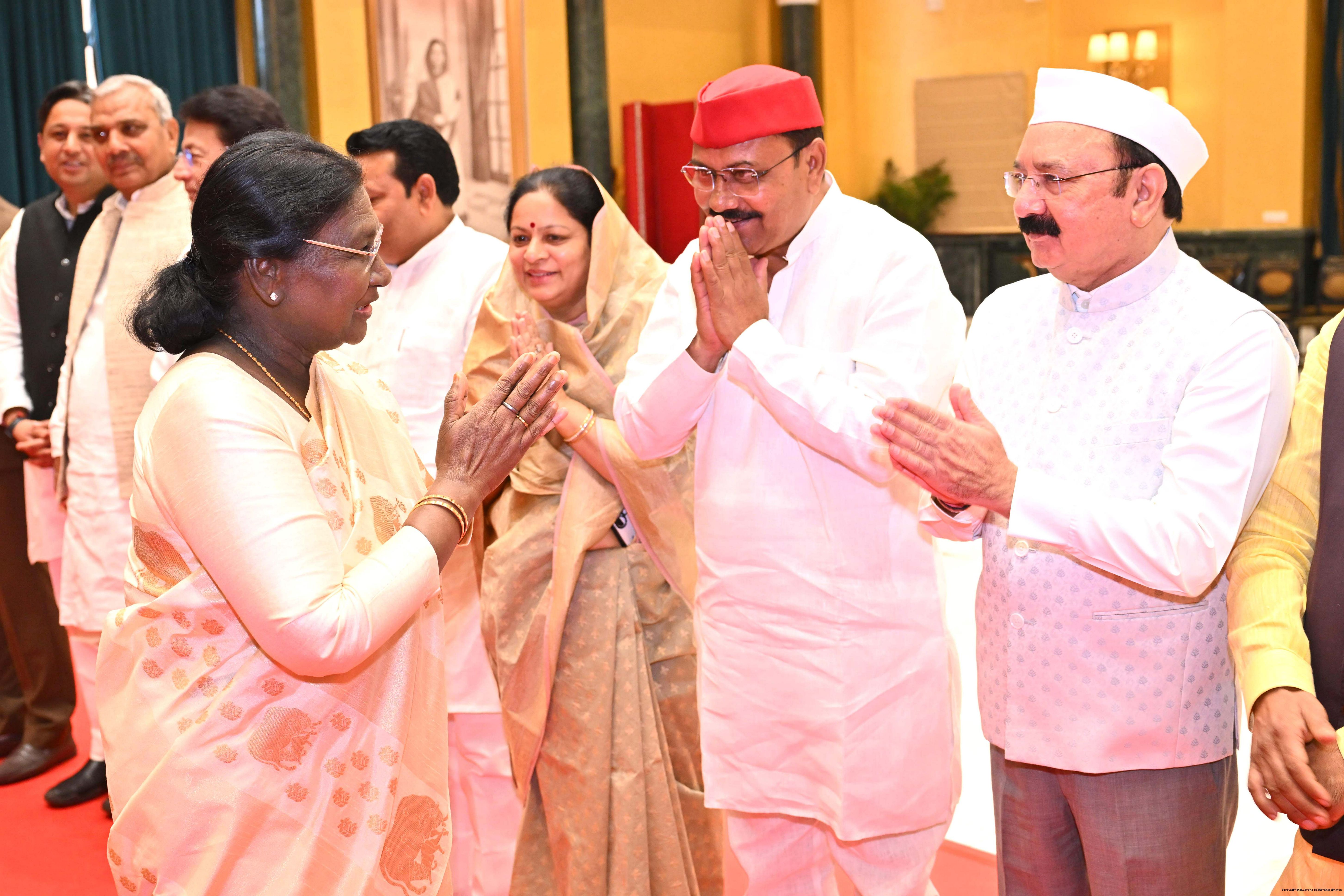 | Caption: | The President of India, Smt Droupadi Murmu hosted Members of Parliament from Uttar Pradesh, Rajasthan, Mizoram, Nagaland, Tripura, Sikkim and Jharkhand for breakfast at Rashtrapati Bhavan Cultural Centre on March 24, 2026. |