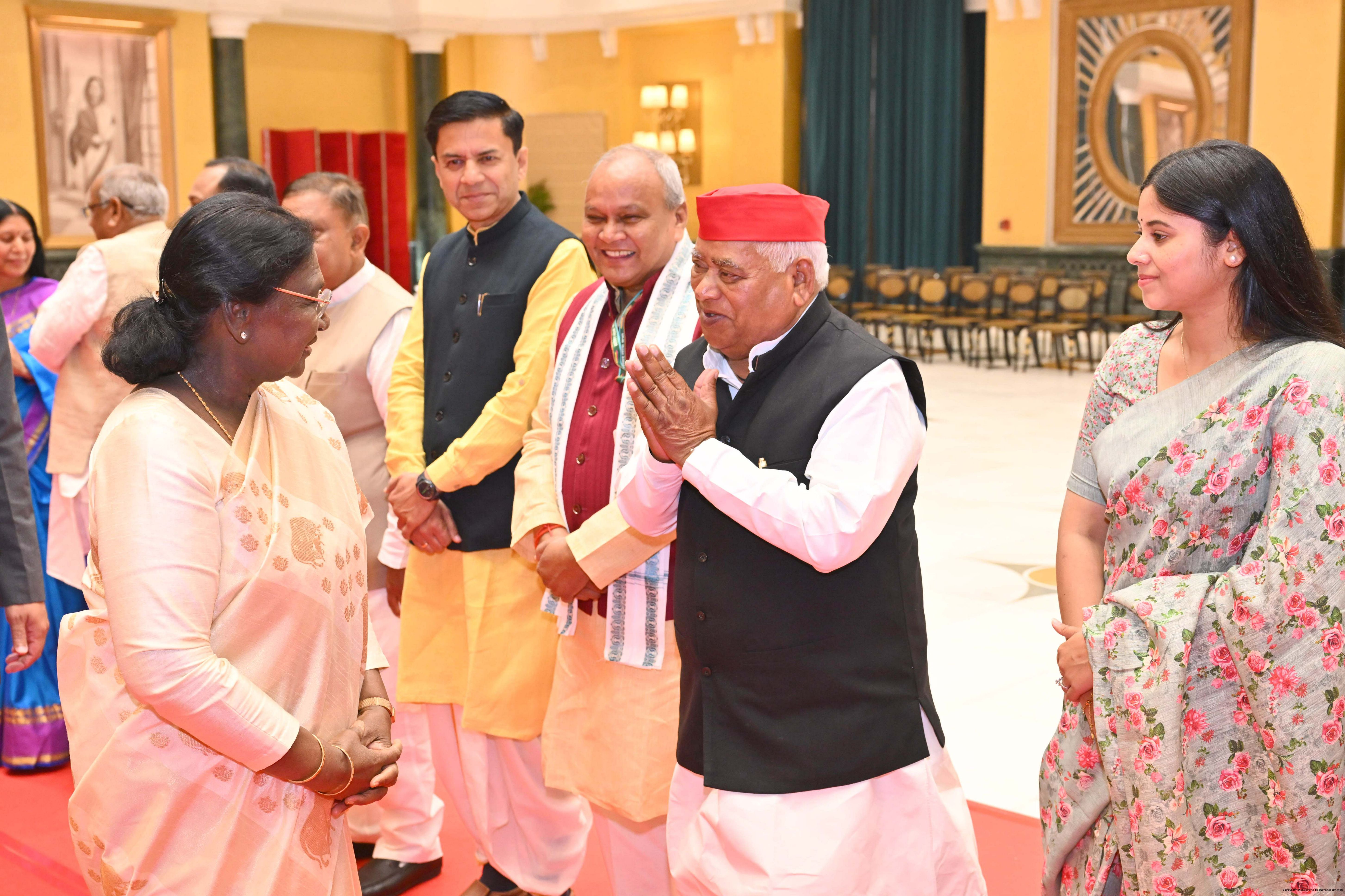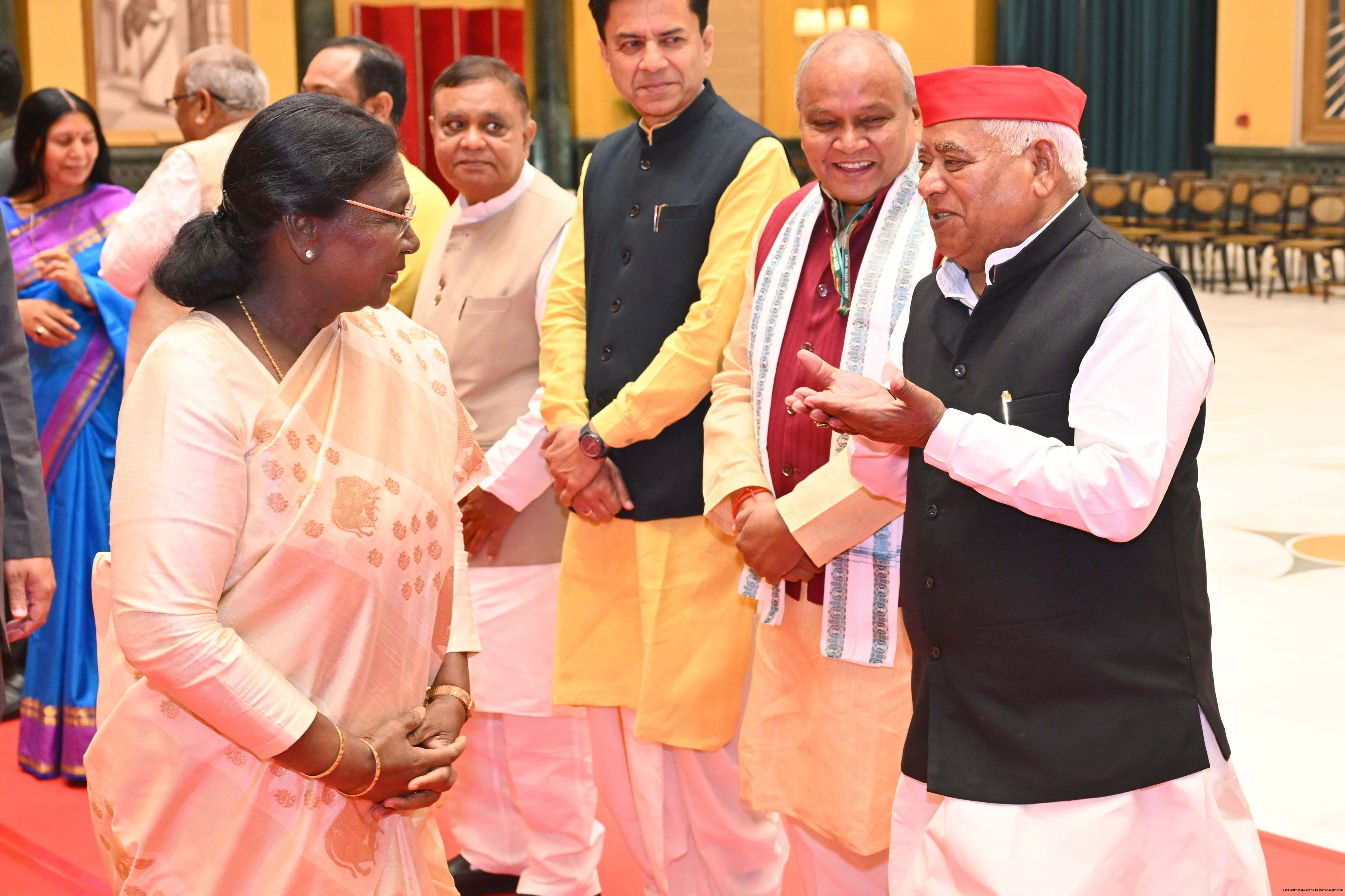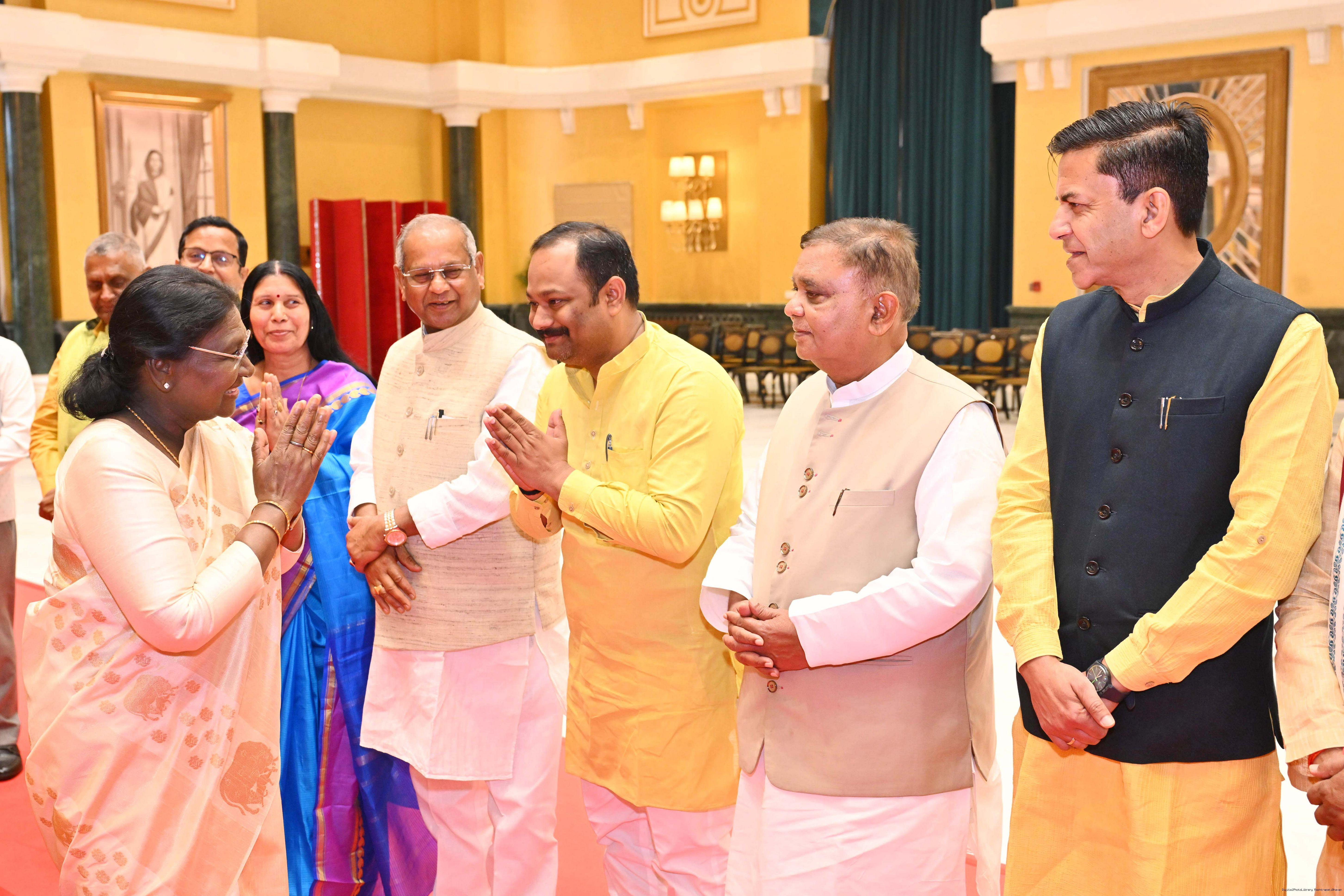 | Caption: | The President of India, Smt Droupadi Murmu hosted Members of Parliament from Uttar Pradesh, Rajasthan, Mizoram, Nagaland, Tripura, Sikkim and Jharkhand for breakfast at Rashtrapati Bhavan Cultural Centre on March 24, 2026. |
