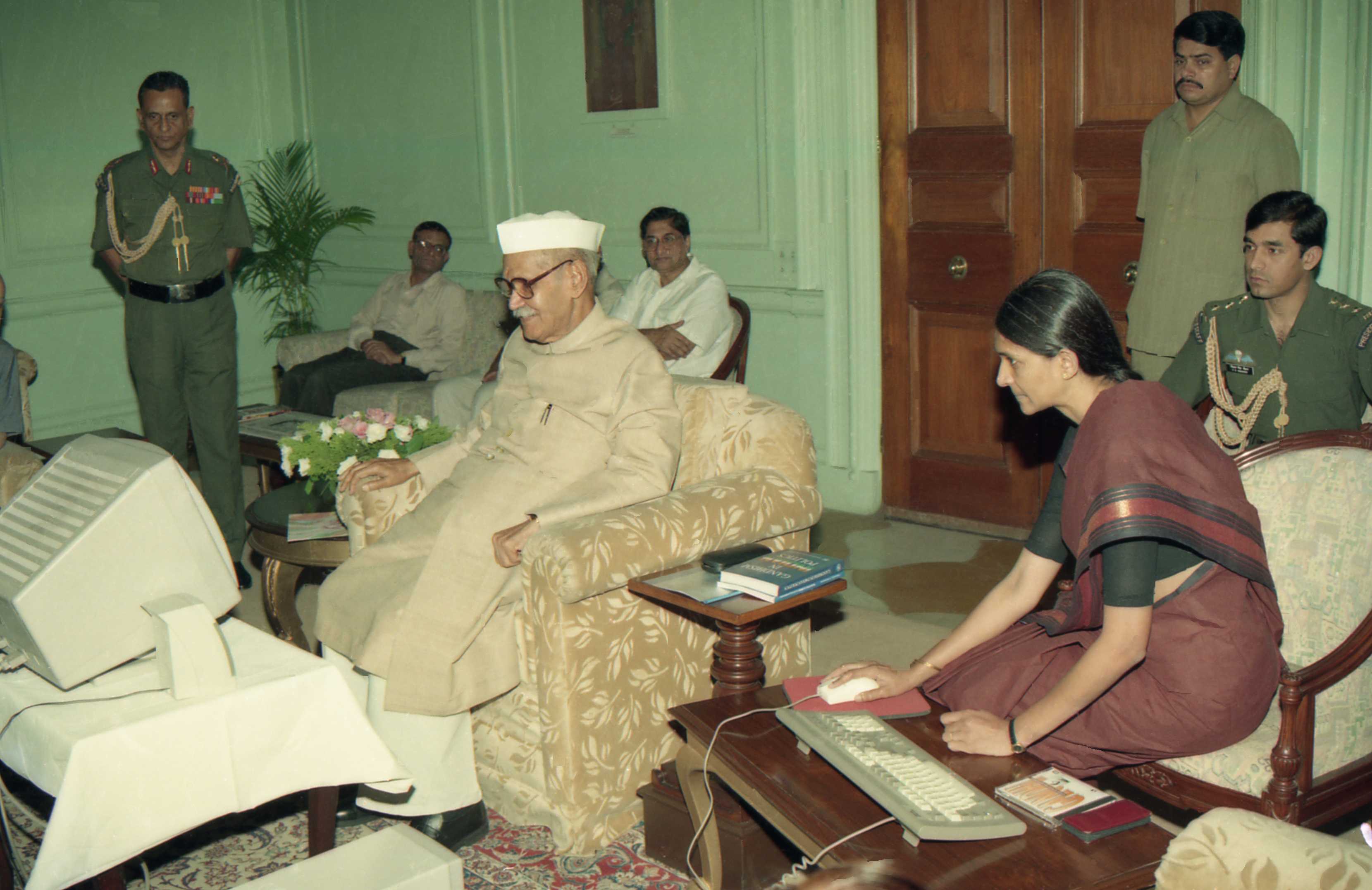 | Caption: | The President of India, Dr. Shankar Dayal Sharma receiving a Multimedia CD-ROM title "Gandhi-Apostle of Peace & Nonviolence" from Shri N. Balasubramaniyan at Rashtrapati Bhavan in New Delhi on October 02, 1996. |