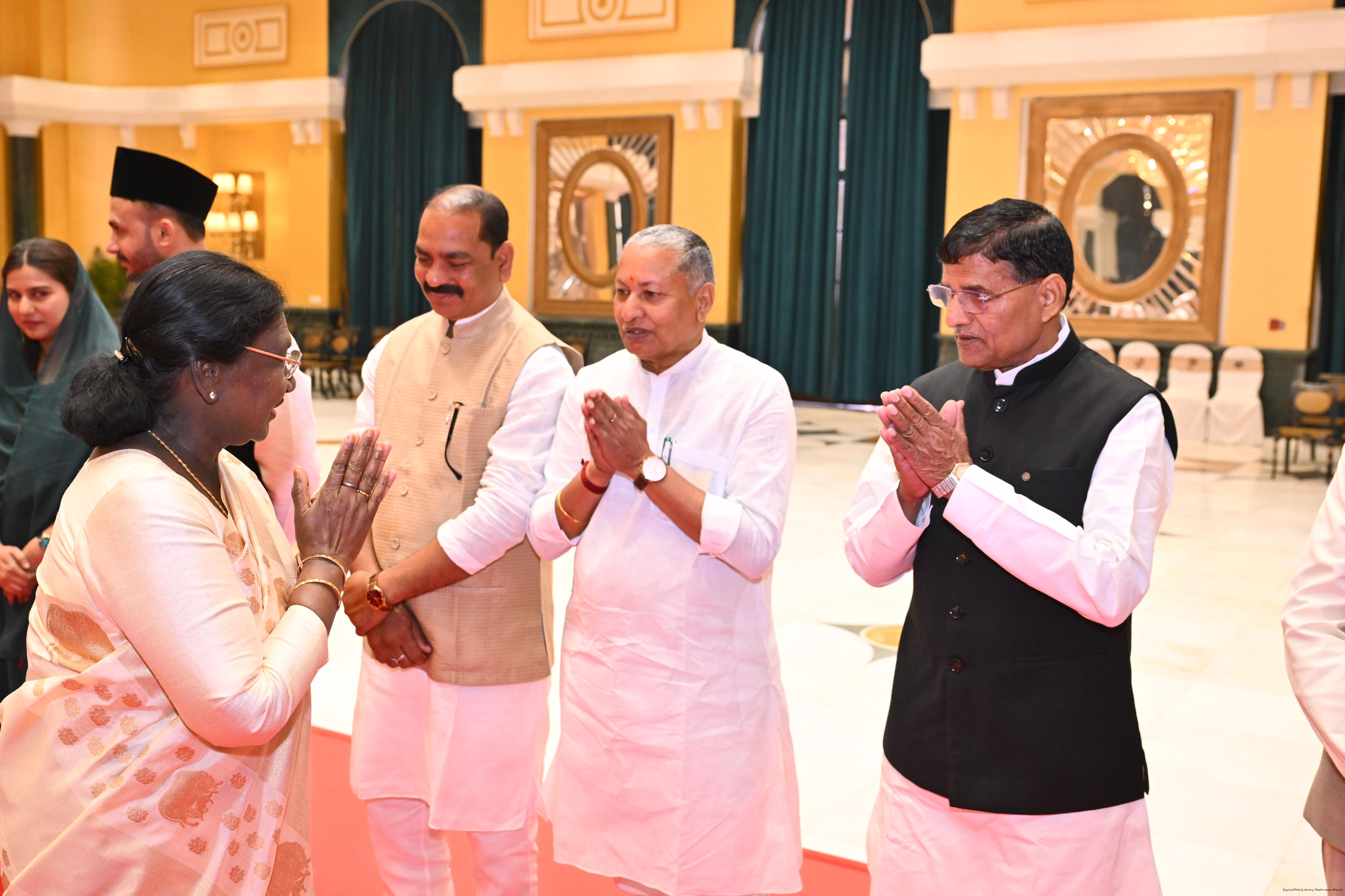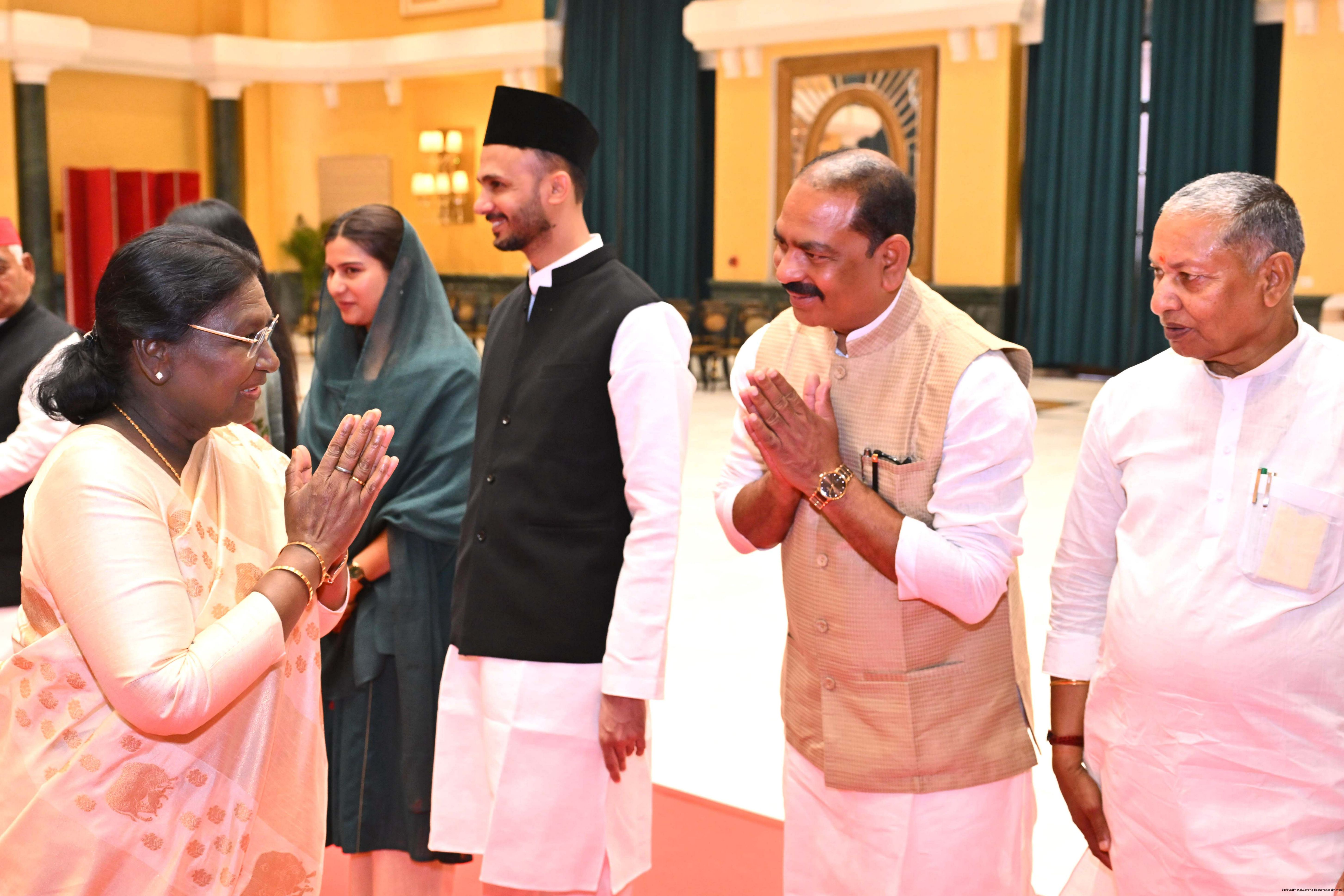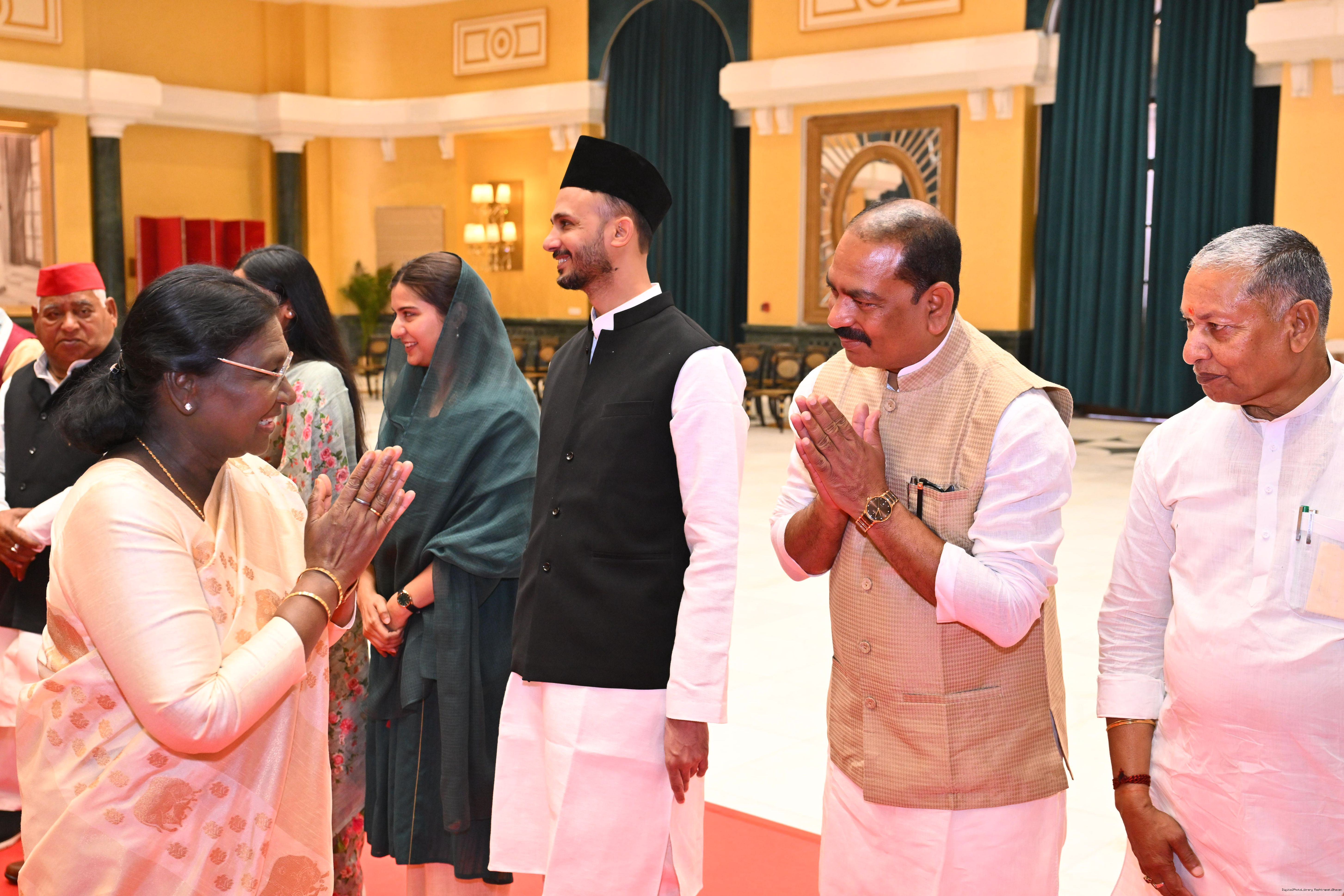 | Caption: | The President of India, Smt Droupadi Murmu hosted Members of Parliament from Uttar Pradesh, Rajasthan, Mizoram, Nagaland, Tripura, Sikkim and Jharkhand for breakfast at Rashtrapati Bhavan Cultural Centre on March 24, 2026. |
