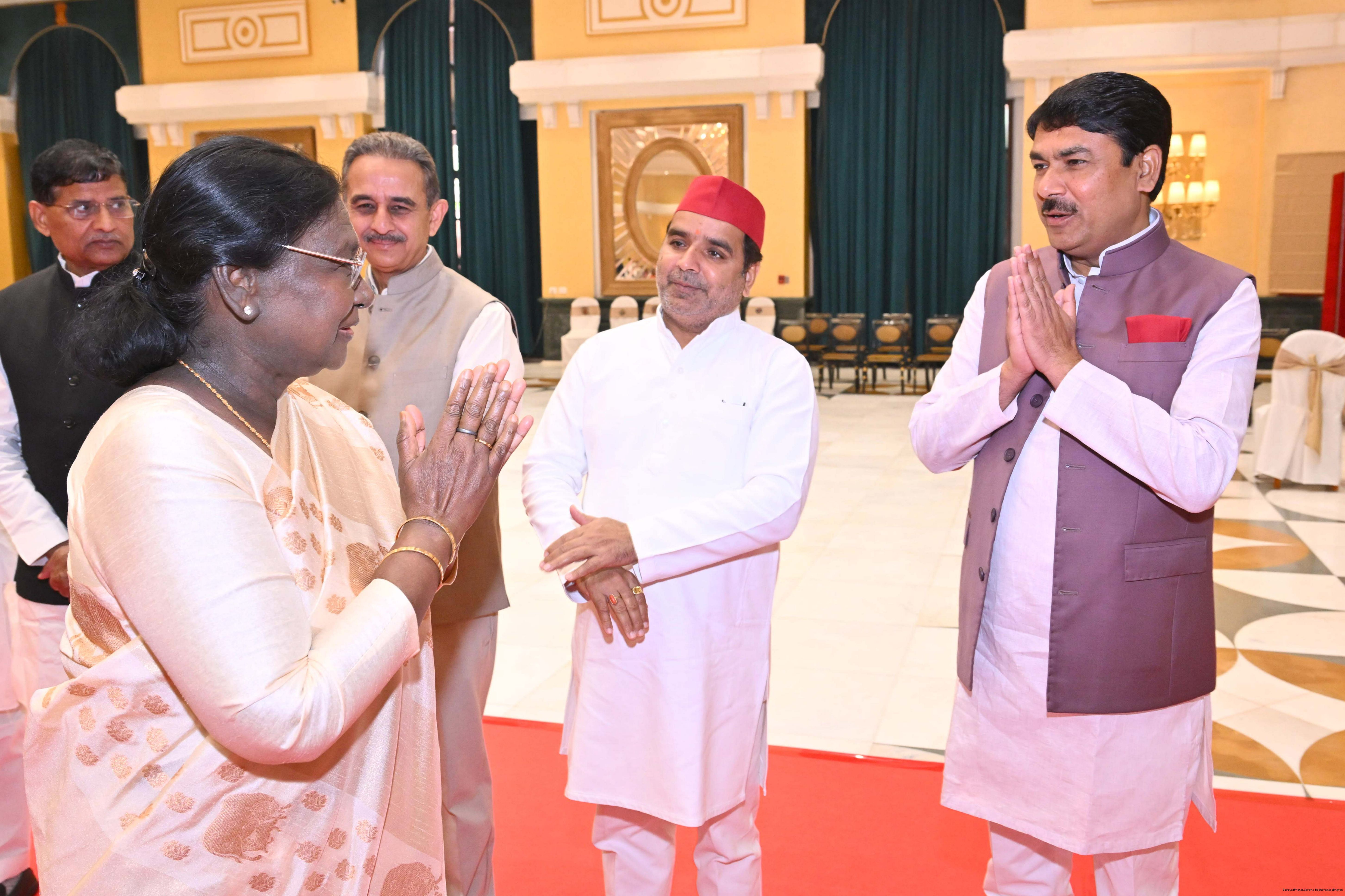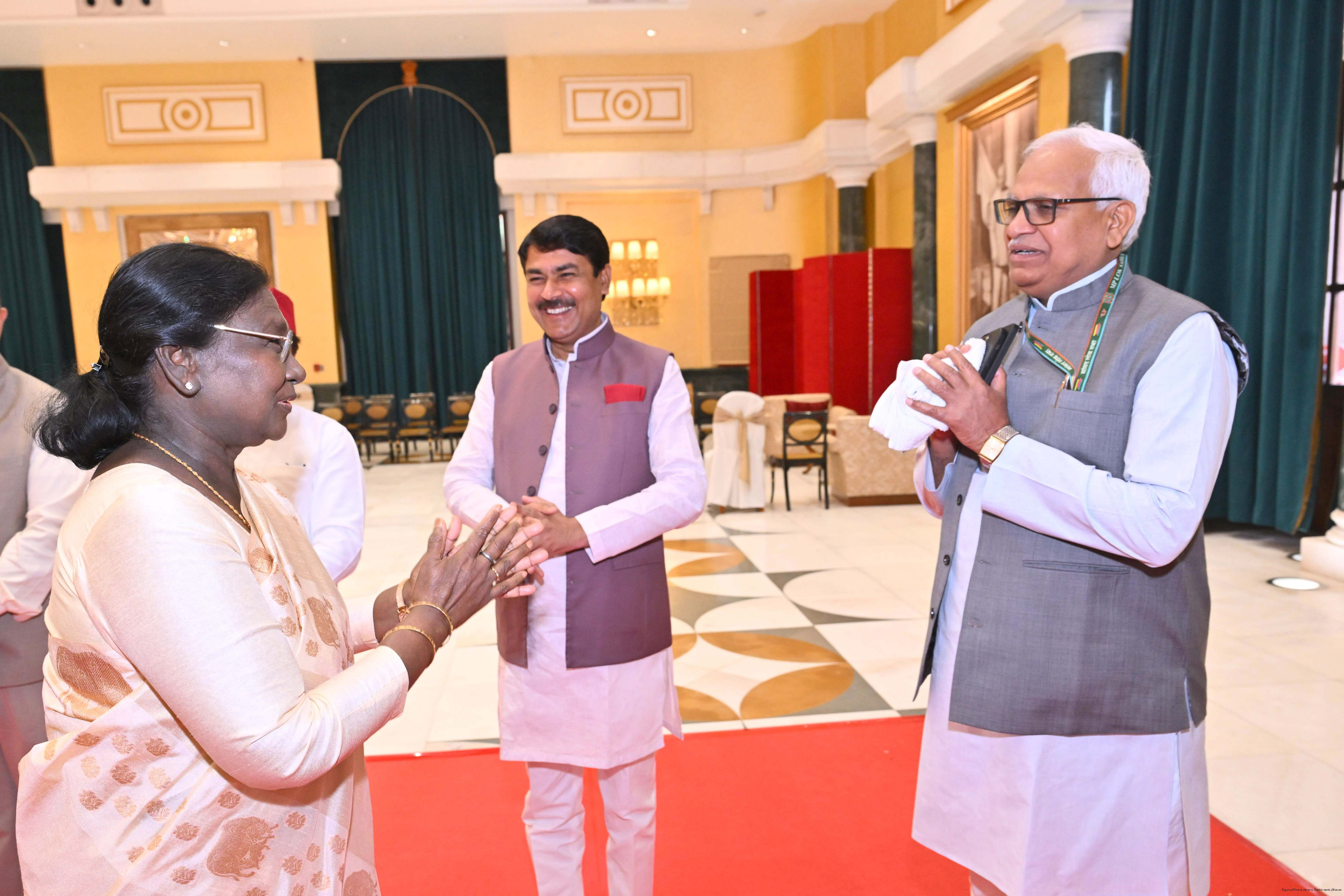 | Caption: | The President of India, Smt Droupadi Murmu hosted Members of Parliament from Uttar Pradesh, Rajasthan, Mizoram, Nagaland, Tripura, Sikkim and Jharkhand for breakfast at Rashtrapati Bhavan Cultural Centre on March 24, 2026. |