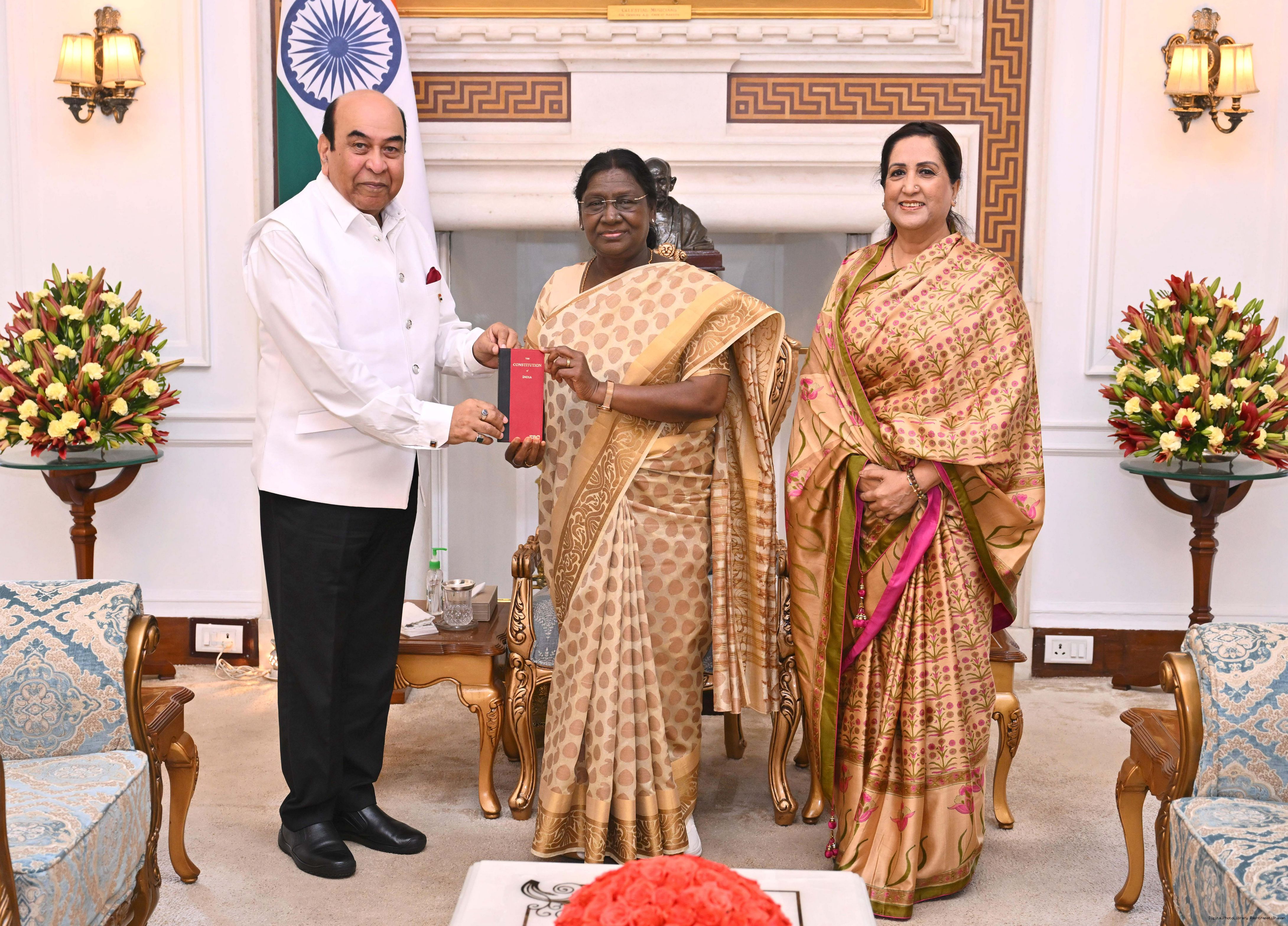 | Caption: | The Governor of Bihar, Lt Gen Syed Ata Hasnain (Retd.), along with his spouse Smt Sabiha Hasnain called on the President of India, Smt Droupadi Murmu at Rashtrapati Bhavan on March 25, 2026. |