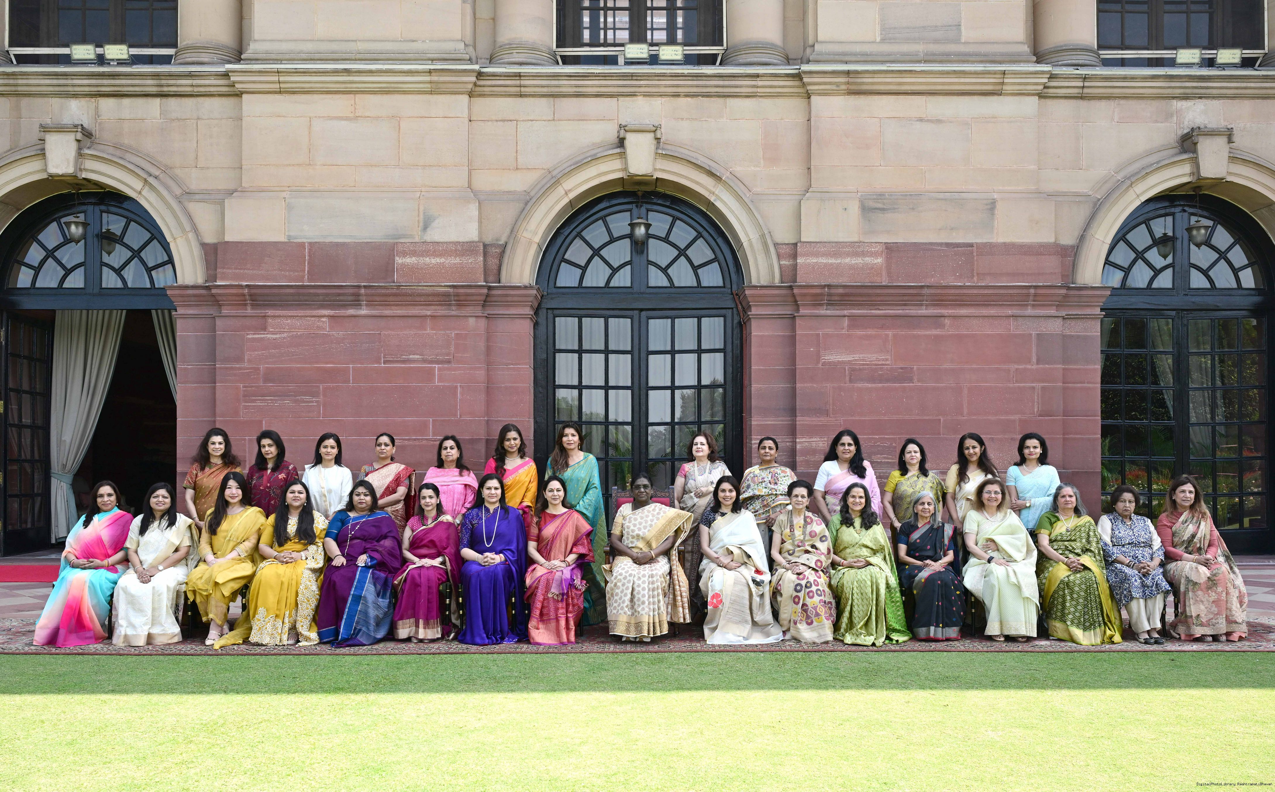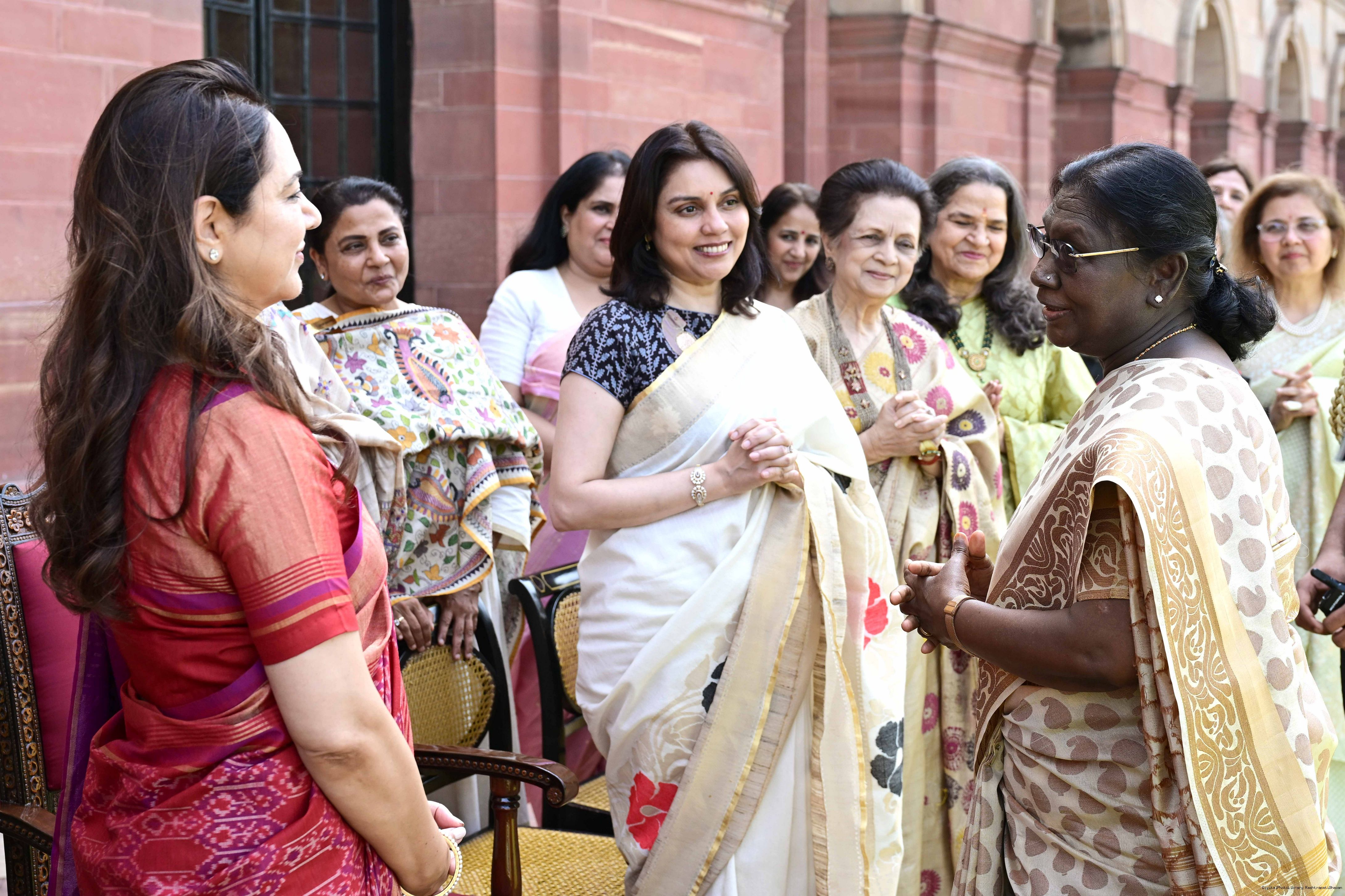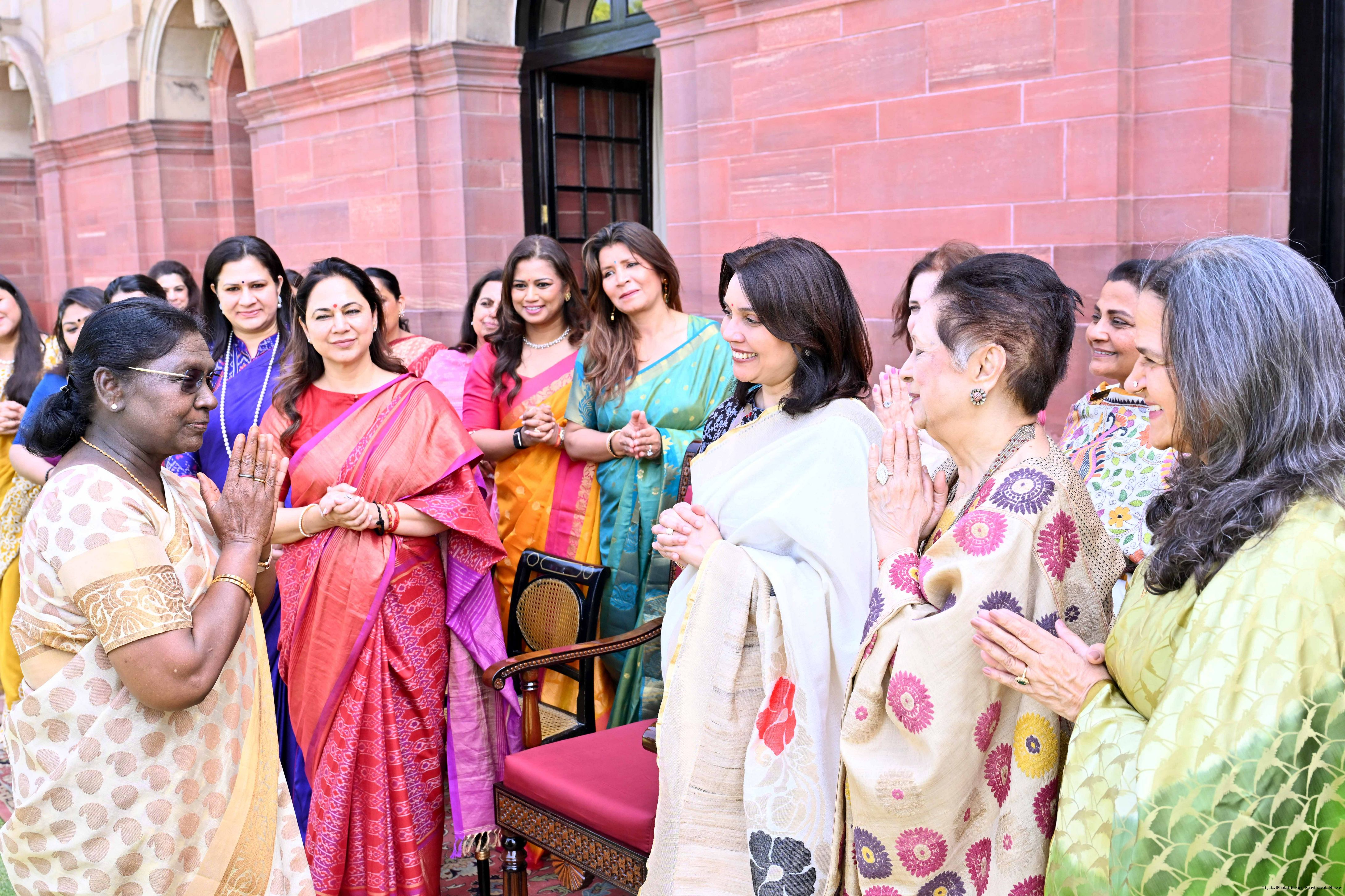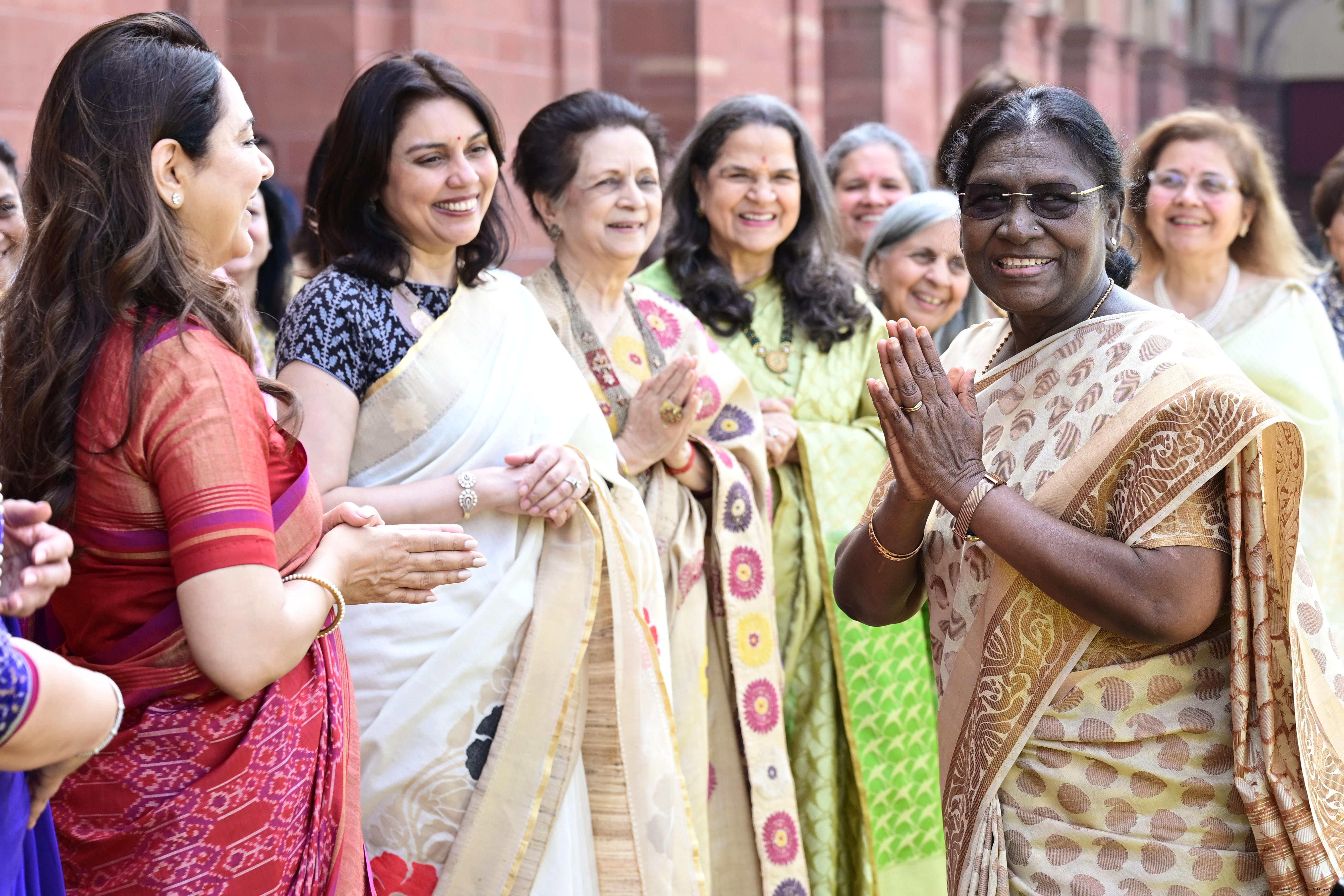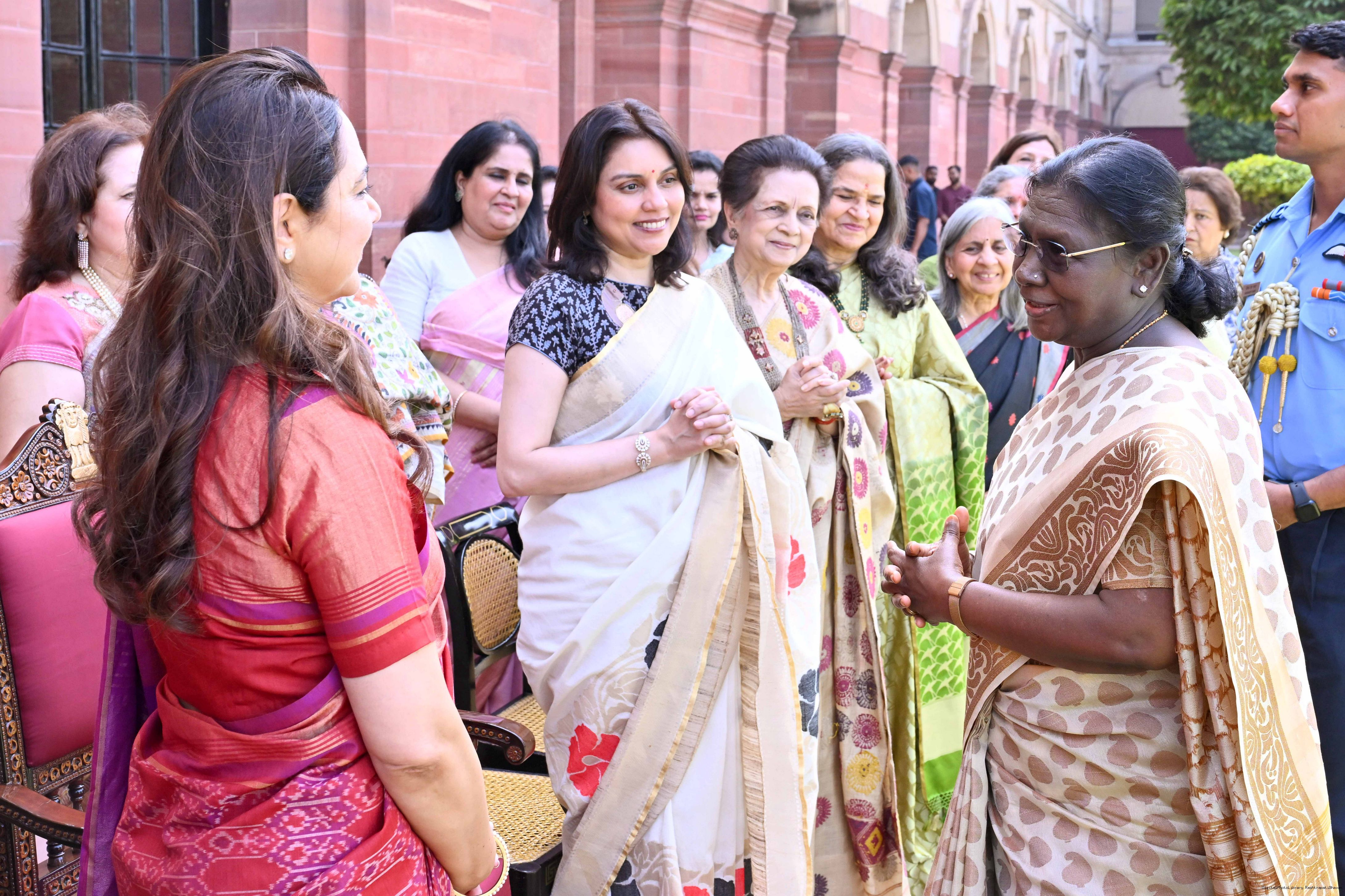 | Caption: | The President of India, Smt Droupadi Murmu met and interacted a group photograph with Shri Poonam Sharma, National President, FICCI FLO along with 36 other members at Rashtrapati Bhavan on March 25, 2026. |