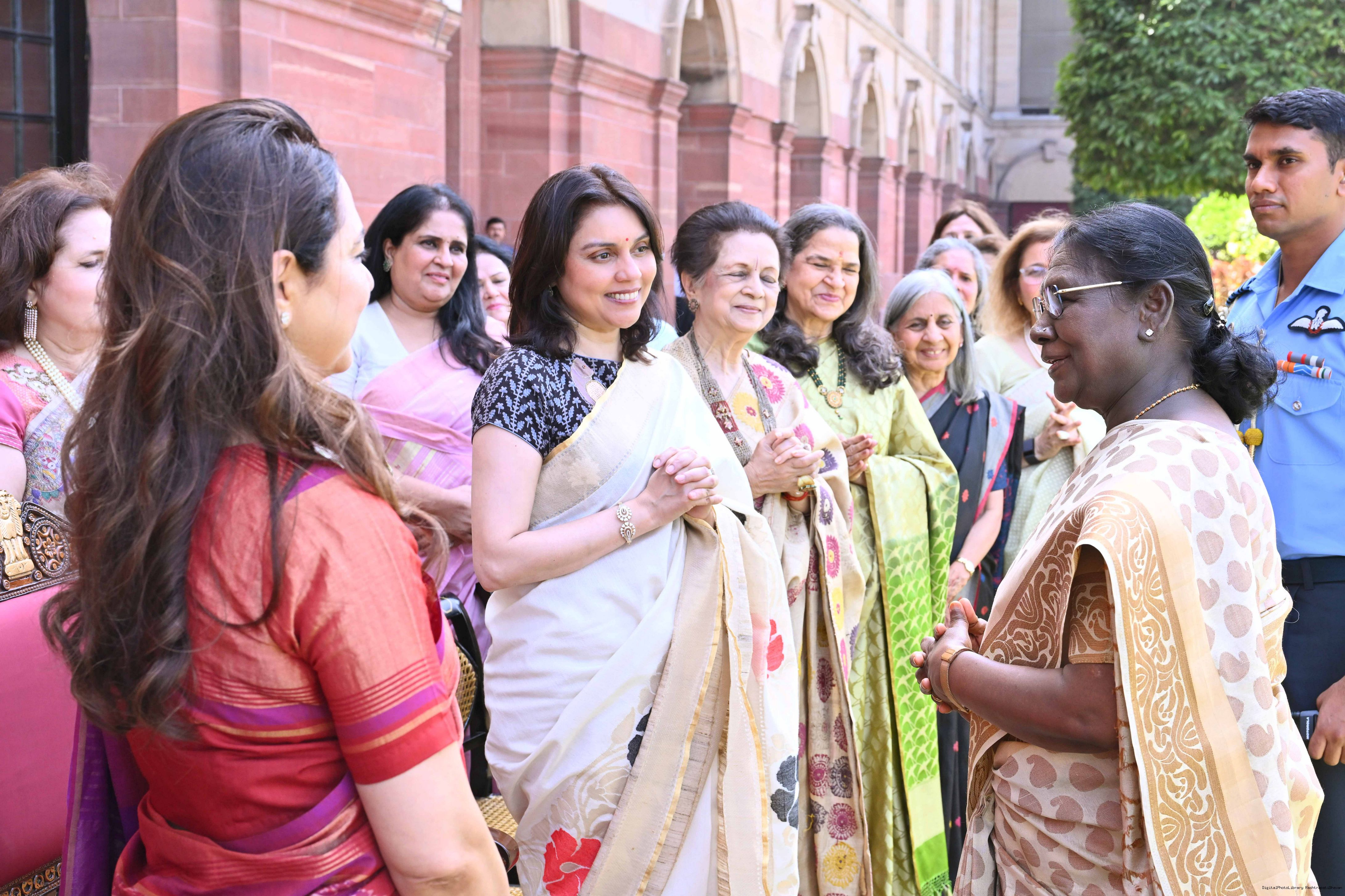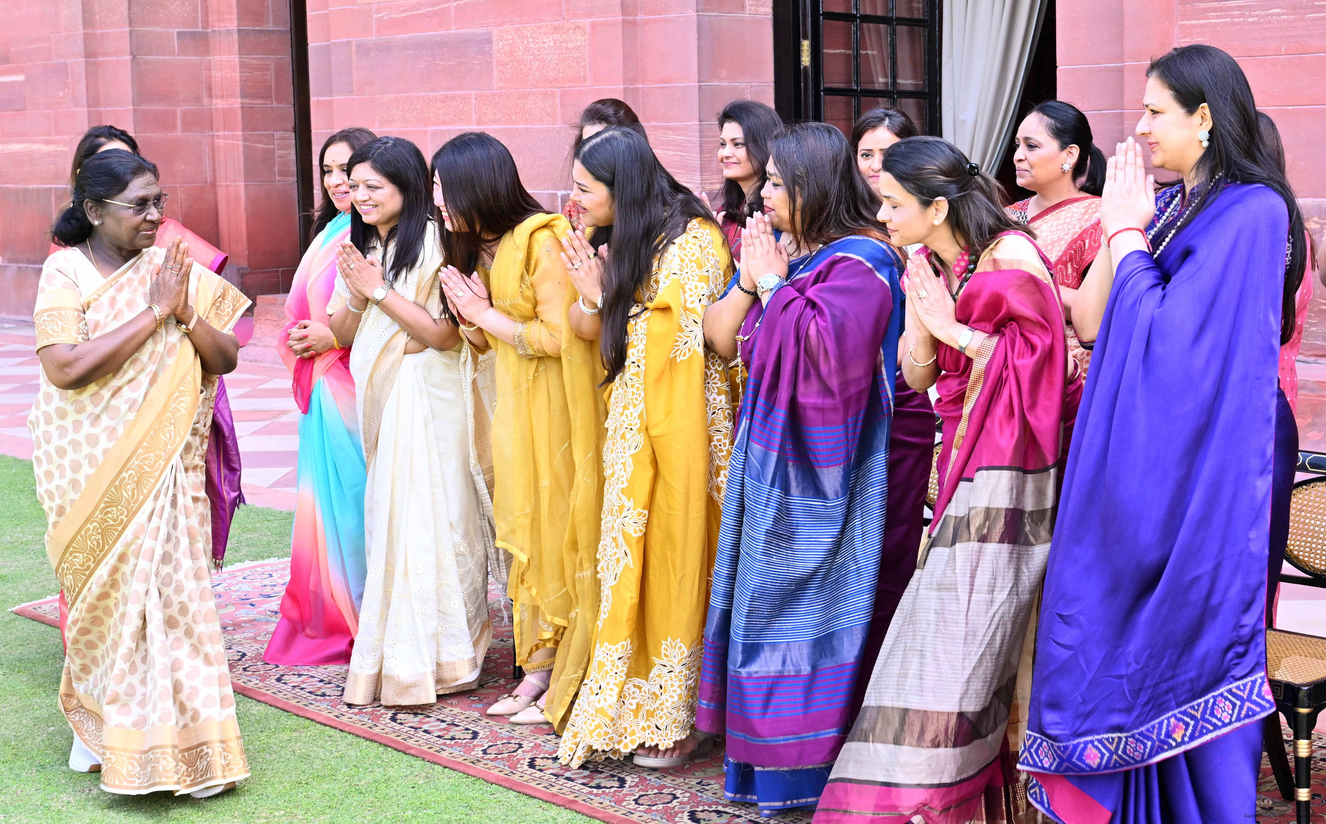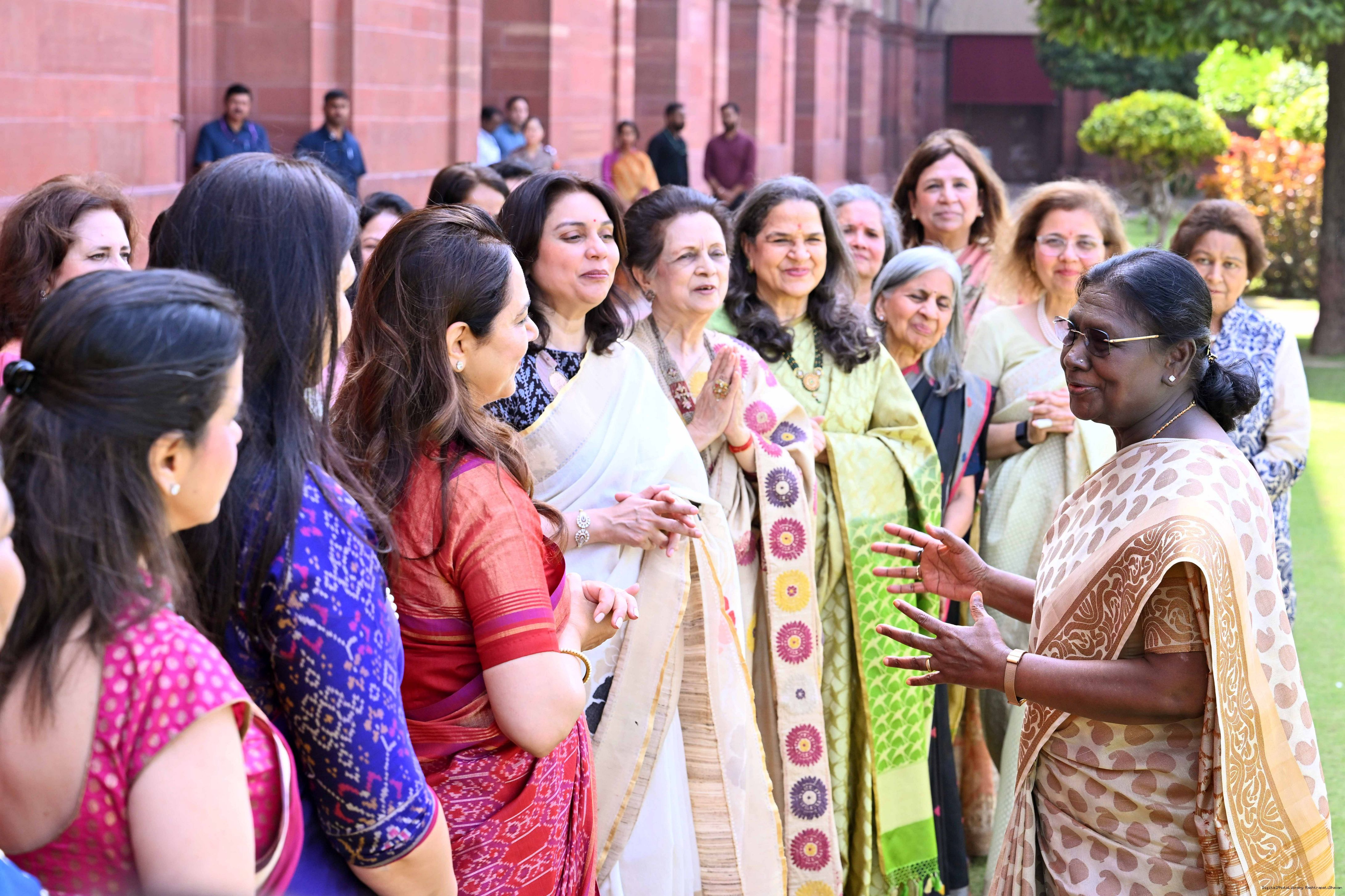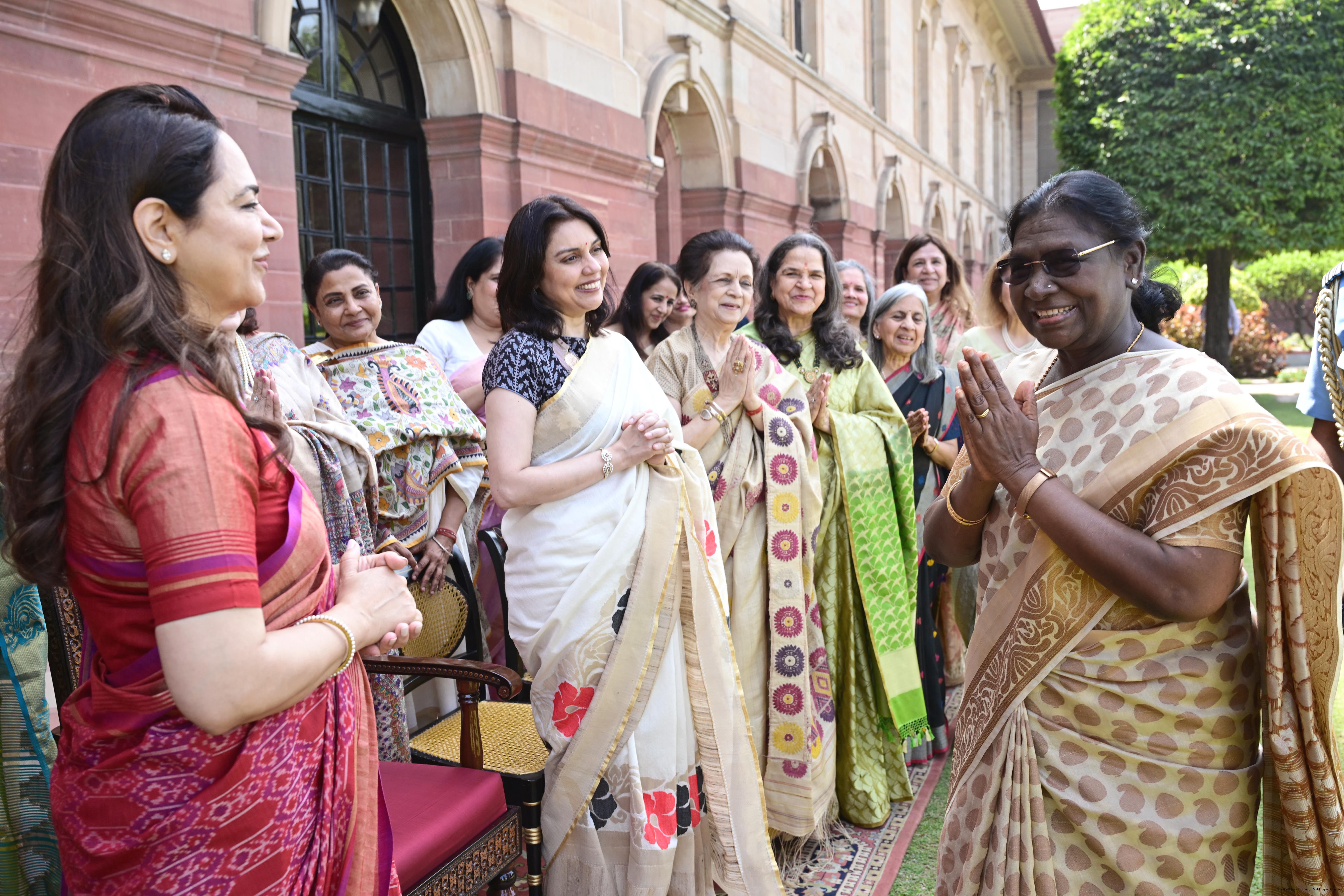 | Caption: | The President of India, Smt Droupadi Murmu met and interacted a group photograph with Shri Poonam Sharma, National President, FICCI FLO along with 36 other members at Rashtrapati Bhavan on March 25, 2026. |