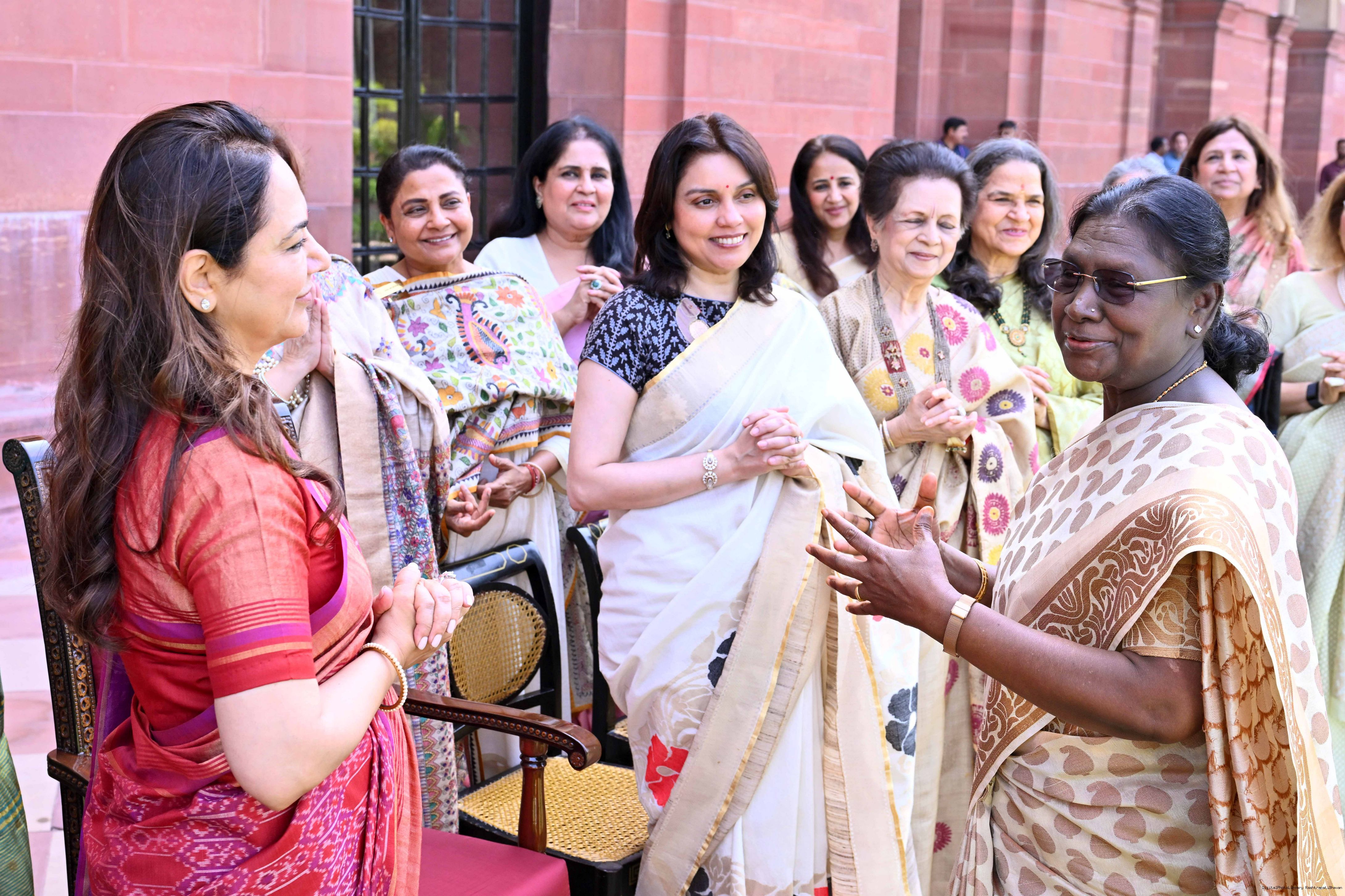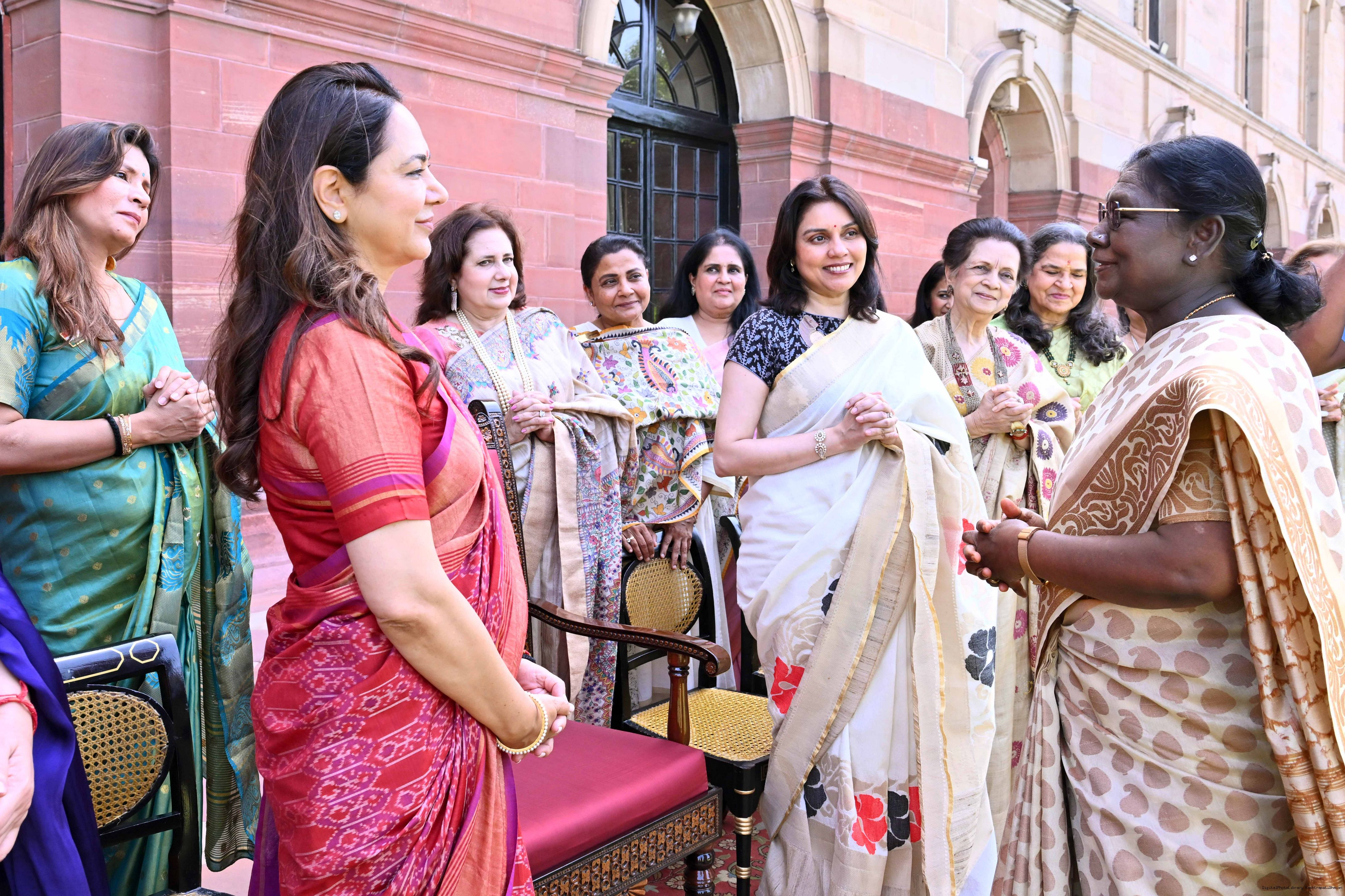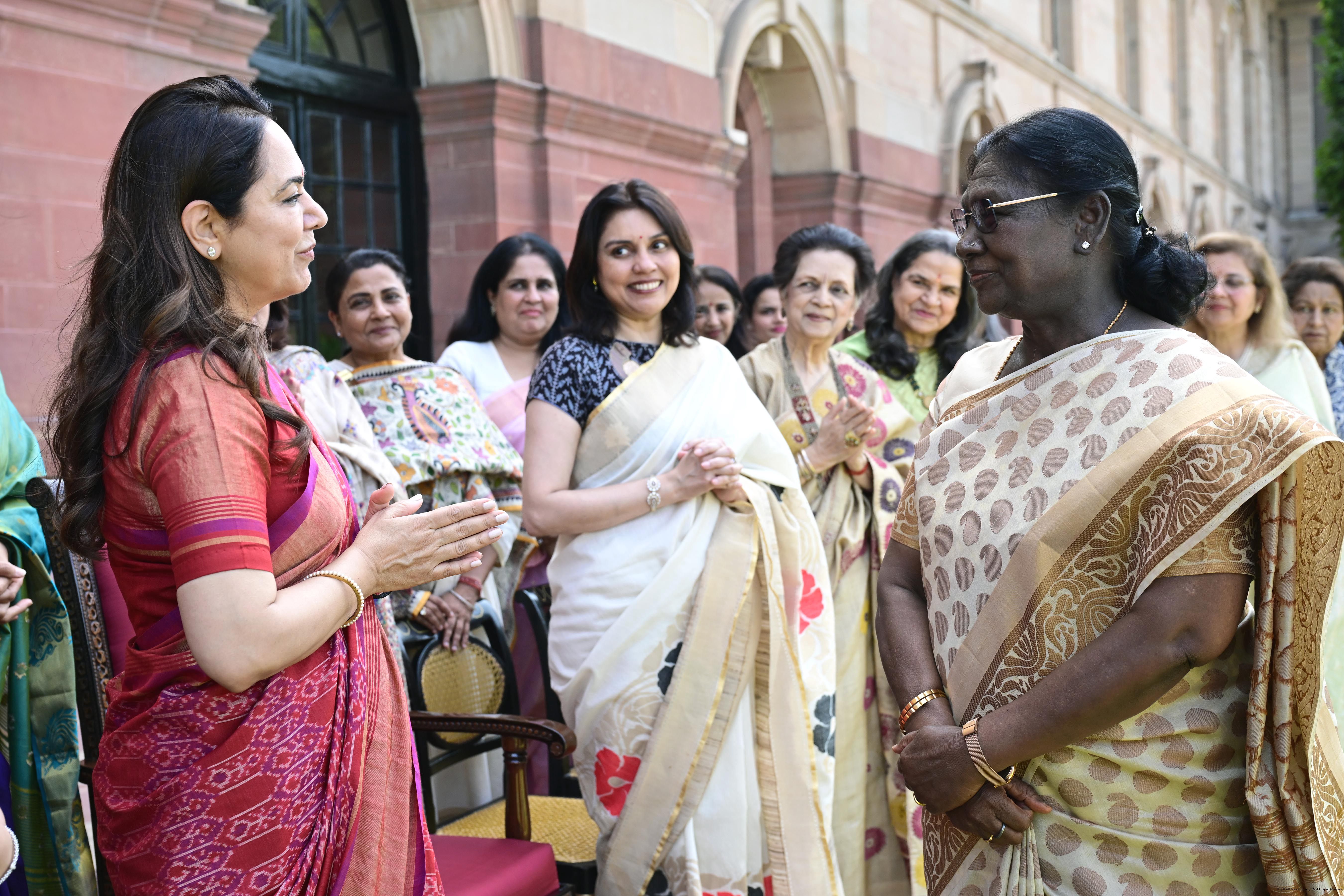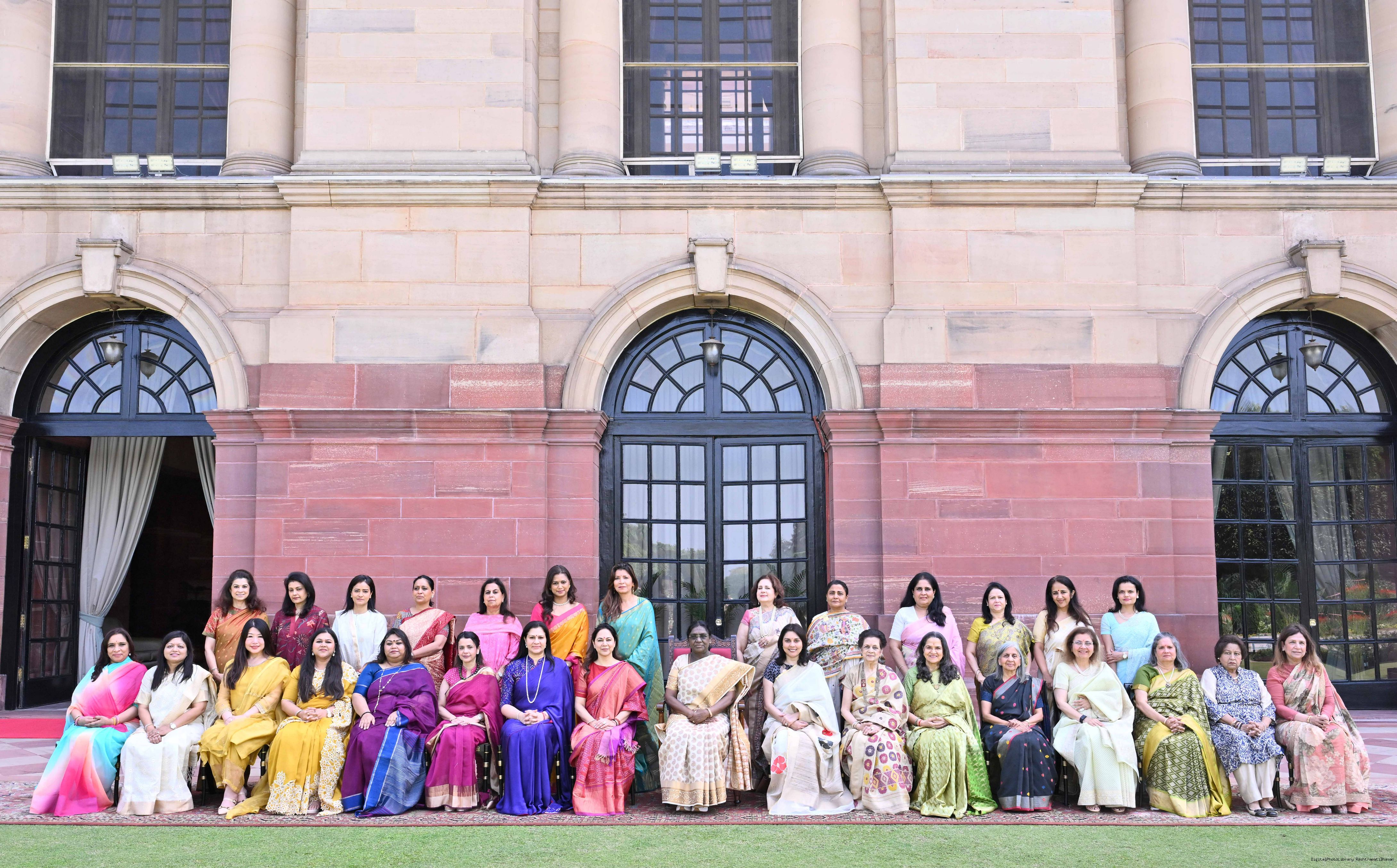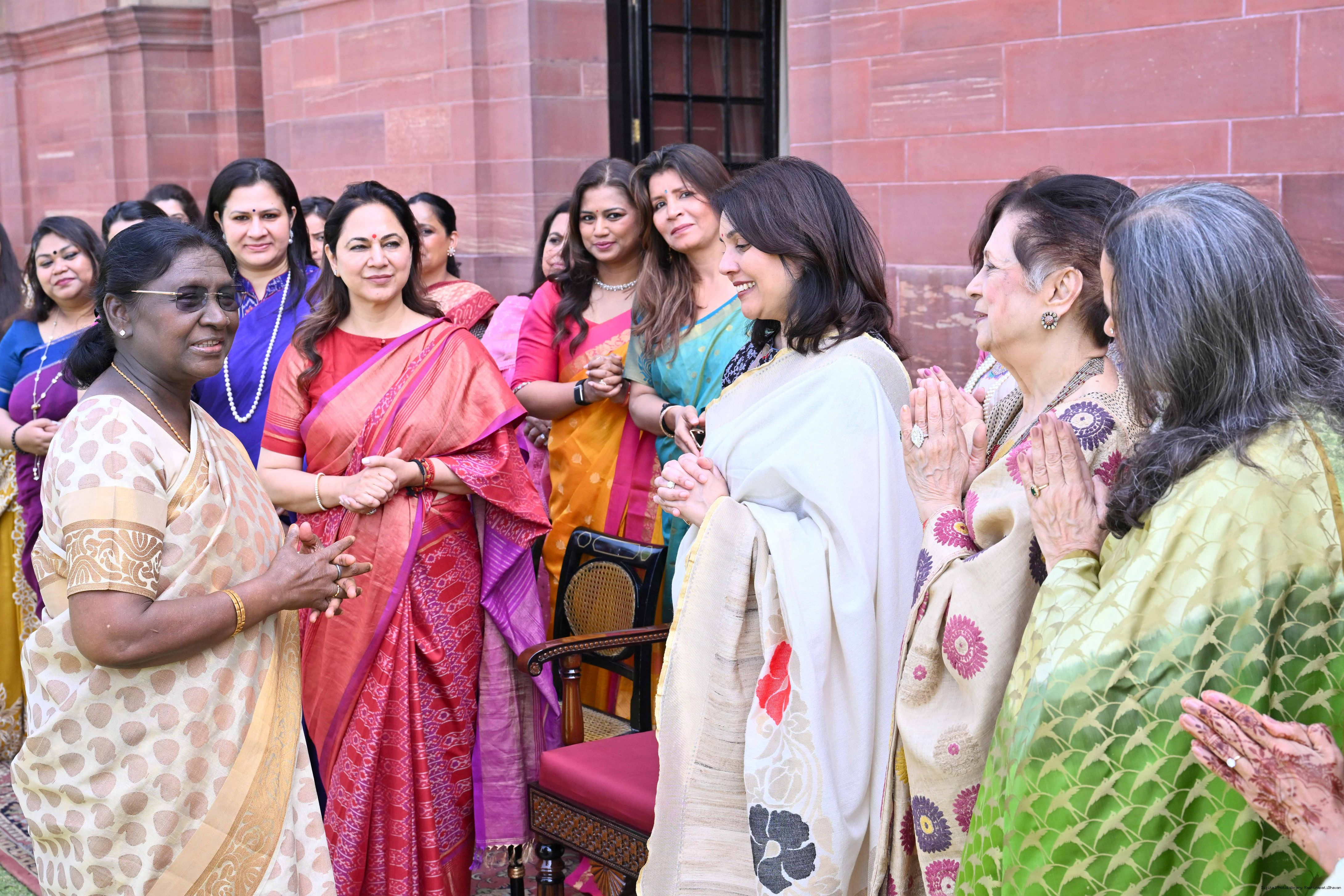 | Caption: | The President of India, Smt Droupadi Murmu met and interacted a group photograph with Shri Poonam Sharma, National President, FICCI FLO along with 36 other members at Rashtrapati Bhavan on March 25, 2026. |