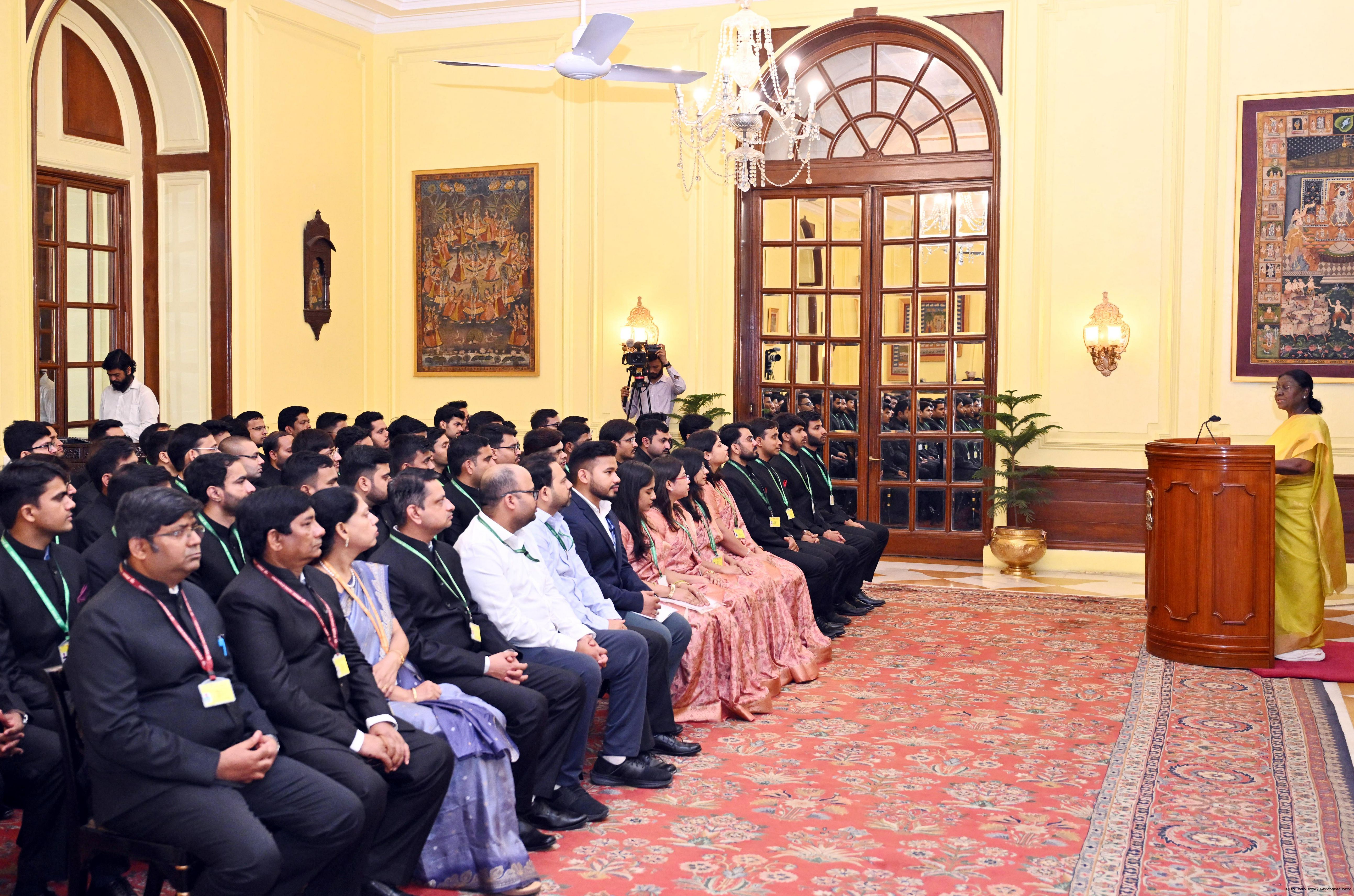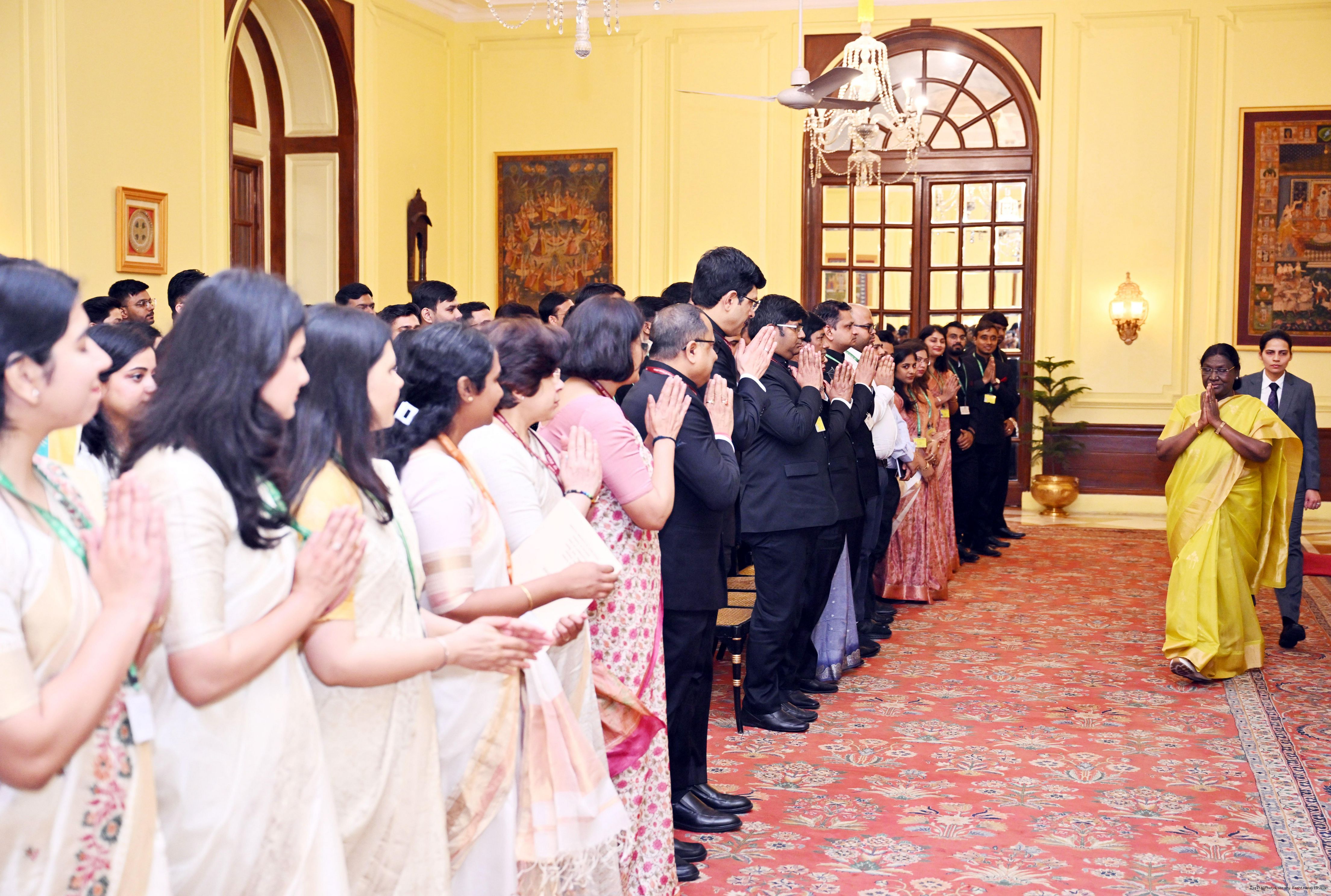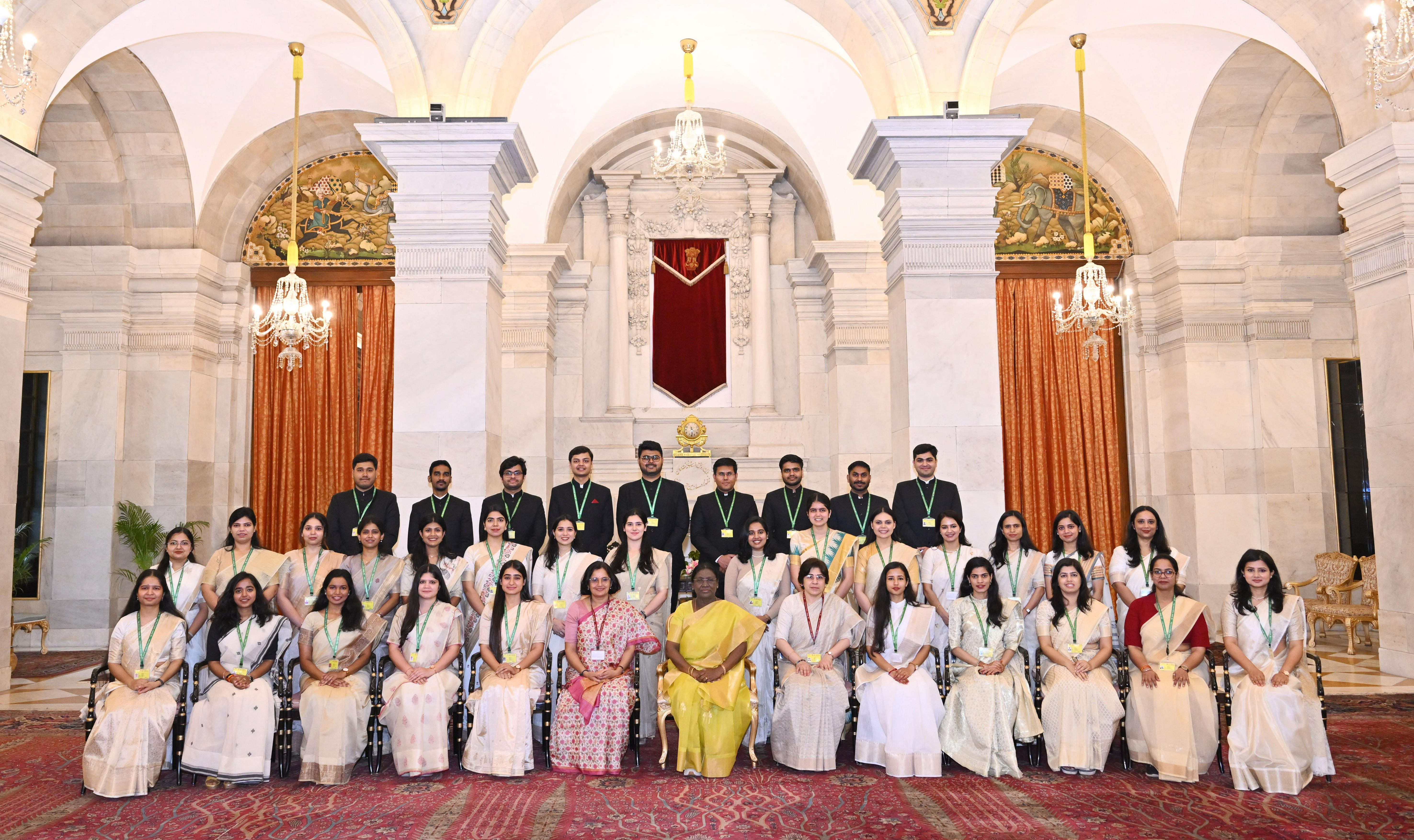 | Caption: | The officers of Central Power Engineering Service (CPES) and Indian Economic Service (IES) called on the President of India Smt Droupadi Murmu at Rashtrapati Bhavan on March 27, 2026. |