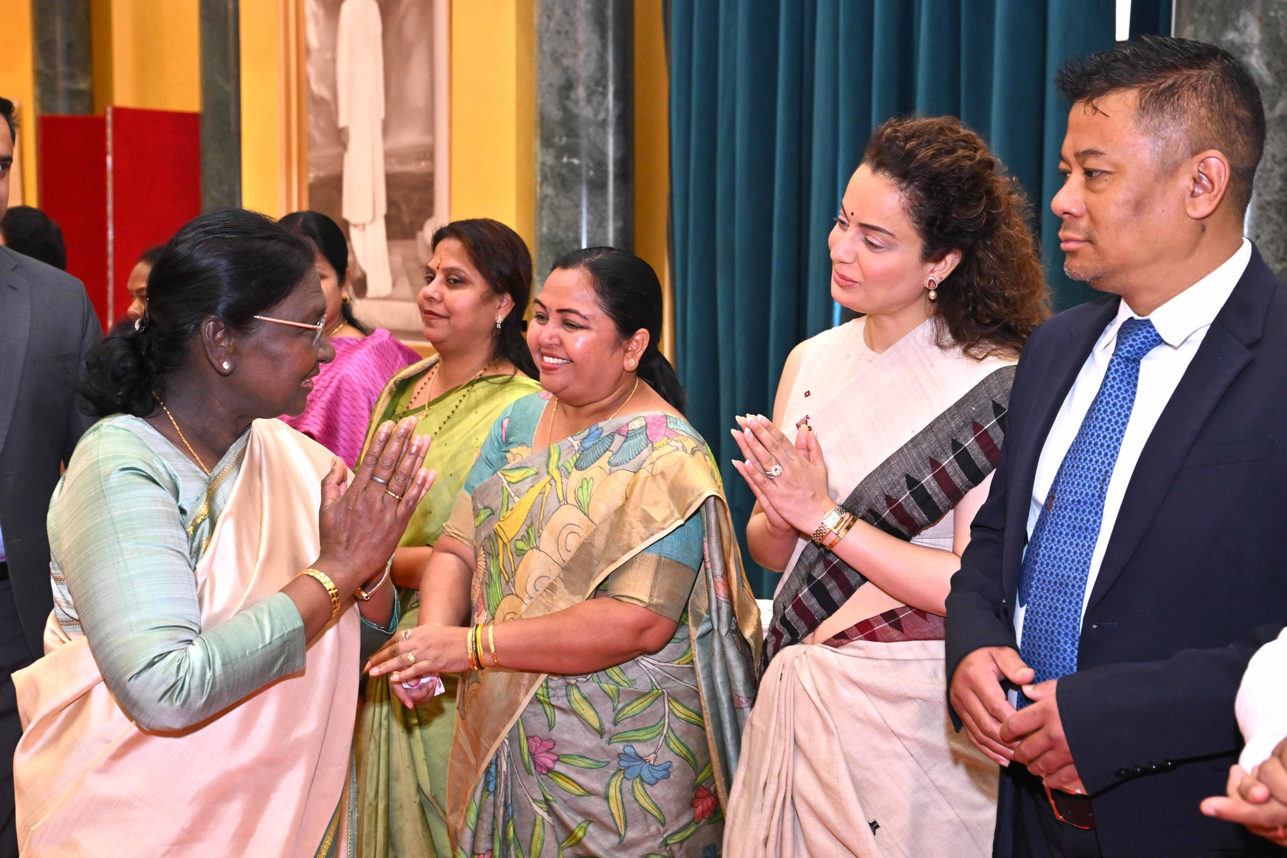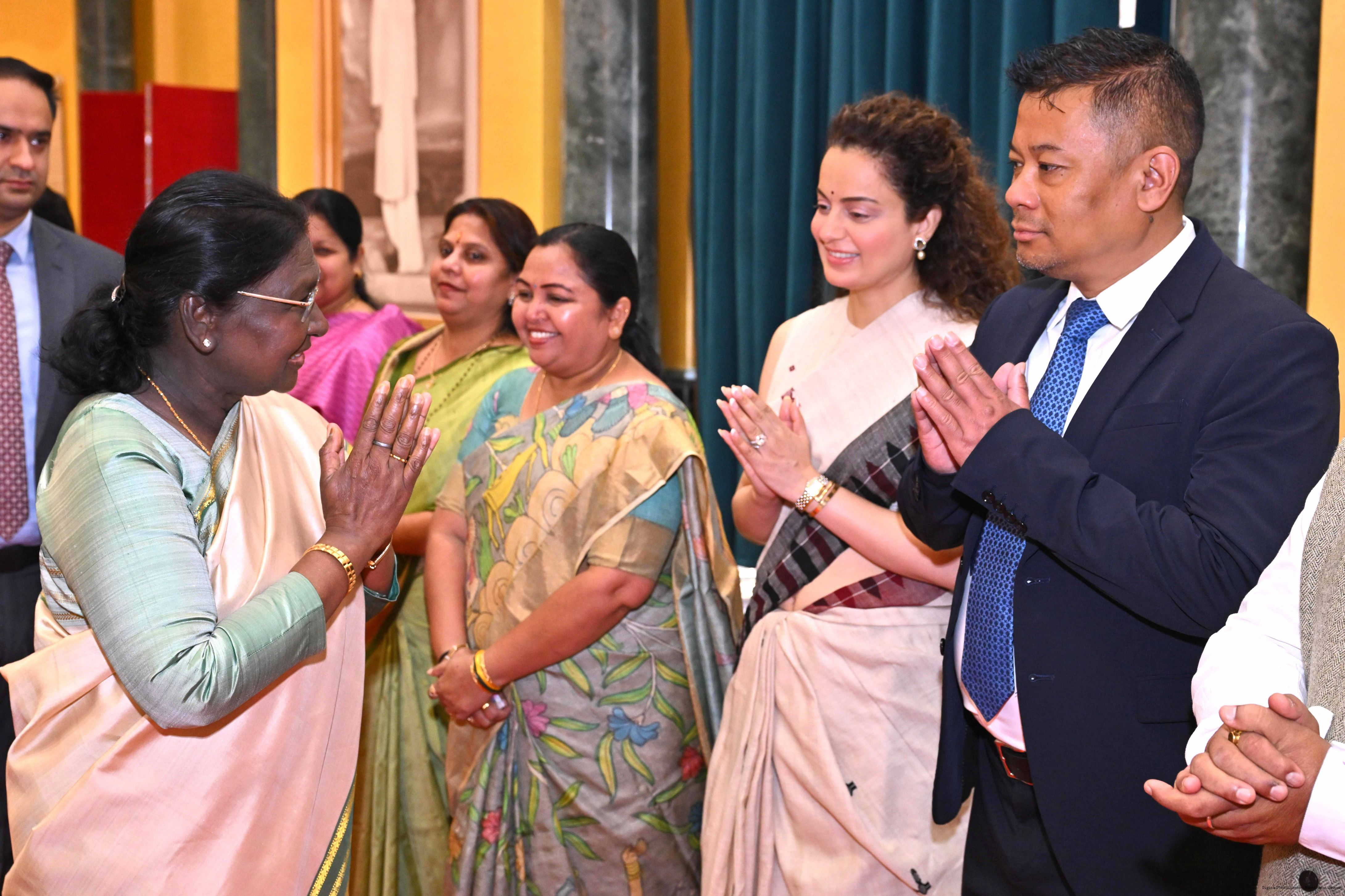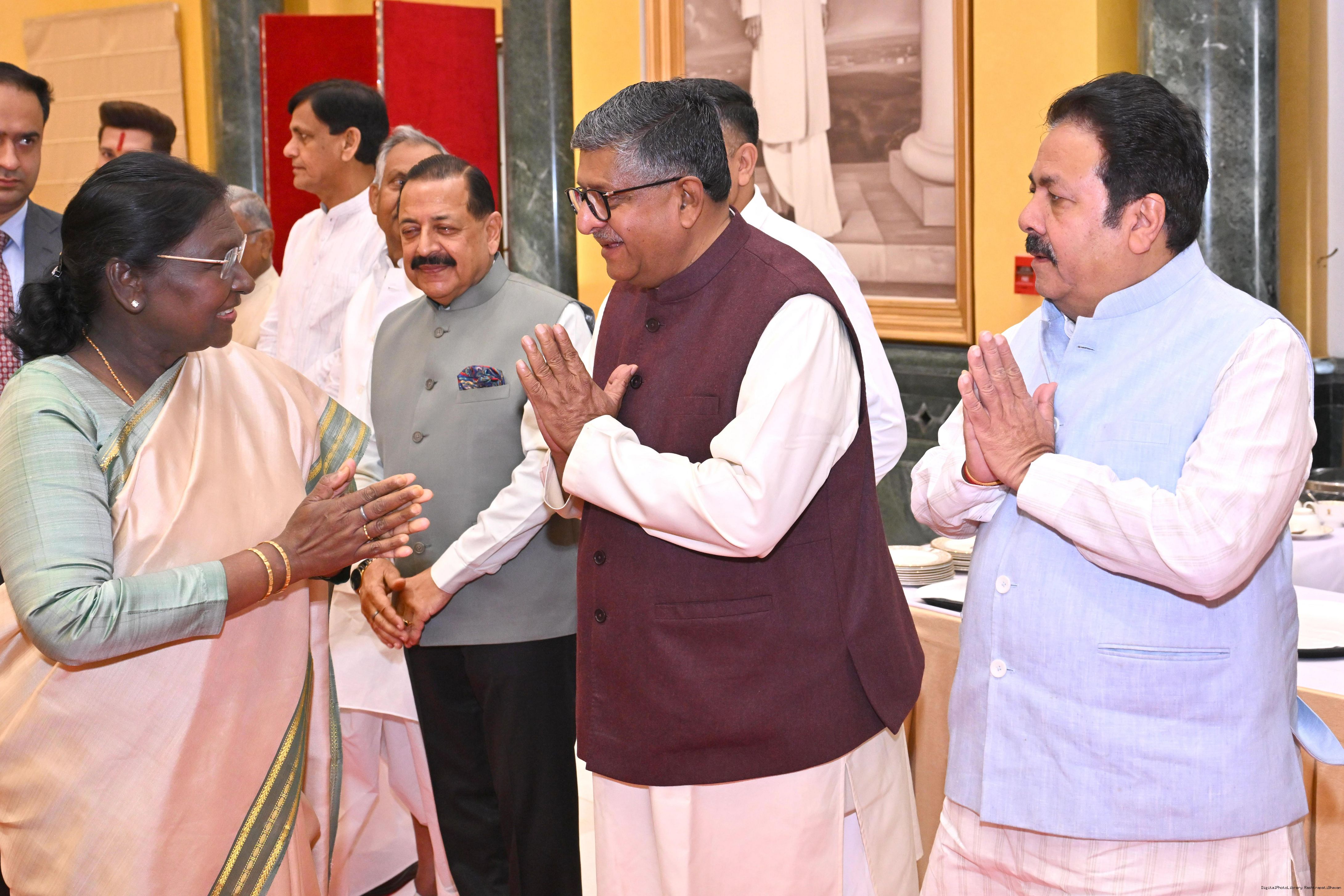 | Caption: | The President of India, Smt Droupadi Murmu hosted Members of Parliament from Bihar, Chhattisgarh, Himachal Pradesh, Jammu Kashmir, Assam, Arunachal Pradesh, Manipur and Meghalaya for breakfast at Rashtrapati Bhavan Cultural Centre on March 30, 2026. |