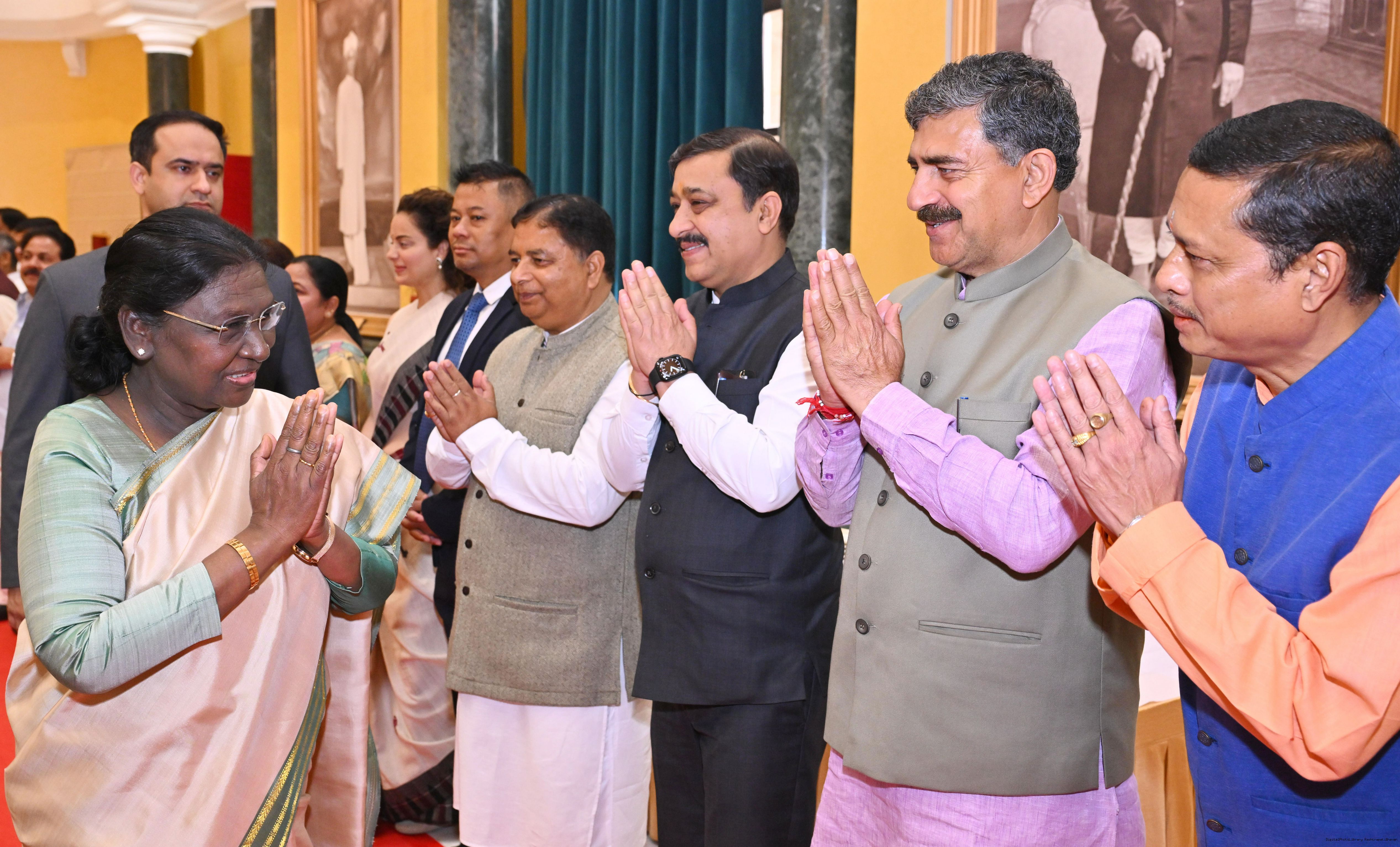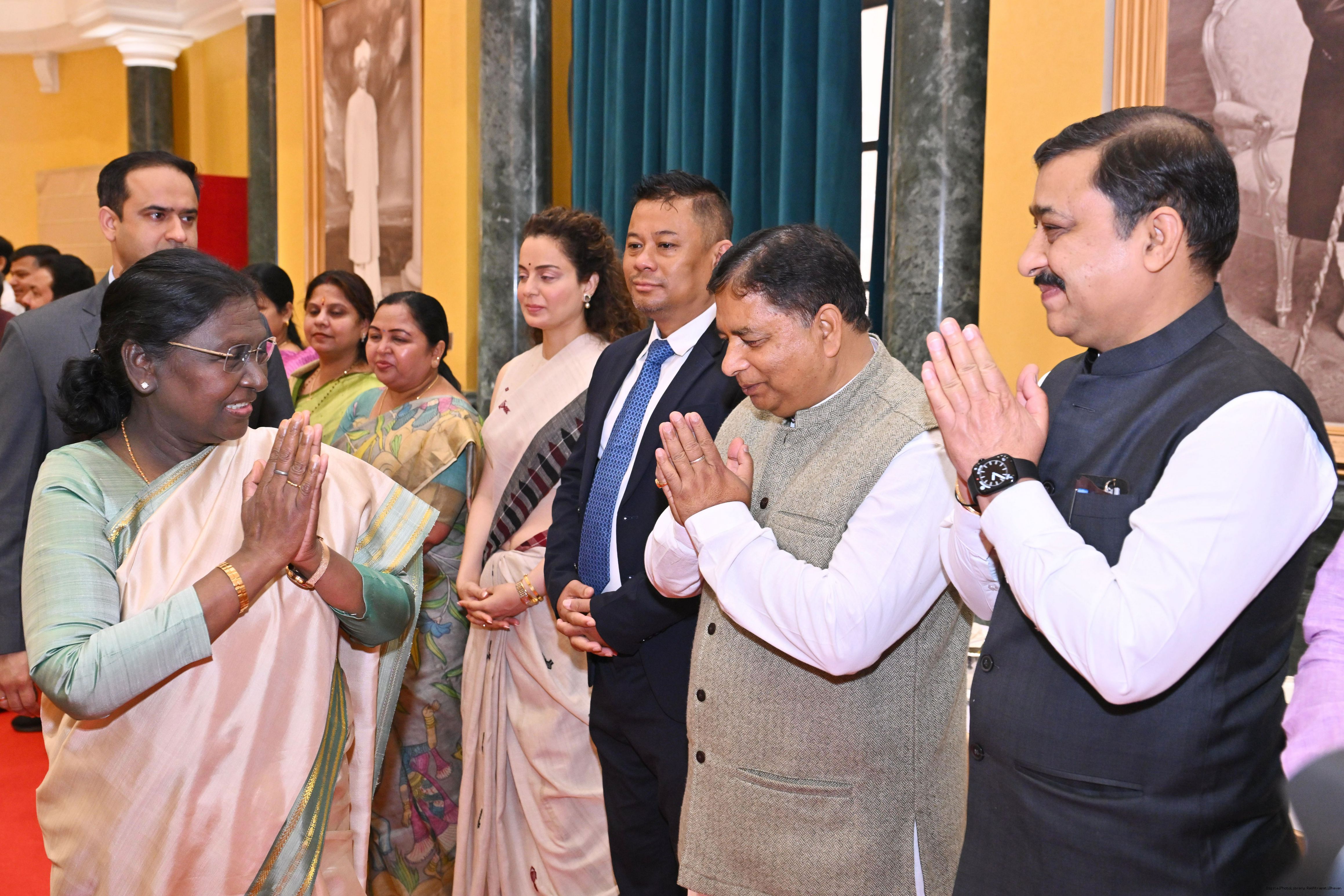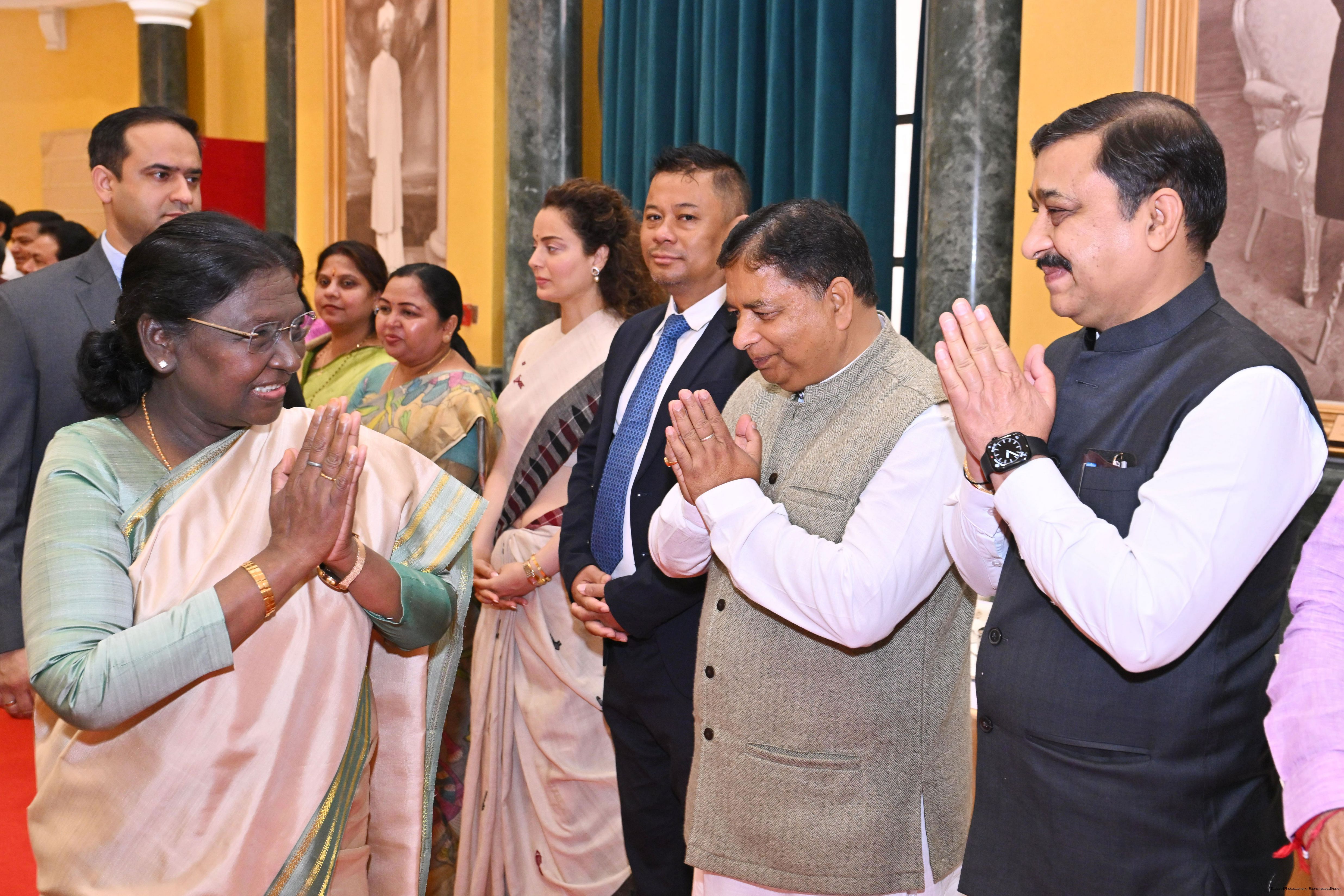| Caption: | The President of India, Smt Droupadi Murmu hosted Members of Parliament from Bihar, Chhattisgarh, Himachal Pradesh, Jammu Kashmir, Assam, Arunachal Pradesh, Manipur and Meghalaya for breakfast at Rashtrapati Bhavan Cultural Centre on March 30, 2026. |