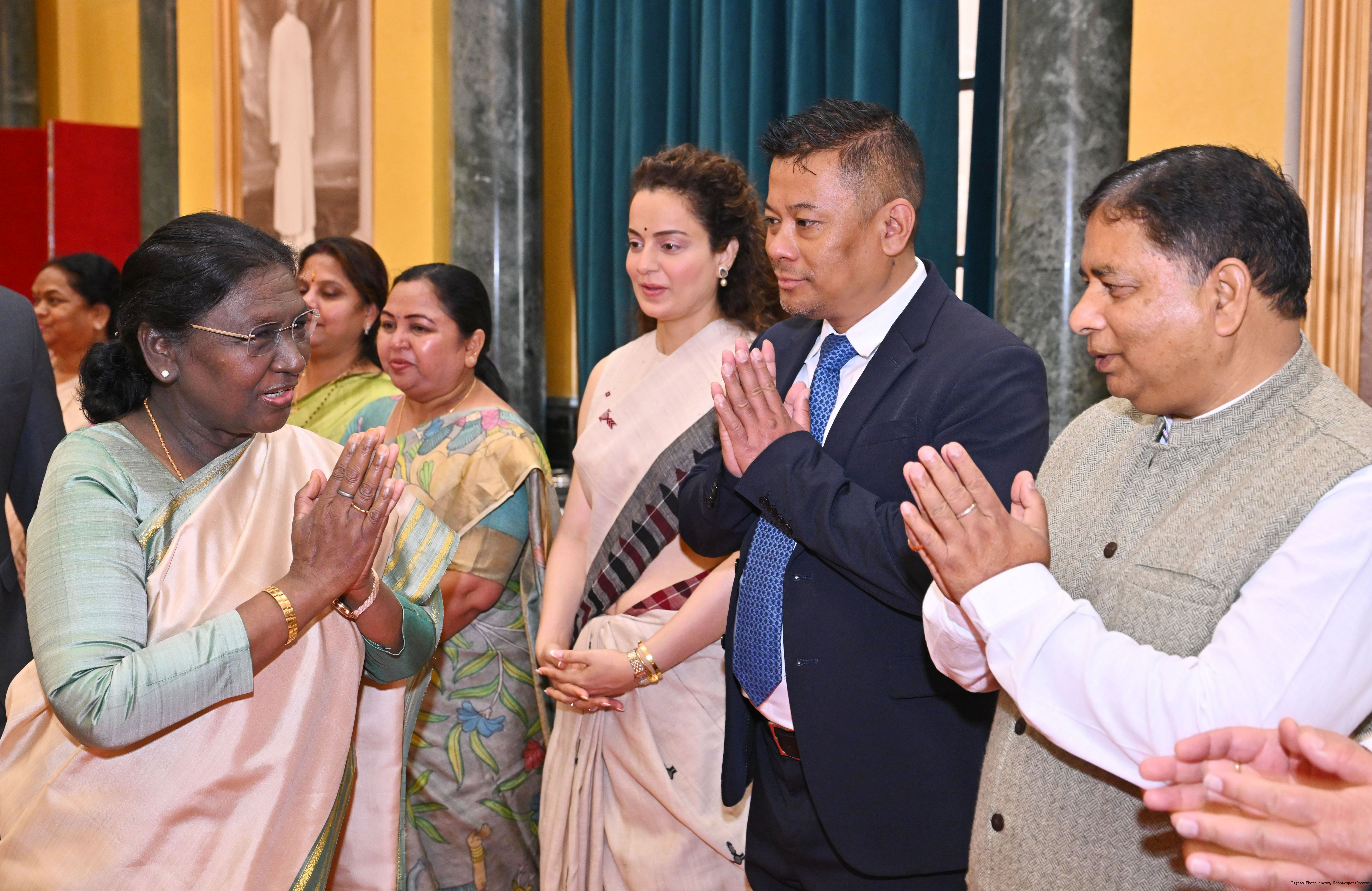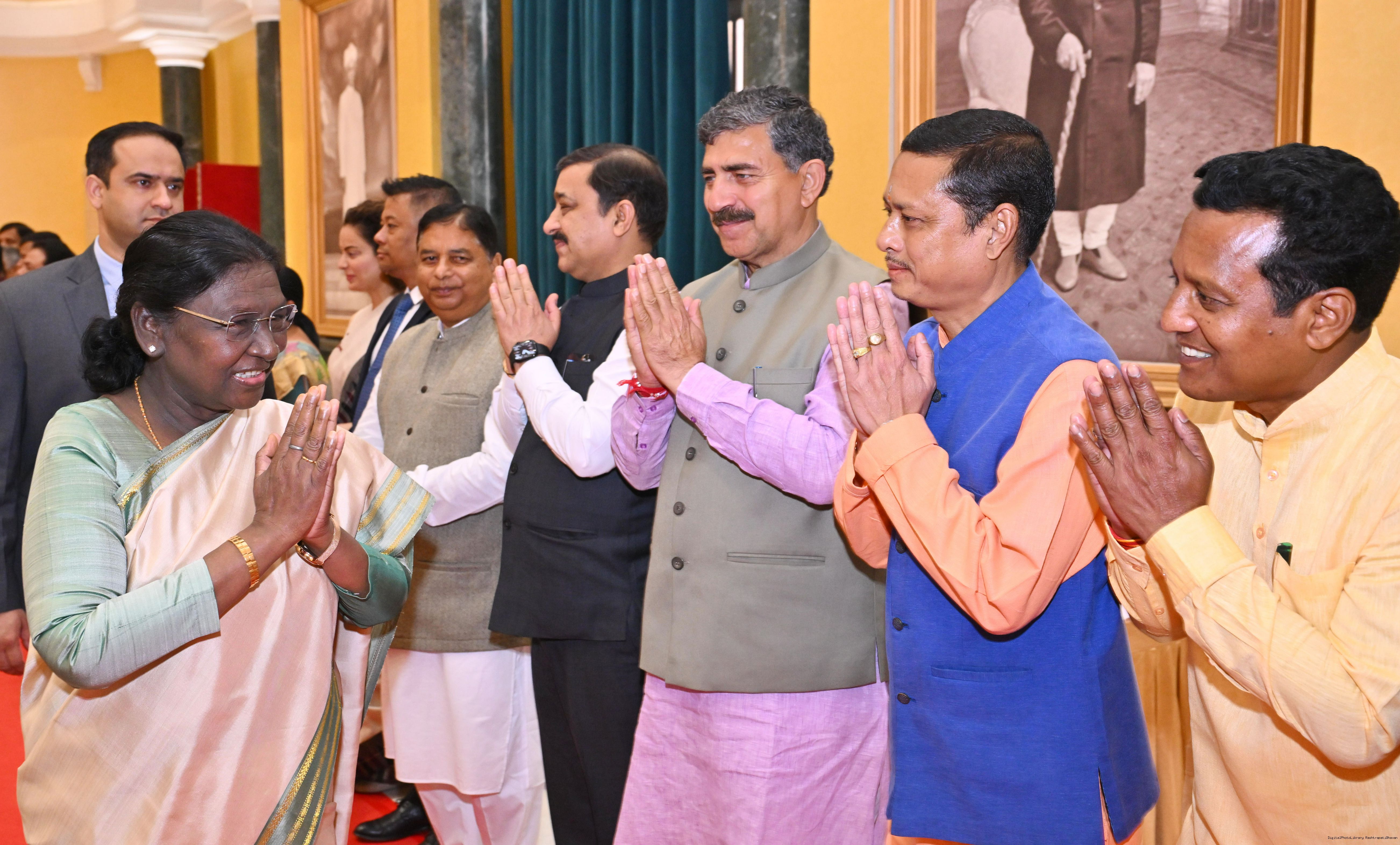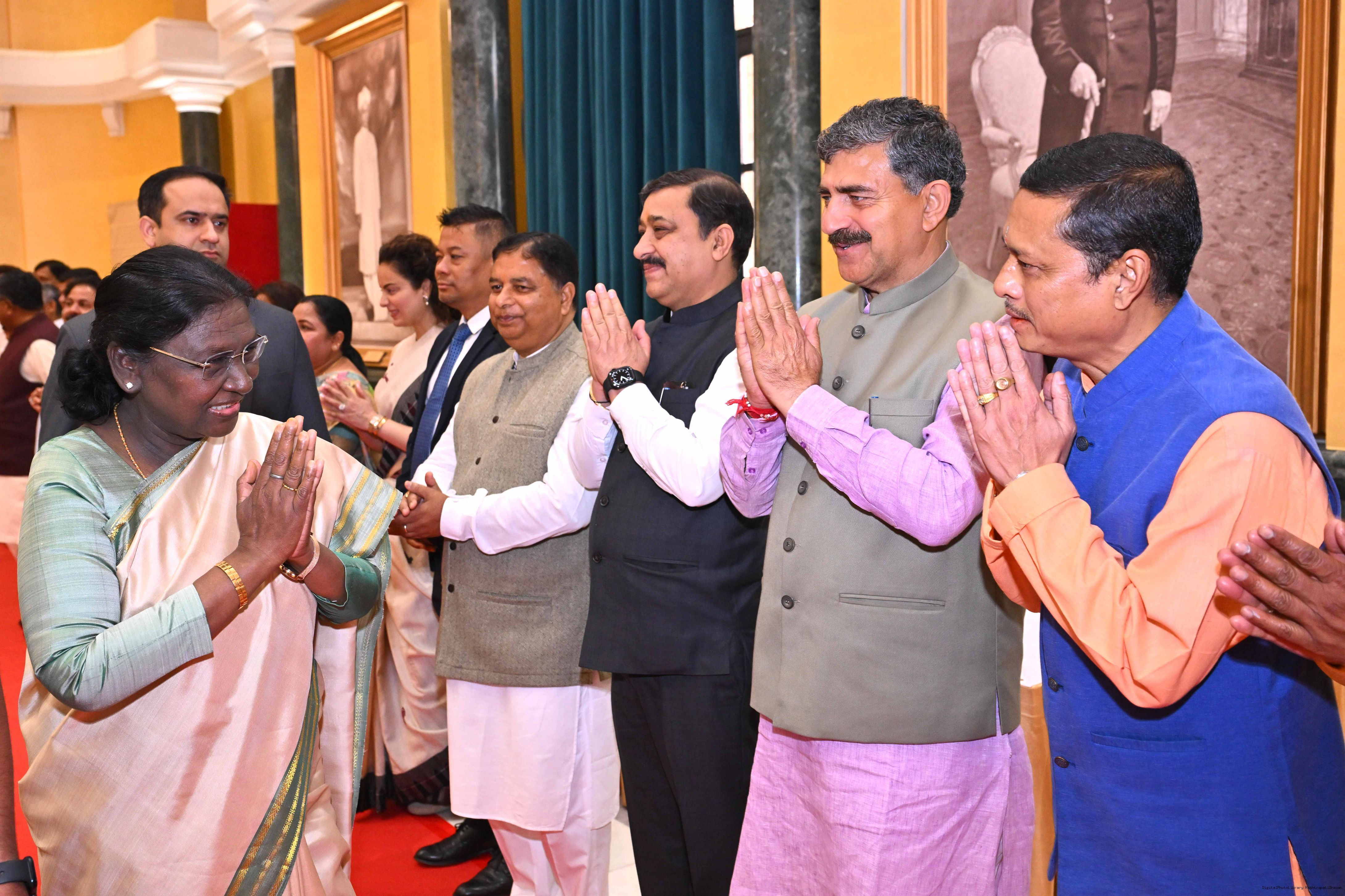 | Caption: | The President of India, Smt Droupadi Murmu hosted Members of Parliament from Bihar, Chhattisgarh, Himachal Pradesh, Jammu Kashmir, Assam, Arunachal Pradesh, Manipur and Meghalaya for breakfast at Rashtrapati Bhavan Cultural Centre on March 30, 2026. |