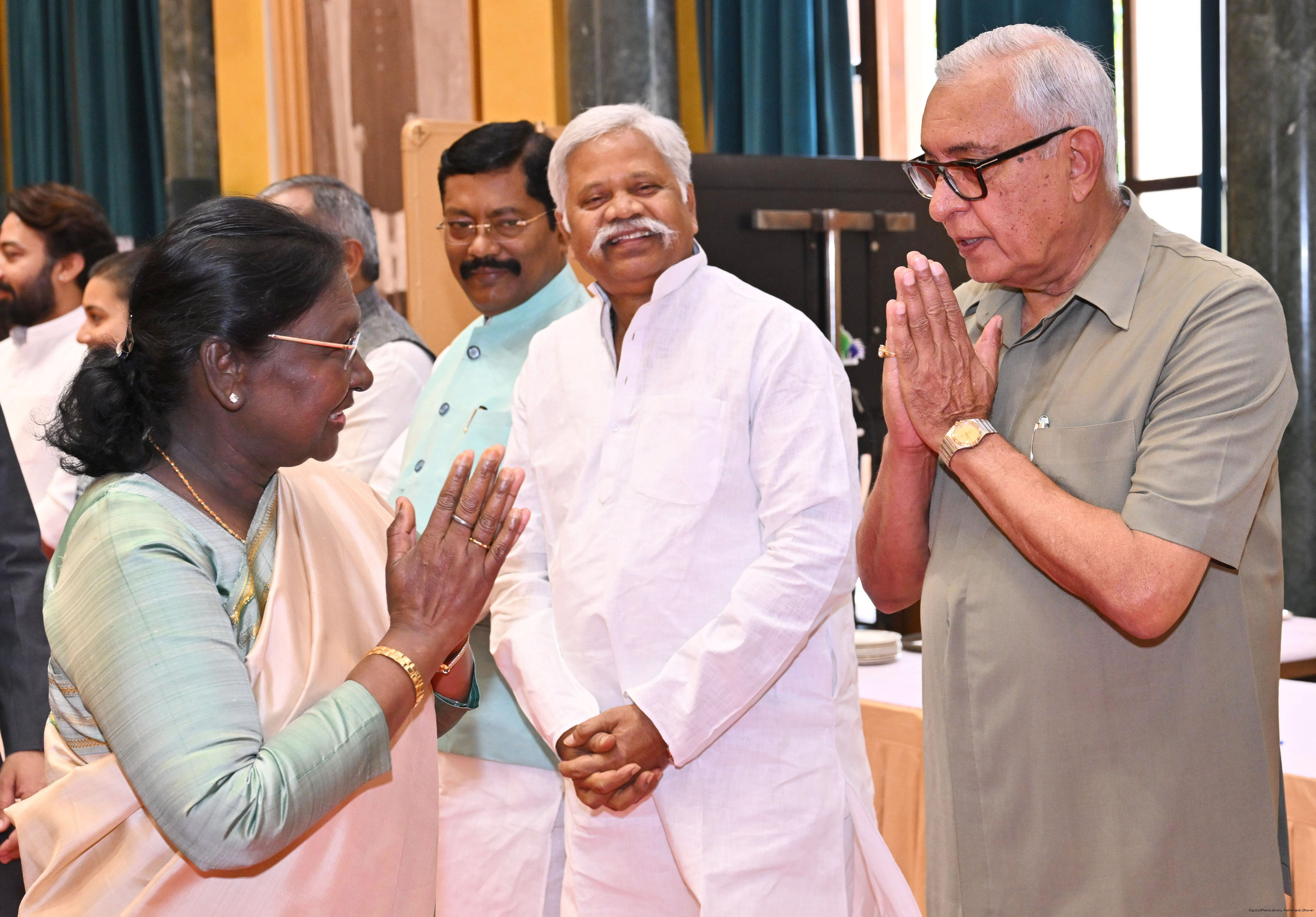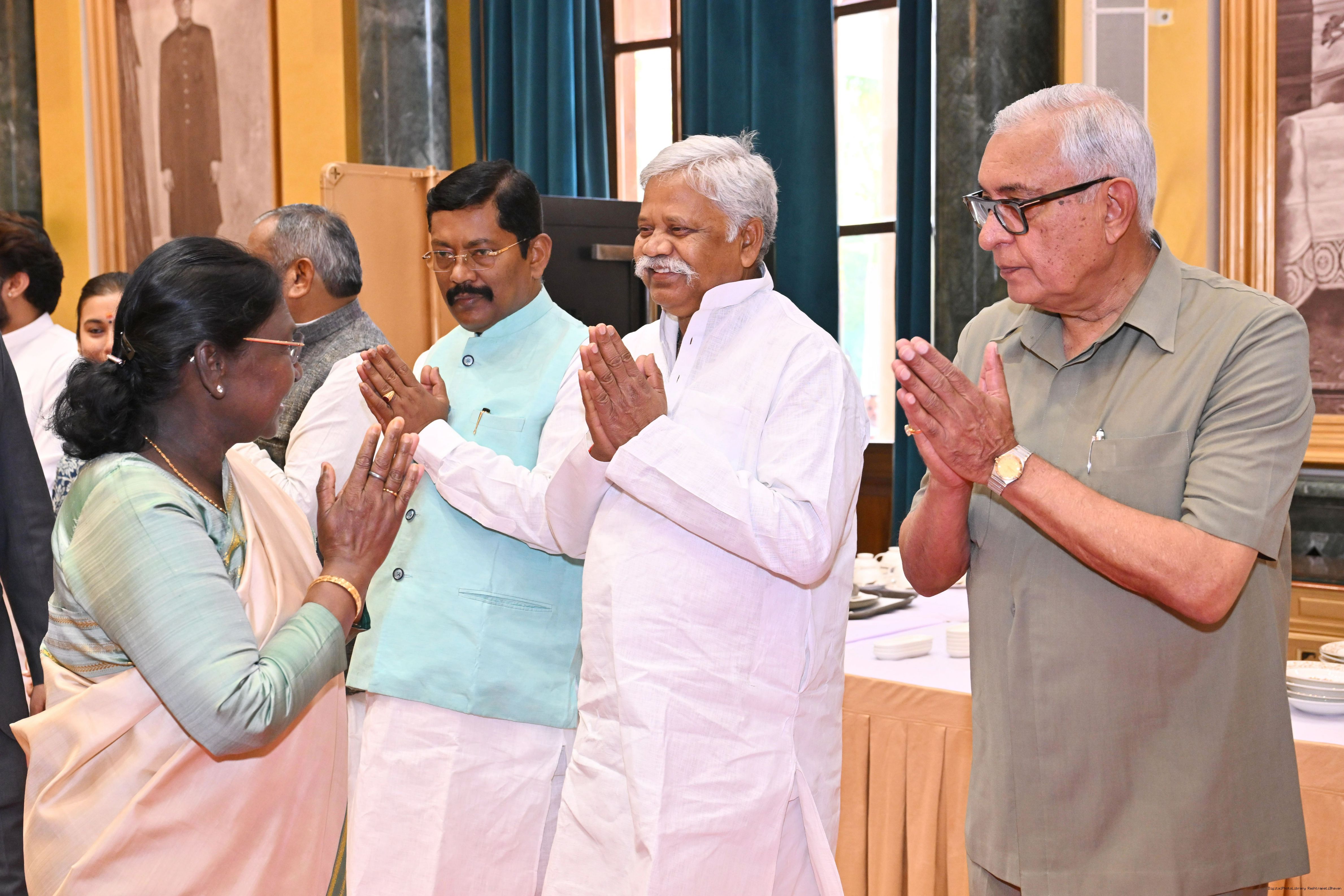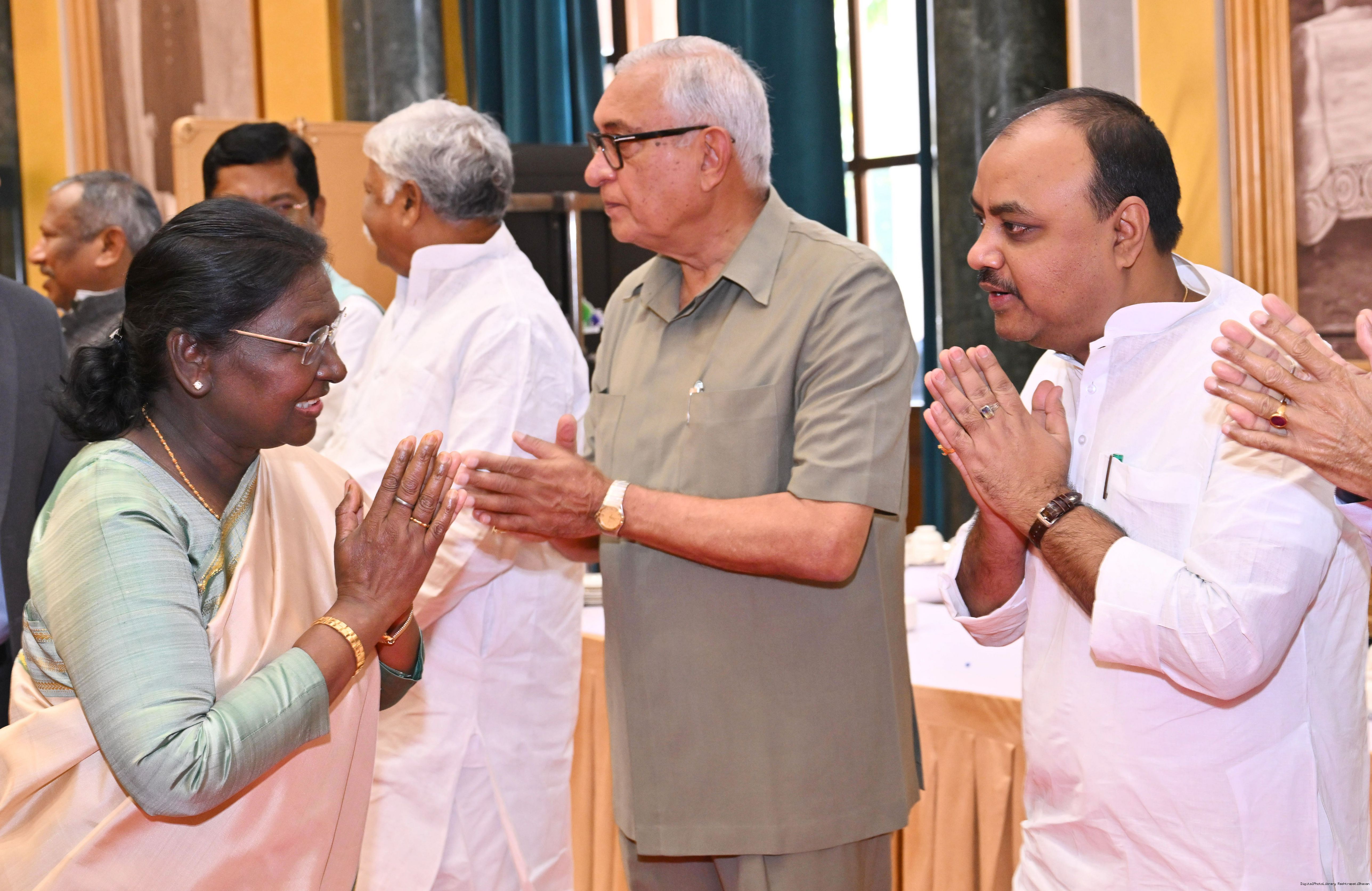 | Caption: | The President of India, Smt Droupadi Murmu hosted Members of Parliament from Bihar, Chhattisgarh, Himachal Pradesh, Jammu Kashmir, Assam, Arunachal Pradesh, Manipur and Meghalaya for breakfast at Rashtrapati Bhavan Cultural Centre on March 30, 2026. |