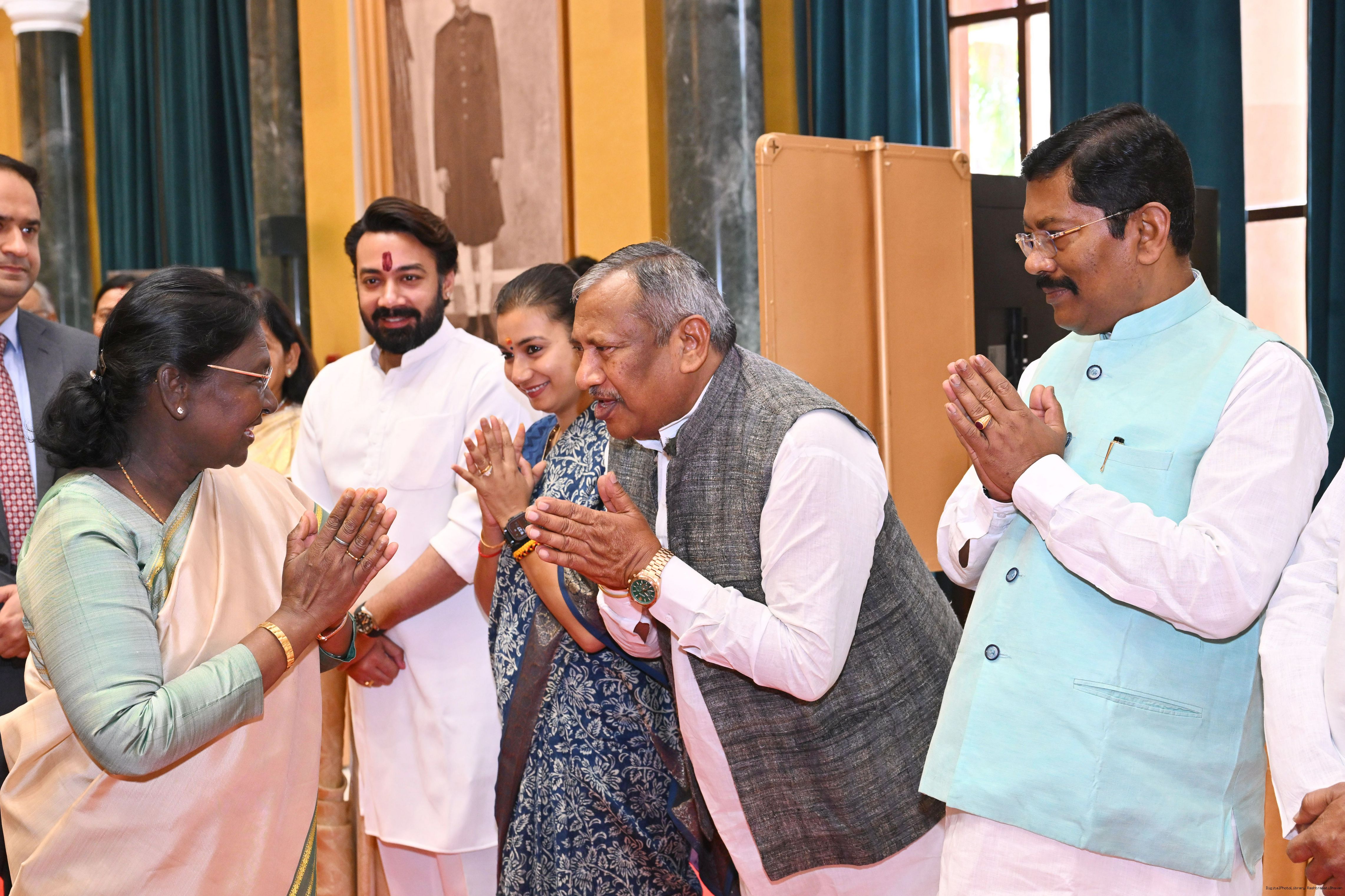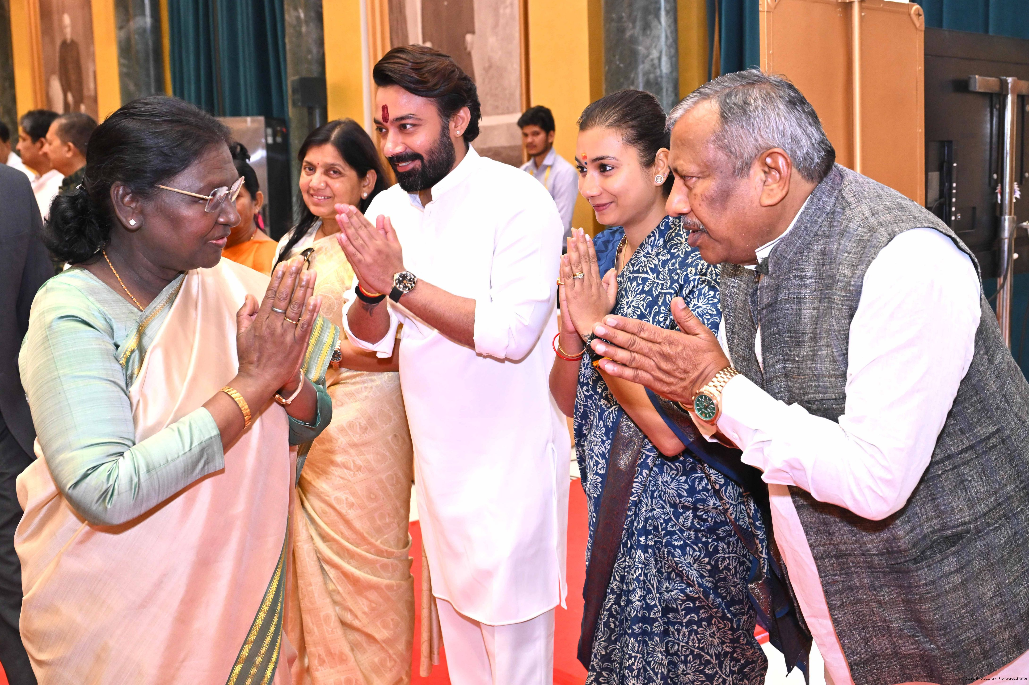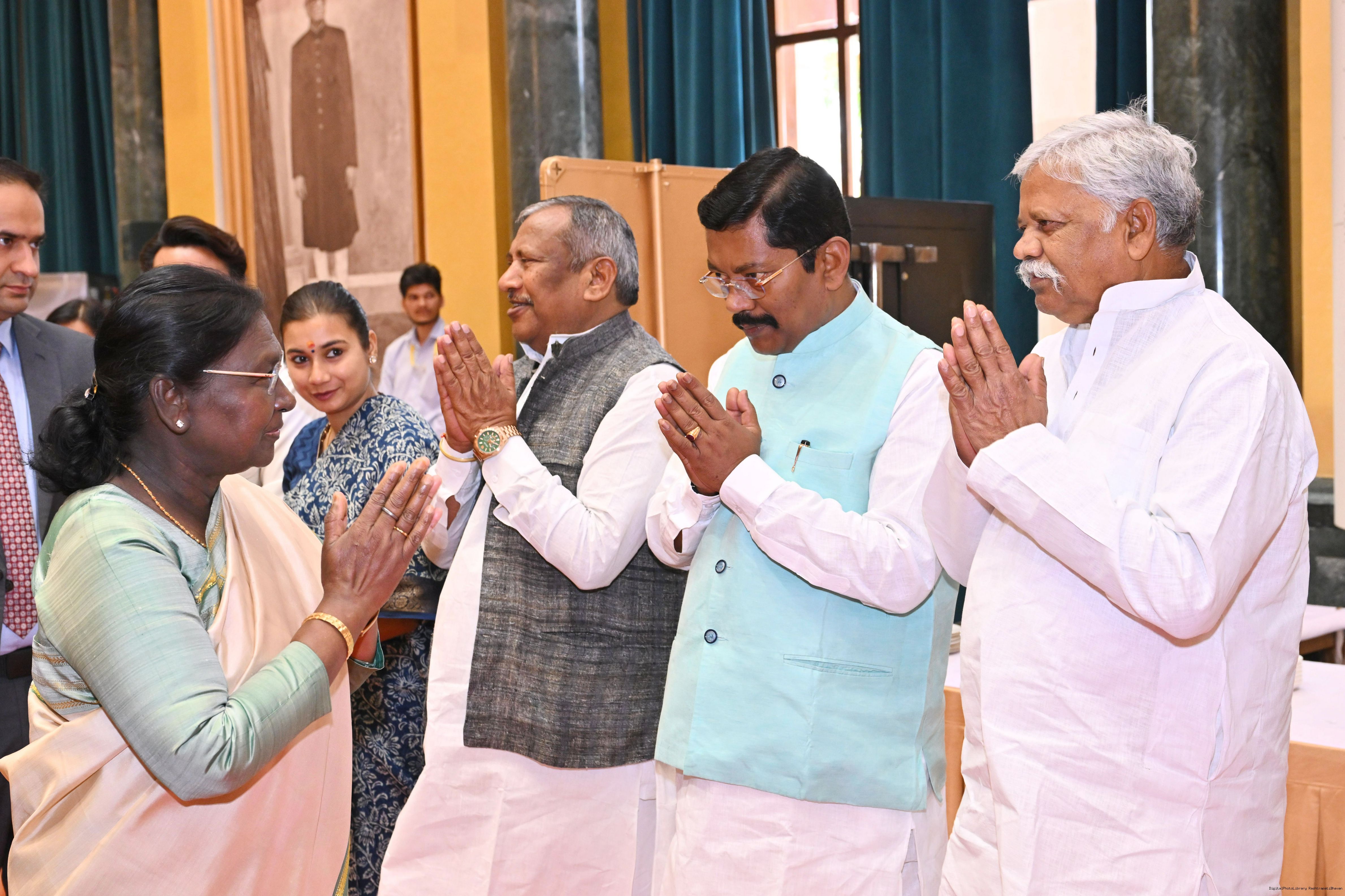 | Caption: | The President of India, Smt Droupadi Murmu hosted Members of Parliament from Bihar, Chhattisgarh, Himachal Pradesh, Jammu Kashmir, Assam, Arunachal Pradesh, Manipur and Meghalaya for breakfast at Rashtrapati Bhavan Cultural Centre on March 30, 2026. |