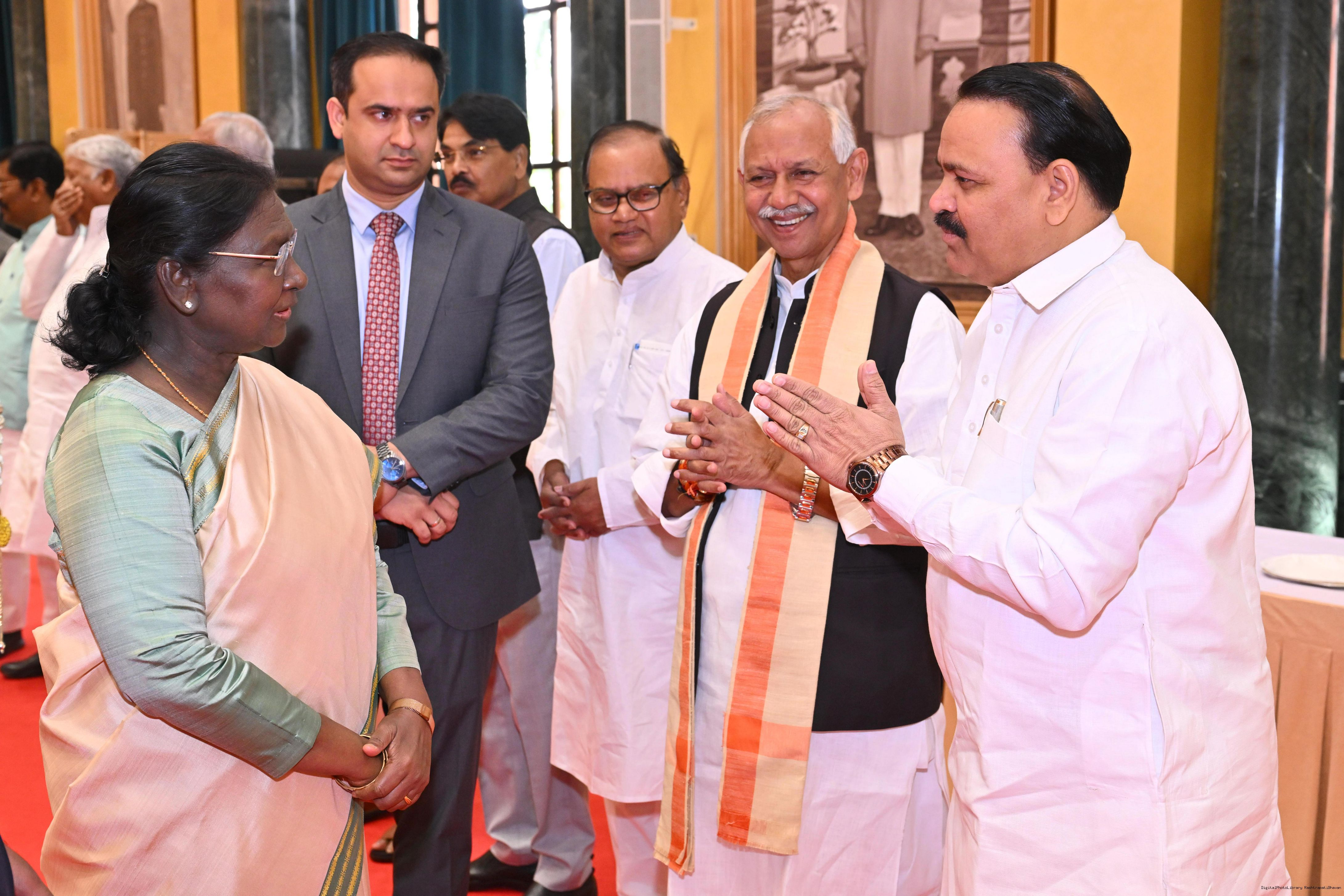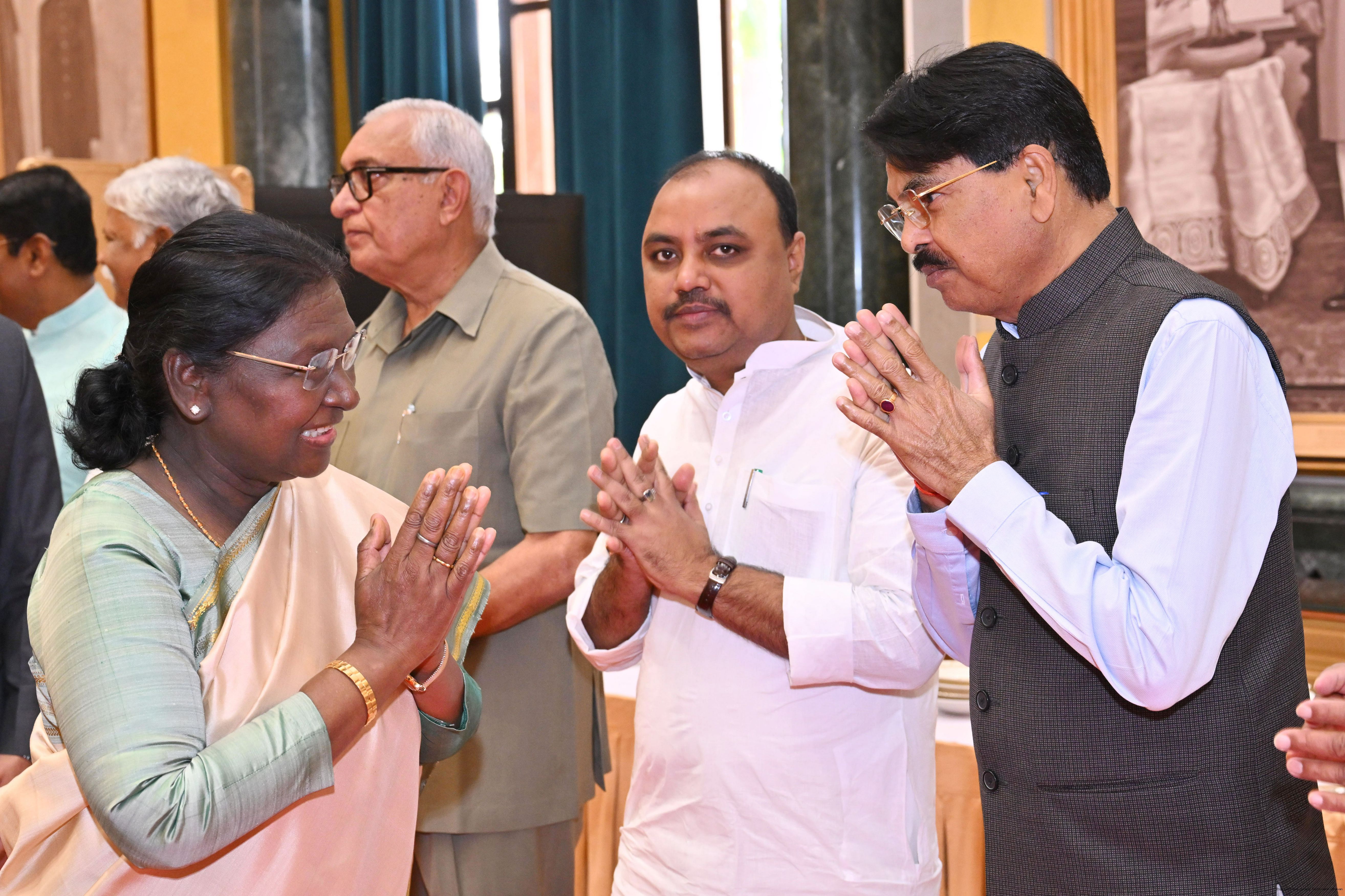 | Caption: | The President of India, Smt Droupadi Murmu hosted Members of Parliament from Bihar, Chhattisgarh, Himachal Pradesh, Jammu Kashmir, Assam, Arunachal Pradesh, Manipur and Meghalaya for breakfast at Rashtrapati Bhavan Cultural Centre on March 30, 2026. |