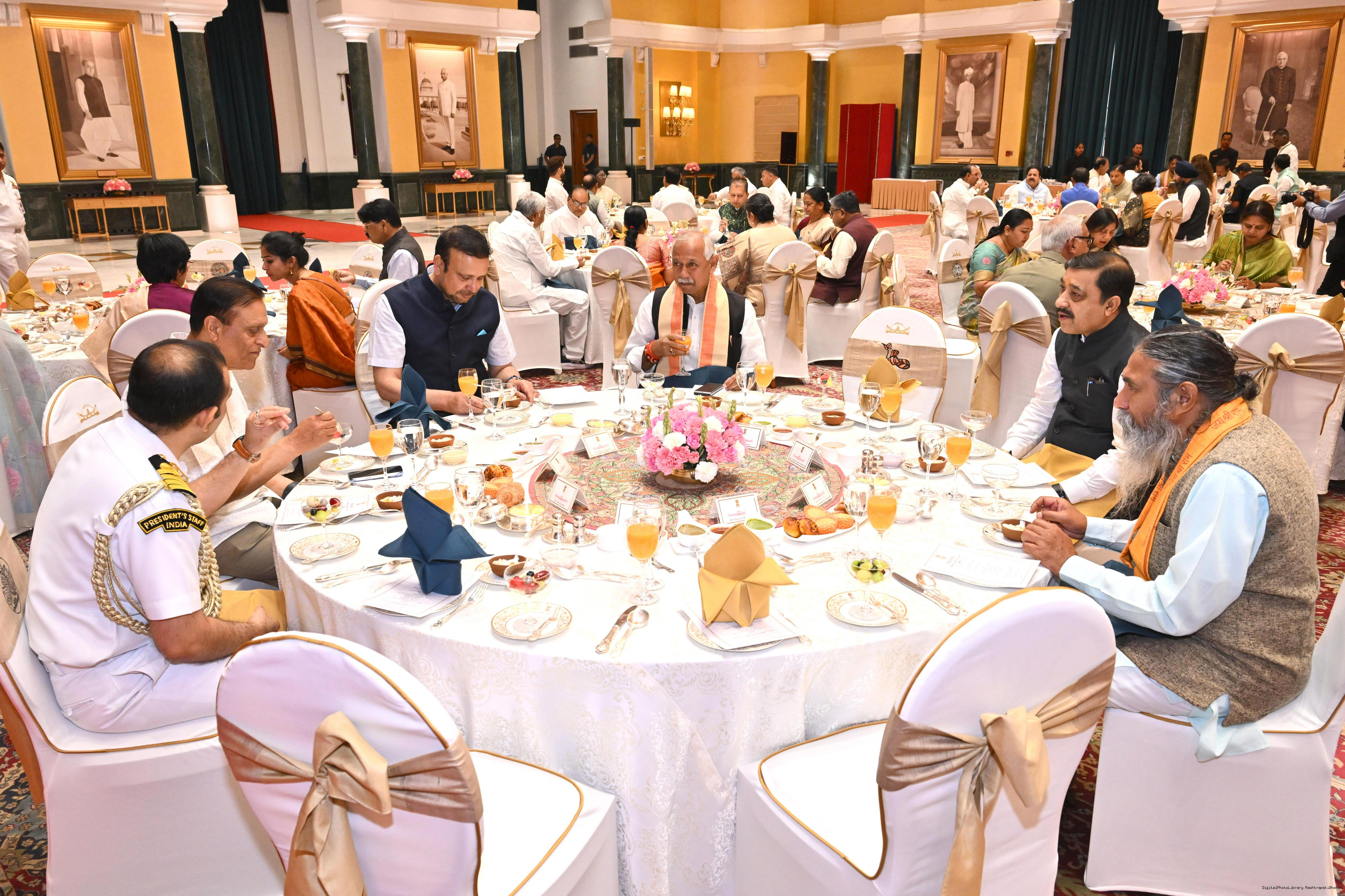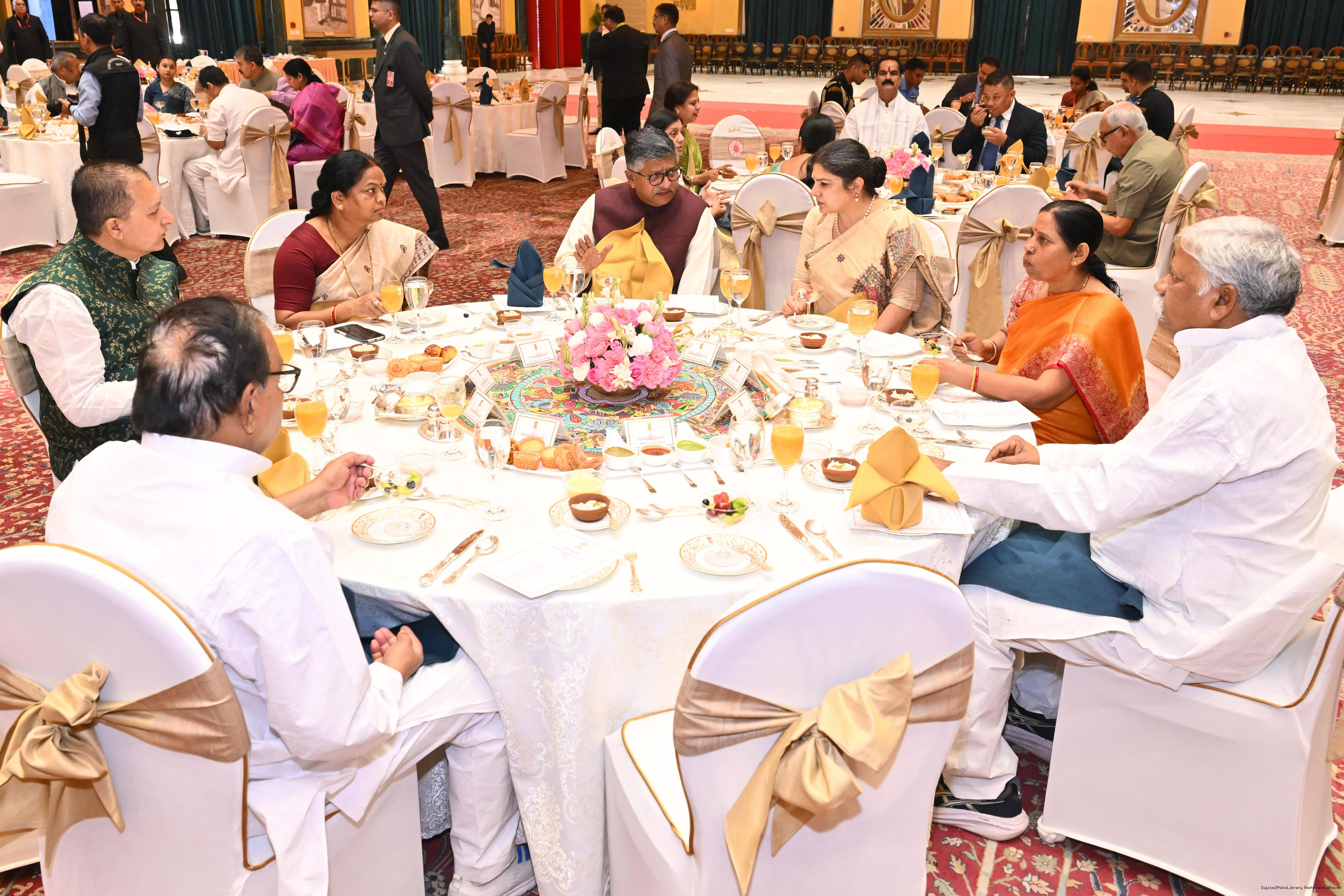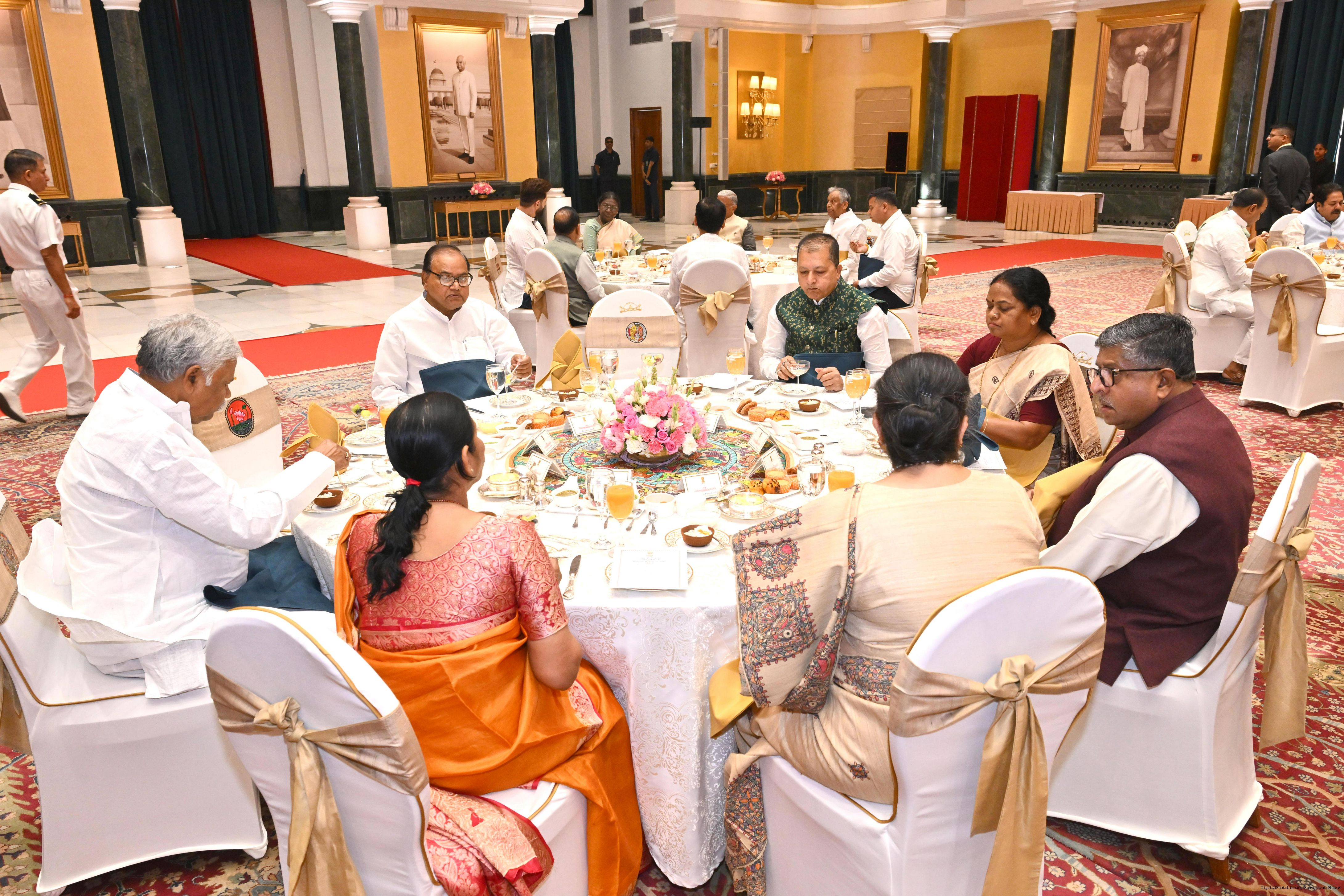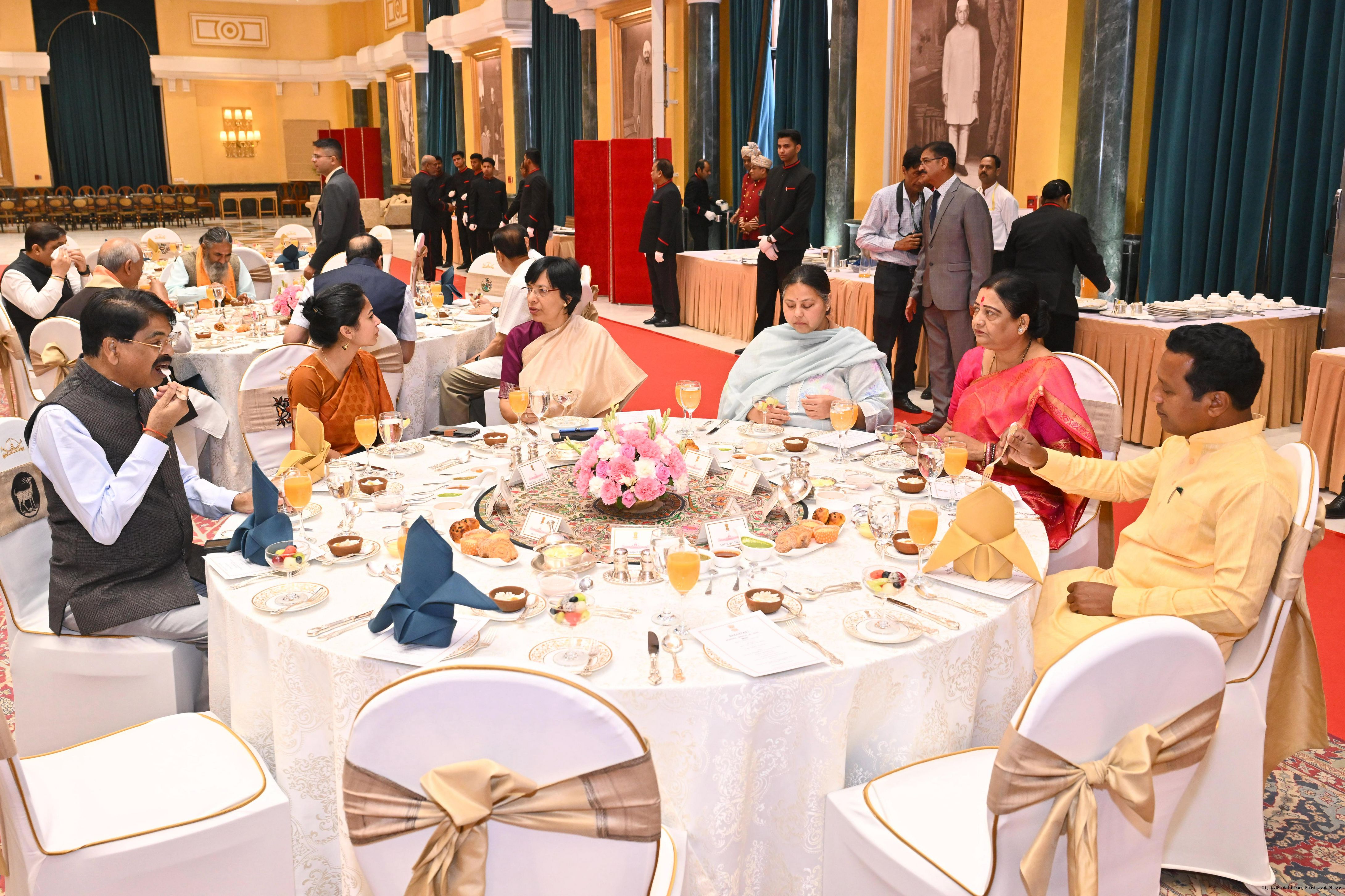 | Caption: | The President of India, Smt Droupadi Murmu hosted Members of Parliament from Bihar, Chhattisgarh, Himachal Pradesh, Jammu Kashmir, Assam, Arunachal Pradesh, Manipur and Meghalaya for breakfast at Rashtrapati Bhavan Cultural Centre on March 30, 2026. |