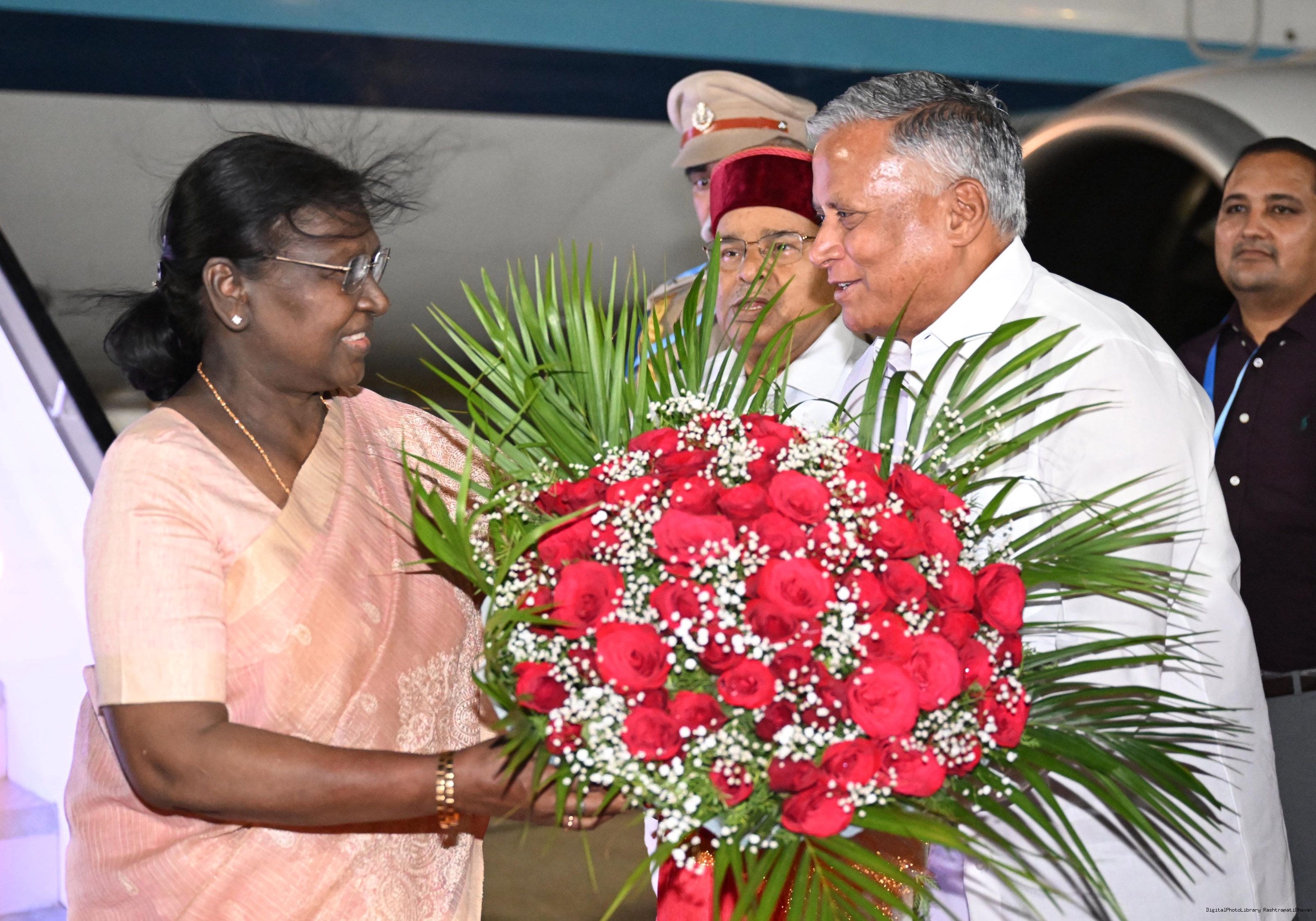 | Caption: | The Governor of Karnataka, Shri Thaawarchand Gehlot and Union Minister of State for Jal Shakti and Railways Shri V. Somanna received the President of India, Smt Droupadi Murmu on her arrival at Bengaluru on March 31, 2026. |