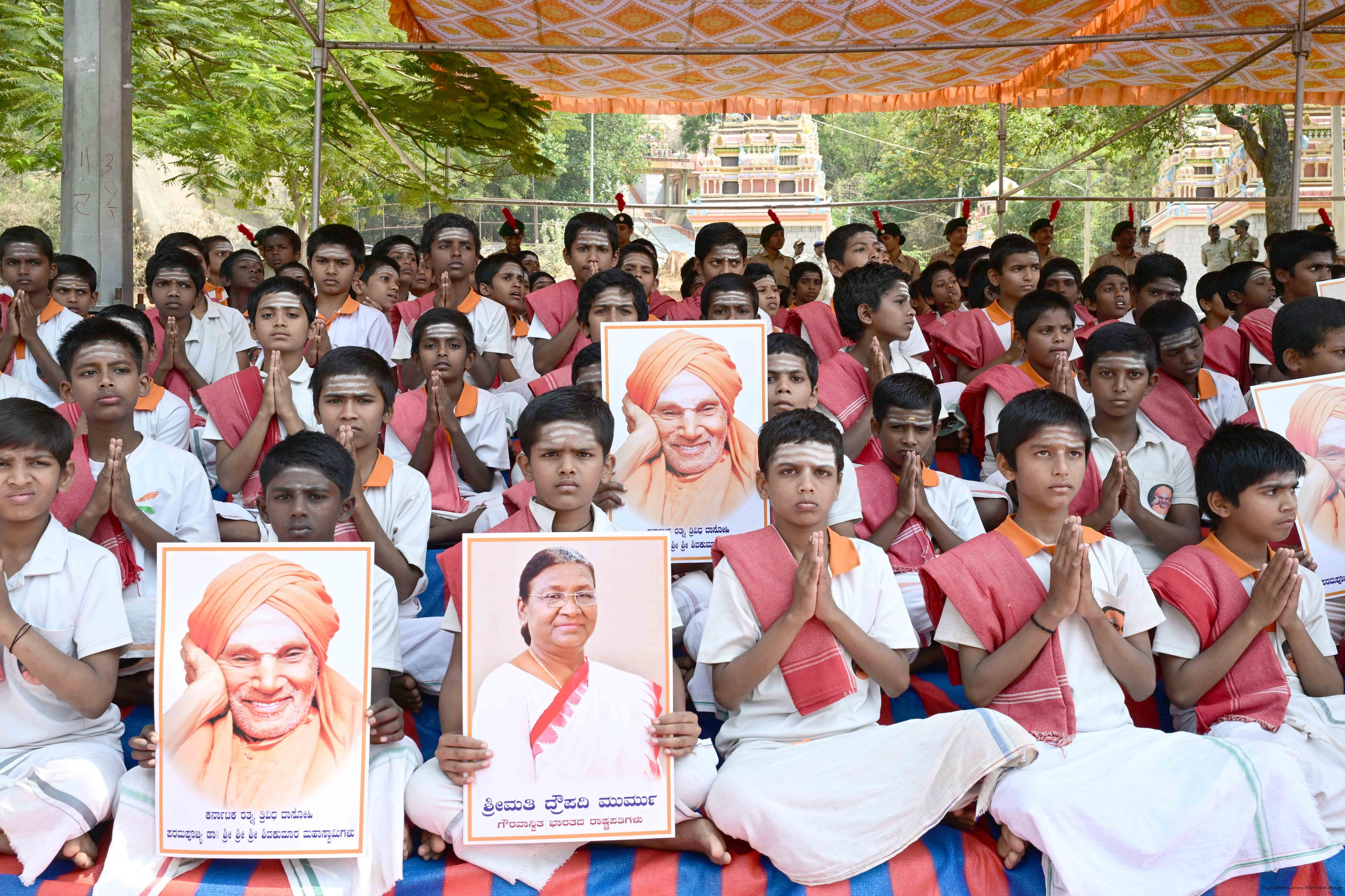 | Caption: | The President of India, Smt Droupadi Murmu graced the 119th birthday celebrations and Guruvandana mahotsava of Dr Sree Sree Sivakumara Mahaswamiji at Sree Siddaganga Math, Tumakuru, Karnataka on April 1, 2026. |