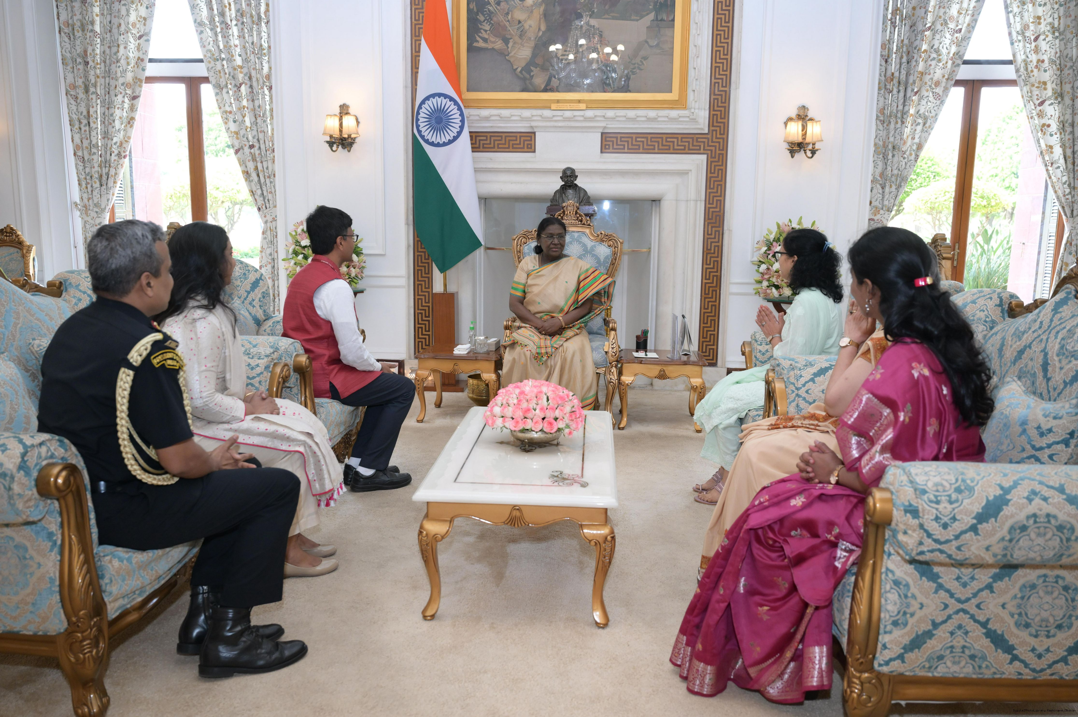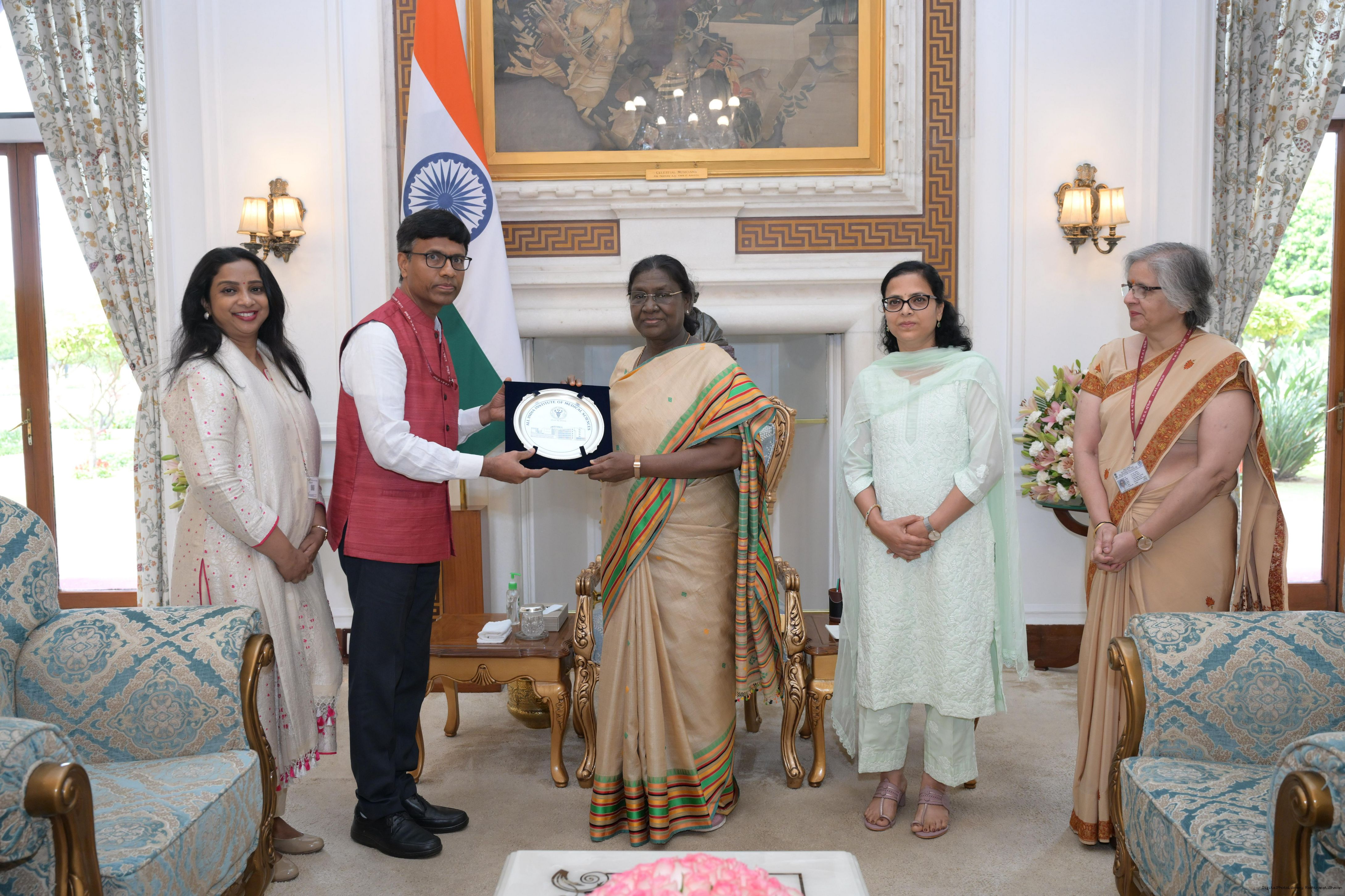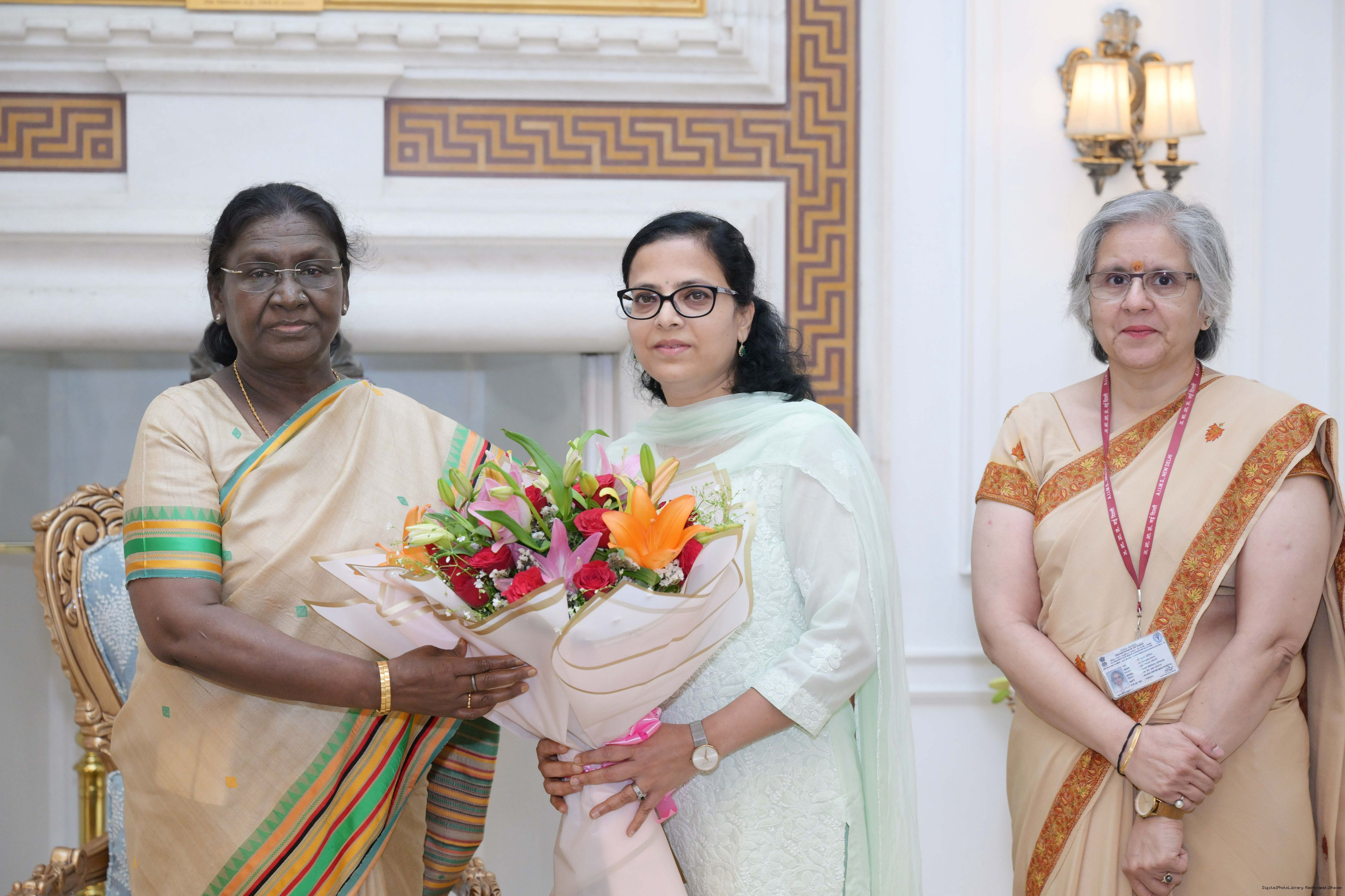 | Caption: | Dr. M. Srinivas, Director, AIIMS, Delhi along with Spouse Dr. Aruna Kumari Yerra and others meeting with the President of India Smt Droupadi Murmu at Rashtrapati Bhavan on April 2, 2026. |