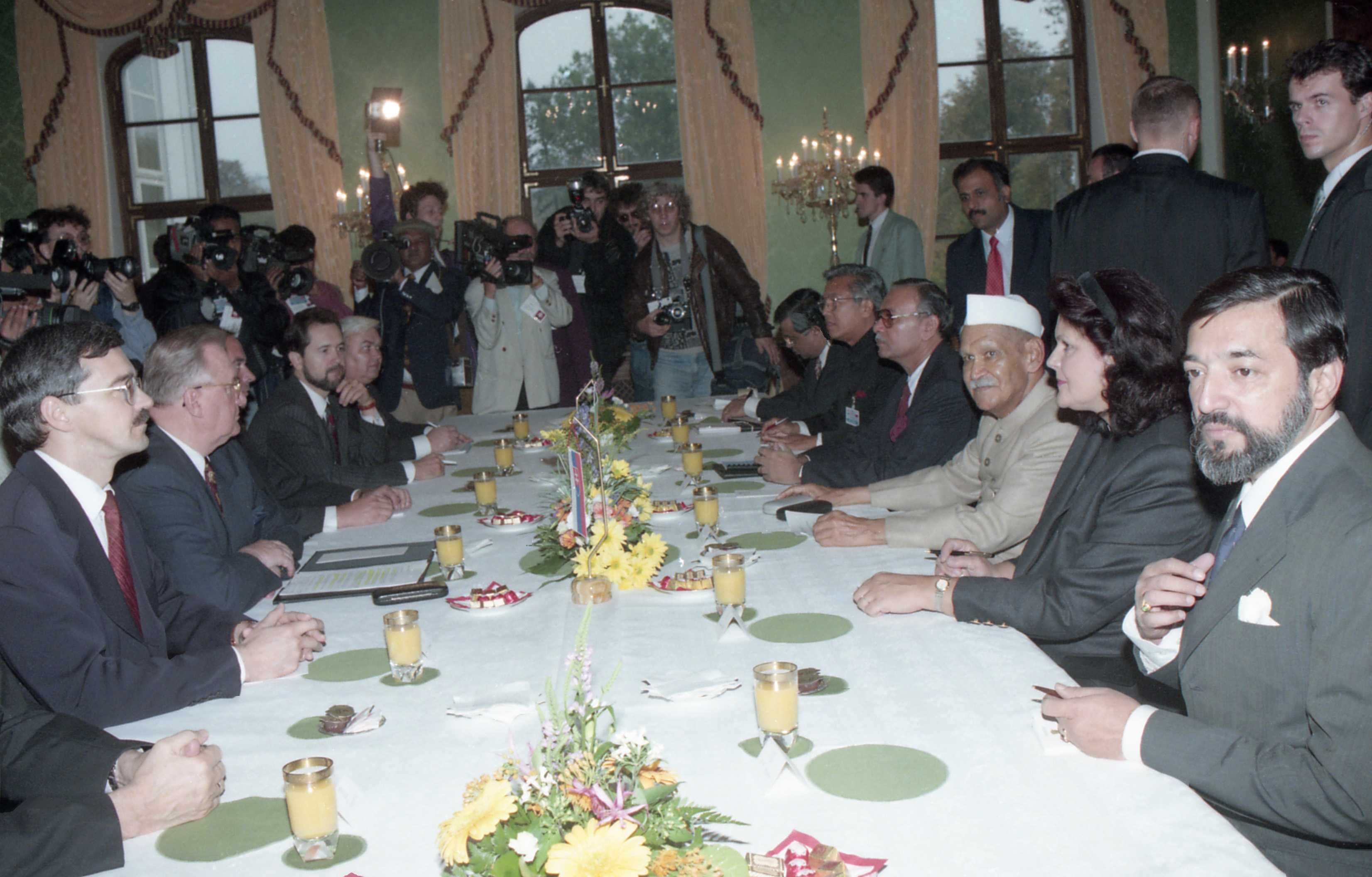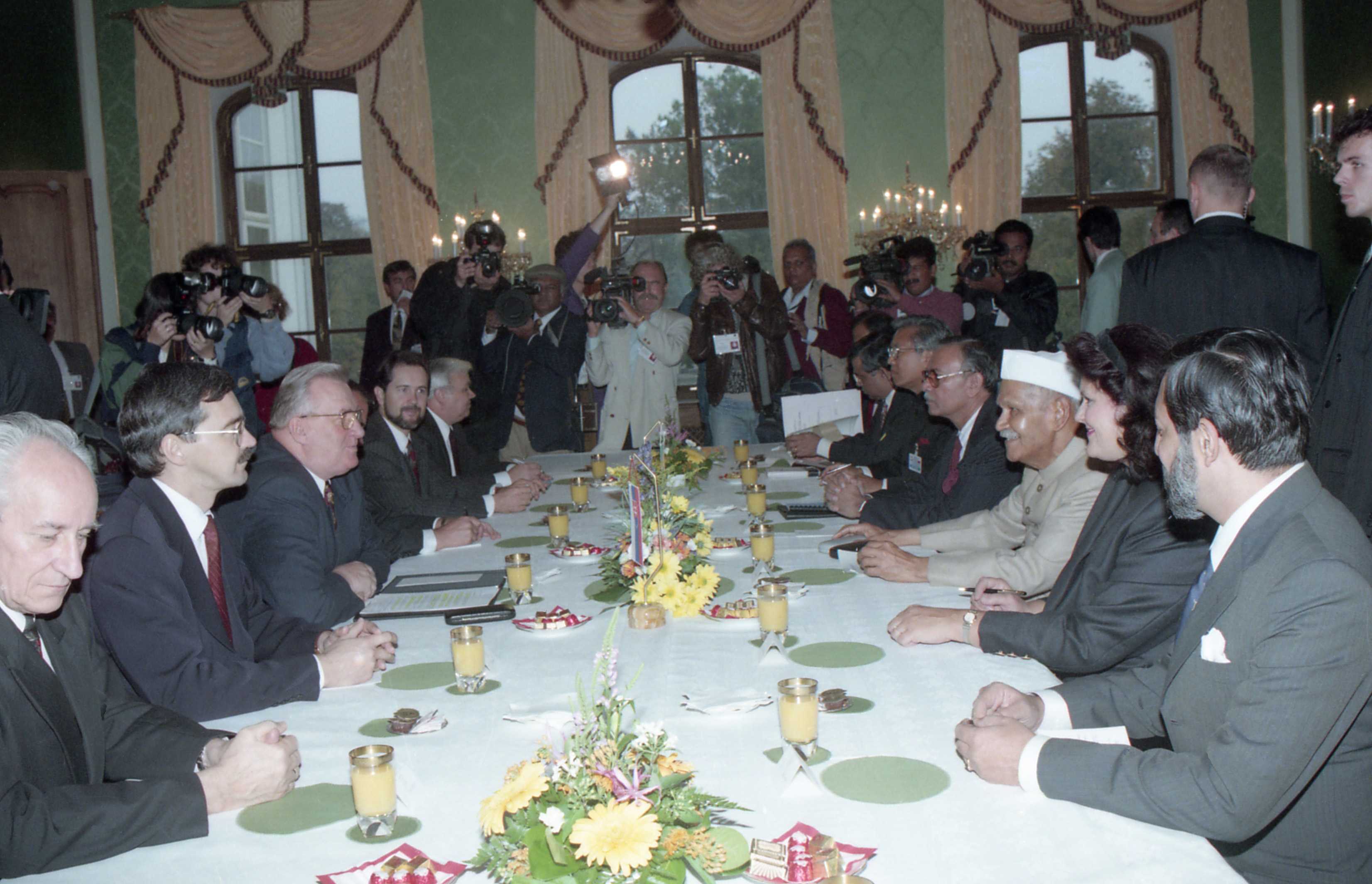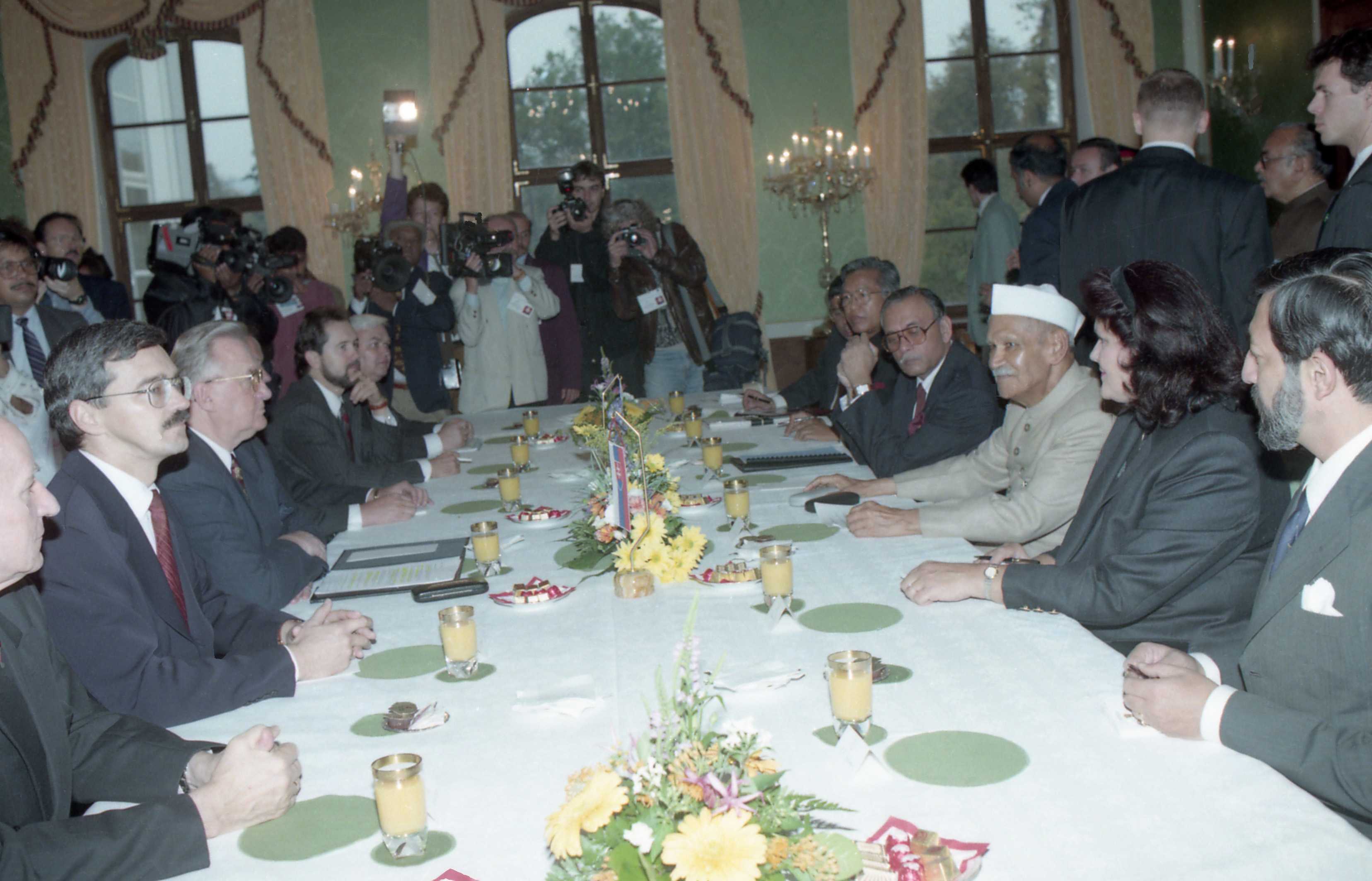 | Caption: | The President of India, Dr. Shankar Dayal Sharma and the President of the Slovak Republic, Mr. Michal Kovac during Delegation level talks, at Presidential Palace, in Bratislava, Slovakia on October 09, 1996. |