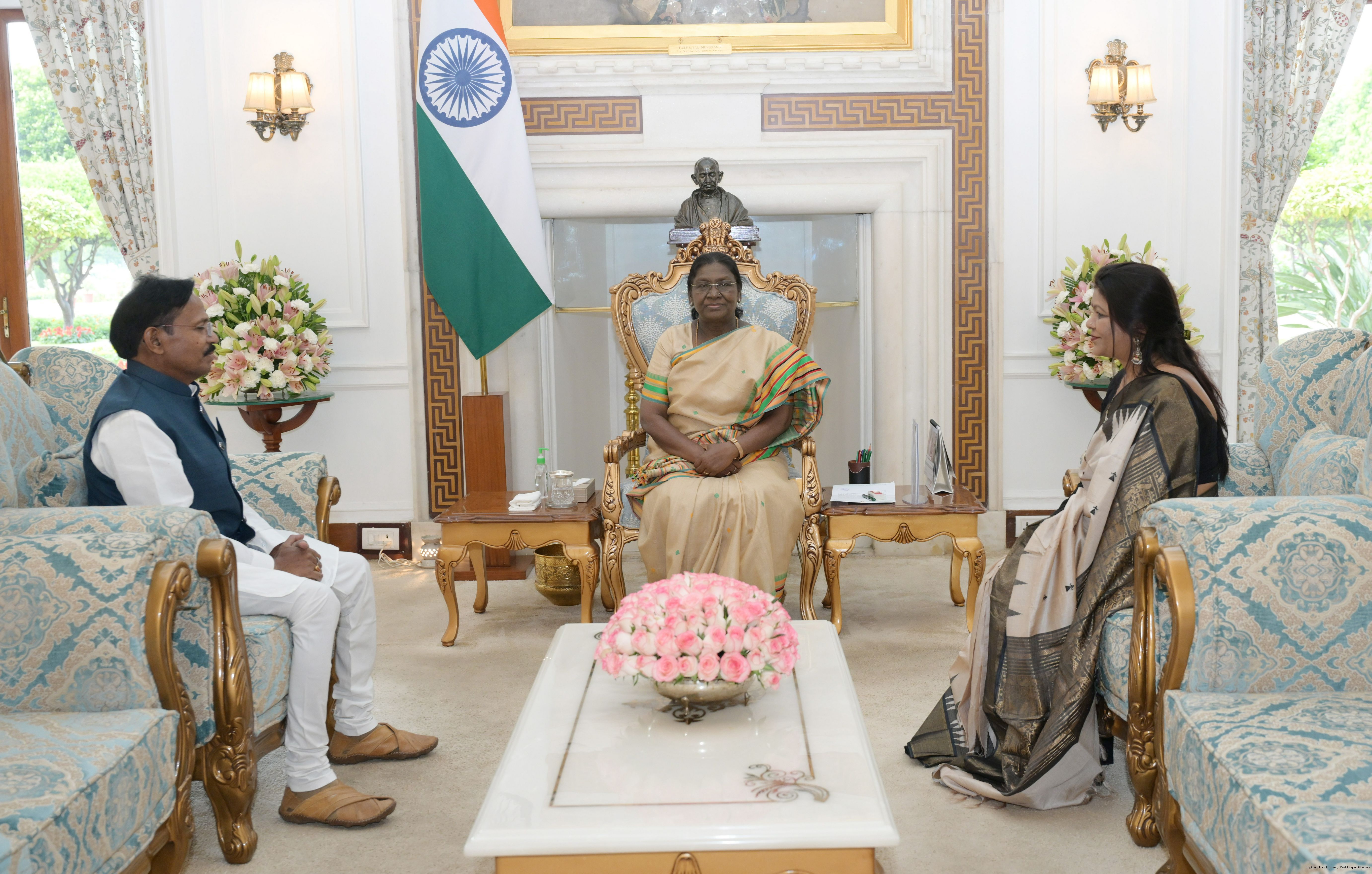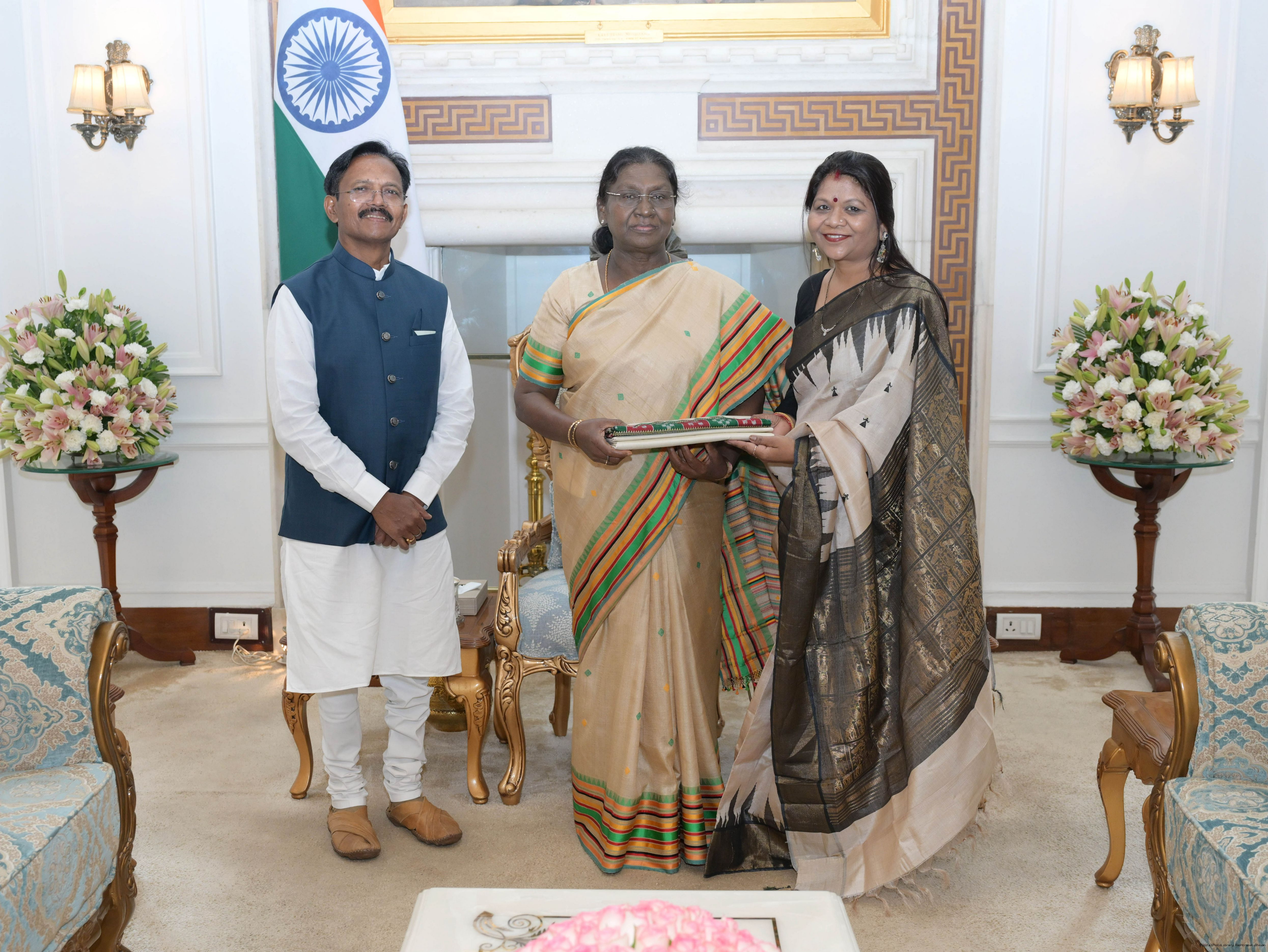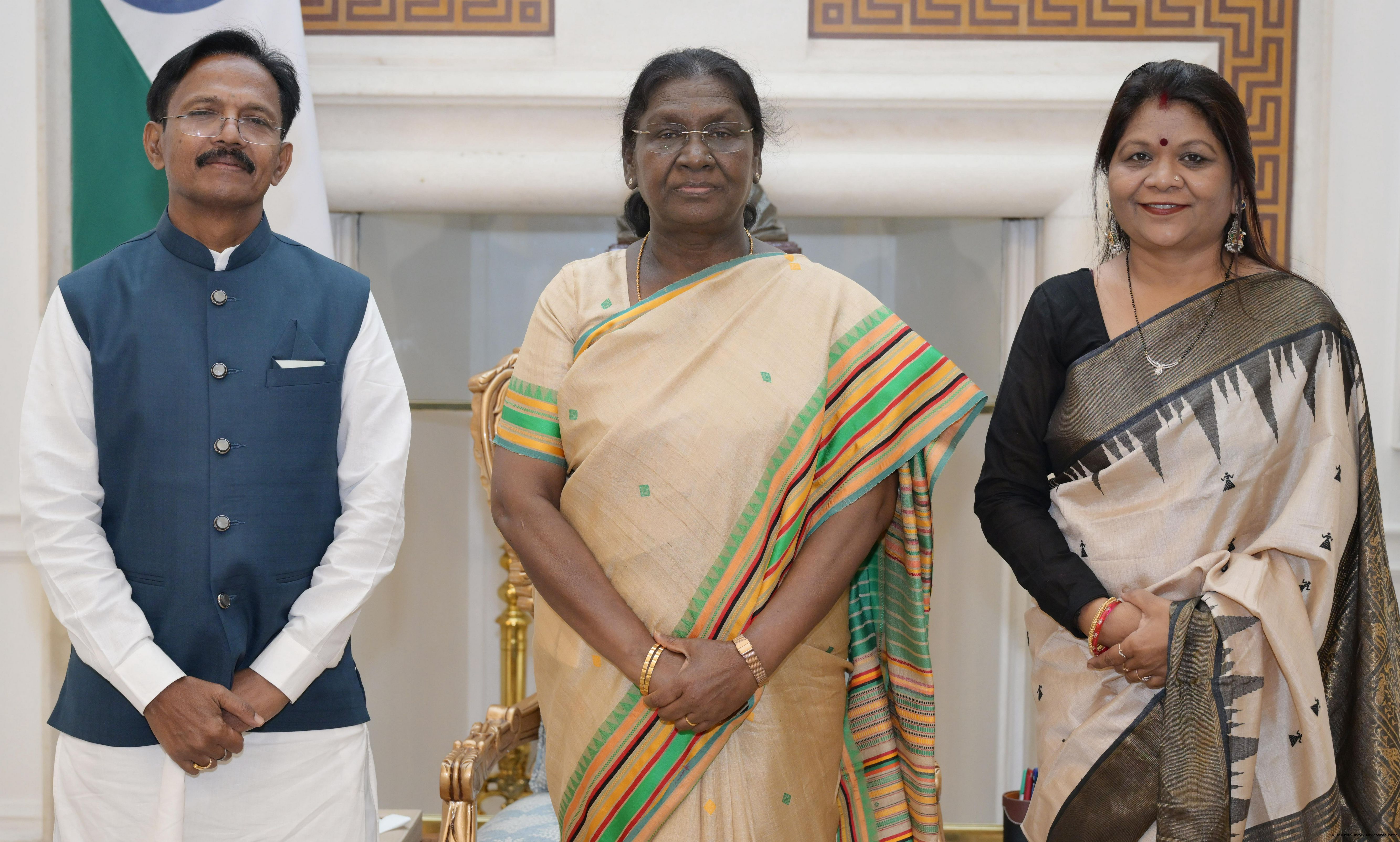 | Caption: | Shri Balabhadra Majhi, MP (LS) from Babarangpur, Odisha along with family members meeting with the President of India Smt Droupadi Murmu at Rashtrapati Bhavan on April 1, 2026. |