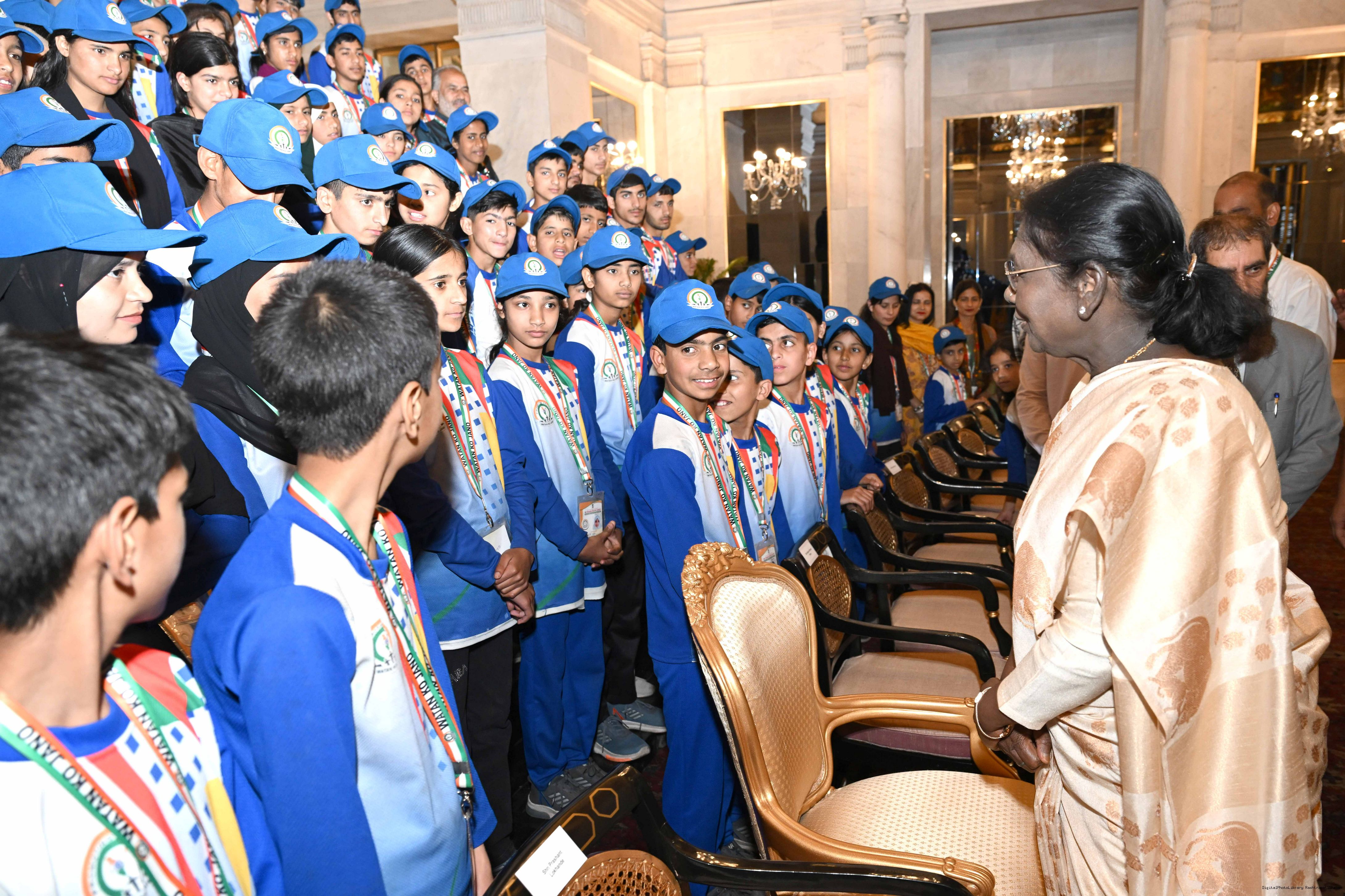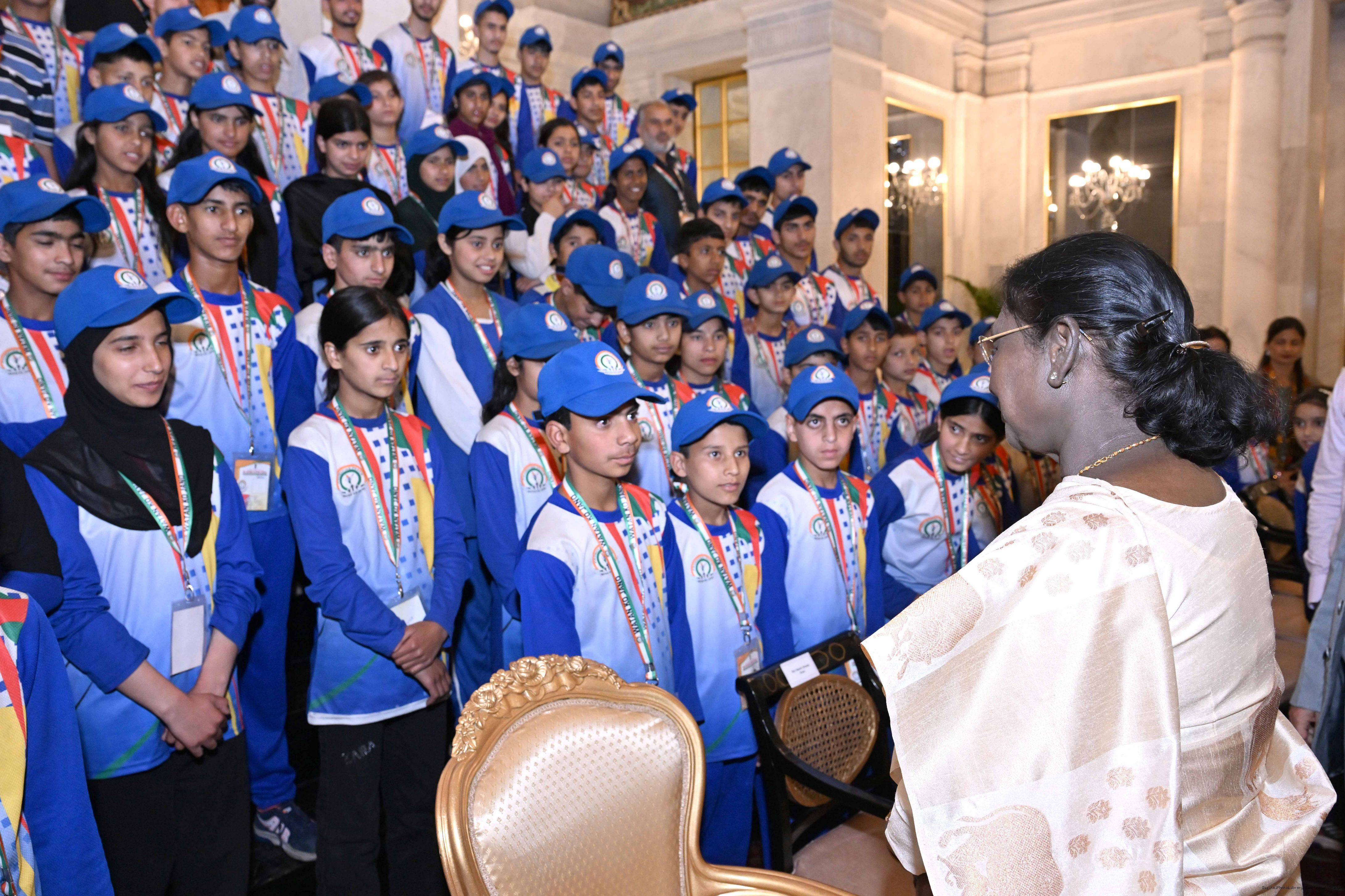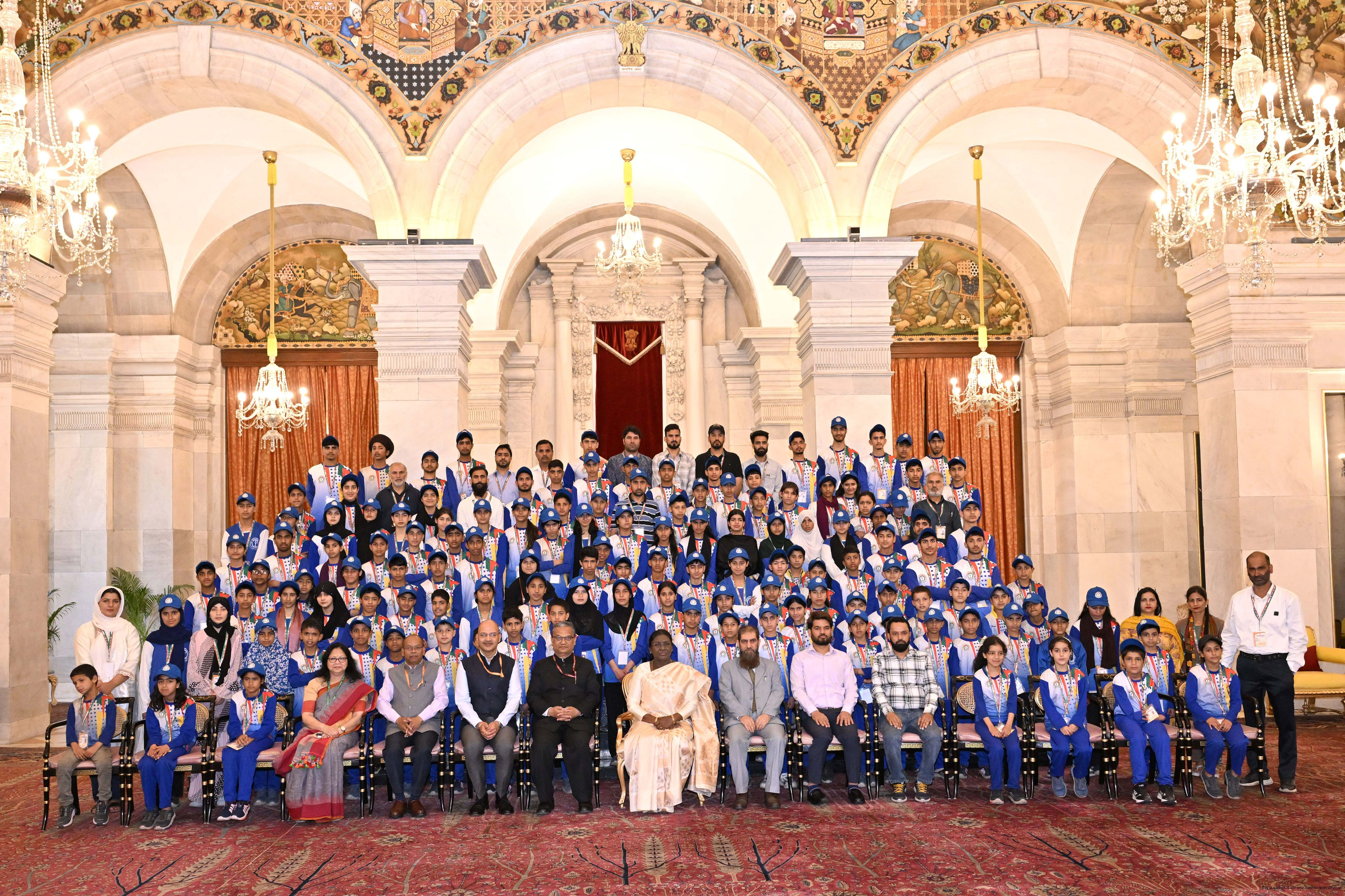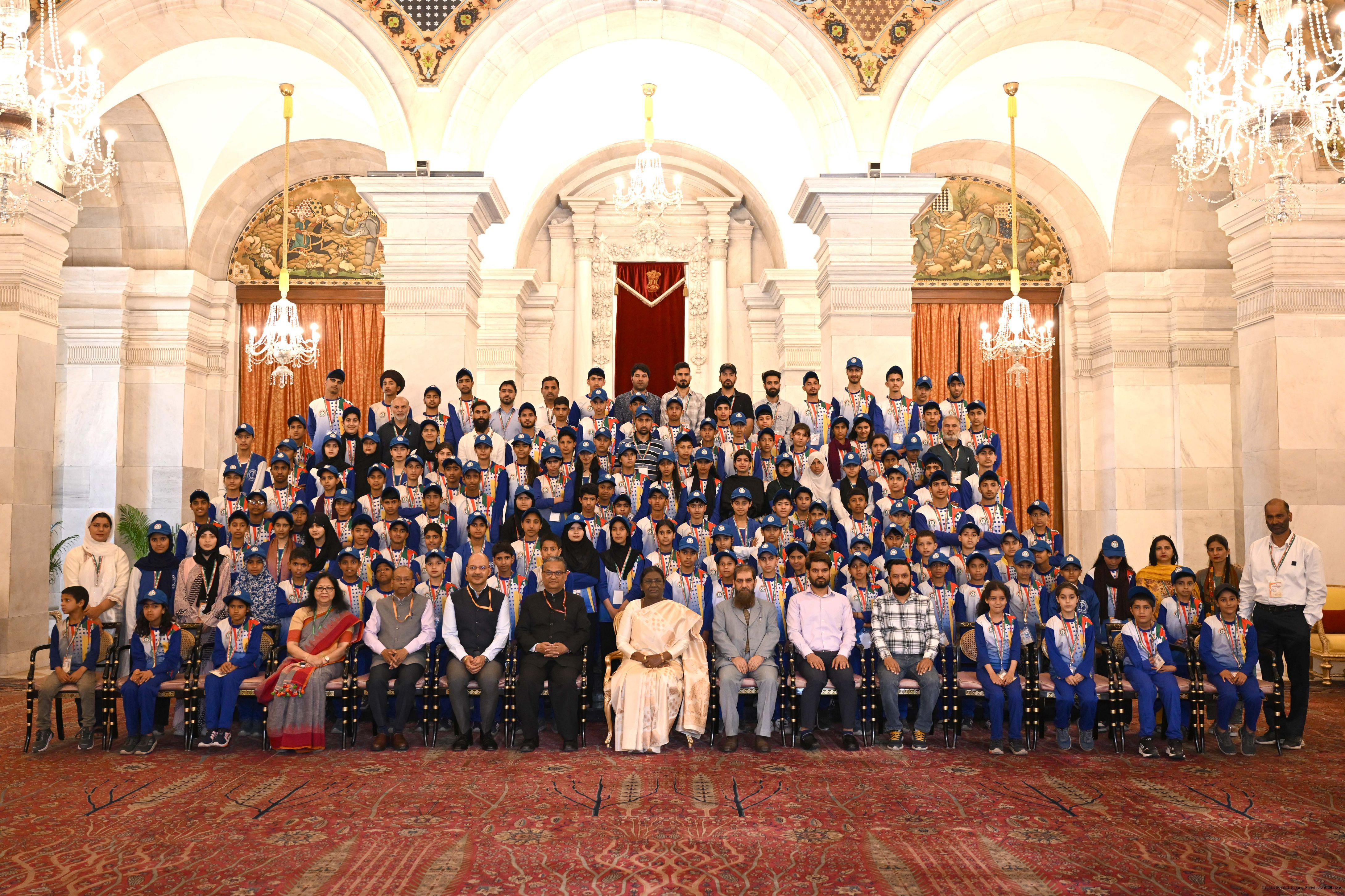 | Caption: | A youth delegation from Jammu and Kashmir attending the programme ‘Watan Ko Jano’, organised by the Ministry of Home Affairs, called on the President of India, Smt Droupadi Murmu at Rashtrapati Bhavan on April 8, 2026. |