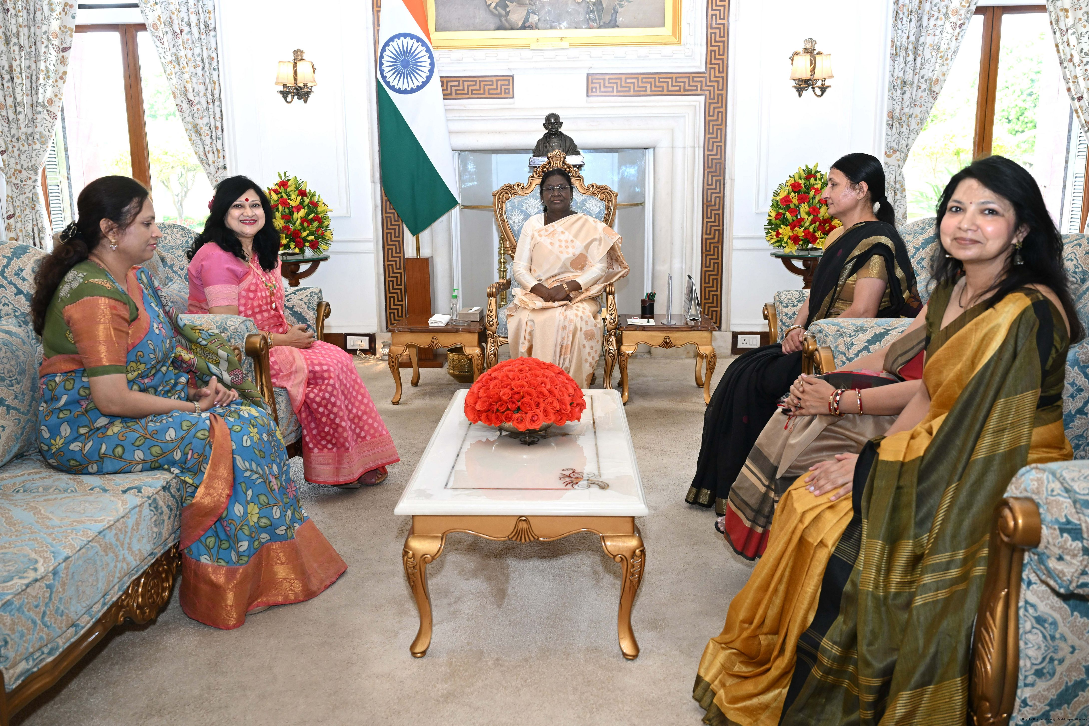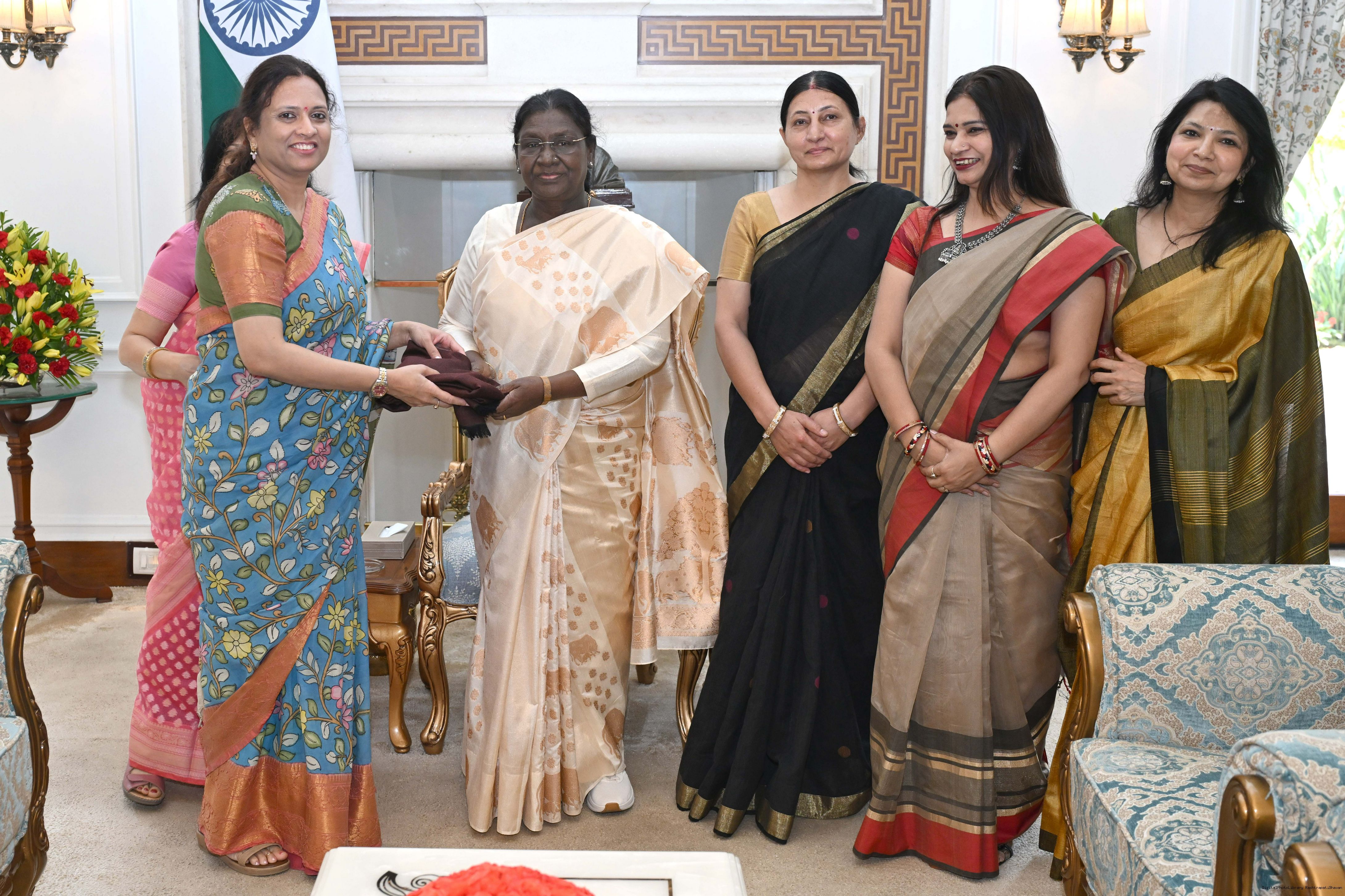| Caption: | Smt. Suman Kumar, General Secretary, CPWD officers of wives’ association along with Smt. Sharada Ram Dayal and others meeting with the President of India, Smt Droupadi Murmu at Rashtrapati Bhavan on April 8, 2026. |