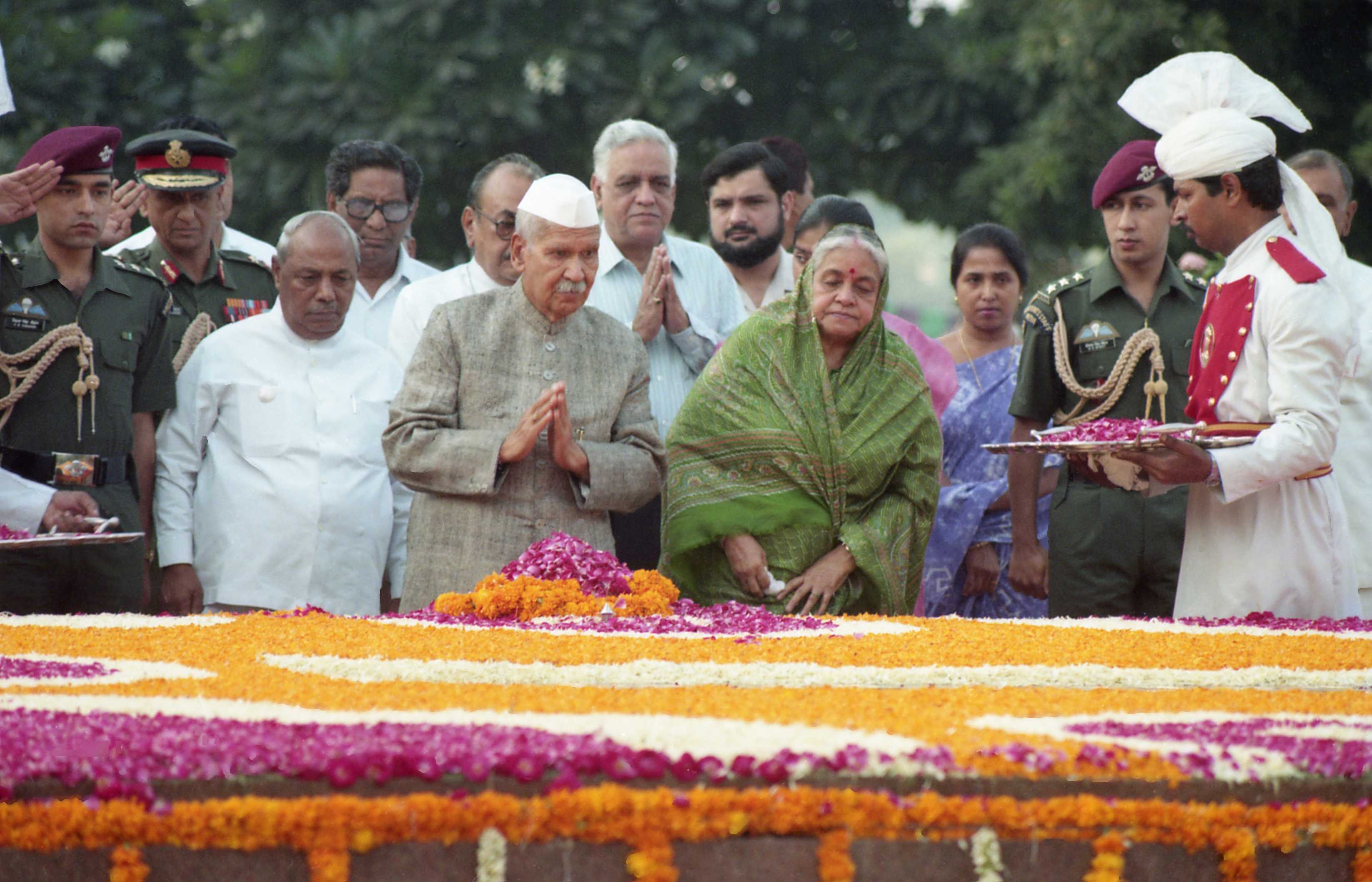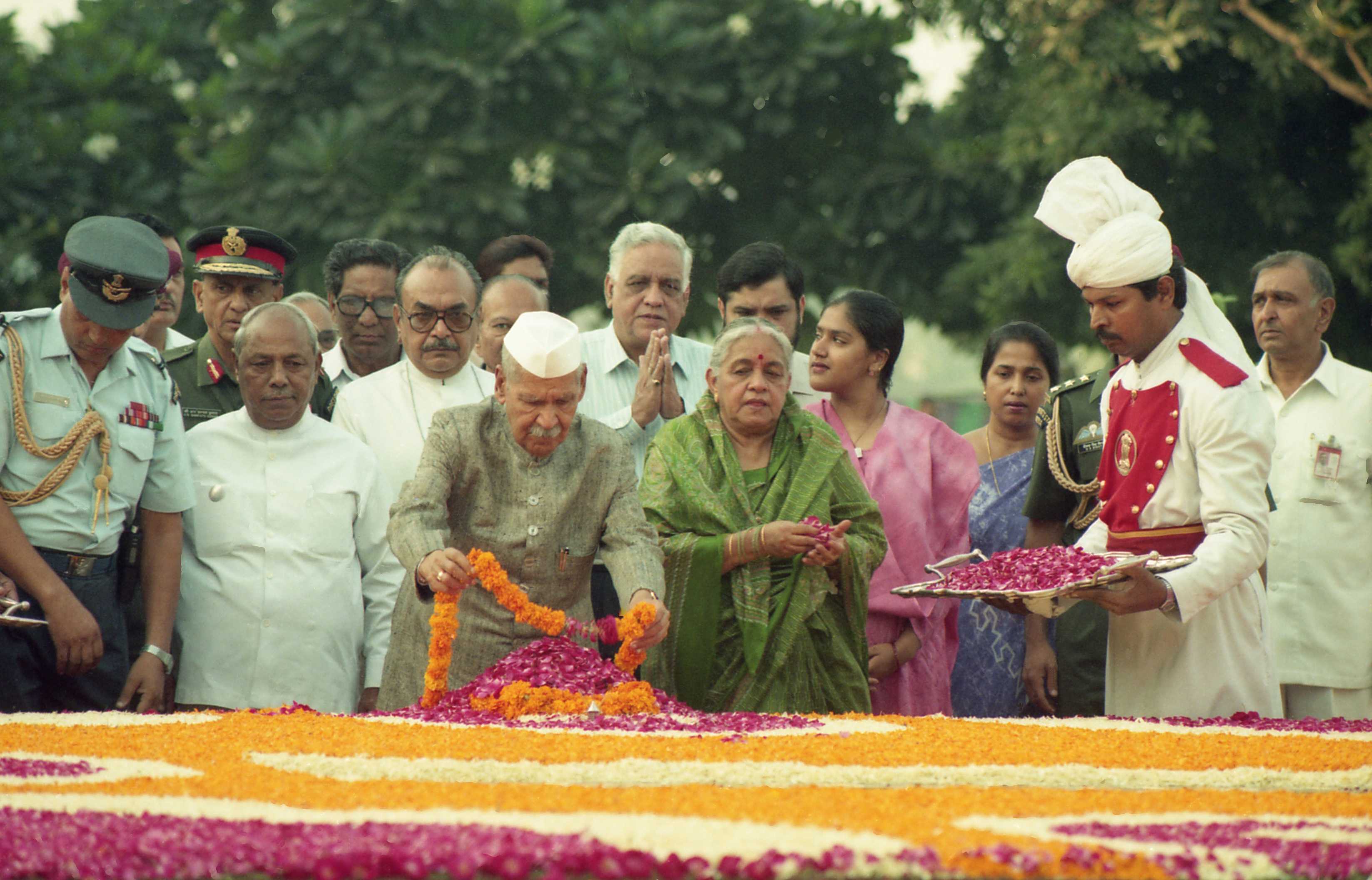 | Caption: | The President of India, Dr. Shankar Dayal Sharma paying homage at the Samadhi of Shri Lal Bahadur Shastri on the occasion of his Birth Anniversary, at Vijay Ghat in Delhi on October 02, 1996. |
